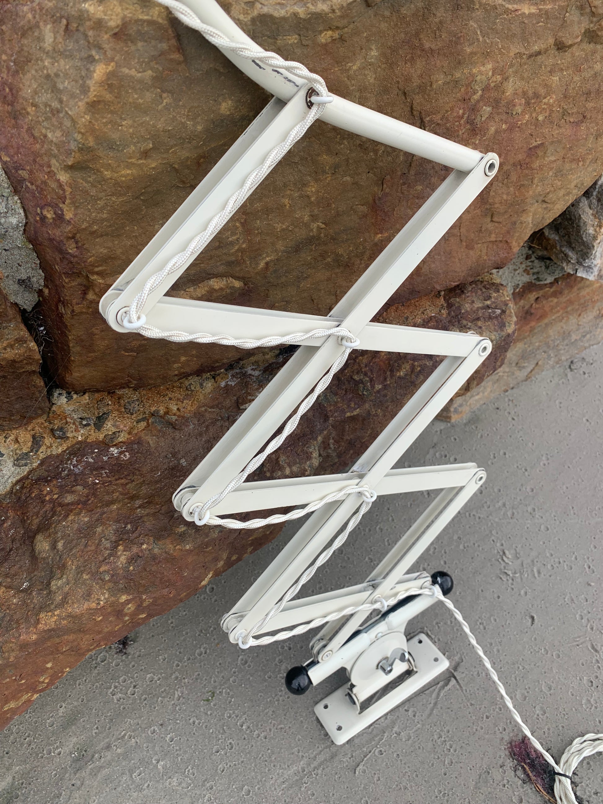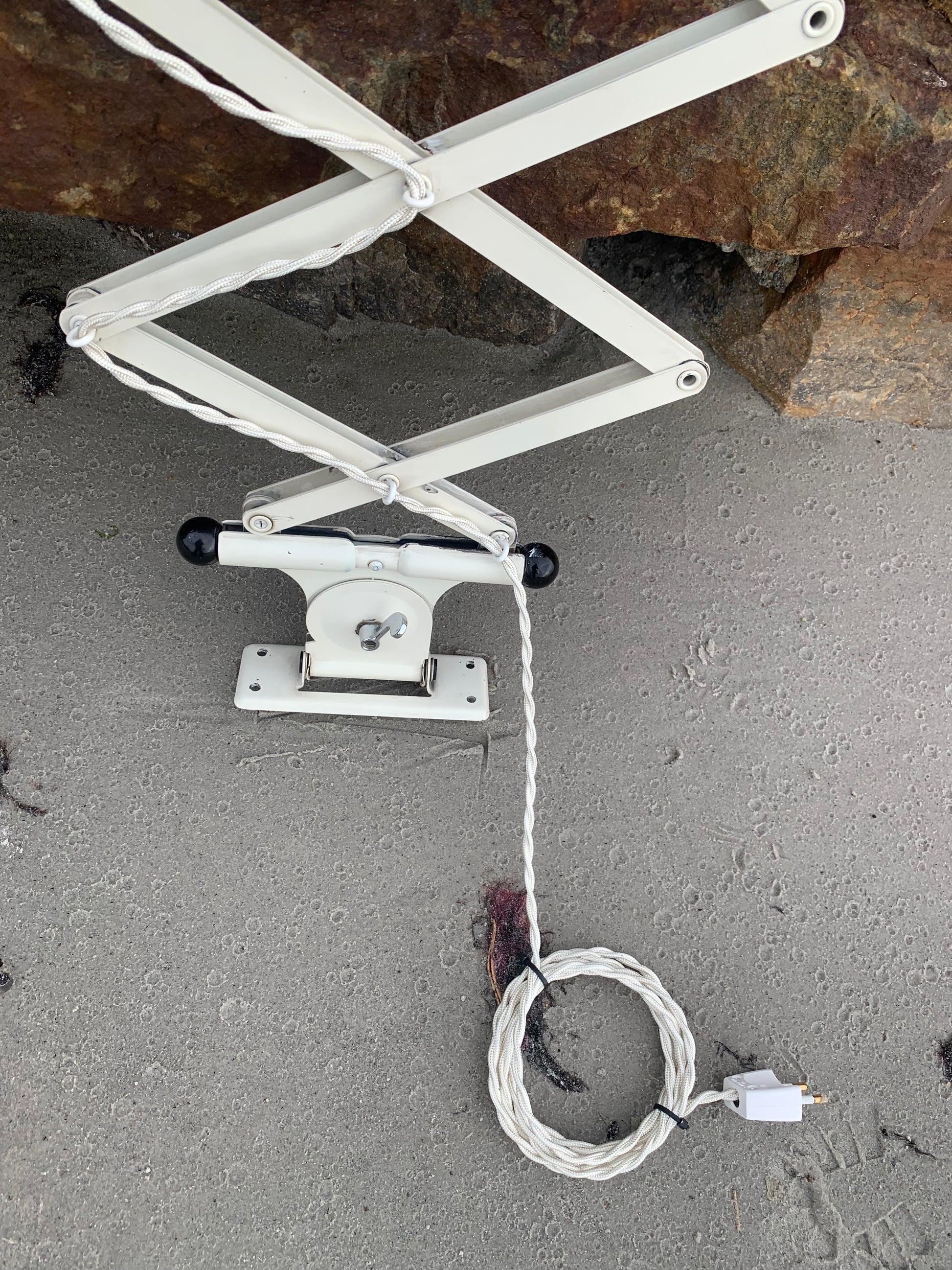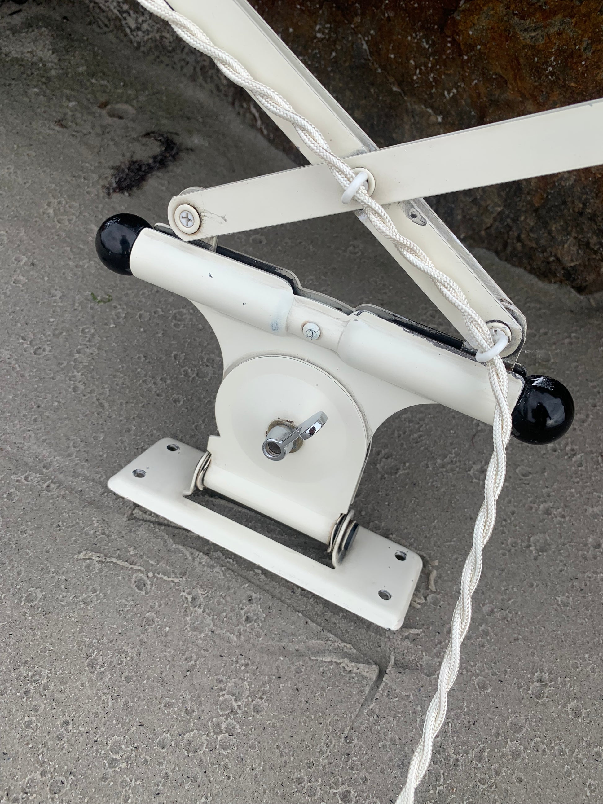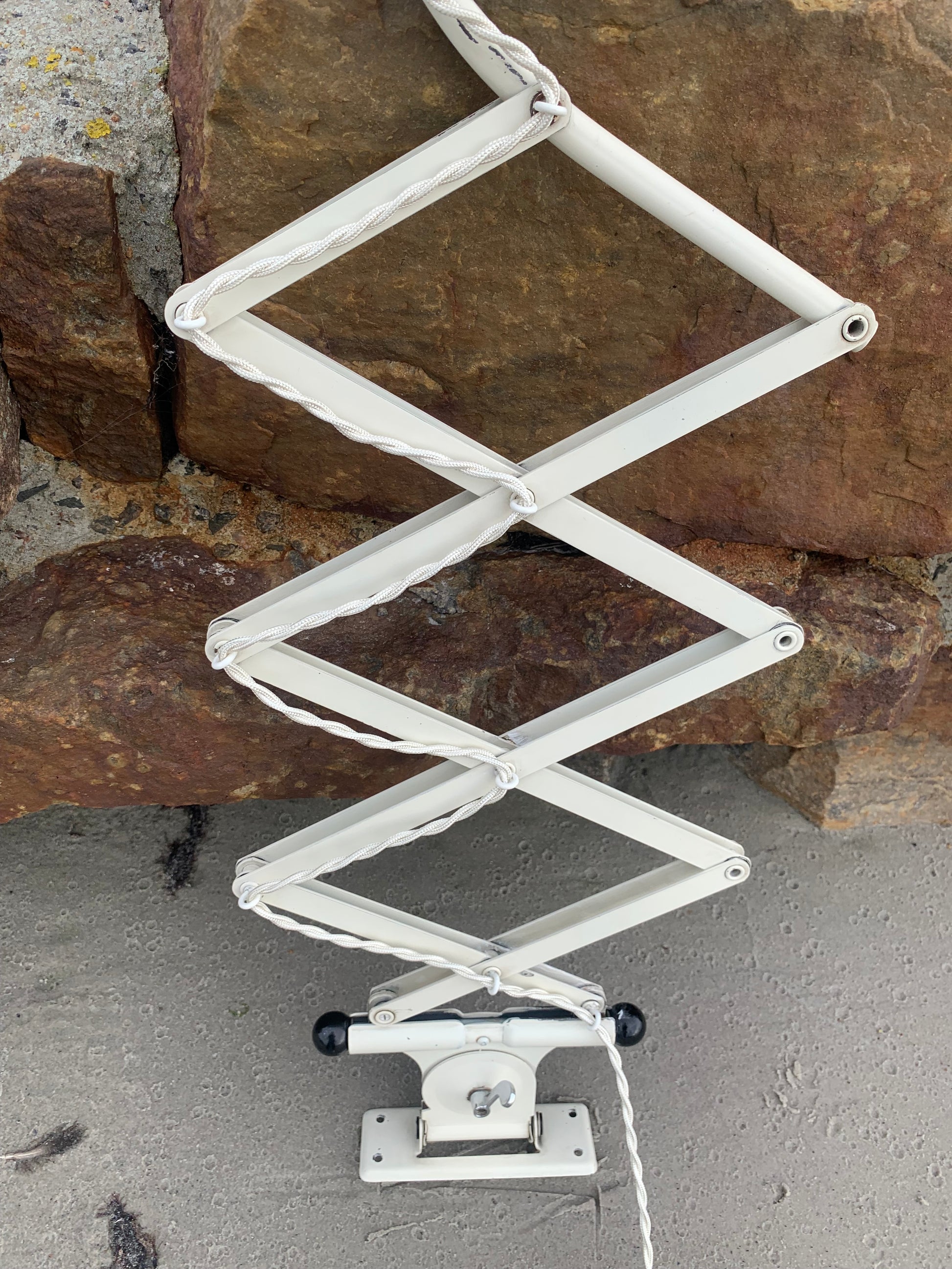 Dieses Exemplar verfügt über den Originallack und neue Kabel. Die Lampe weist altersbedingte Gebrauchsspuren auf, die eine solche Lampe (unserer Meinung nach) haben sollte.