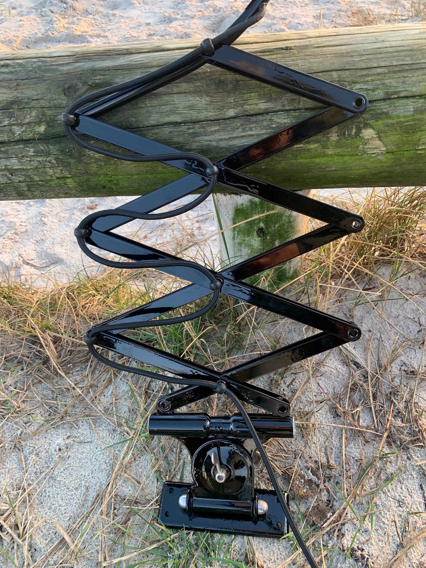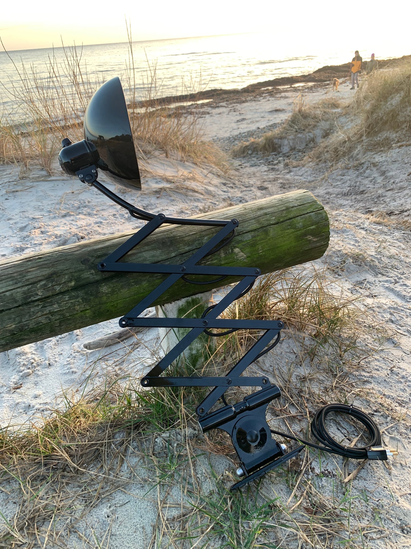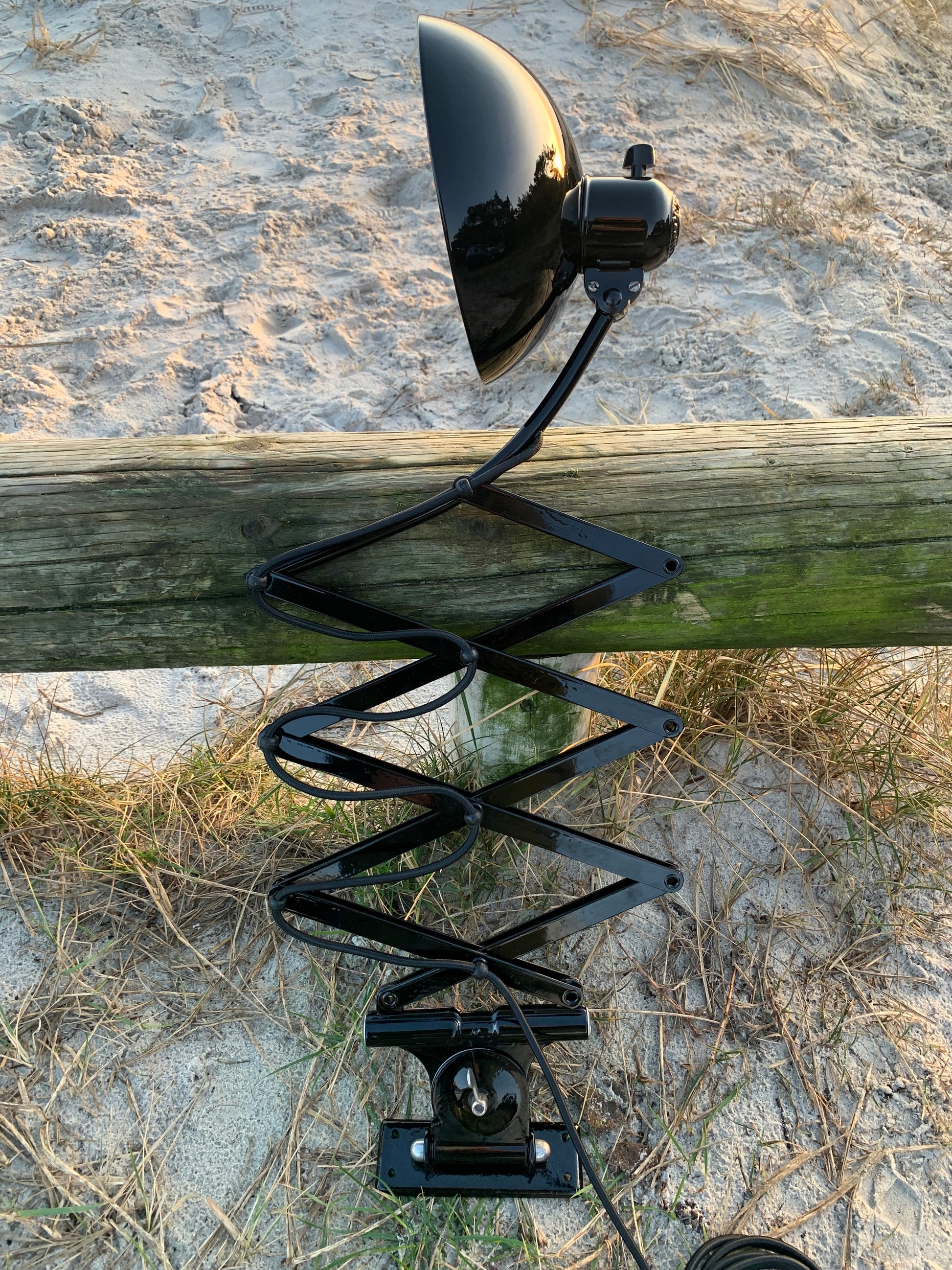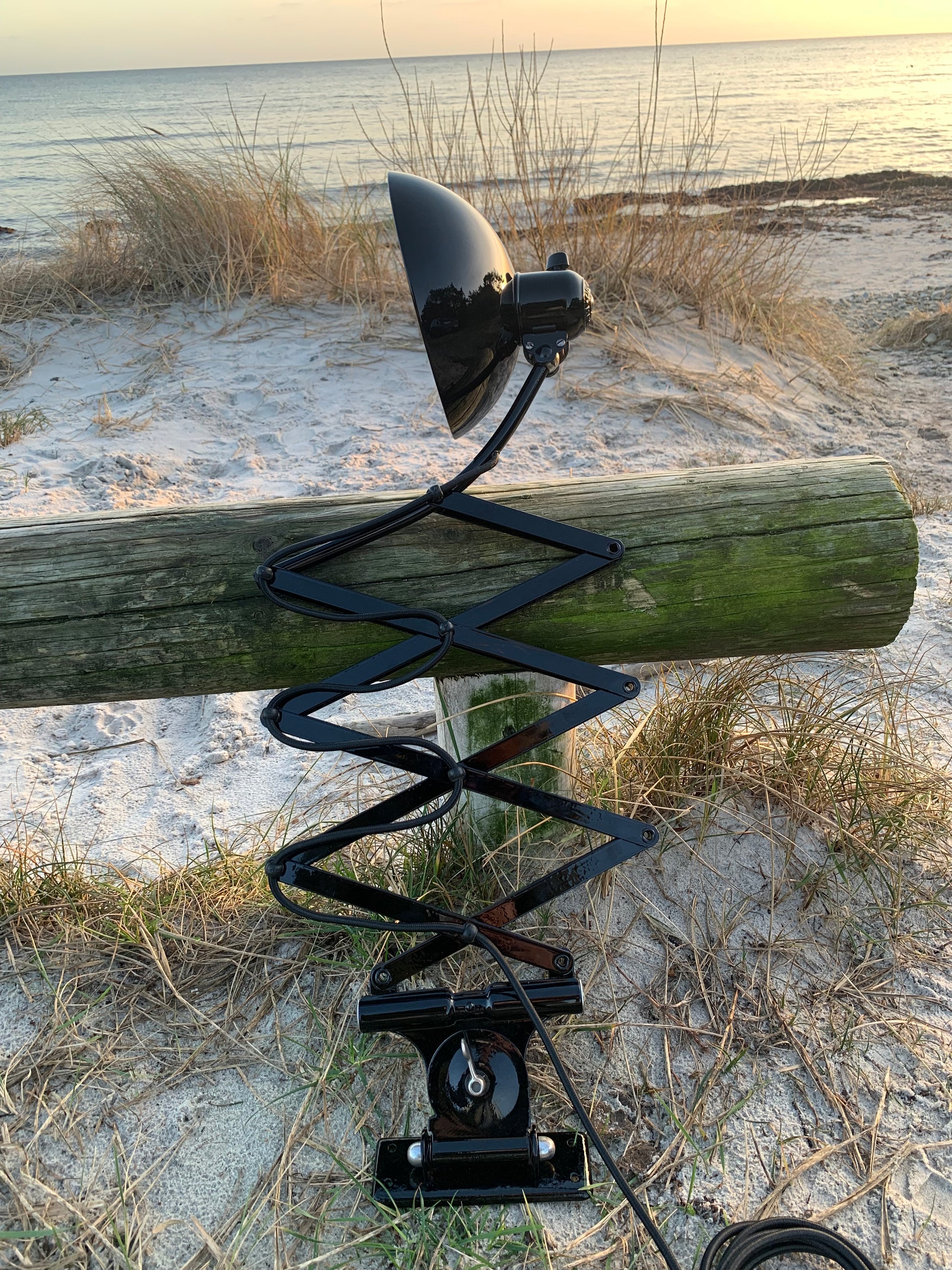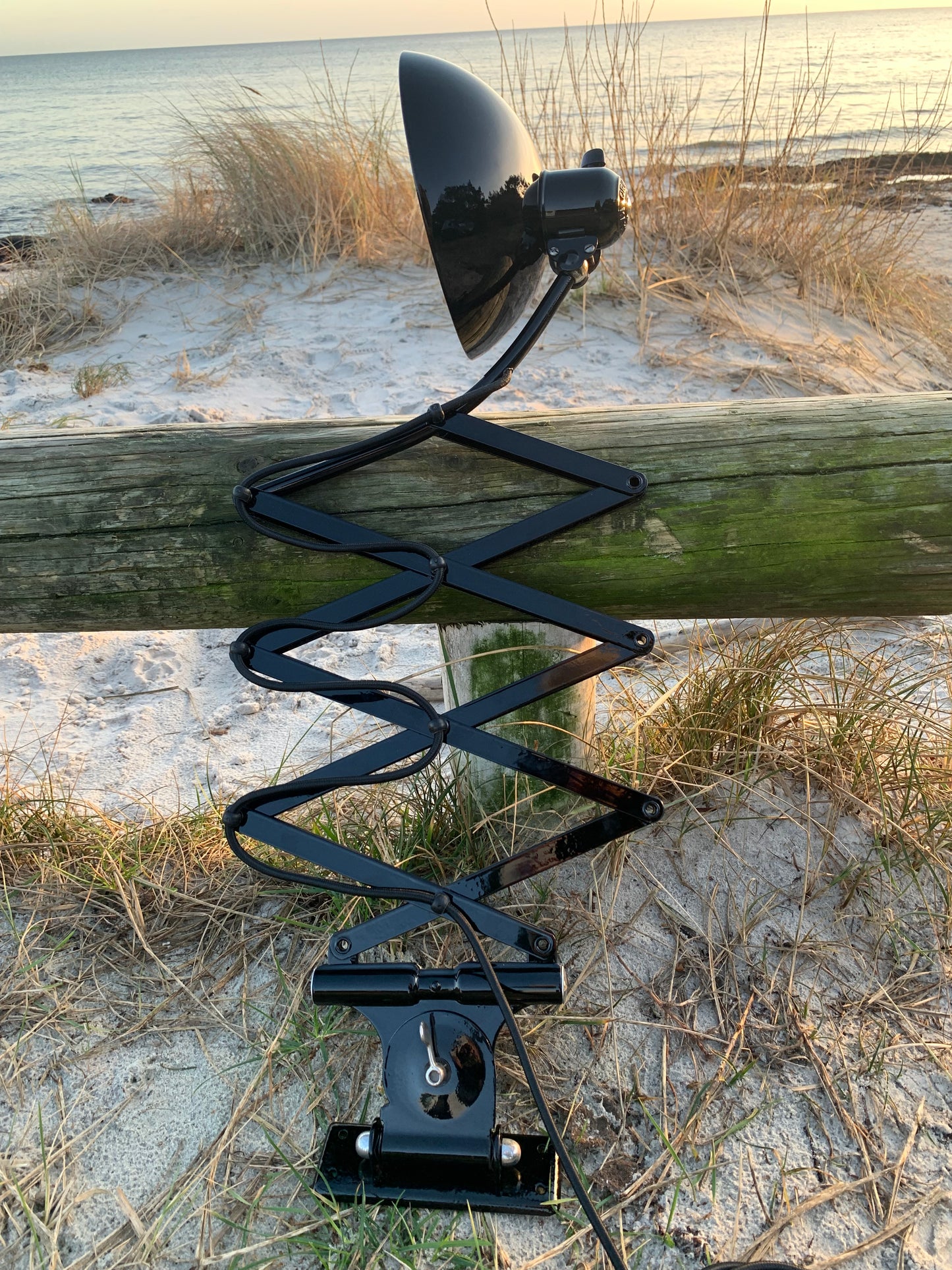 Schöne Scherenlampe, entworfen von Christian Dell ... für diejenigen unter Ihnen, die ein gutes und klassisches Design lieben, das lange hält. Die Leuchte erscheint neu verkabelt und neu lackiert.
