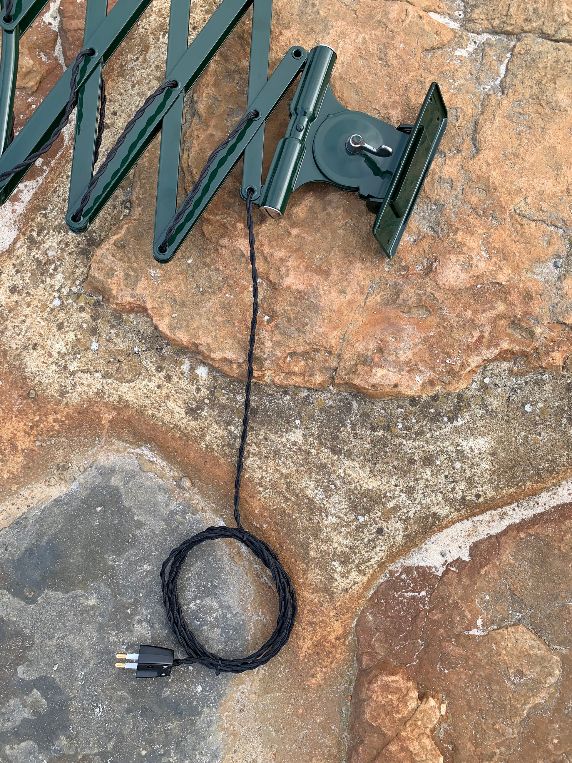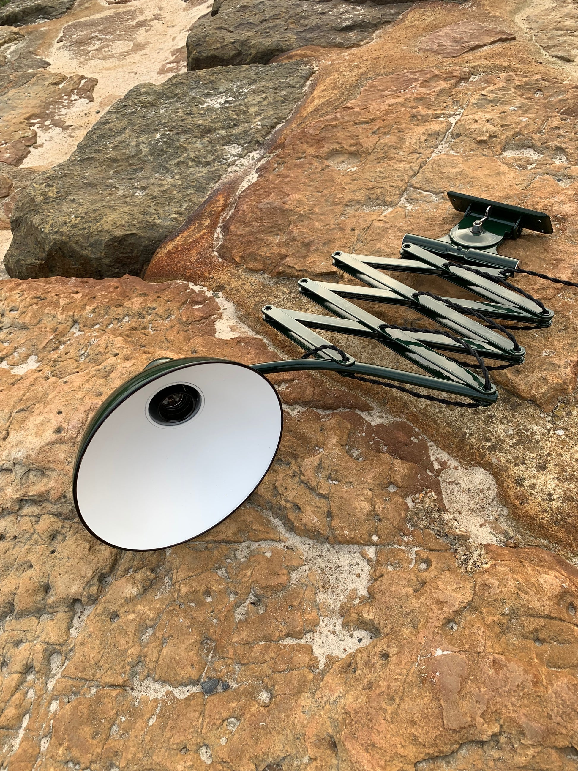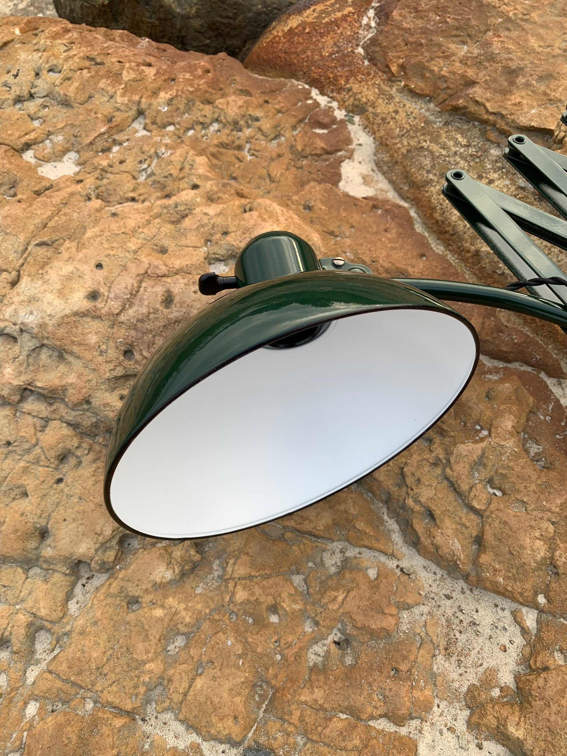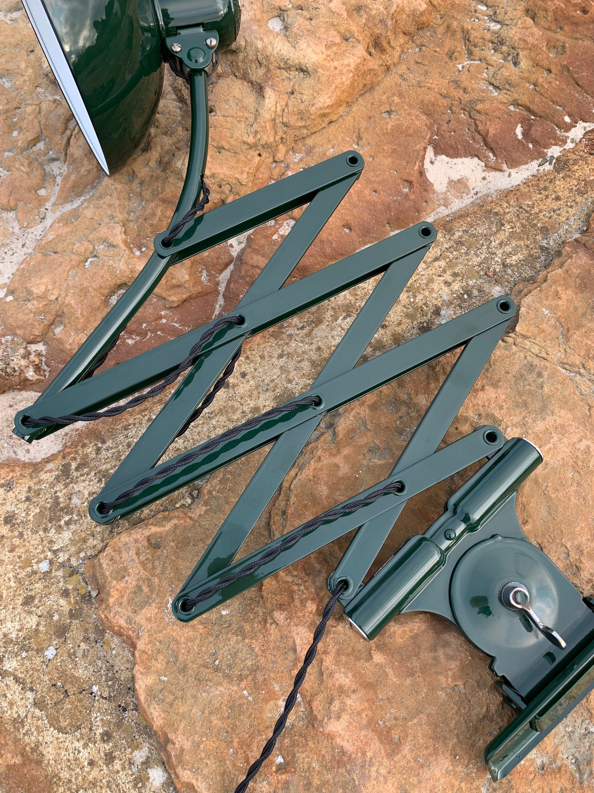 Dieses Exemplar wurde sorgfältig restauriert und erscheint neu lackiert und neu verkabelt. Trotz der Restaurierung hat die Vintage-Lampe ihren Charme bewahrt. Man erkennt immer noch, dass die Lampe einige charmante Gebrauchsspuren aufweist, die eine solche Lampe (unserer Meinung nach) fast haben sollte.