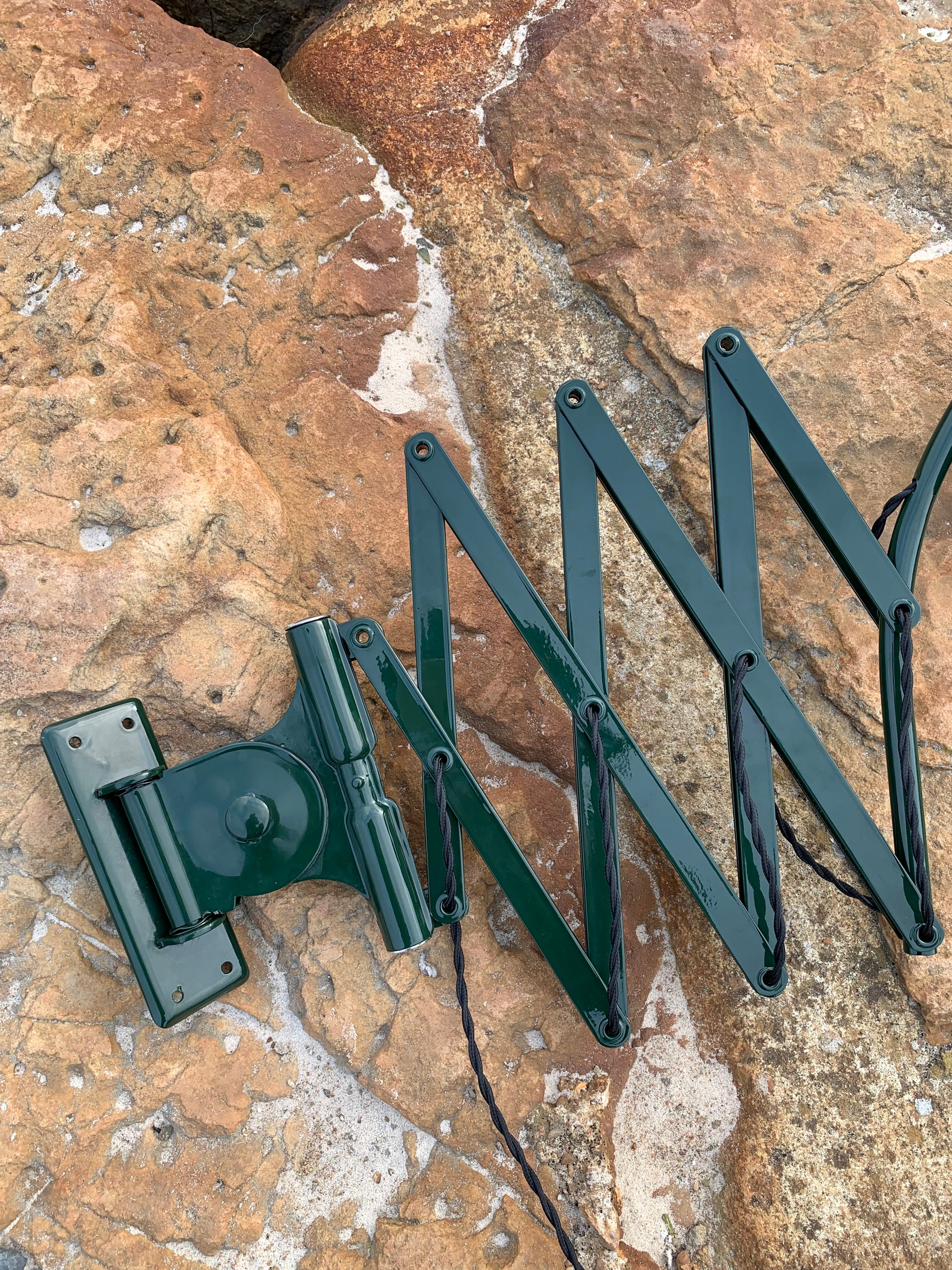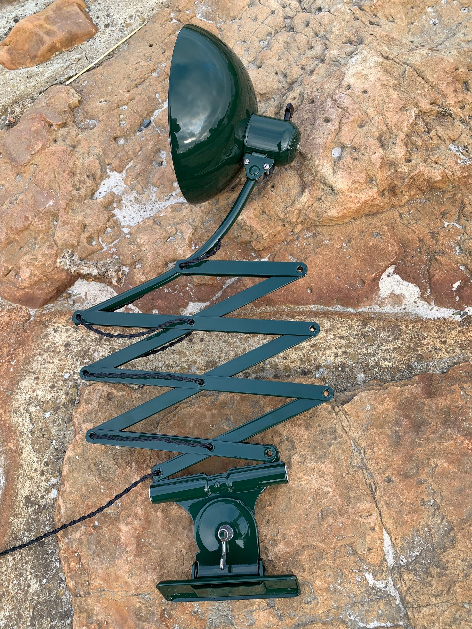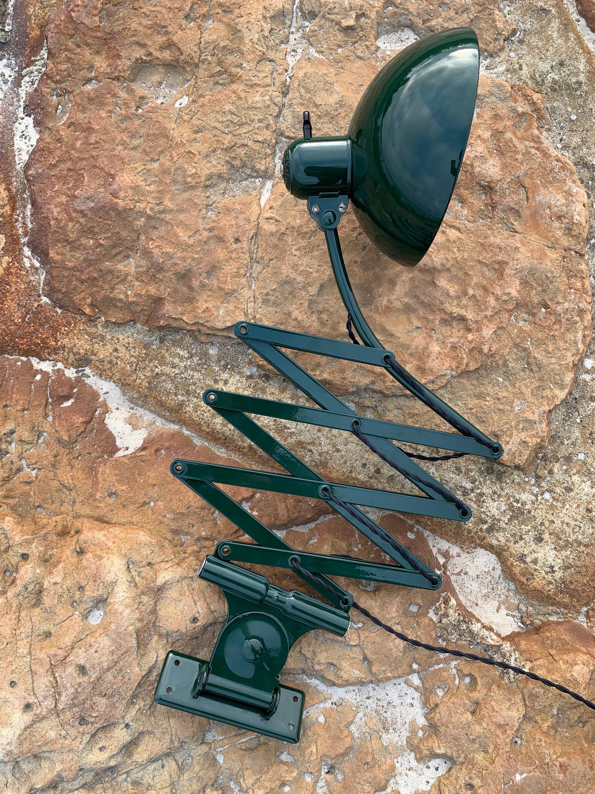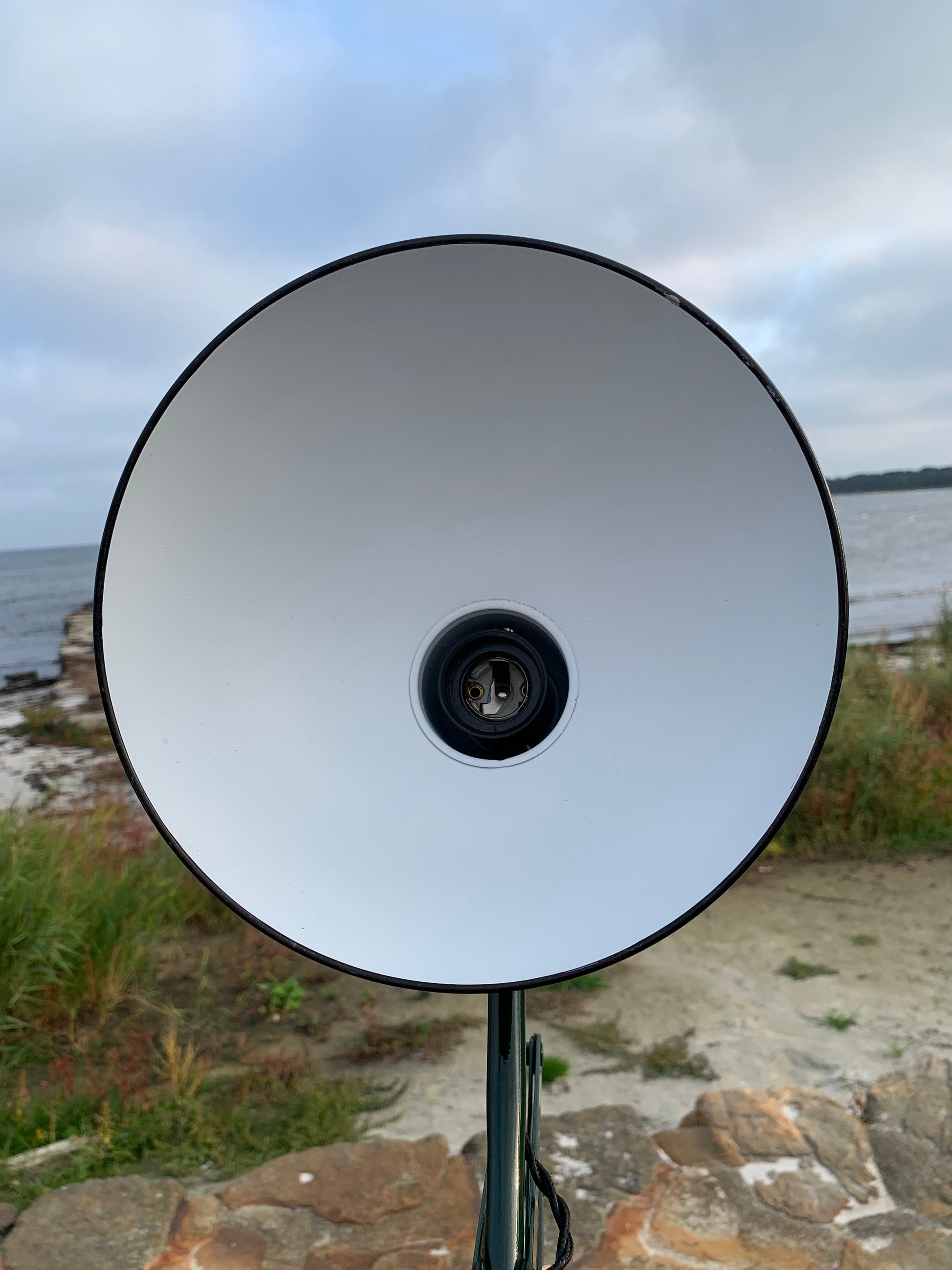 Dieses Exemplar wurde sorgfältig restauriert und erscheint neu lackiert und neu verkabelt. Trotz der Restaurierung hat die Vintage-Lampe ihren Charme bewahrt. Man erkennt immer noch, dass die Lampe einige charmante Gebrauchsspuren aufweist, die eine solche Lampe (unserer Meinung nach) fast haben sollte.