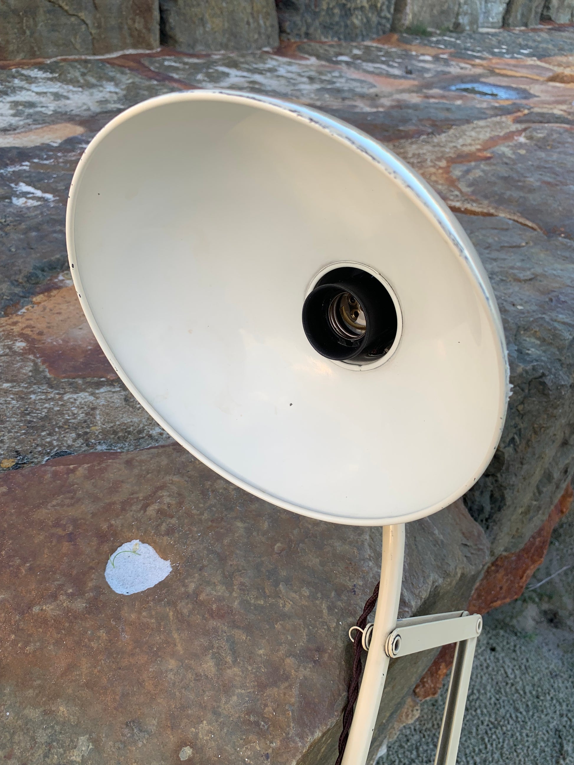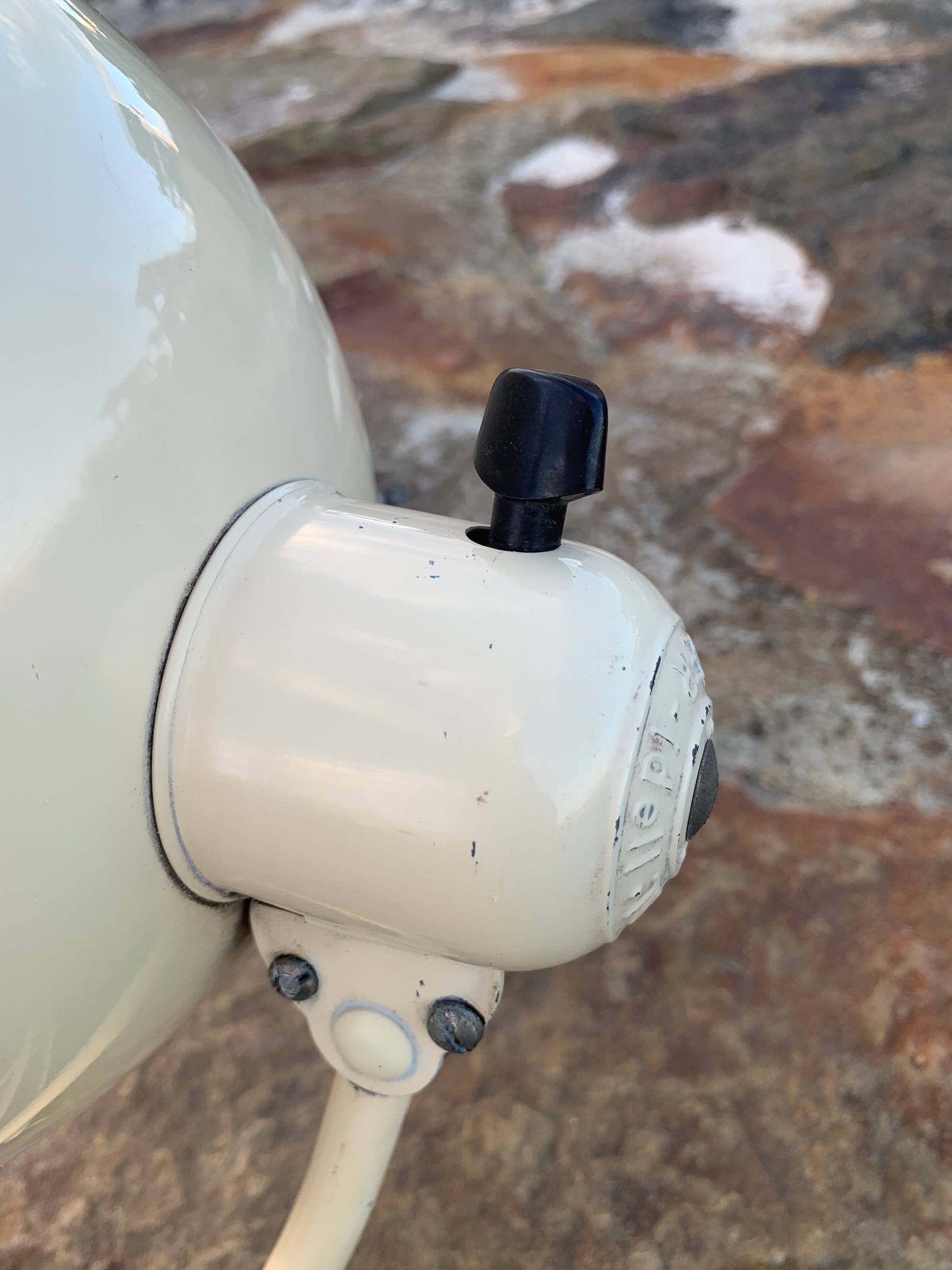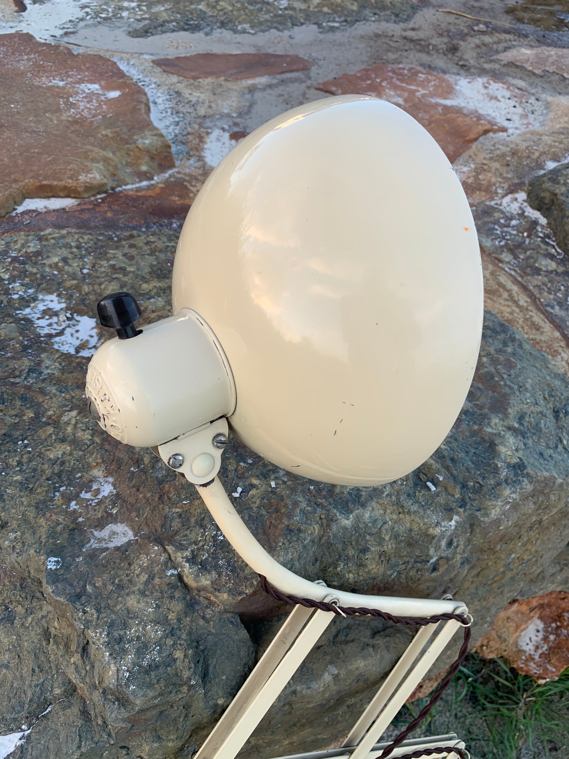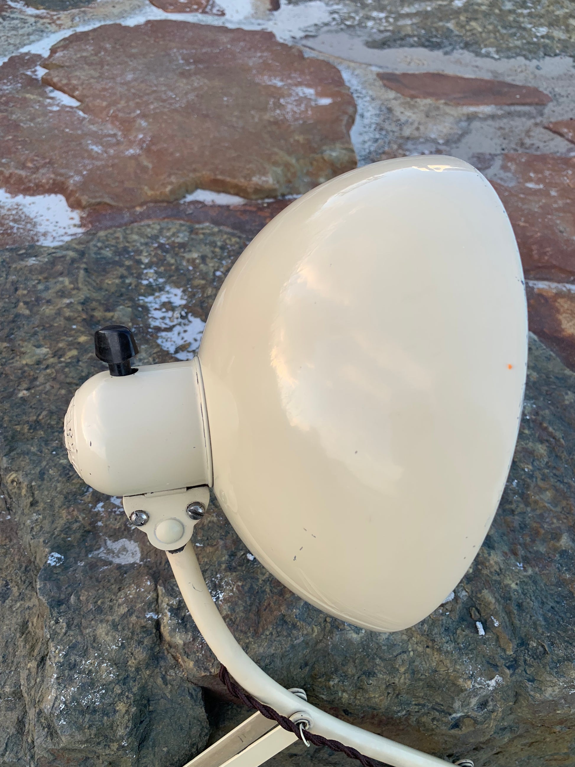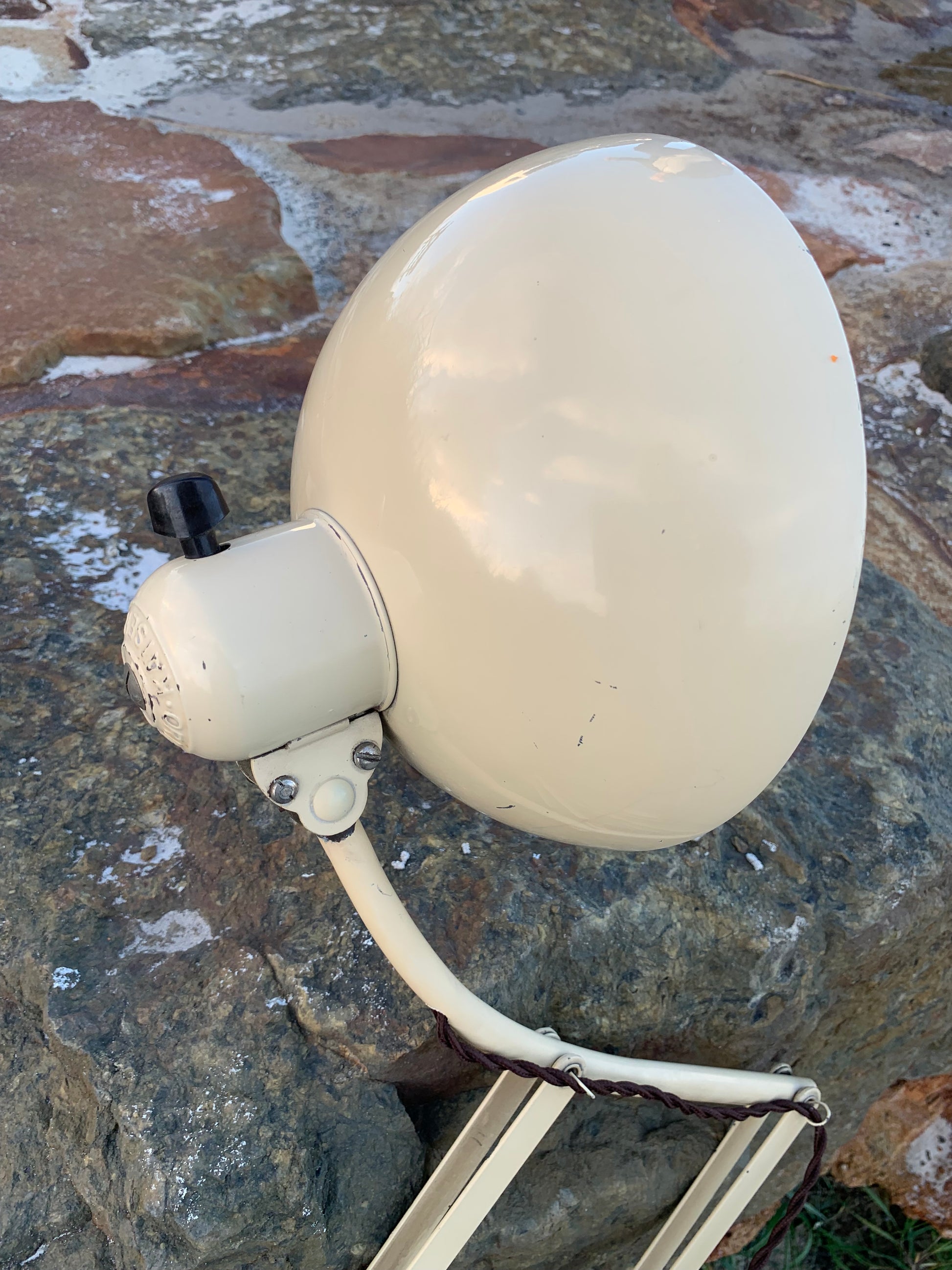 Dieses Exemplar erscheint mit der Originallackierung und neuen Kabeln. Die Lampe weist altersbedingte Gebrauchsspuren auf, die eine solche Lampe (unserer Meinung nach) fast haben müsste.