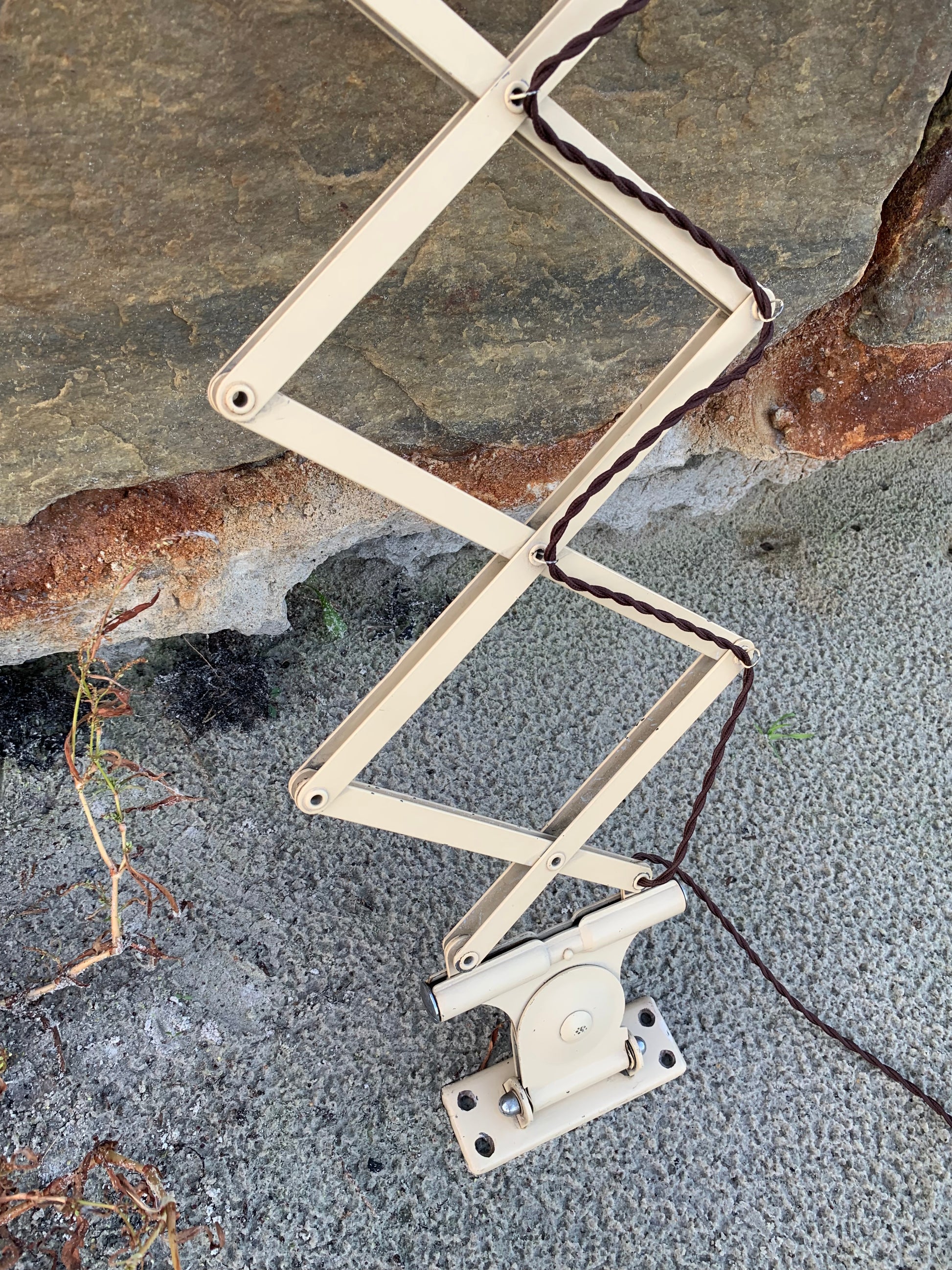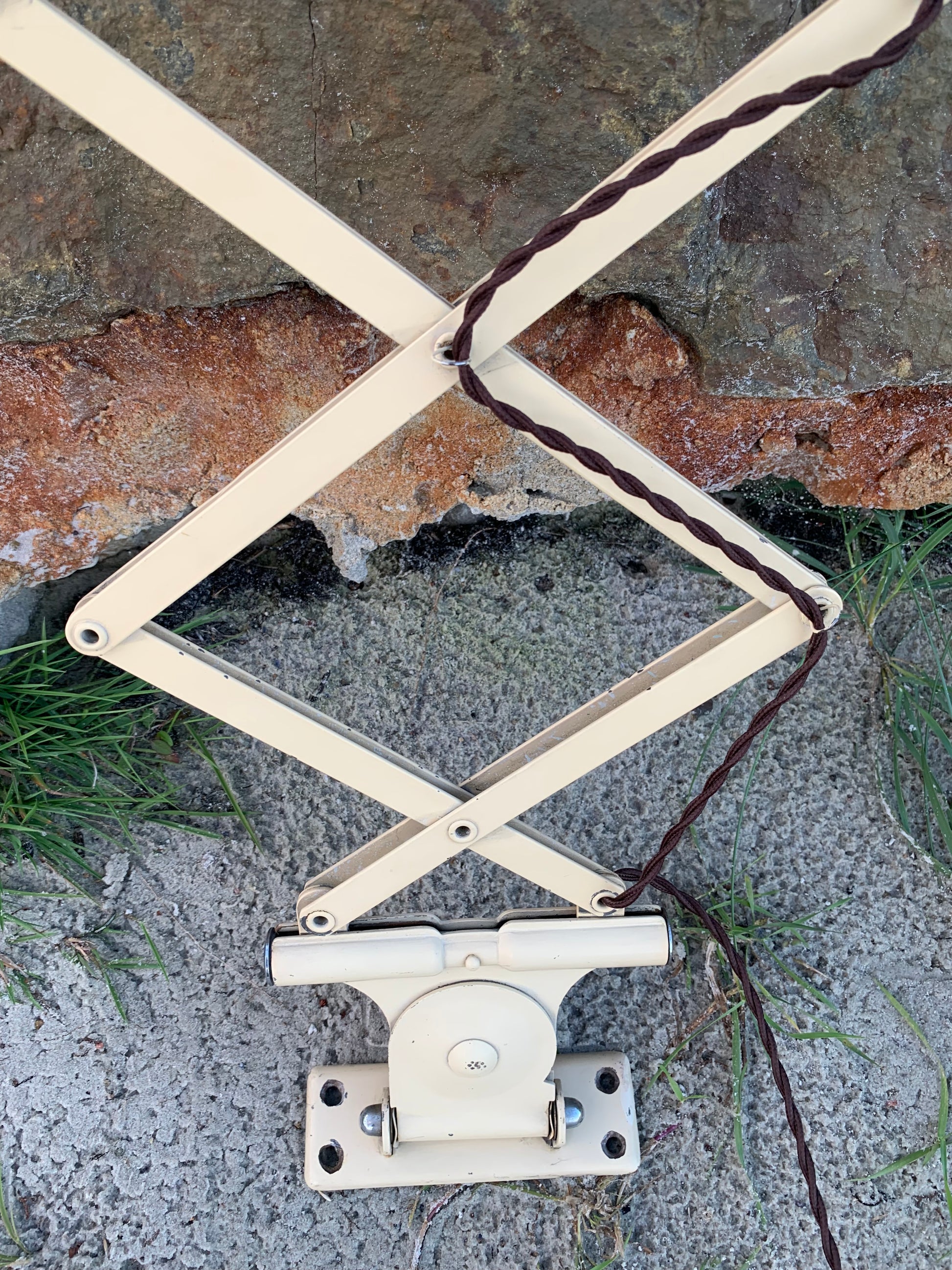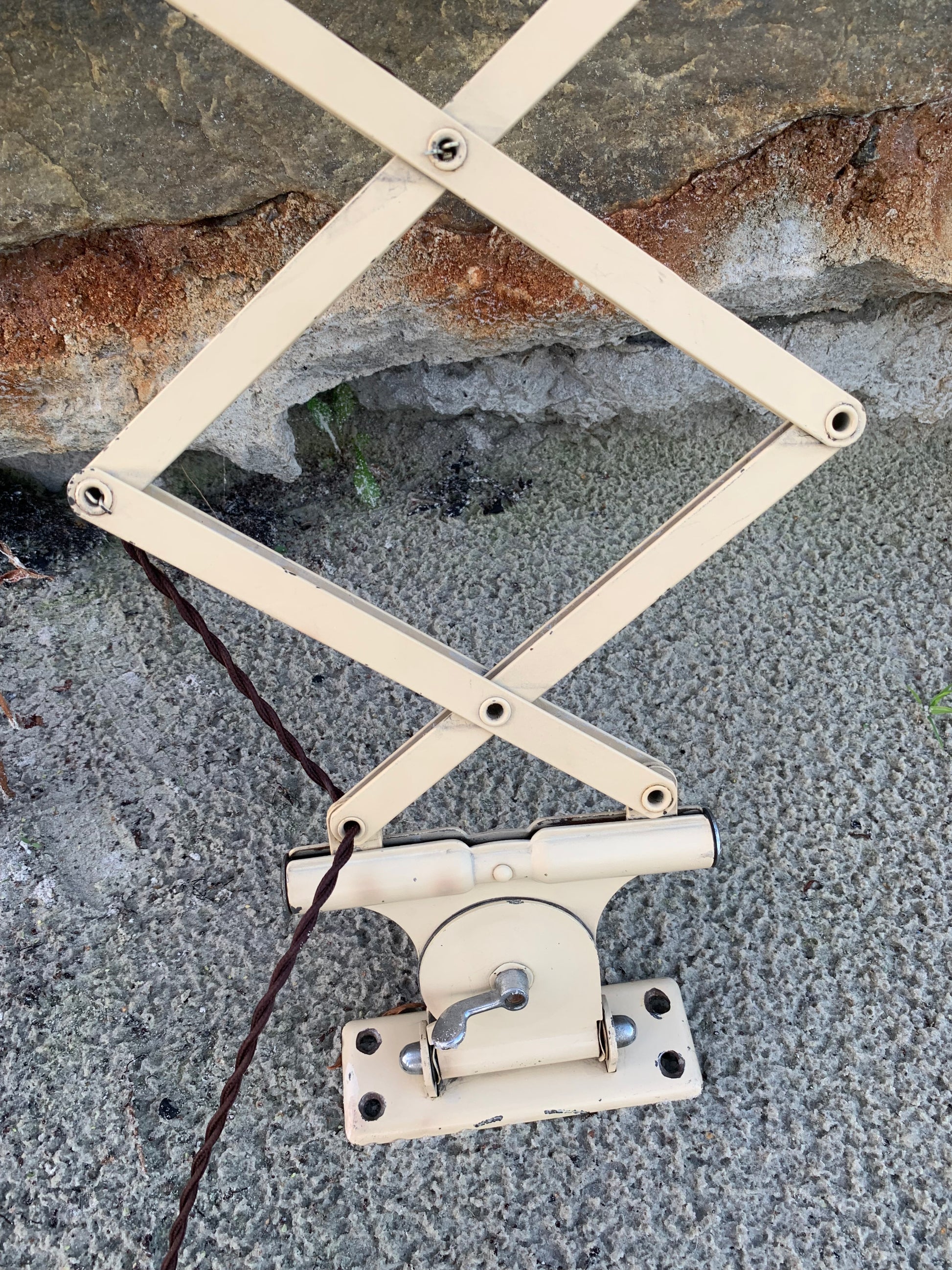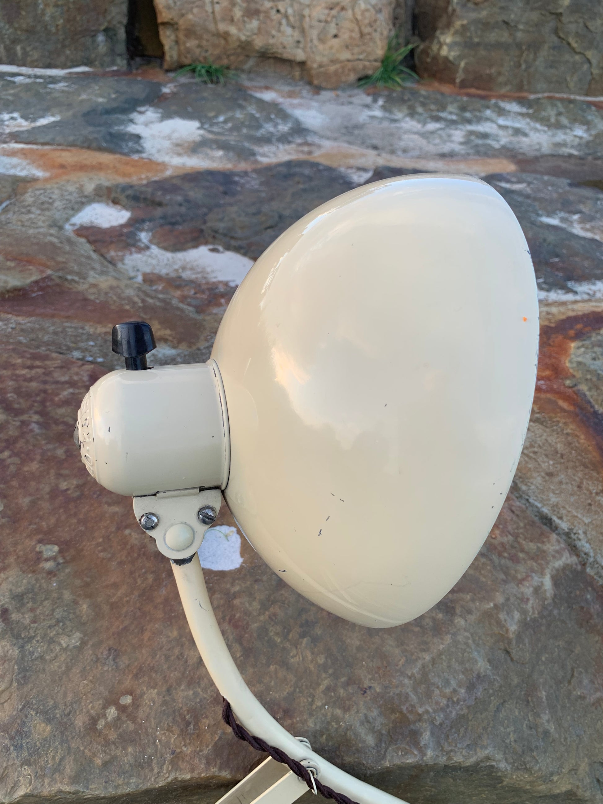 Dieses Exemplar erscheint mit der Originallackierung und neuen Kabeln. Die Lampe weist altersbedingte Gebrauchsspuren auf, die eine solche Lampe (unserer Meinung nach) fast haben müsste.