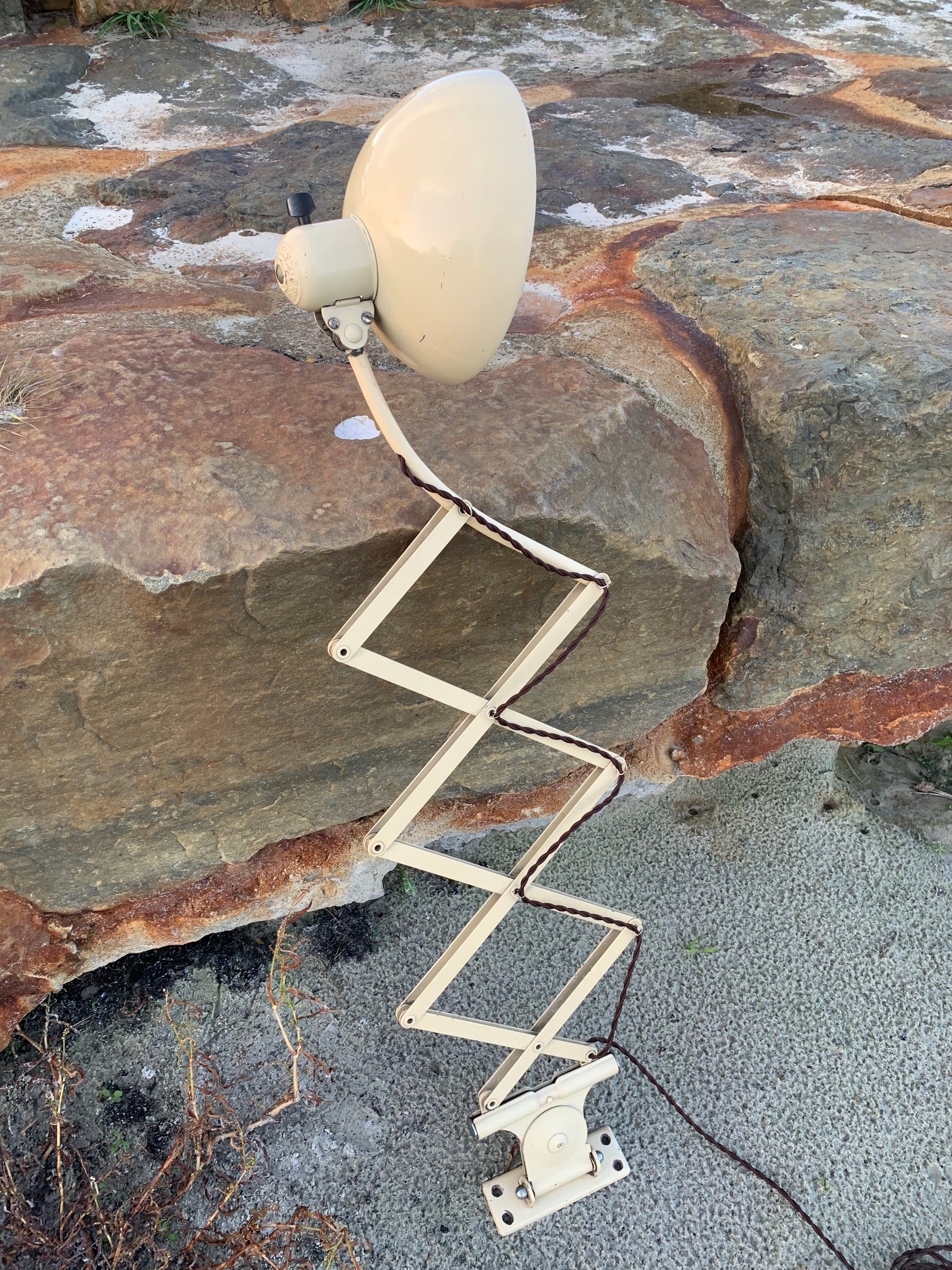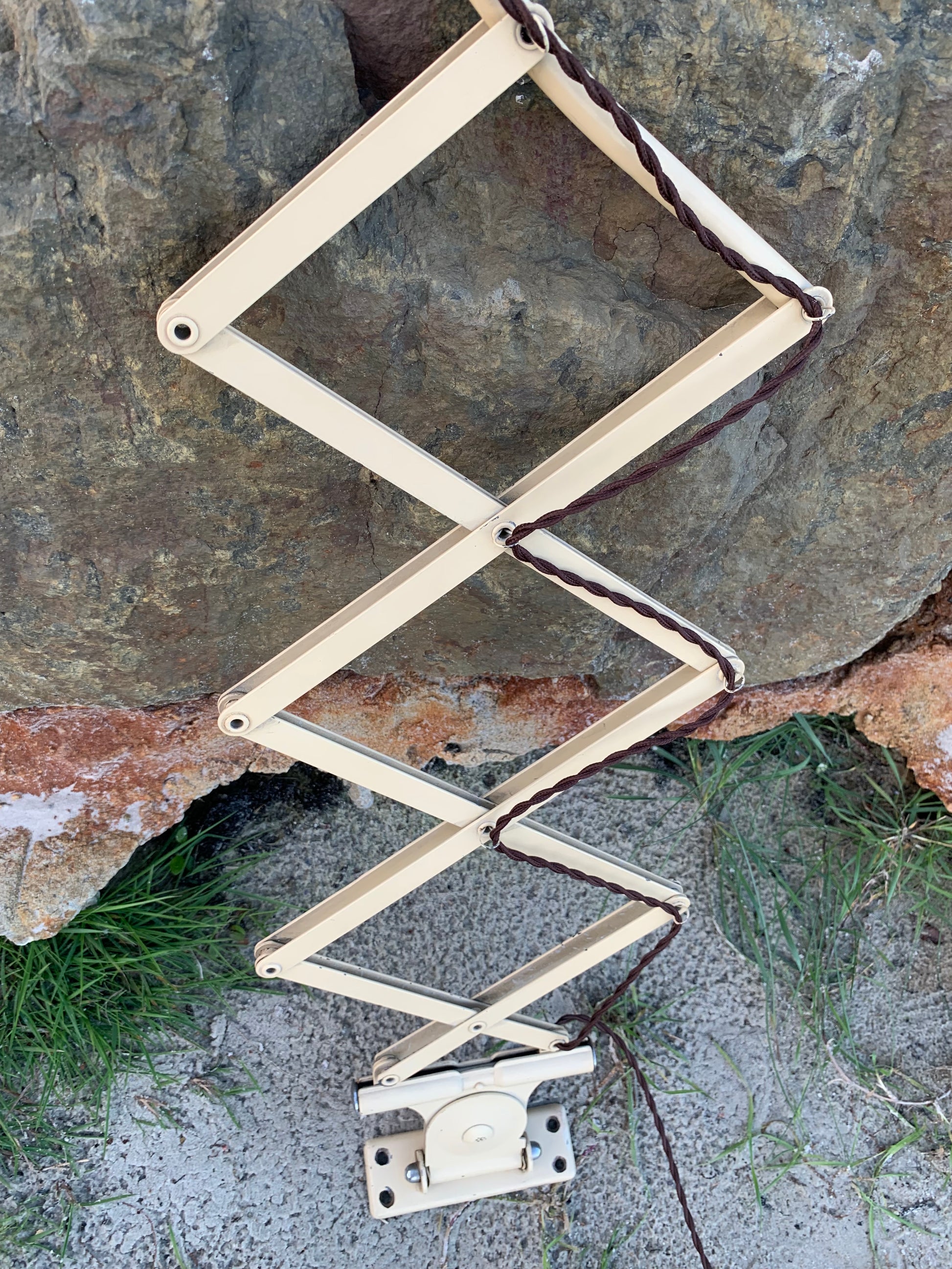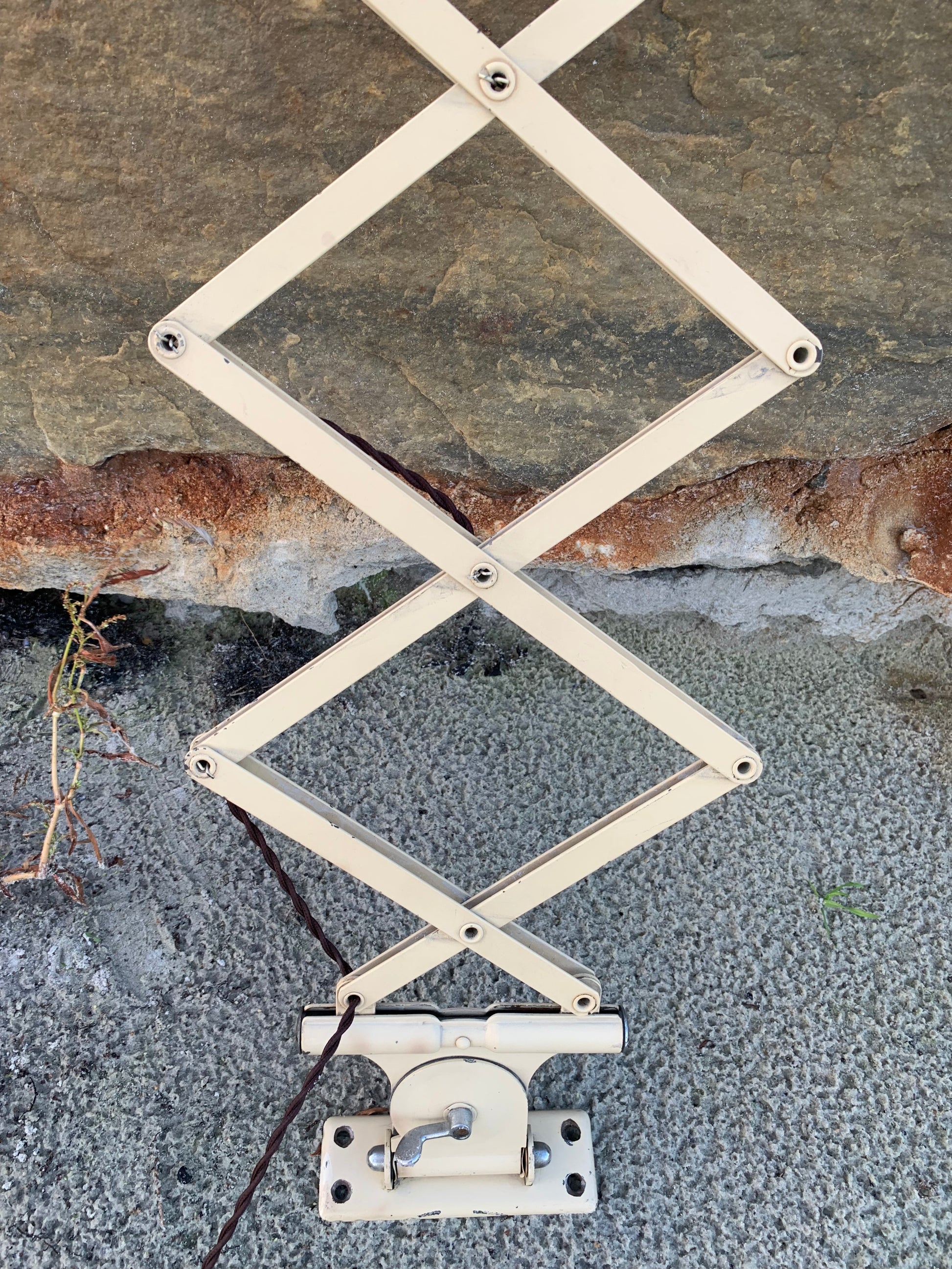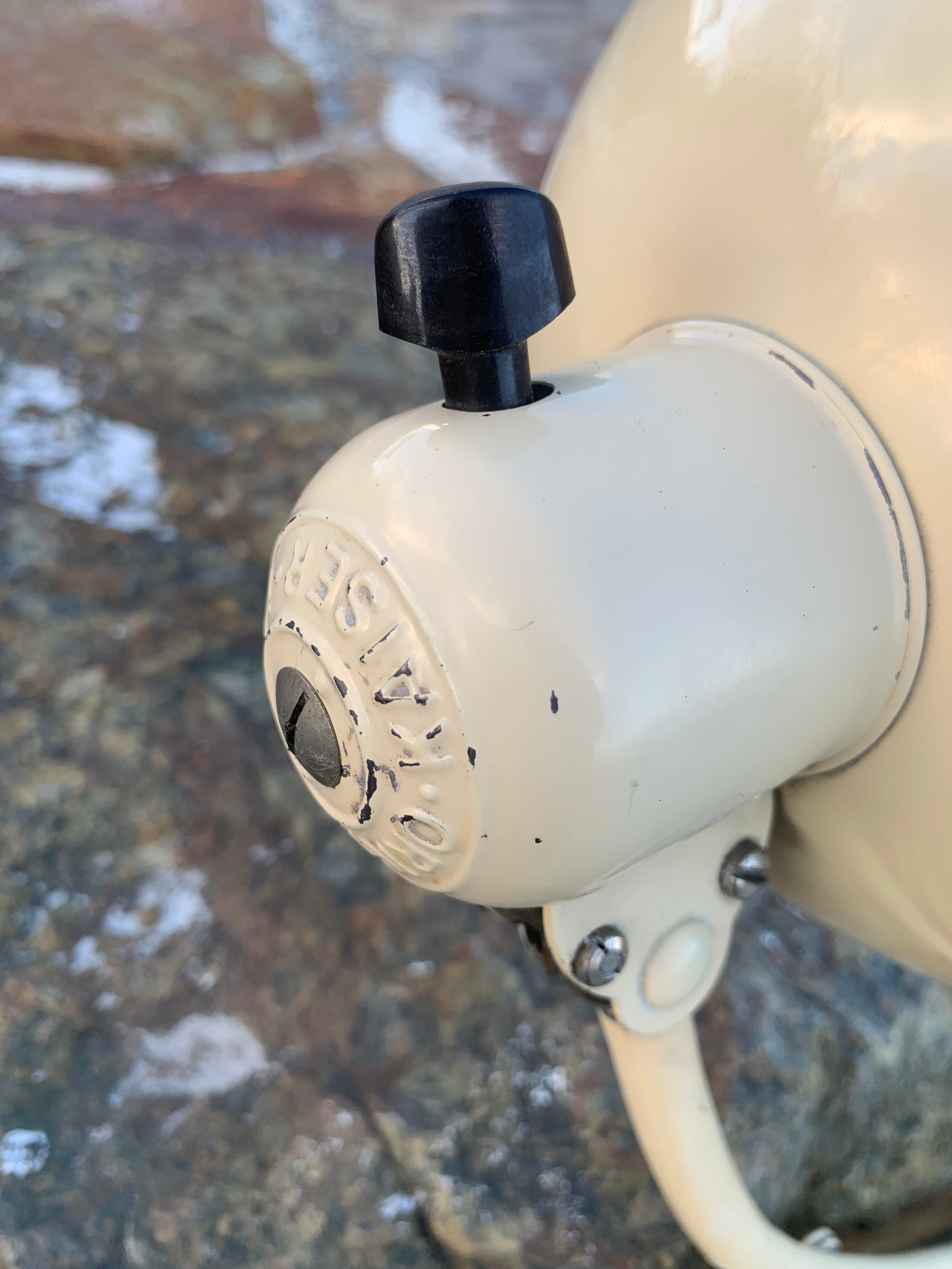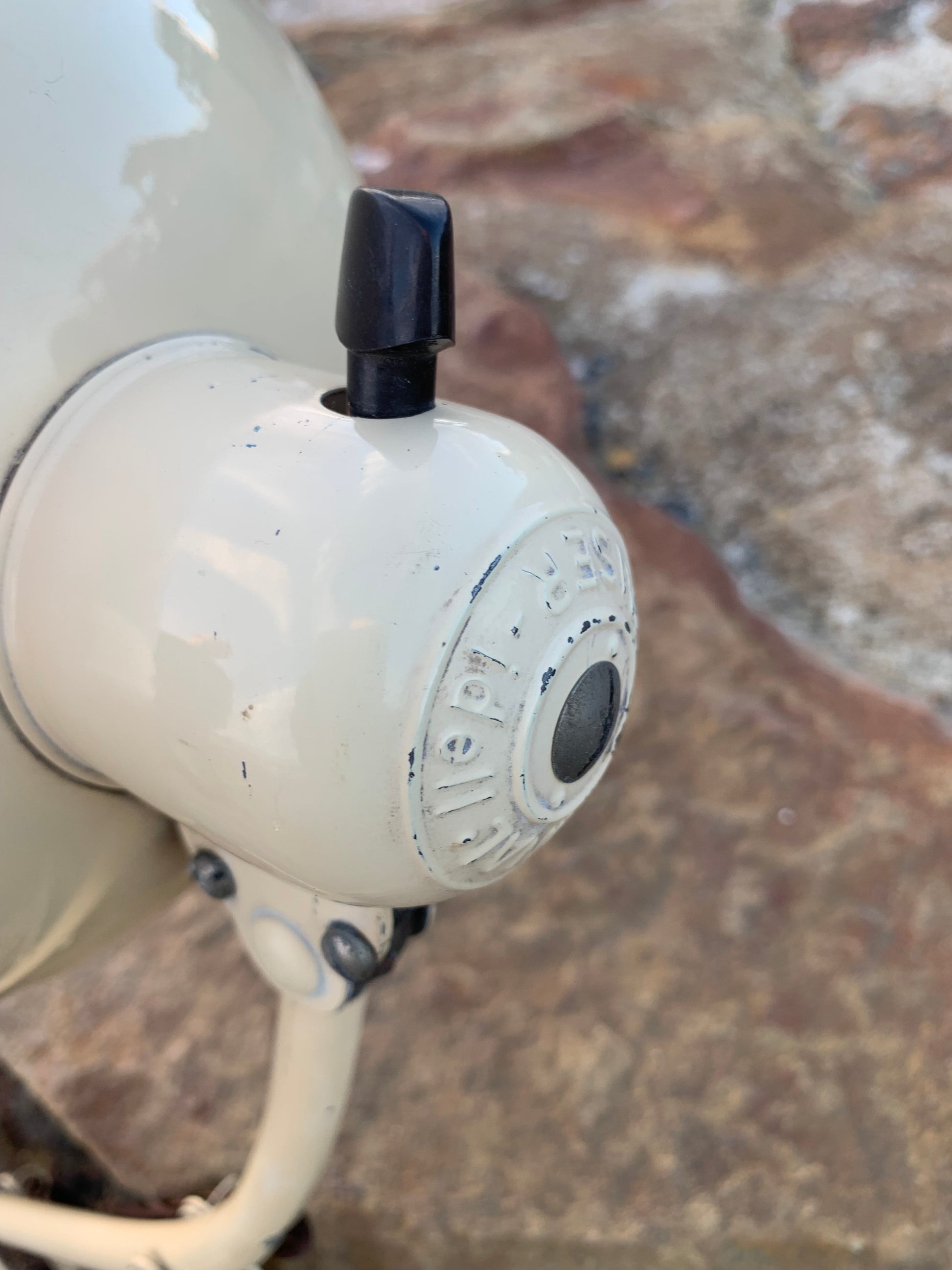 Dieses Exemplar erscheint mit der Originallackierung und neuen Kabeln. Die Lampe weist altersbedingte Gebrauchsspuren auf, die eine solche Lampe (unserer Meinung nach) fast haben müsste.