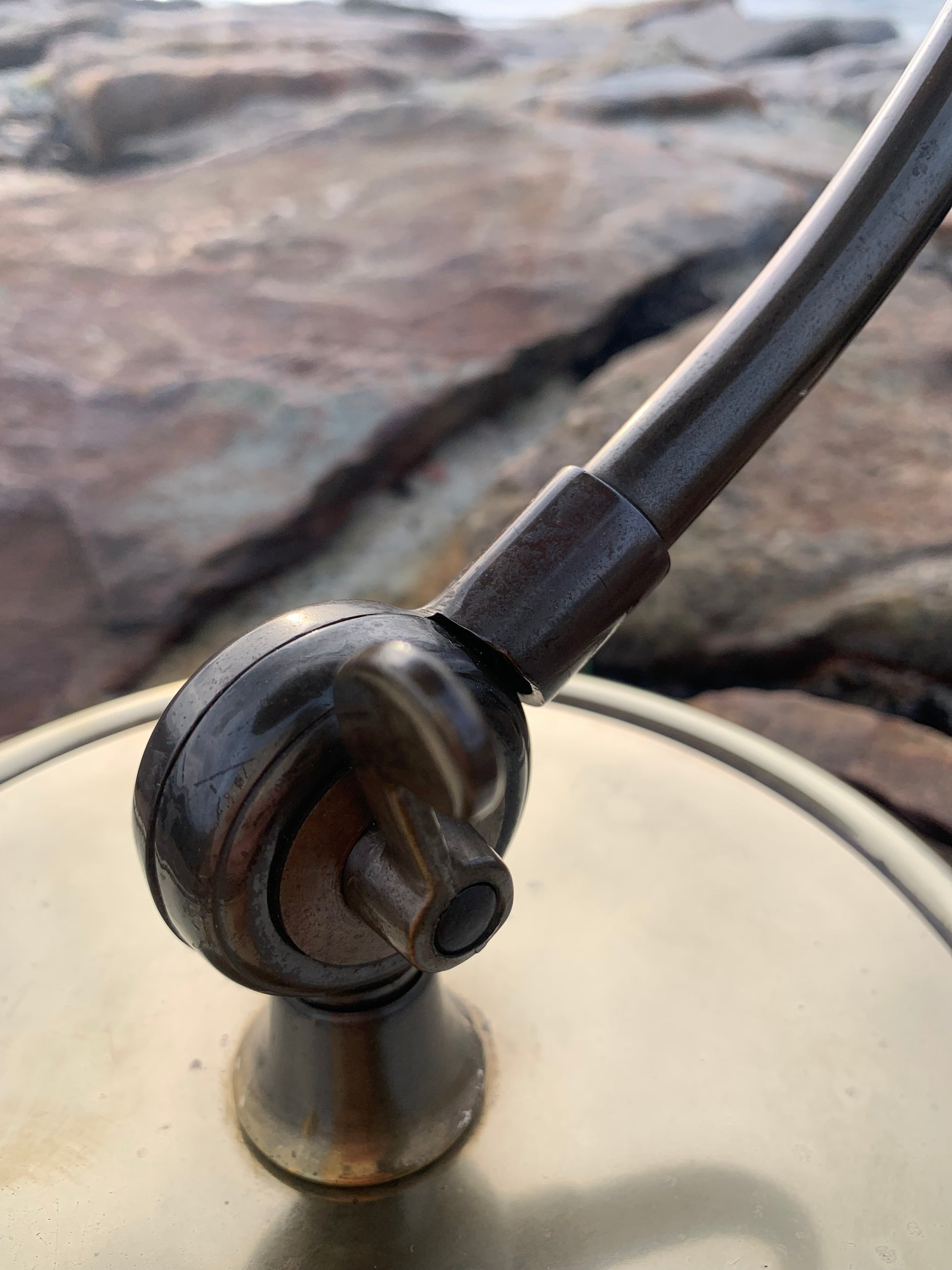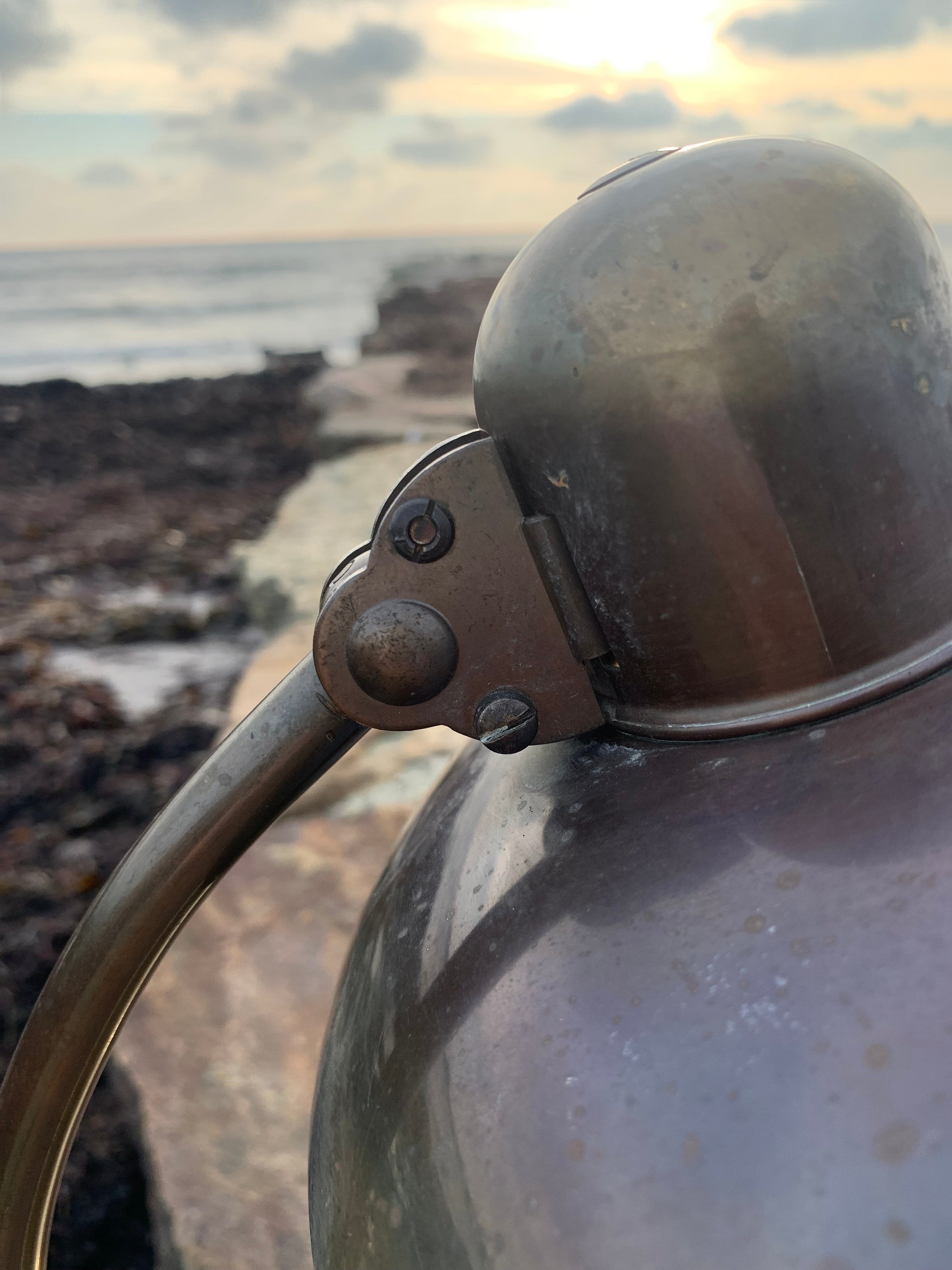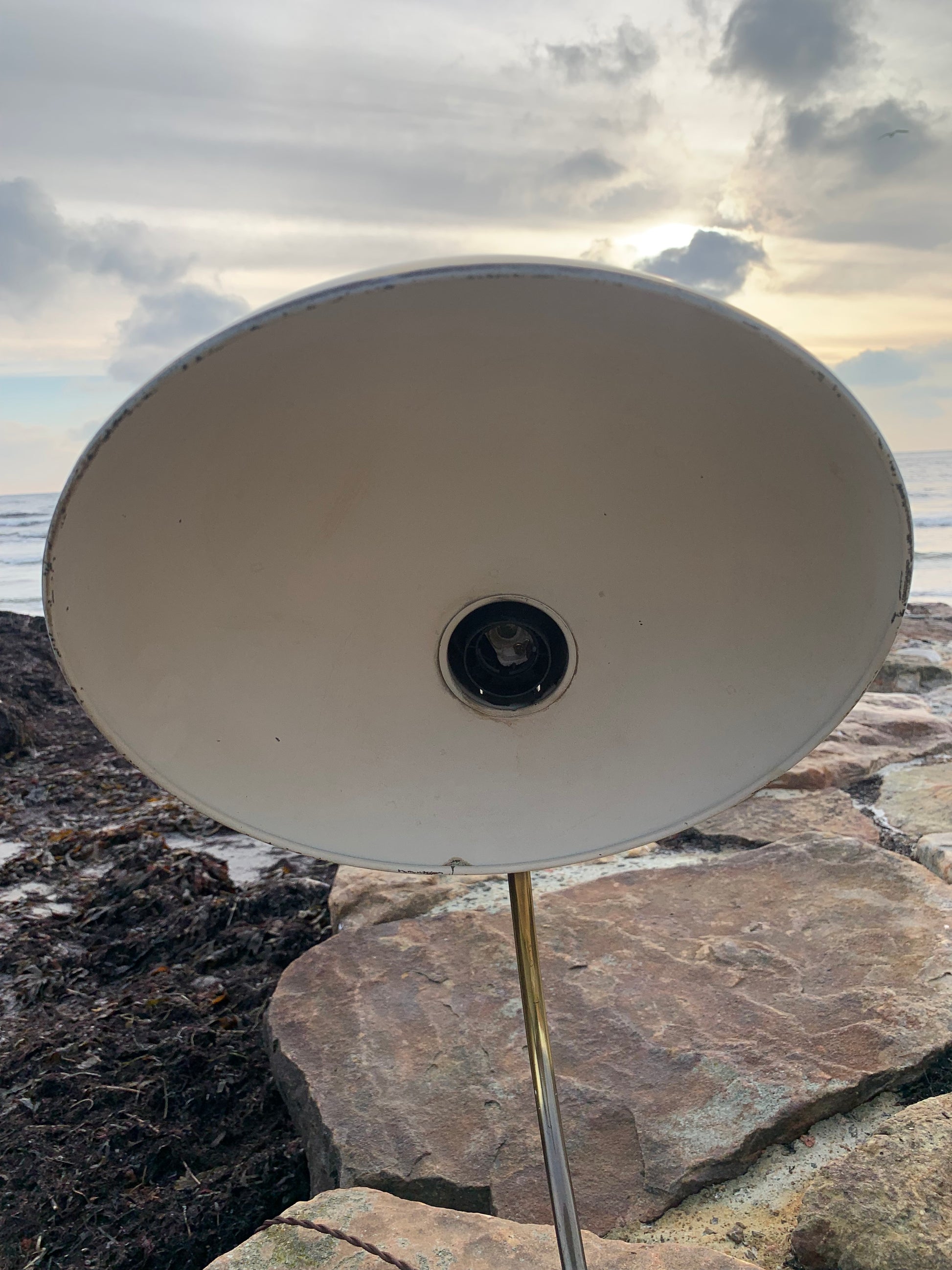 Dieses Exemplar wird mit neuen Kabeln geliefert. Die Lampe weist altersbedingte Gebrauchsspuren auf, wie es bei einer solchen Lampe (unserer Meinung nach) üblich ist, befindet sich aber insgesamt in einem schönen Vintage-Zustand.