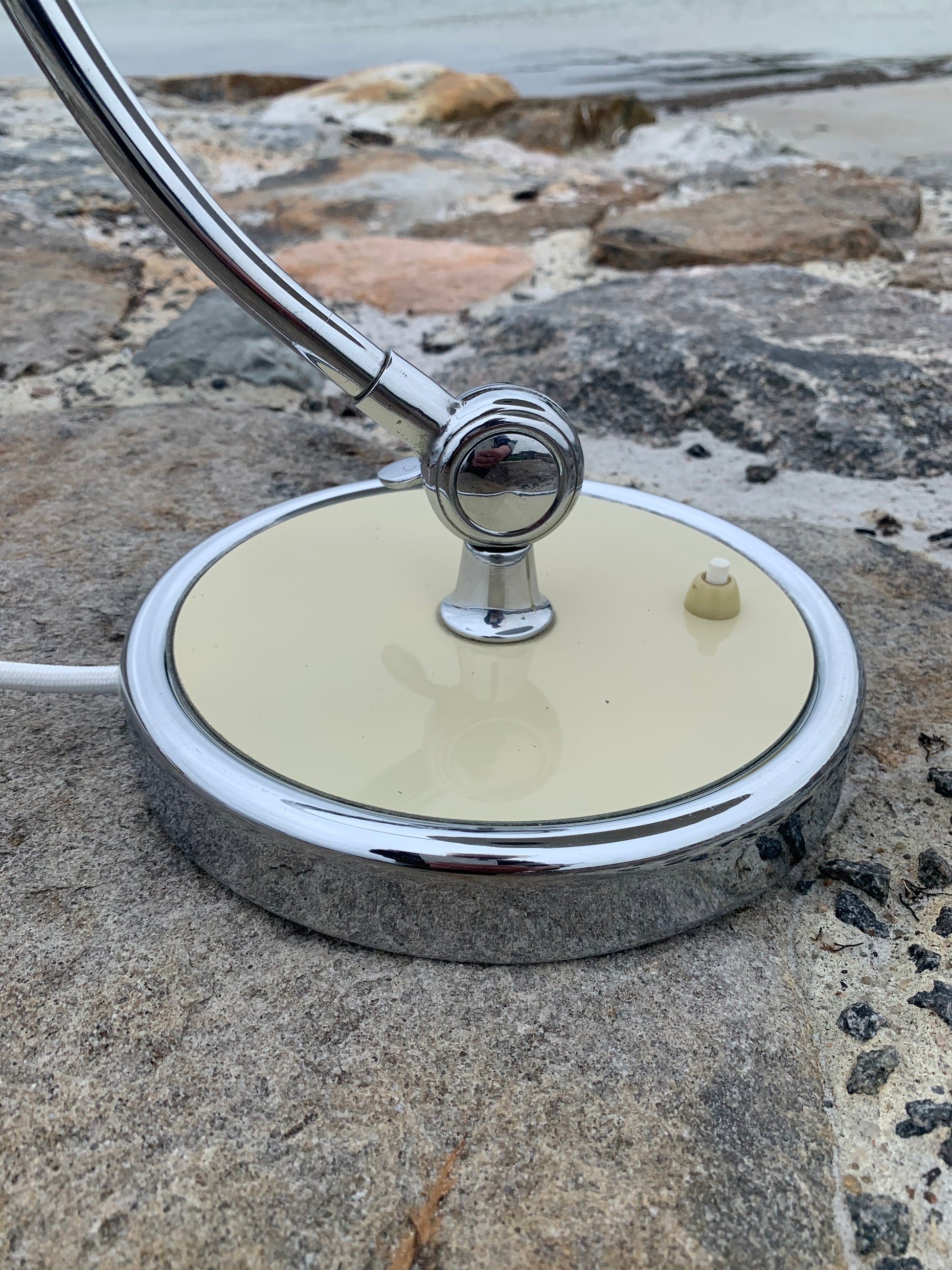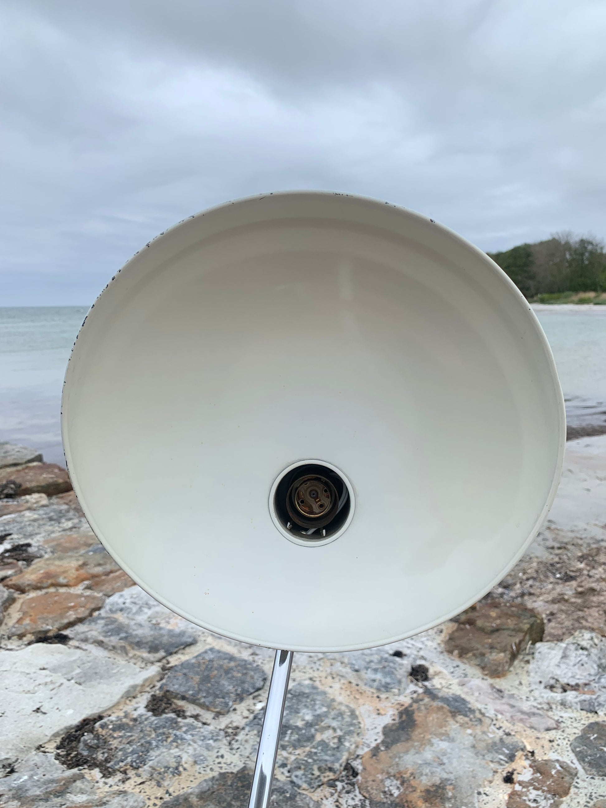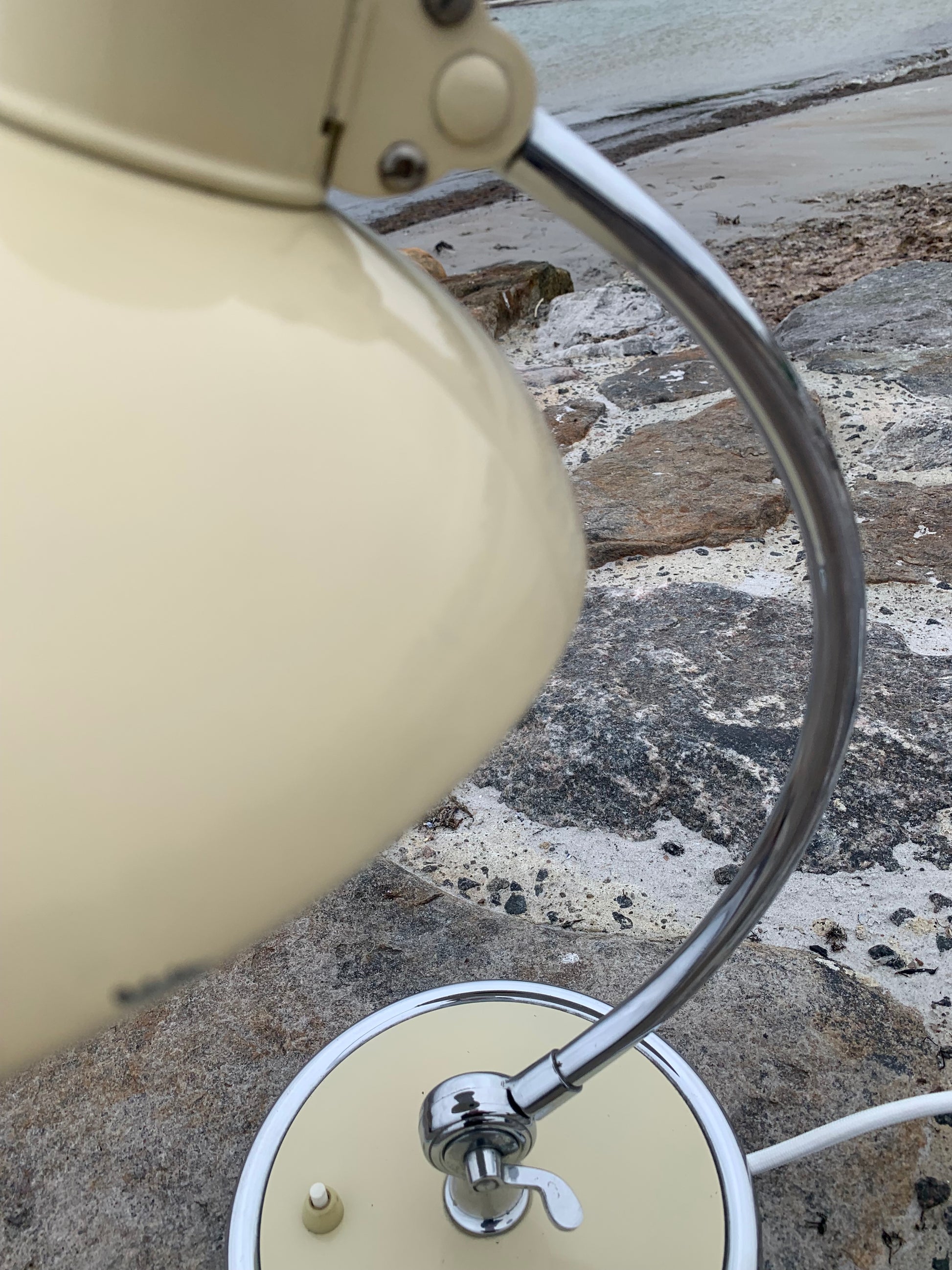Dieses Exemplar erscheint im Originallack und mit neuen Kabeln. Die Lampe weist einige altersbedingte Gebrauchsspuren auf, die eine solche Lampe (unserer Meinung nach) haben sollte, aber insgesamt ist sie in einem schönen Vintage-Zustand.