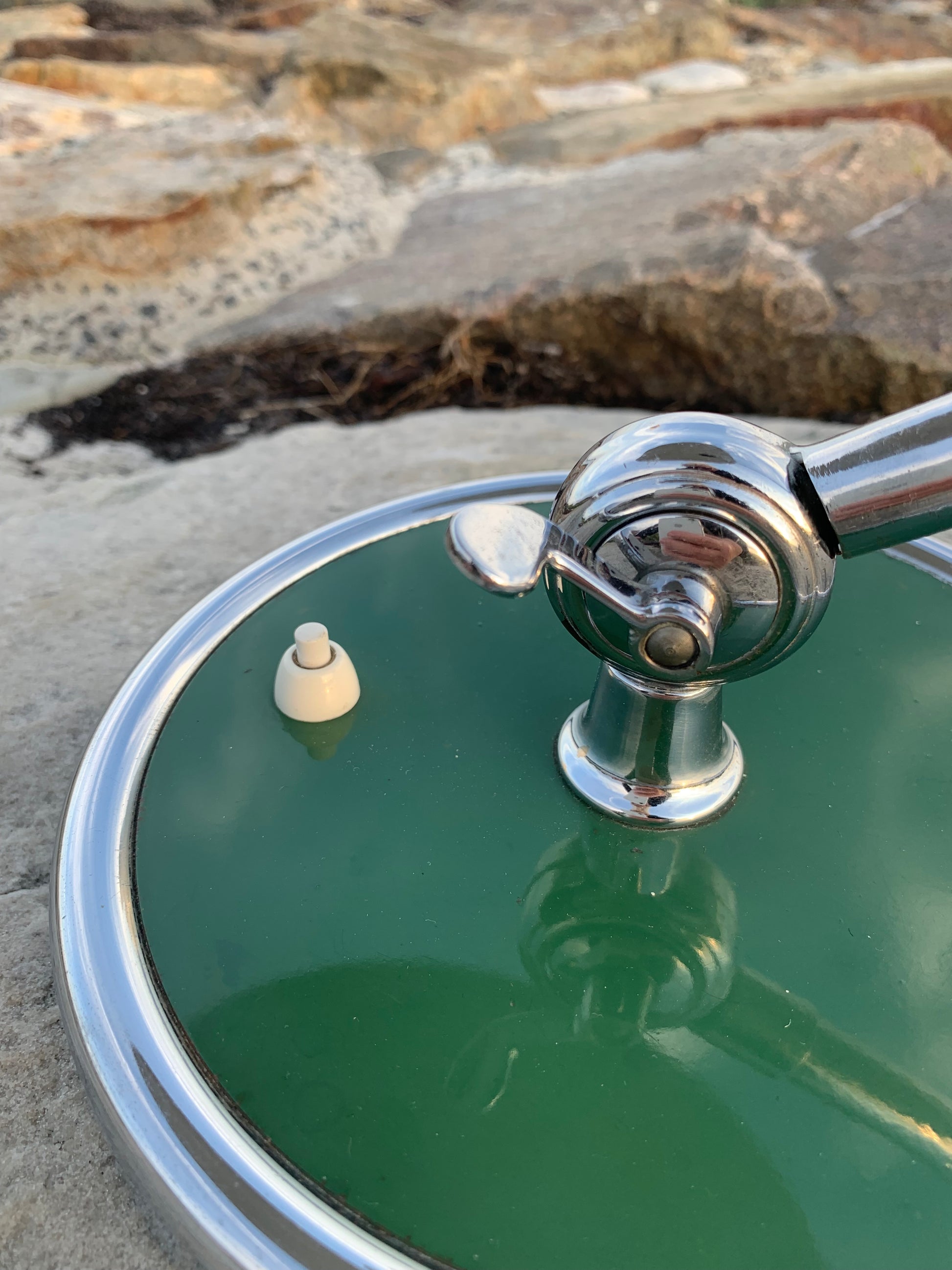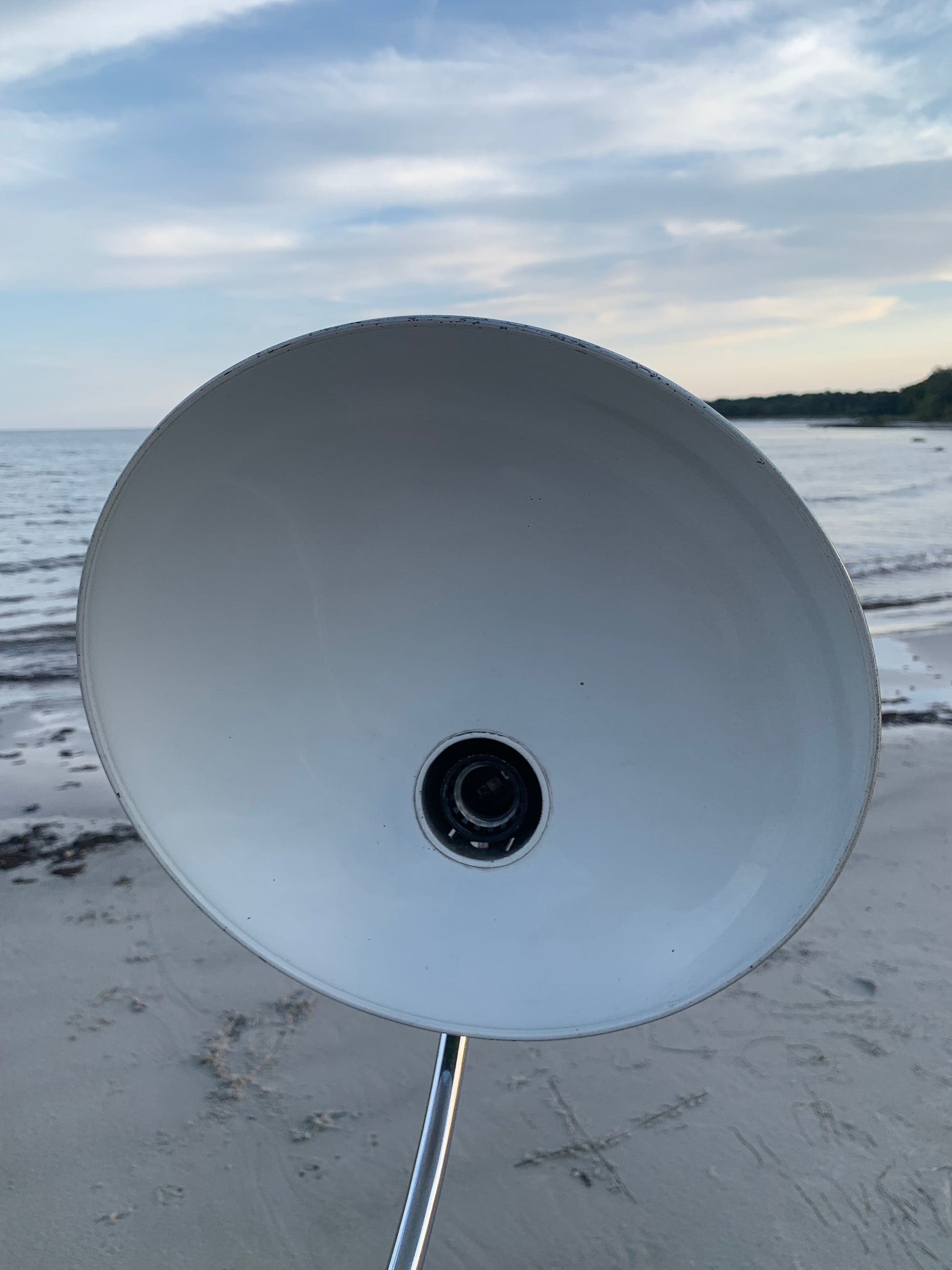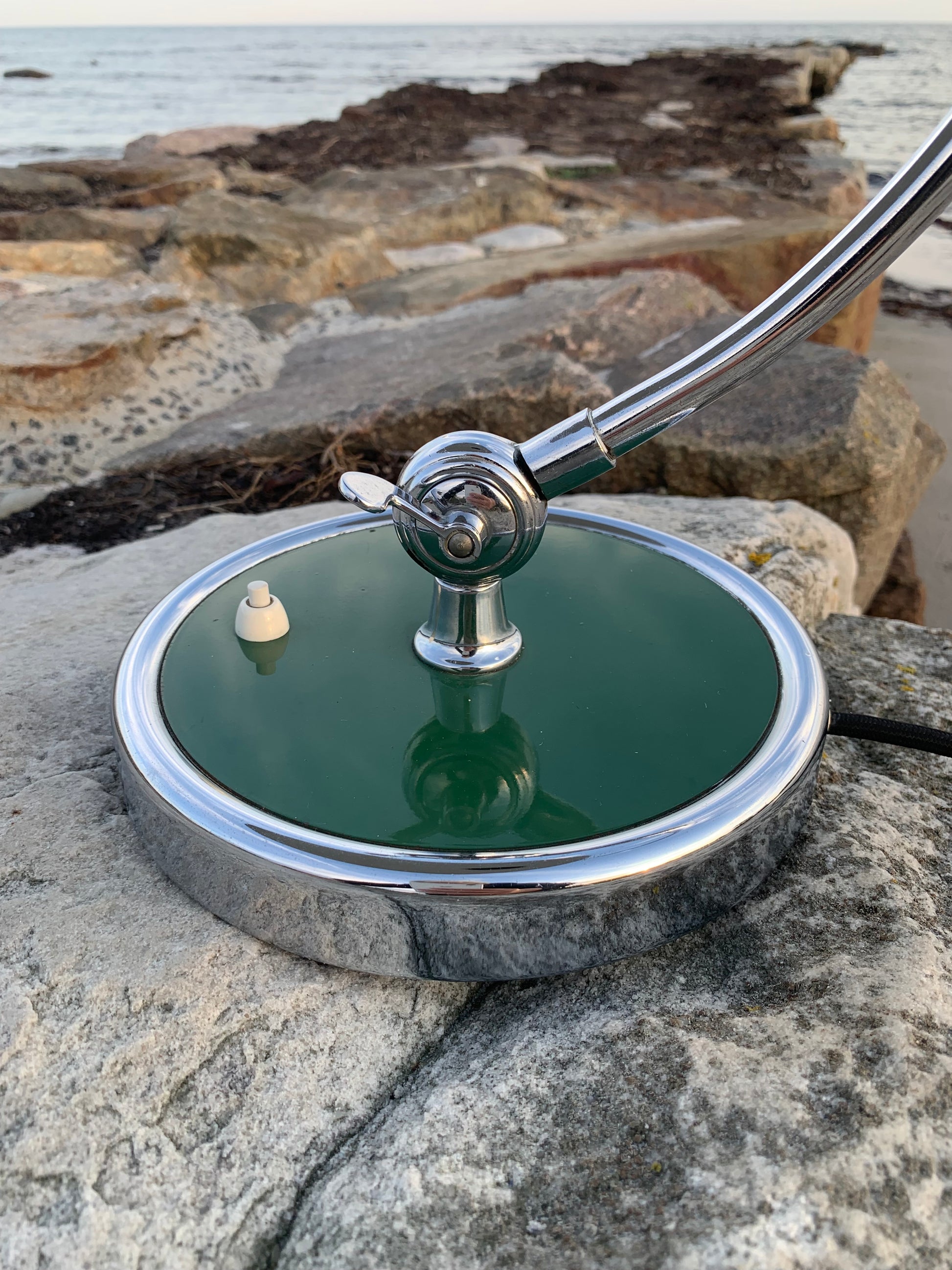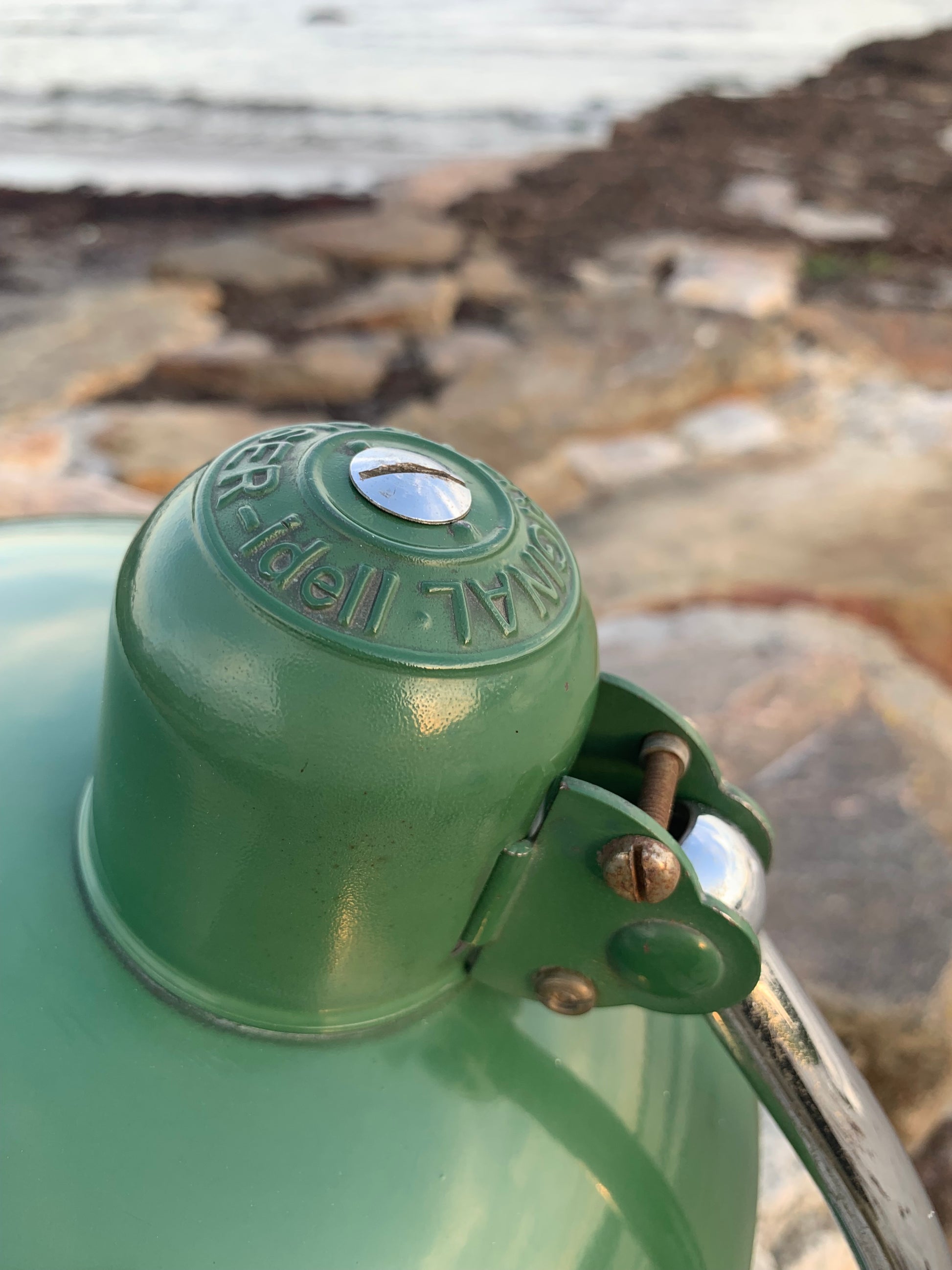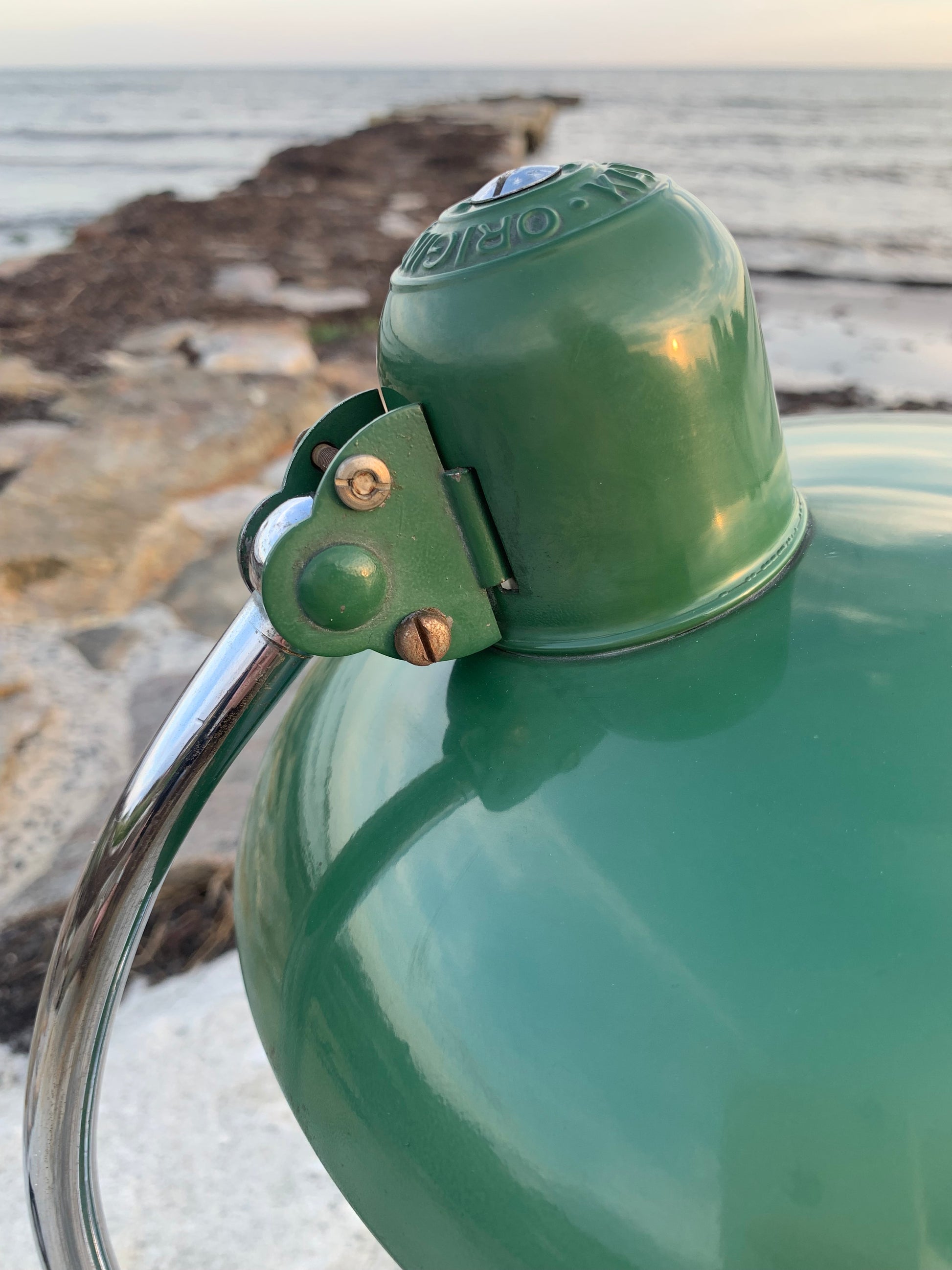 Dieses Exemplar erscheint im Originallack und mit neuen Kabeln. Die Lampe weist einige altersbedingte Gebrauchsspuren auf, wie es bei einer solchen Lampe (unserer Meinung nach) sein sollte, aber insgesamt ist sie in einem sehr schönen Vintage-Zustand.