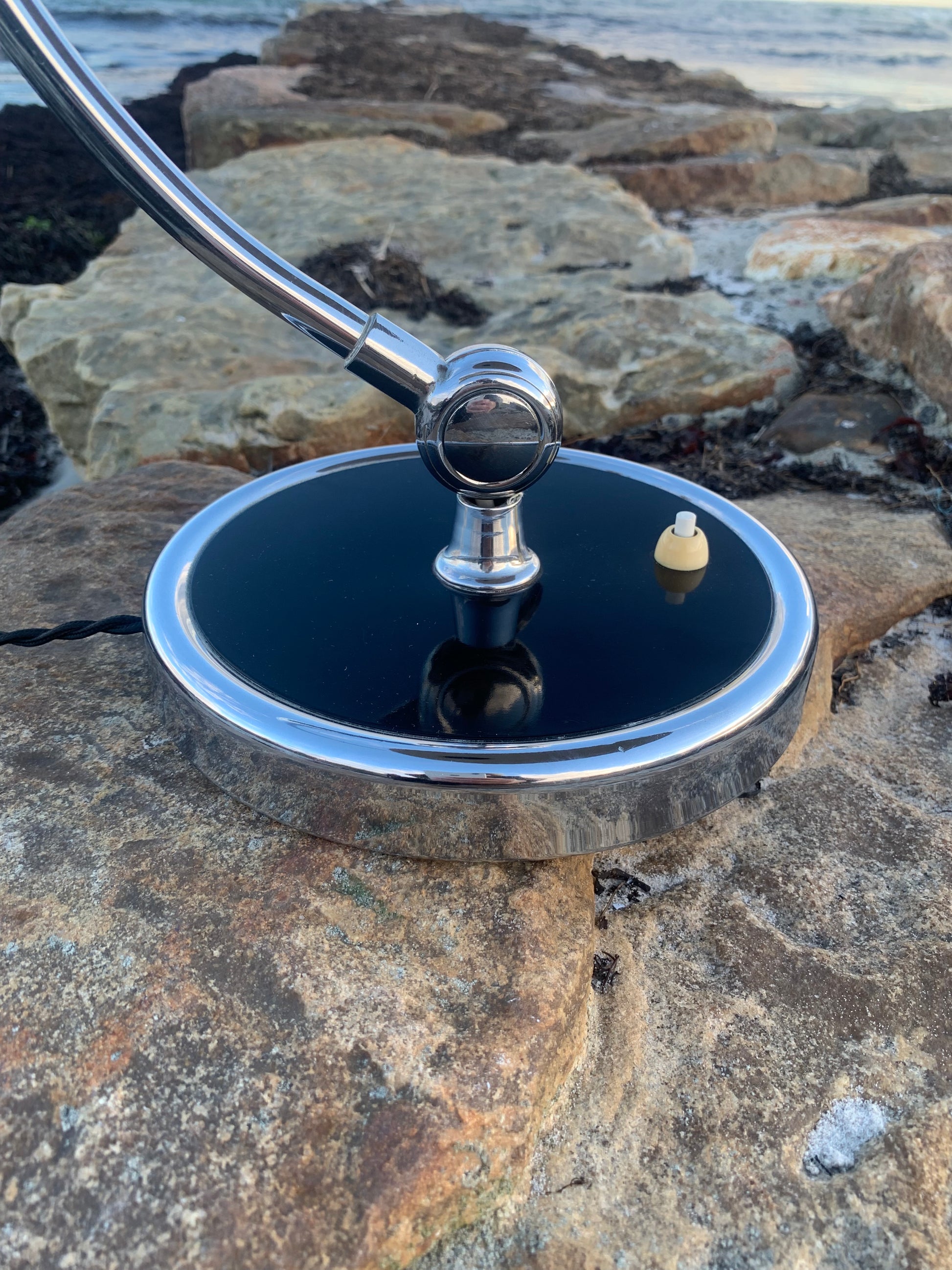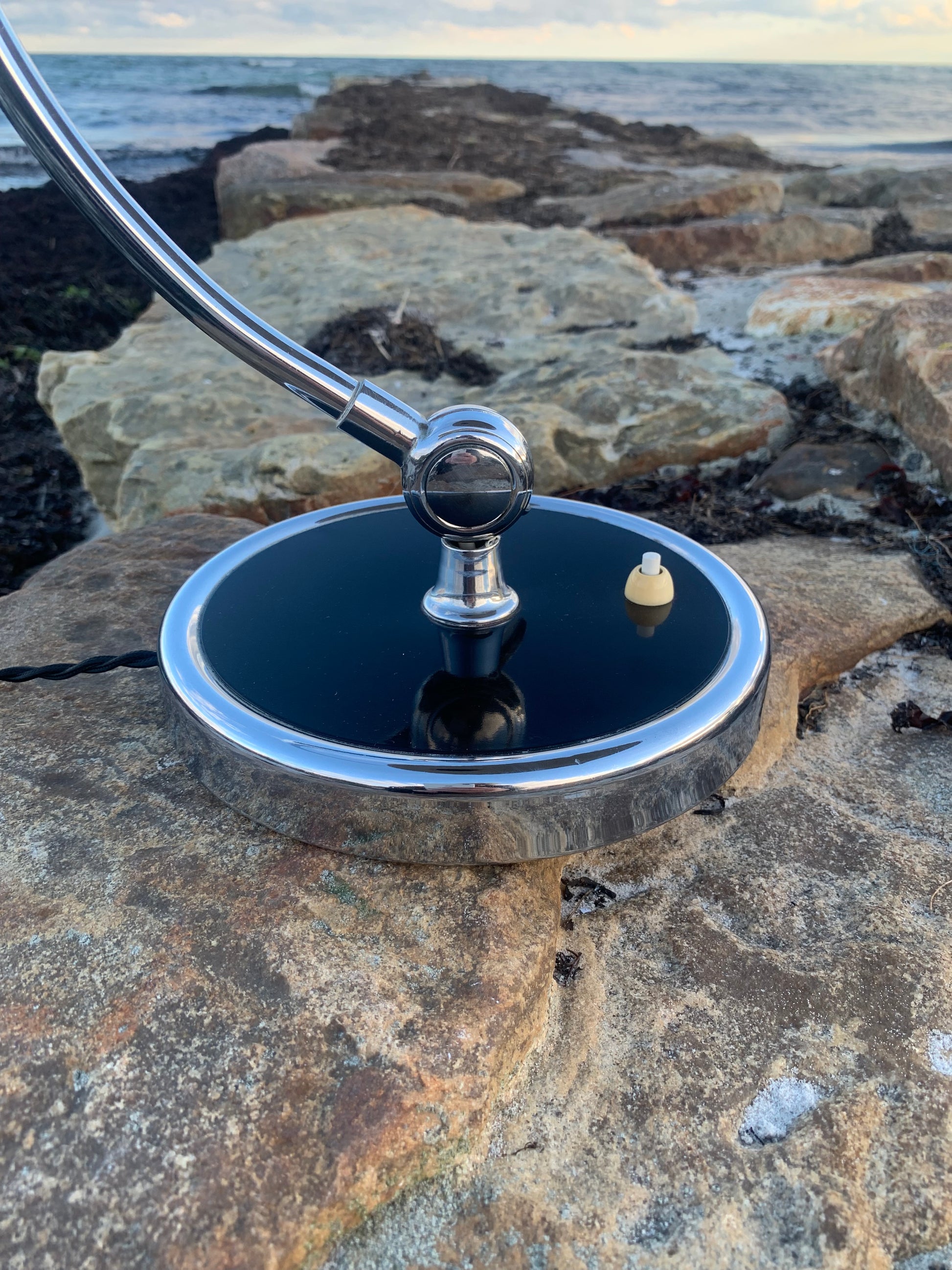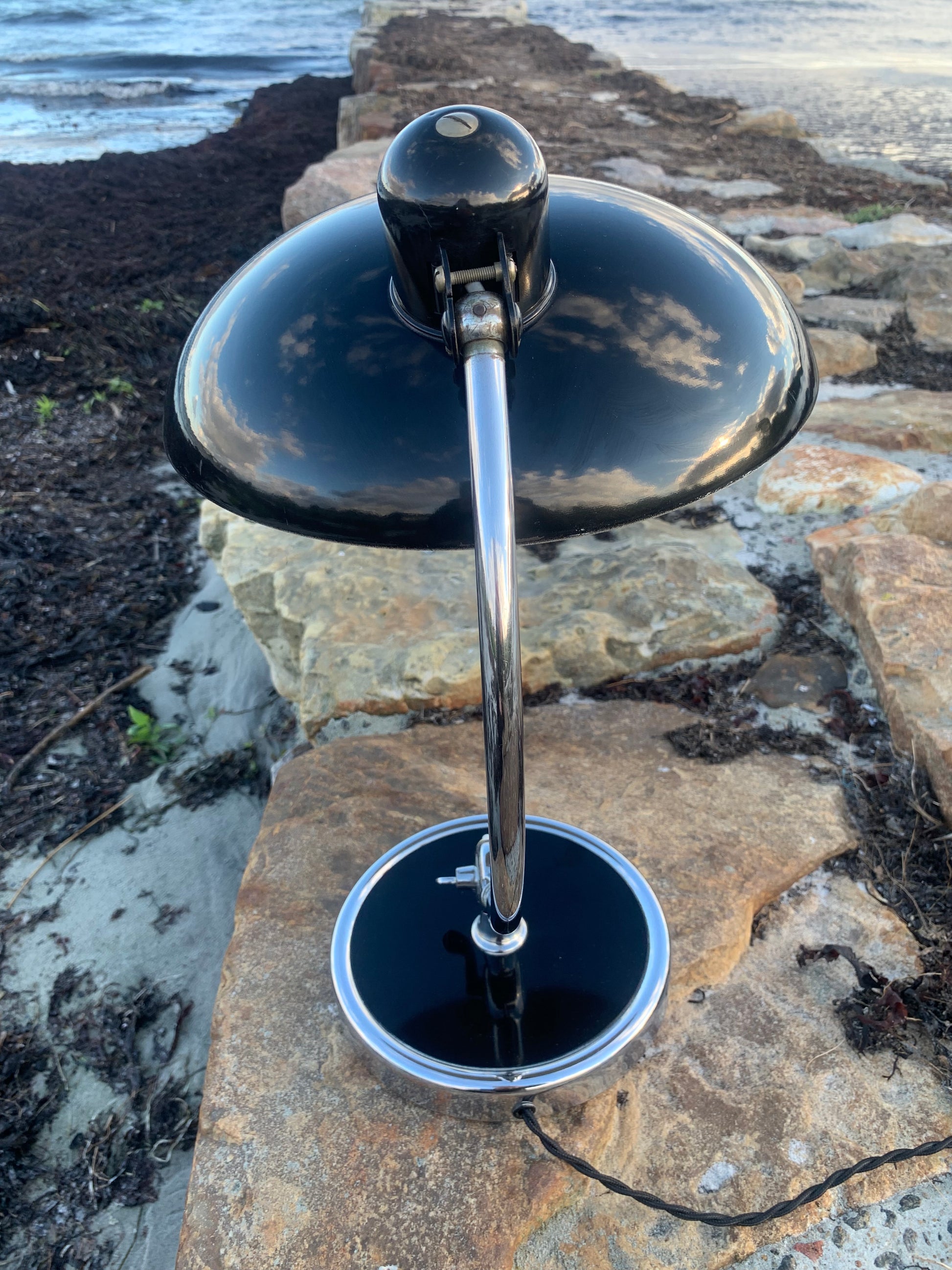 Dieses Exemplar erscheint im Originallack und mit neuen Kabeln. Die Lampe weist einige altersbedingte Gebrauchsspuren auf, wie es bei einer solchen Lampe (unserer Meinung nach) sein sollte, aber insgesamt ist sie in einem sehr schönen Vintage-Zustand.