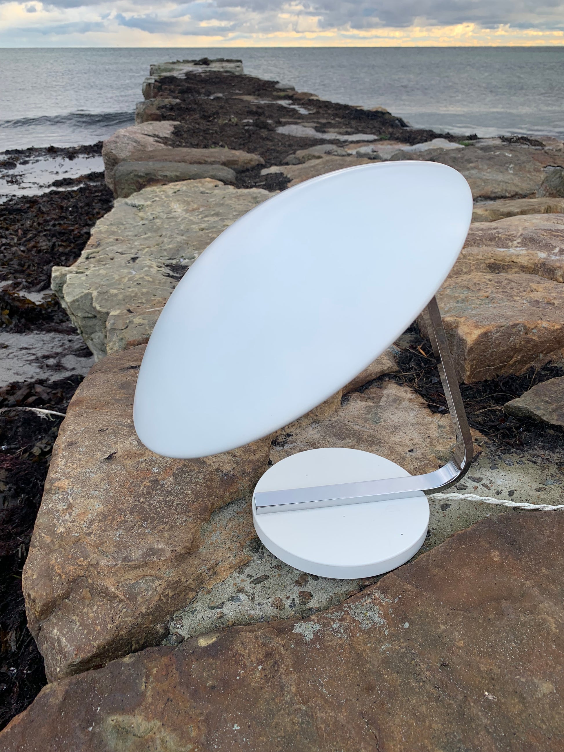 Dieses Exemplar verfügt über die Originallackierung und neue Kabel. Die Lampe weist einige altersbedingte Gebrauchsspuren auf, die eine solche Lampe (unserer Meinung nach) aufweisen sollte. Insgesamt befindet sie sich jedoch in einem selten schönen Vintage-Zustand.
