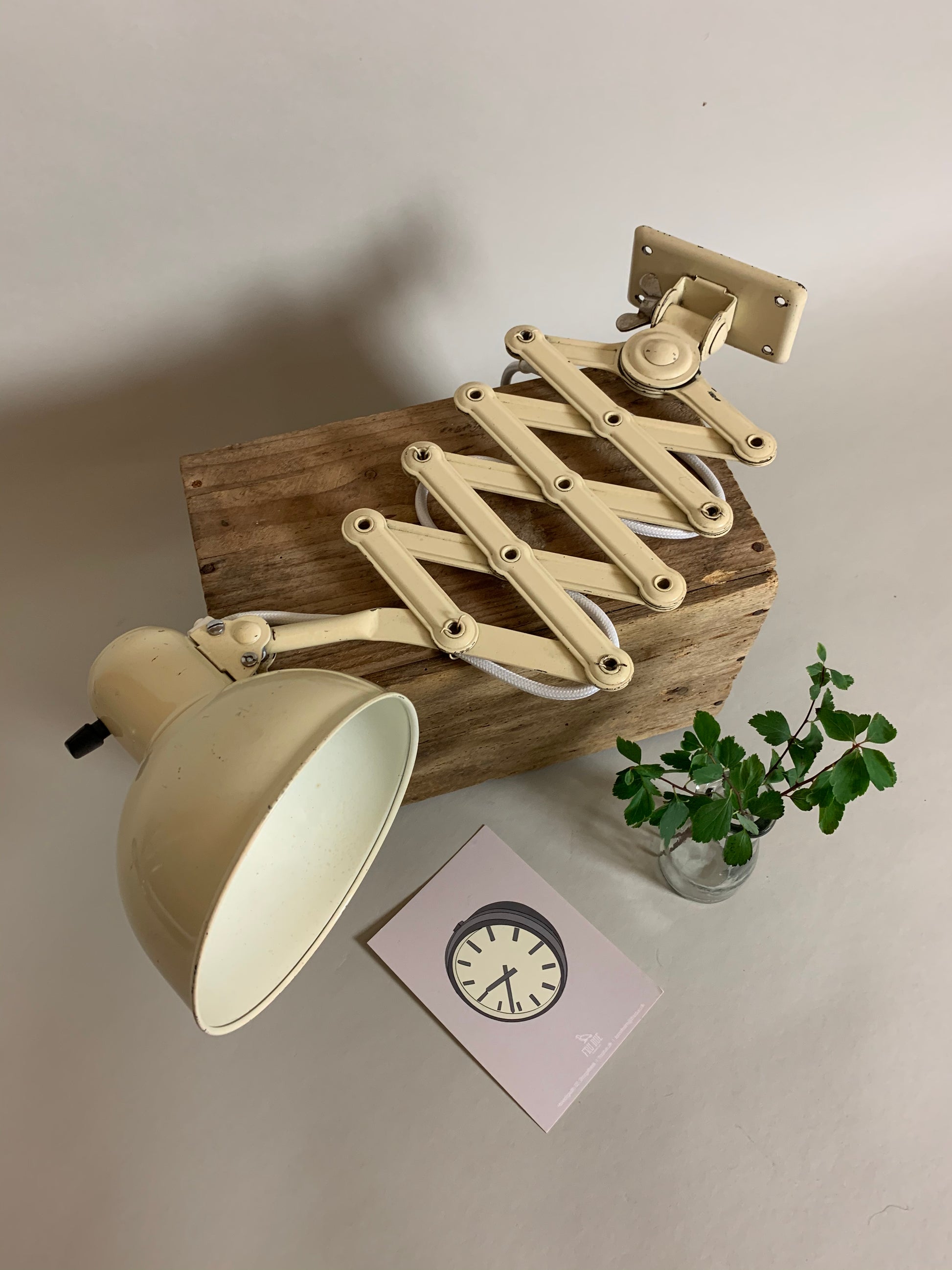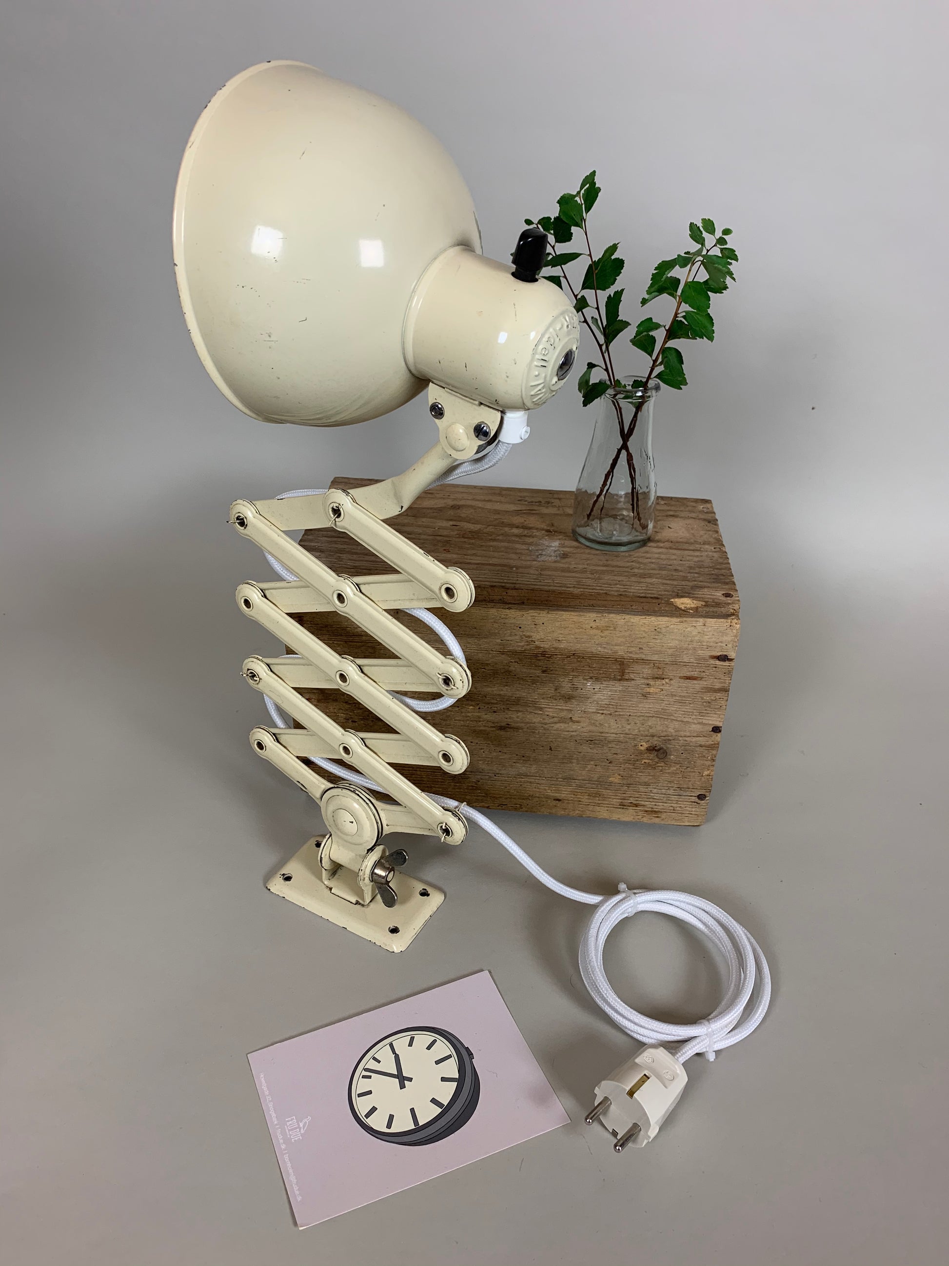 Schöne Scherenlampe, entworfen von Christian Dell ... für diejenigen unter Ihnen, die ein gutes und klassisches Design lieben, das lange hält. Die Lampe erscheint mit einer Patina.