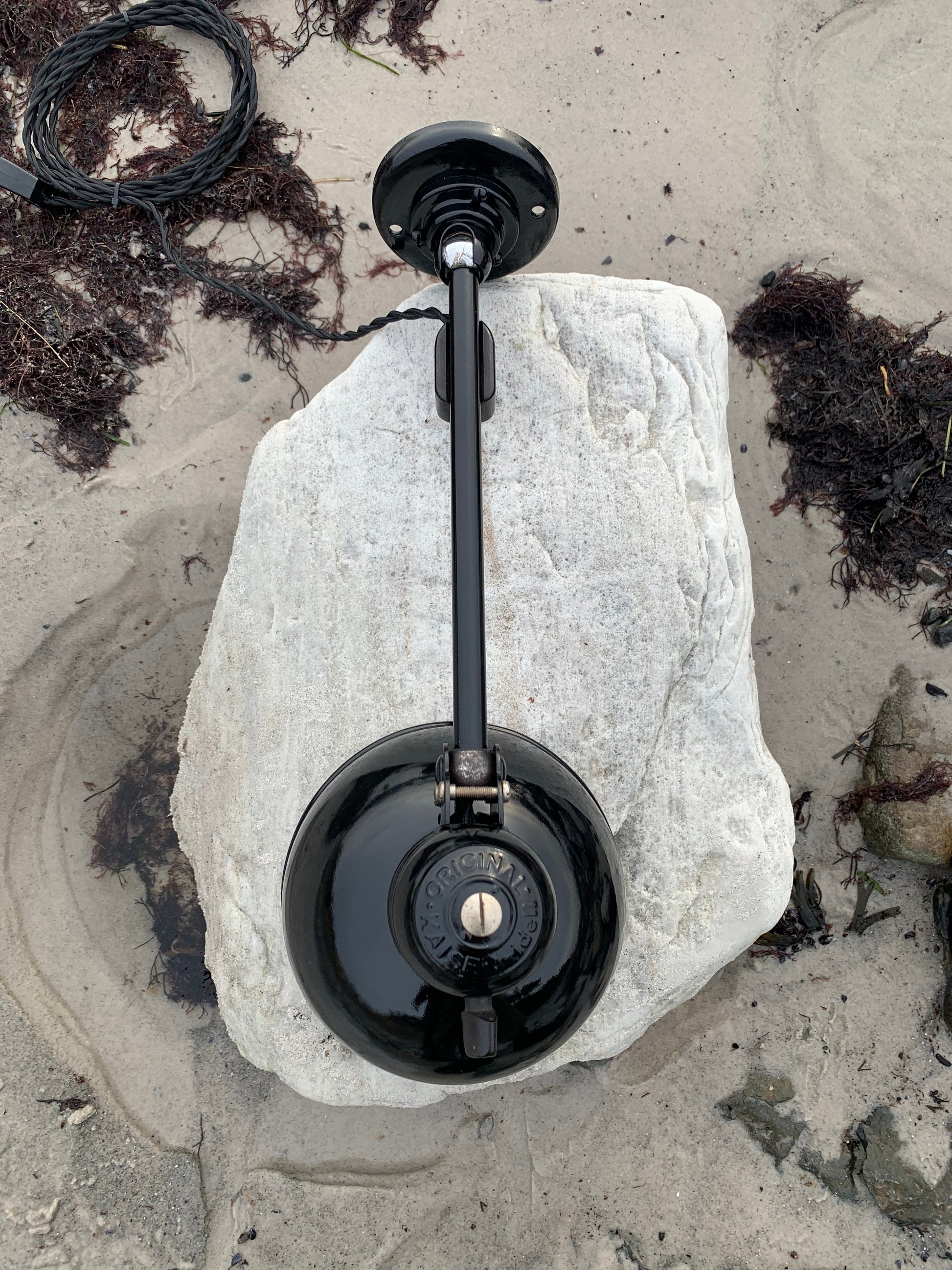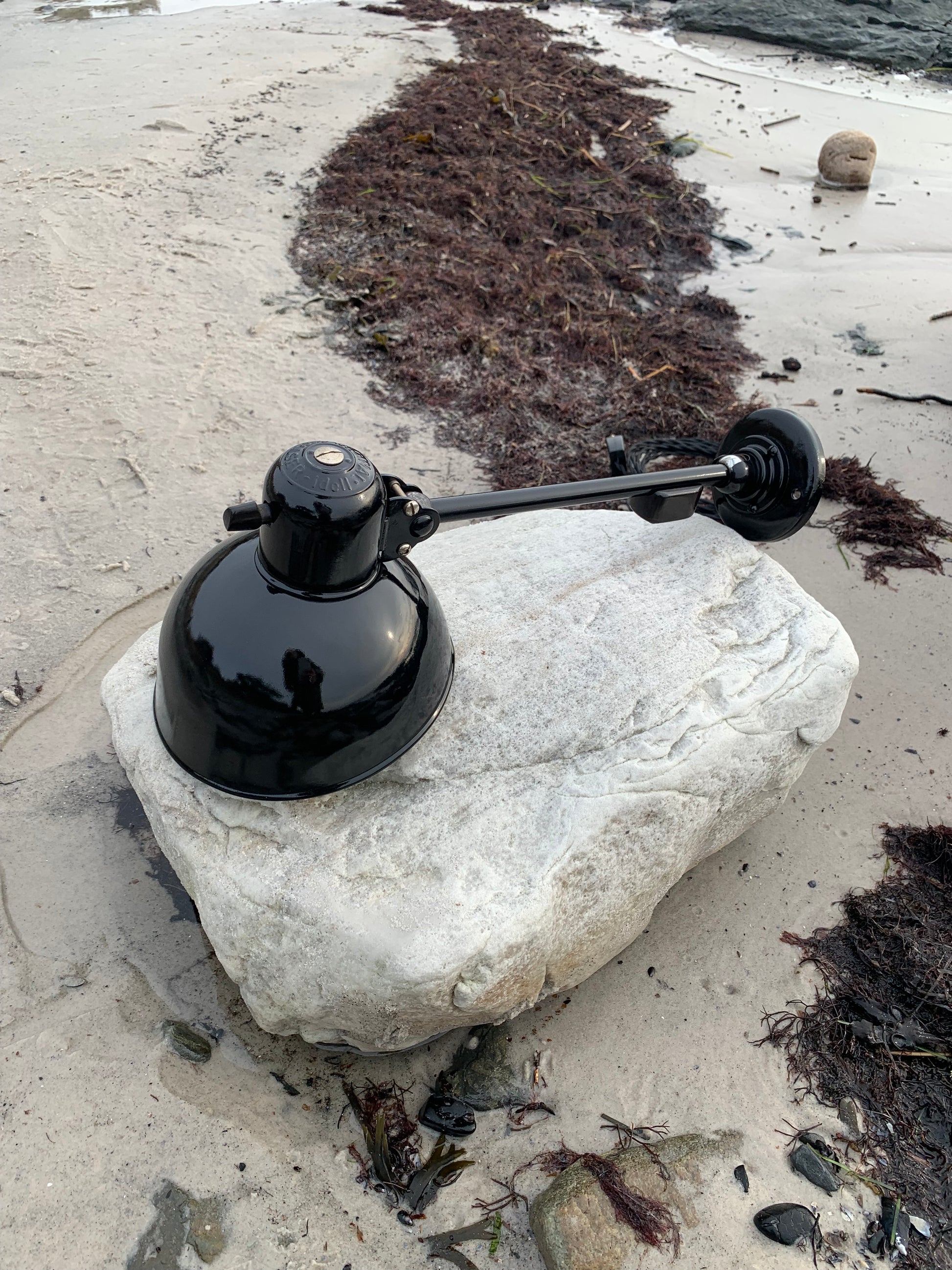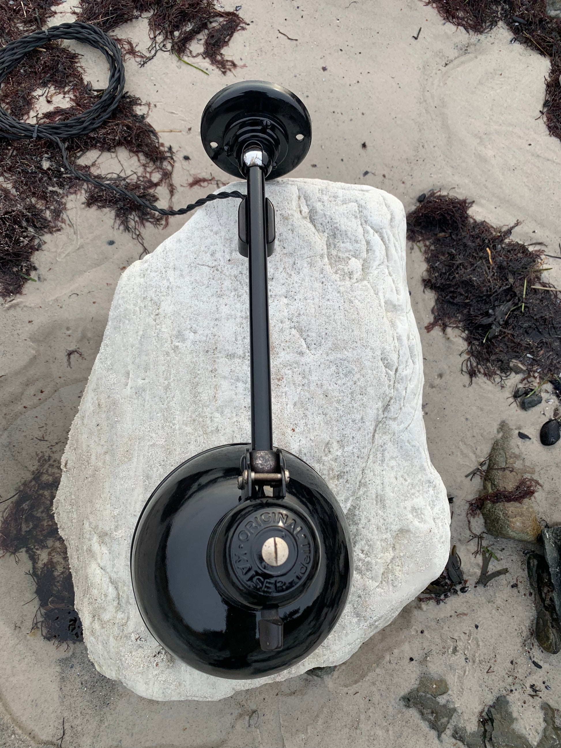 Wirklich schöne Kaiser Idell Lampe Modell 6723. Die Lampe wurde von Christian Dell entworfen und ist definitiv keine Lampe, die uns sehr oft begegnet. Einzigartig an der Leuchte ist ihr Kugelgelenk, weshalb die Leuchte in mehrere Richtungen geneigt werden kann. Die Lampe wurde mit einer neuen Lackierung und einem neuen Kabel generalüberholt.