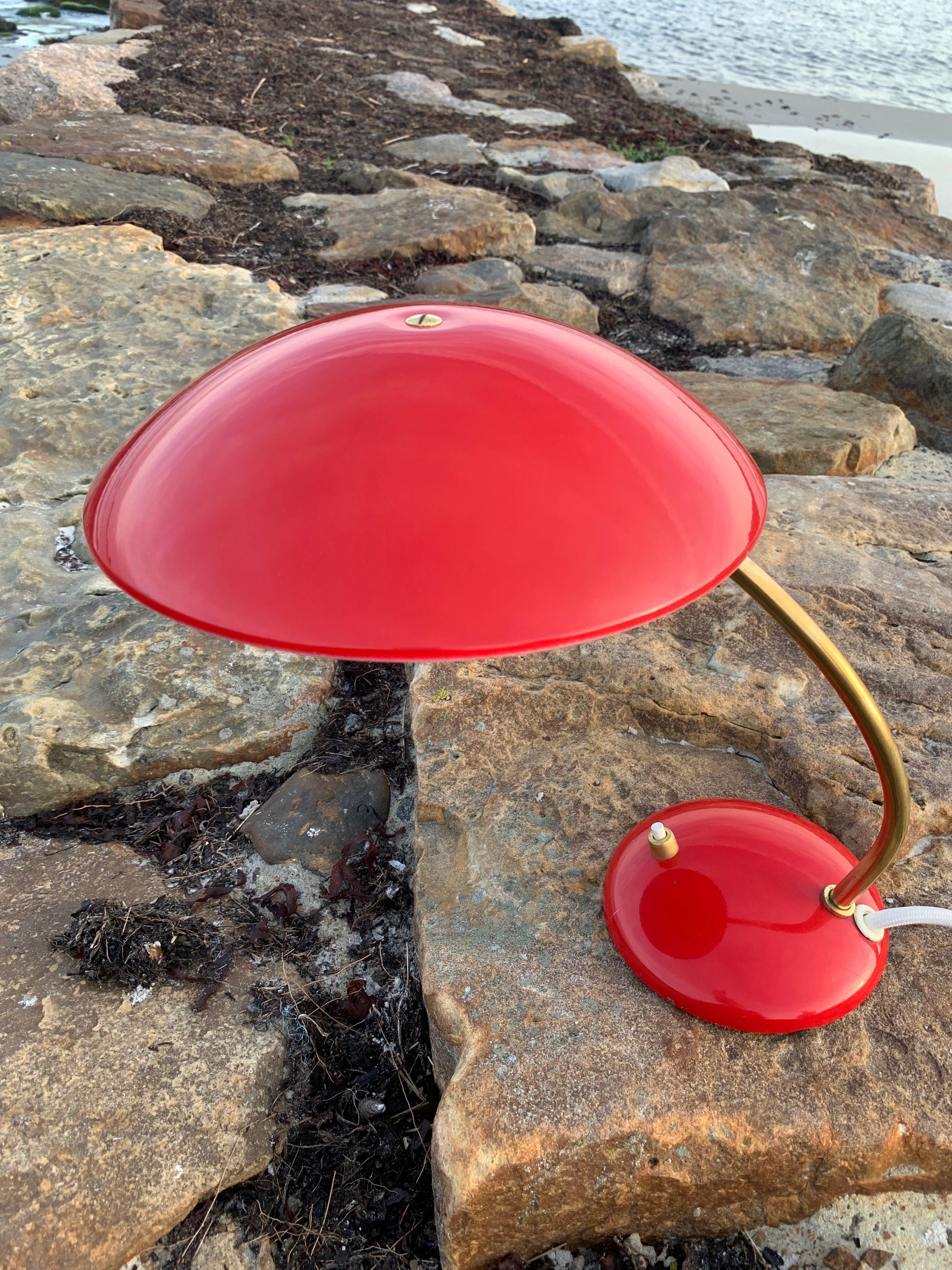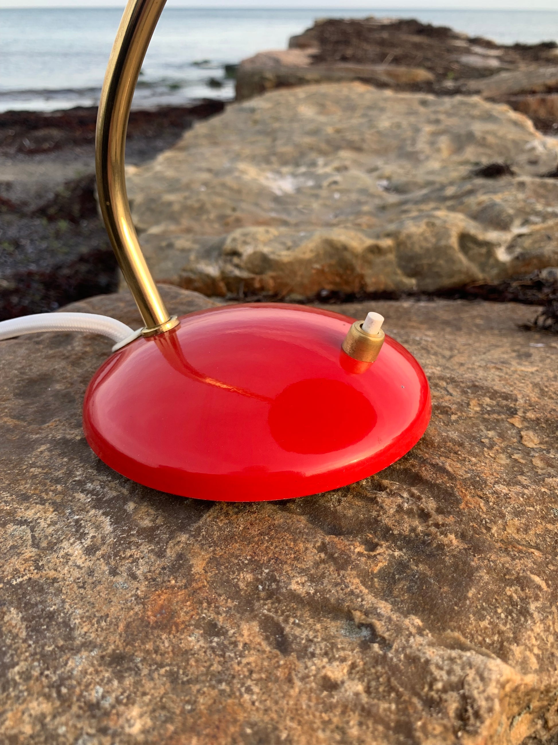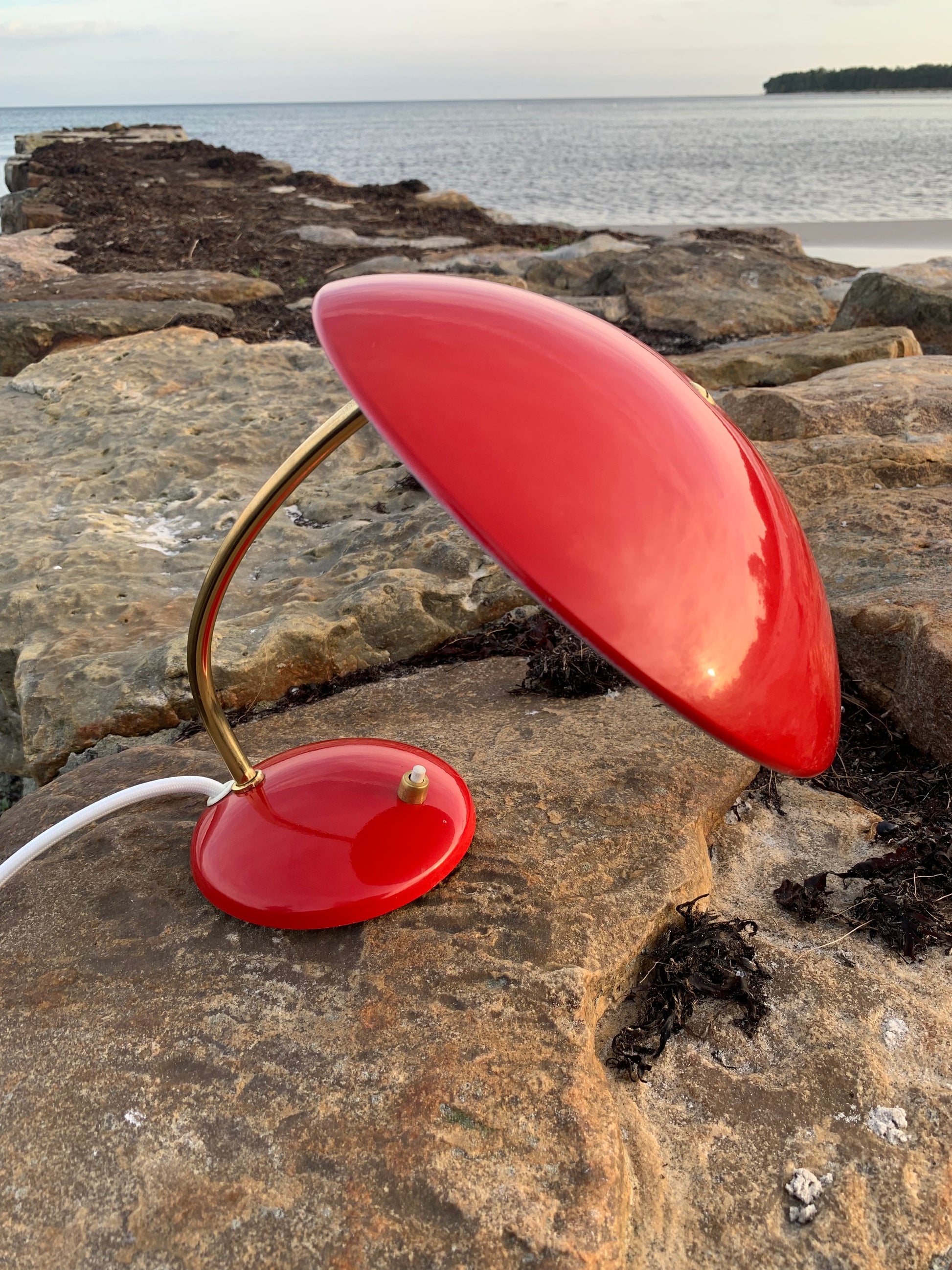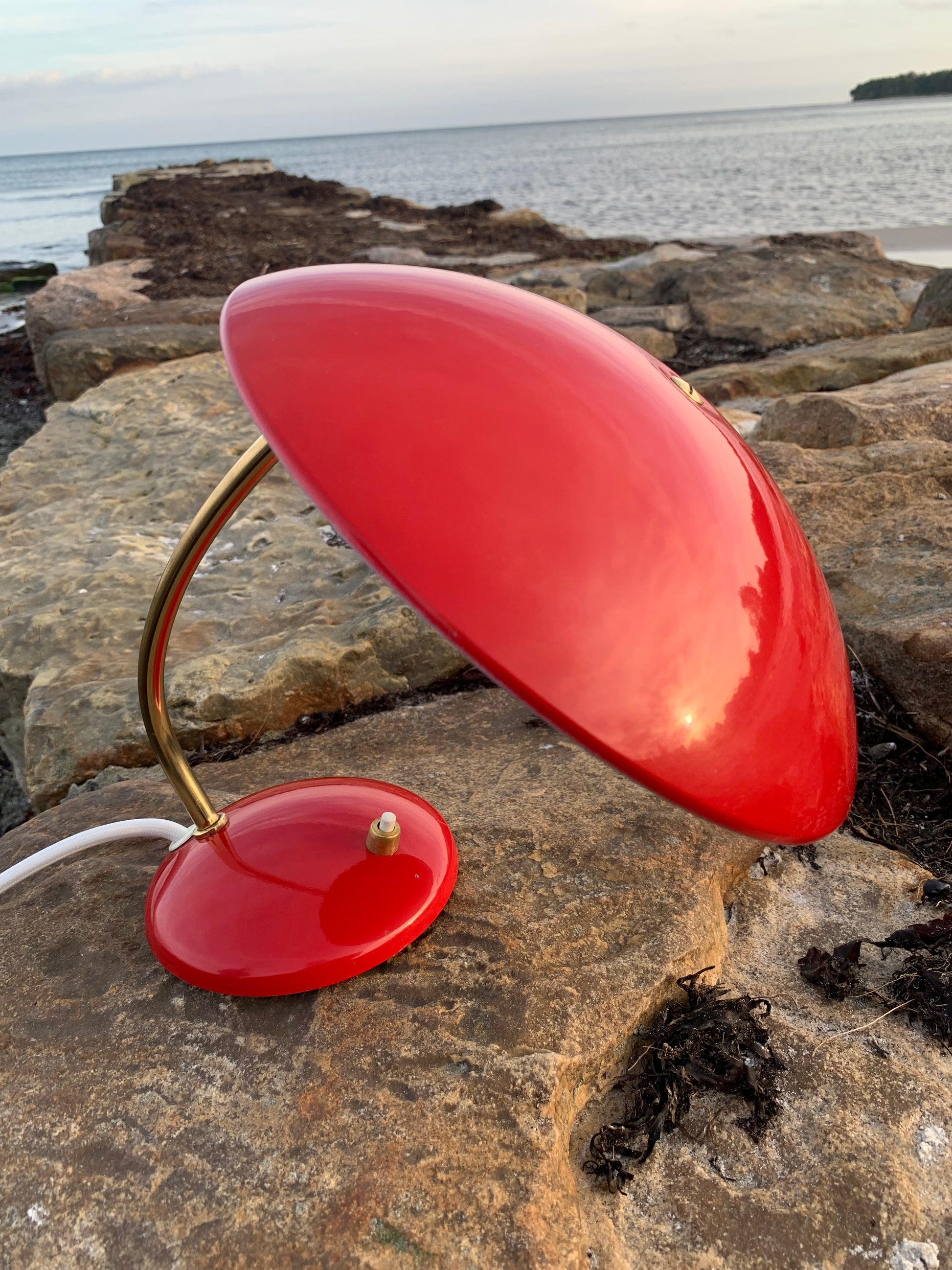 Dieses Exemplar hat die Originalfarbe und neue Kabel. Die Lampe weist einige altersbedingte Gebrauchsspuren auf, die eine solche Lampe (unserer Meinung nach) haben sollte. Insgesamt ist sie jedoch in einem wirklich schönen Vintage-Zustand.