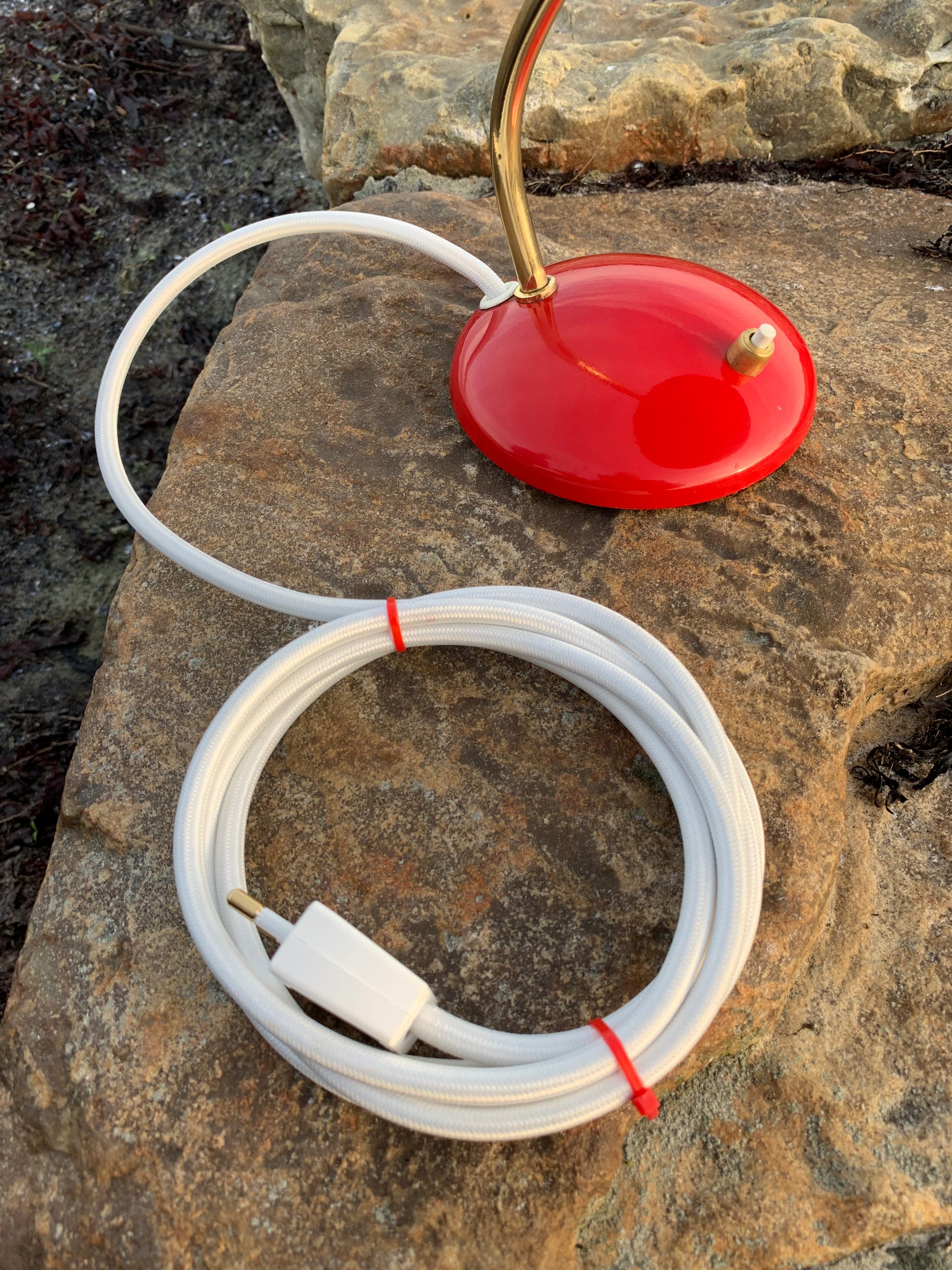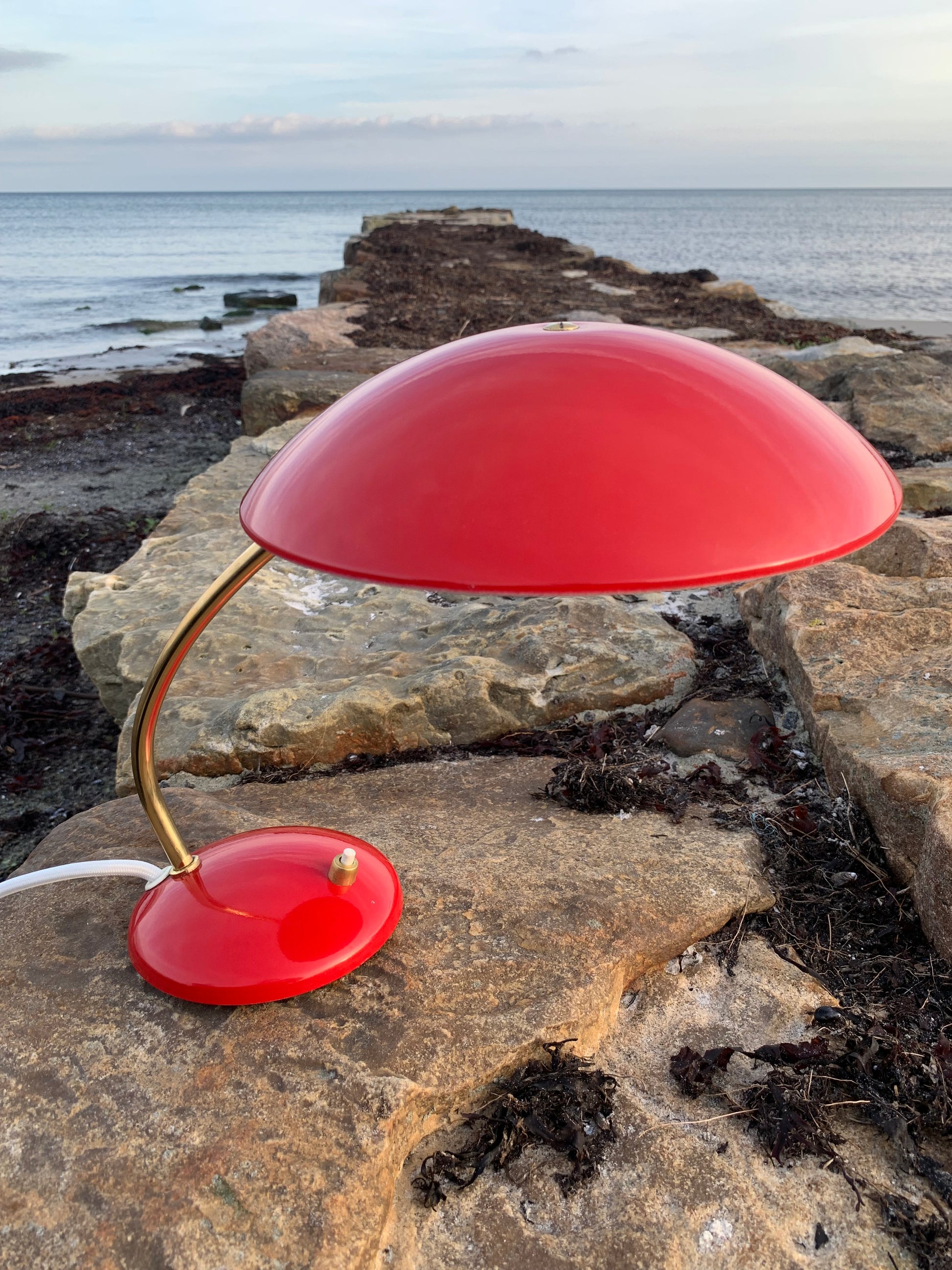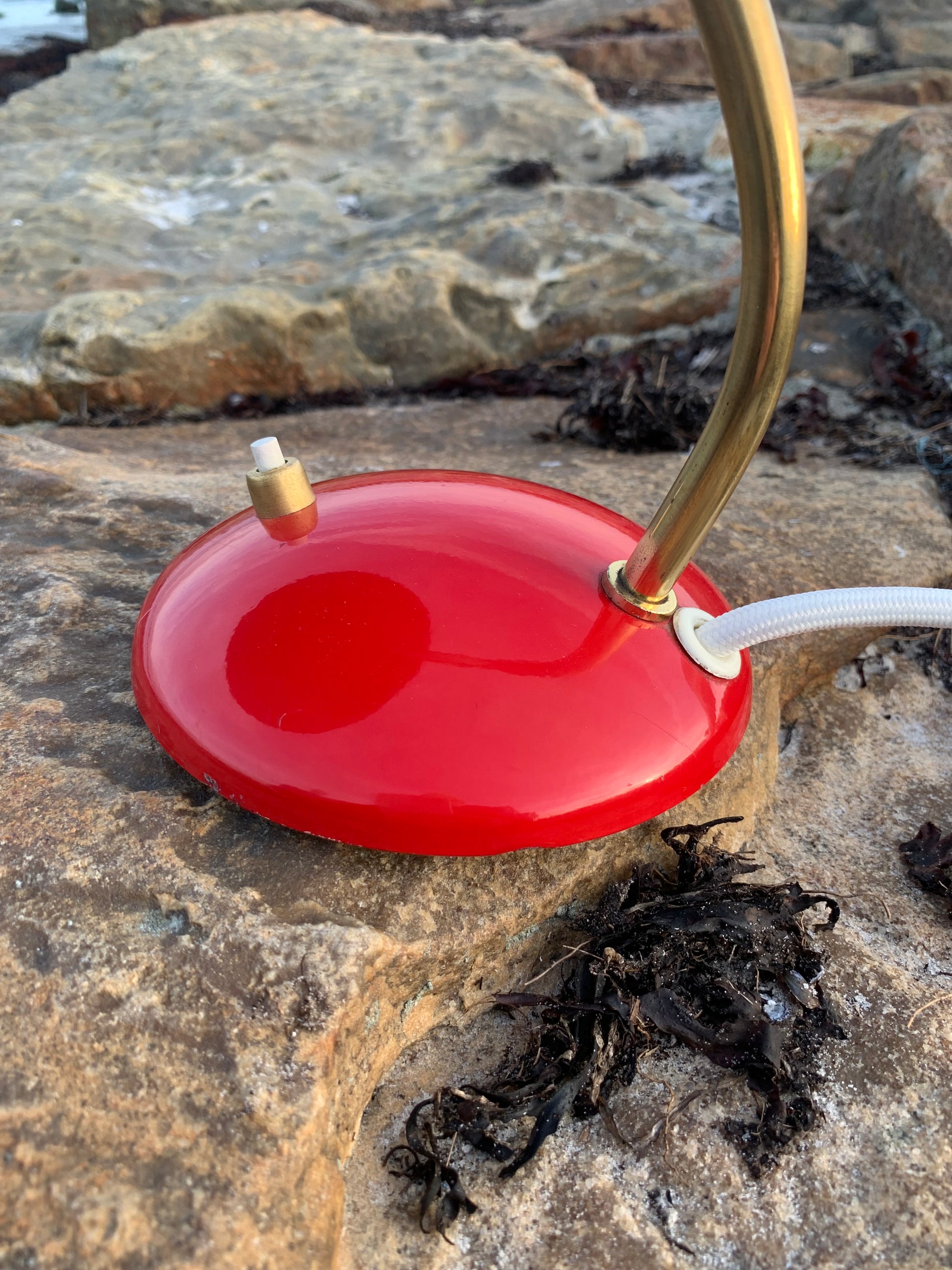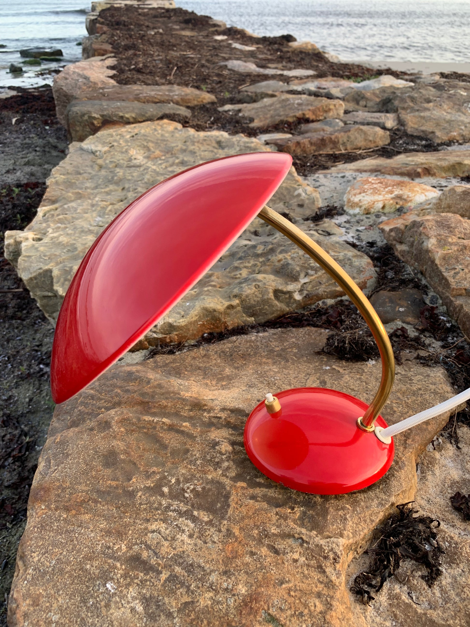 Dieses Exemplar hat die Originalfarbe und neue Kabel. Die Lampe weist einige altersbedingte Gebrauchsspuren auf, die eine solche Lampe (unserer Meinung nach) haben sollte. Insgesamt ist sie jedoch in einem wirklich schönen Vintage-Zustand.