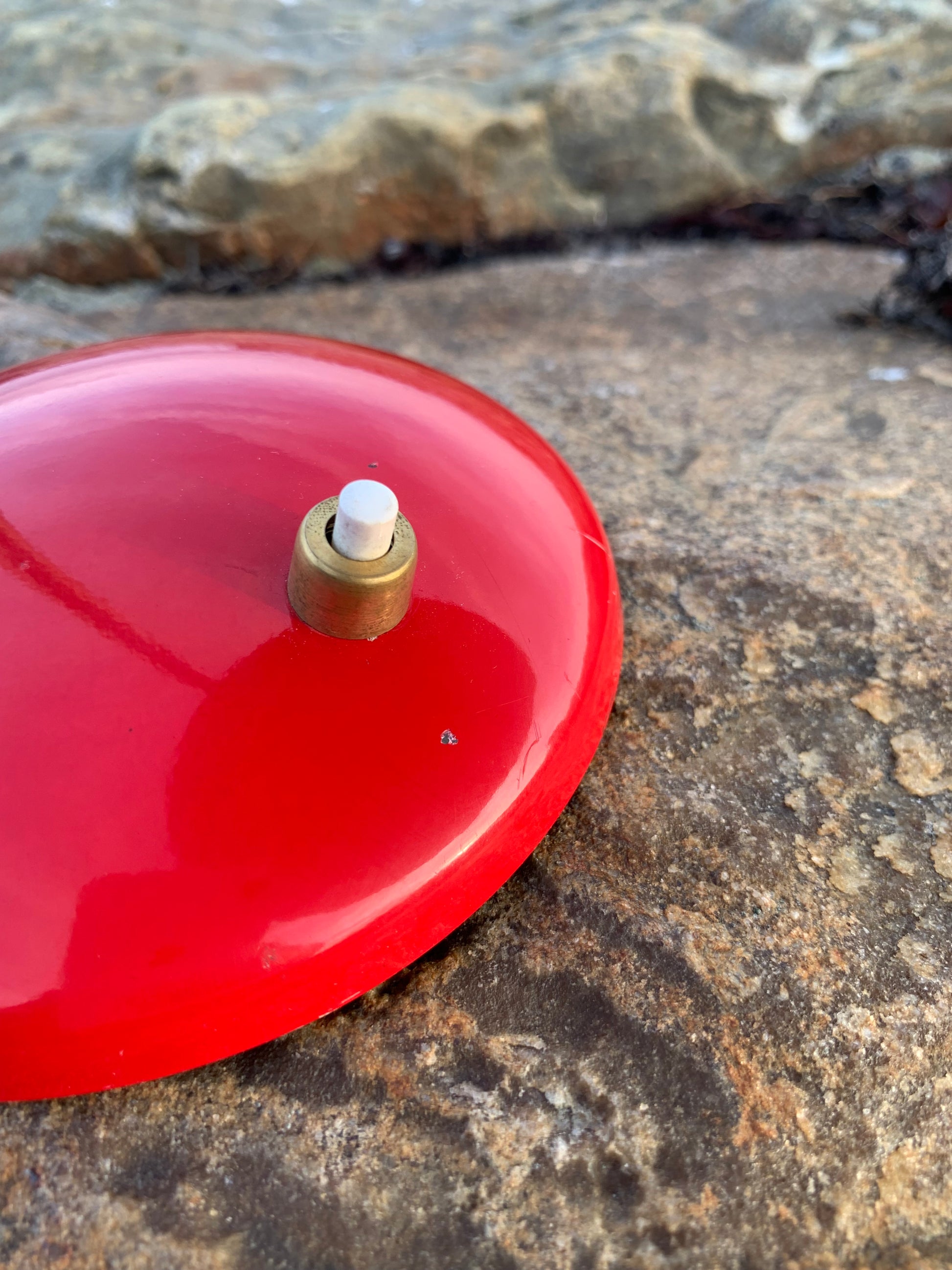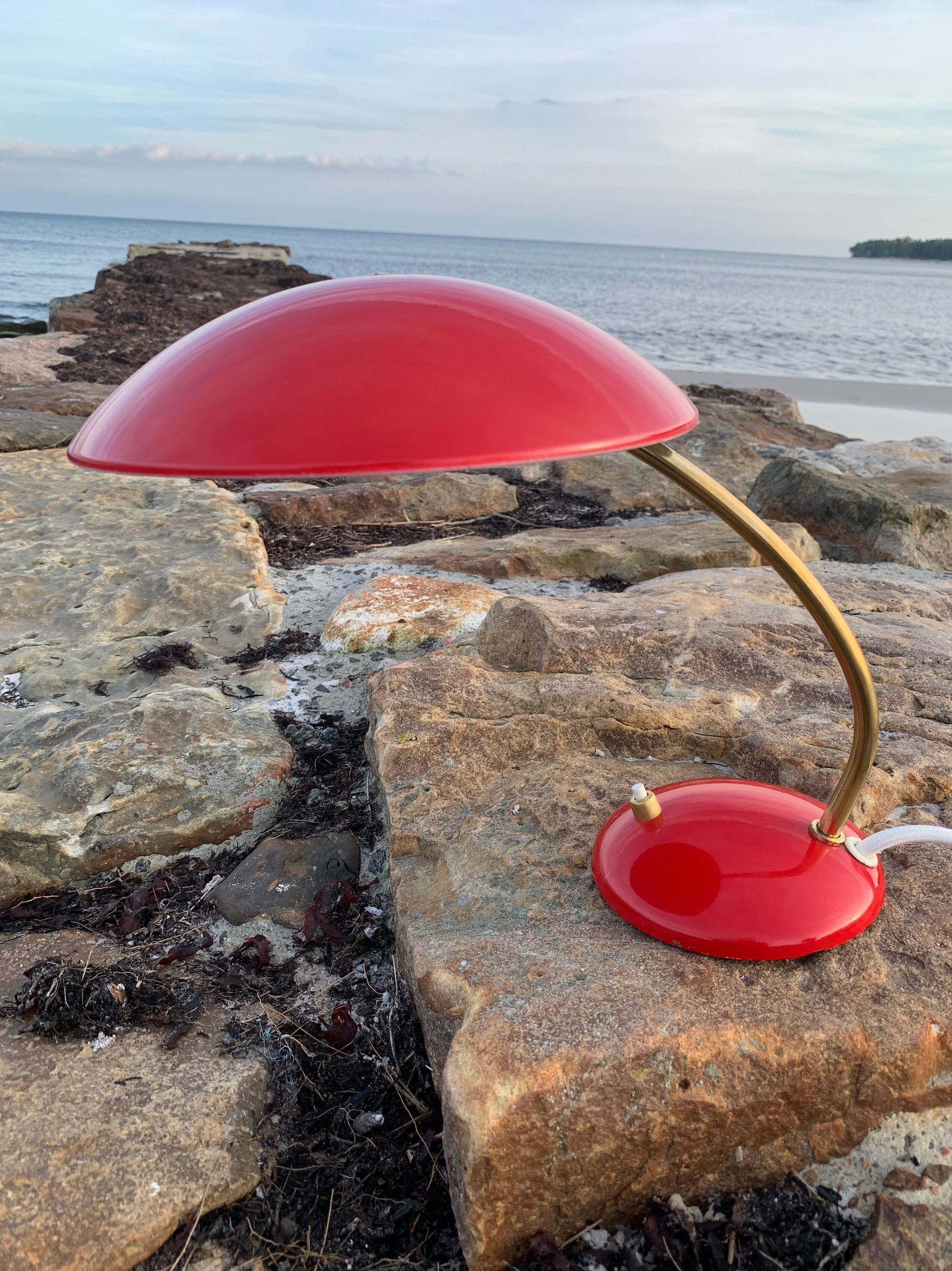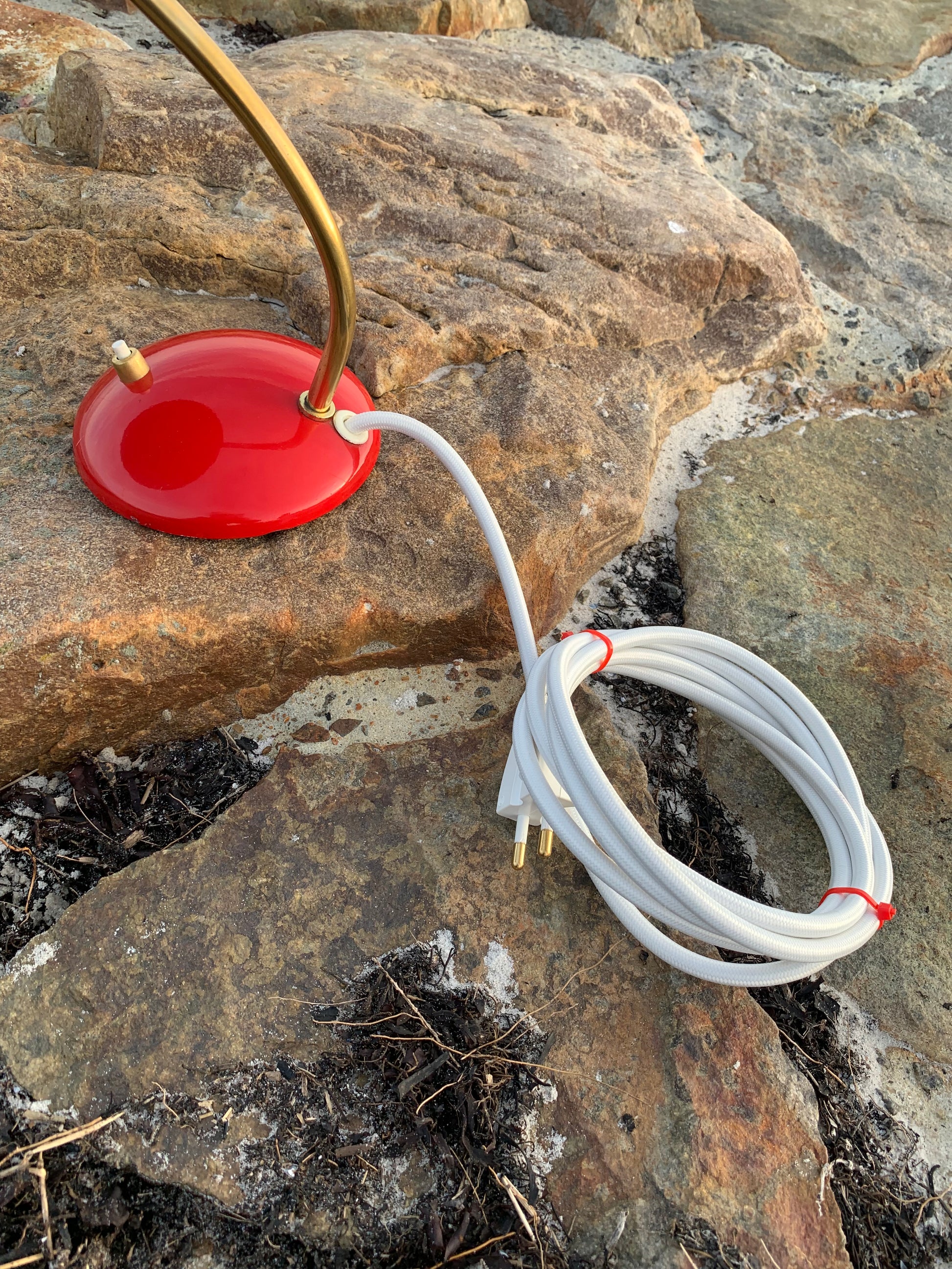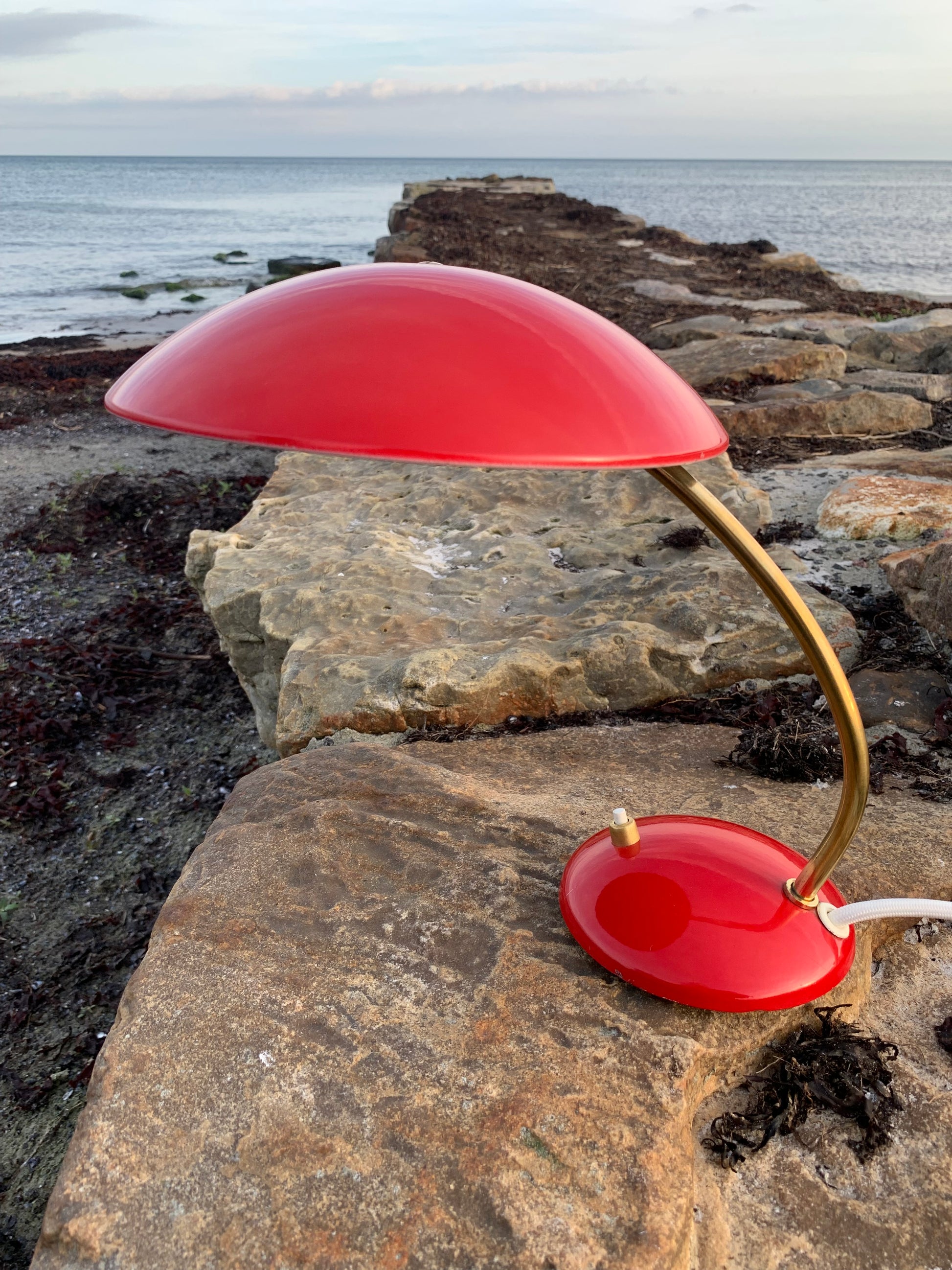 Dieses Exemplar hat die Originalfarbe und neue Kabel. Die Lampe weist einige altersbedingte Gebrauchsspuren auf, die eine solche Lampe (unserer Meinung nach) haben sollte. Insgesamt ist sie jedoch in einem wirklich schönen Vintage-Zustand.