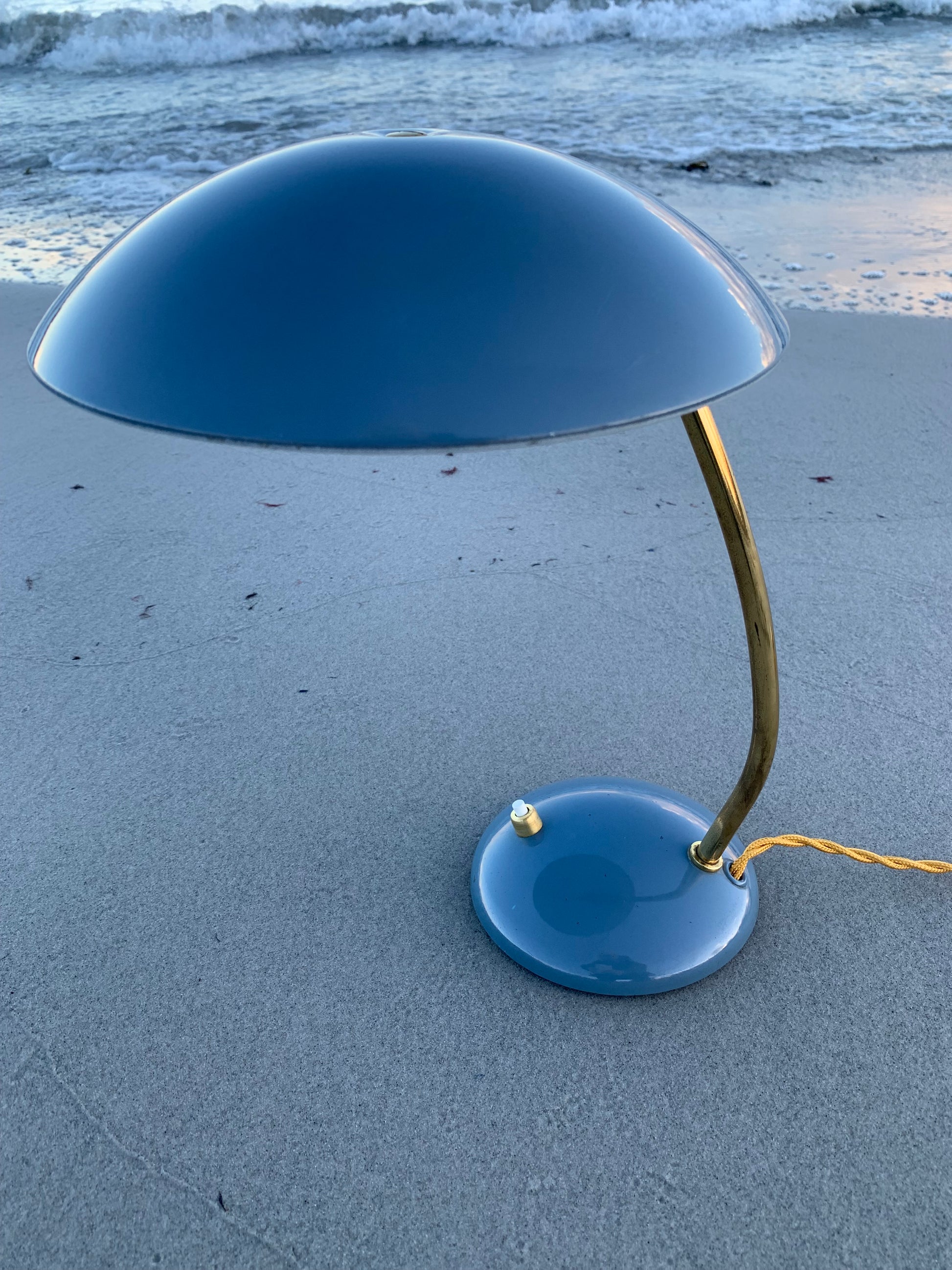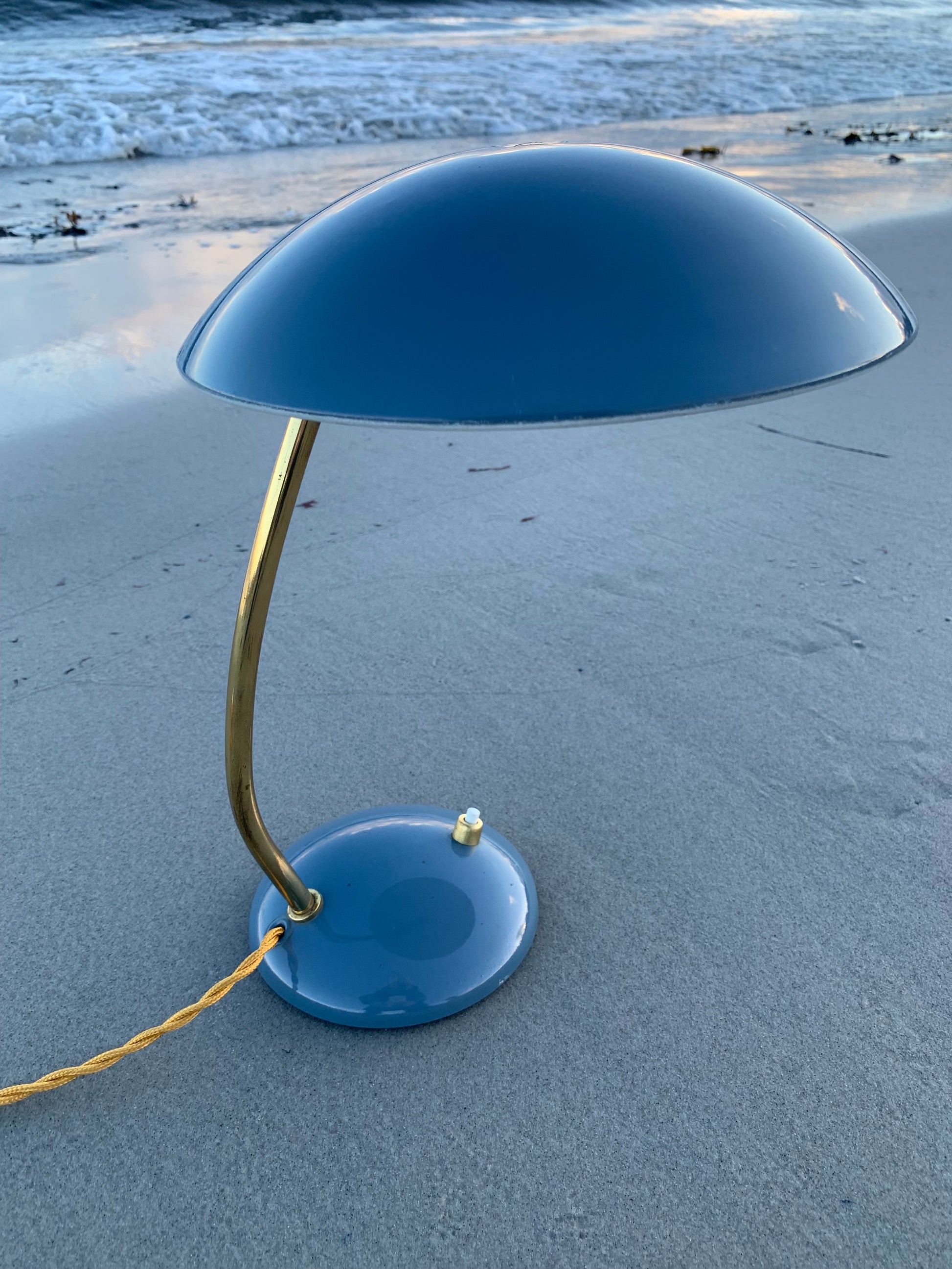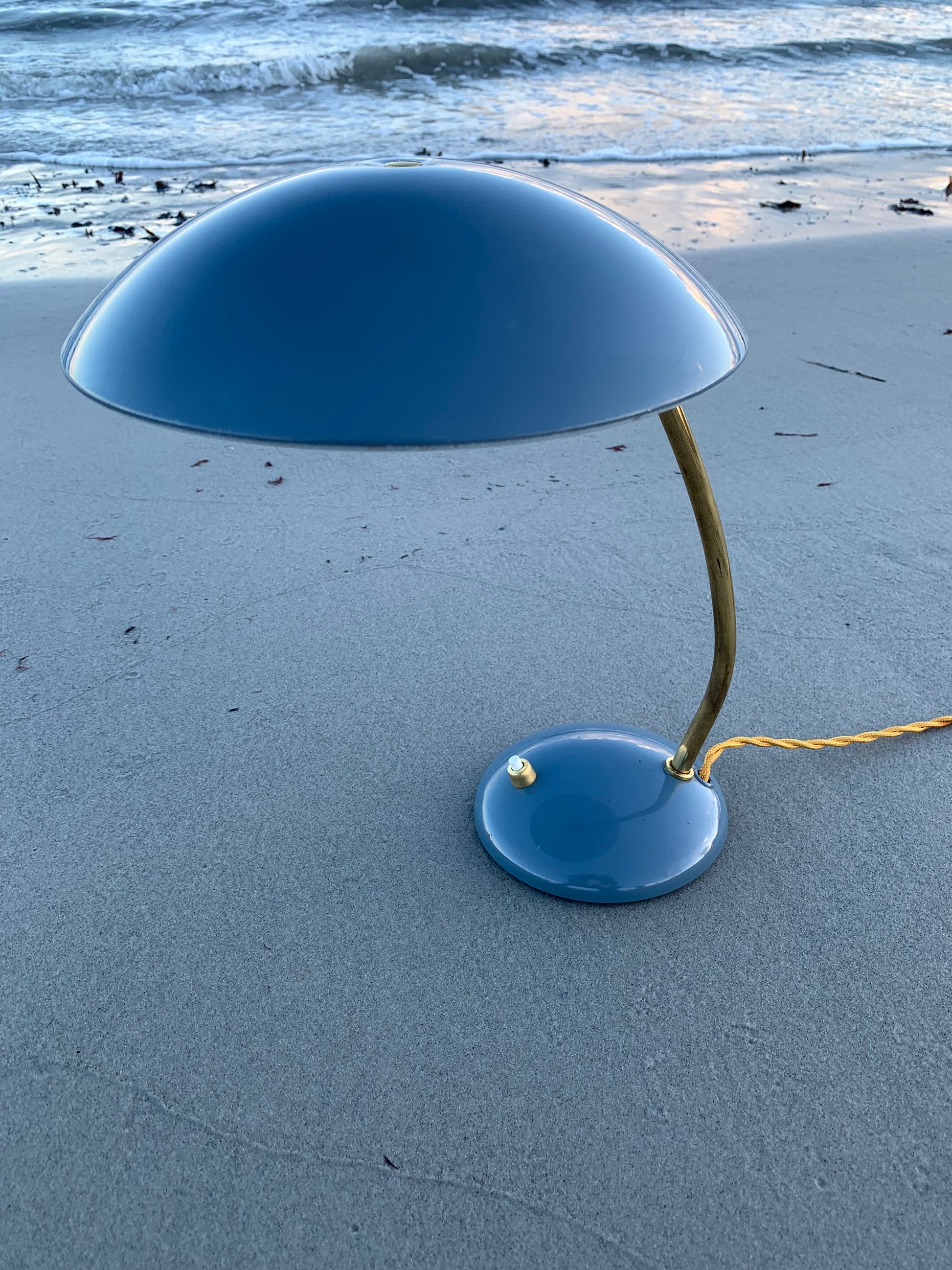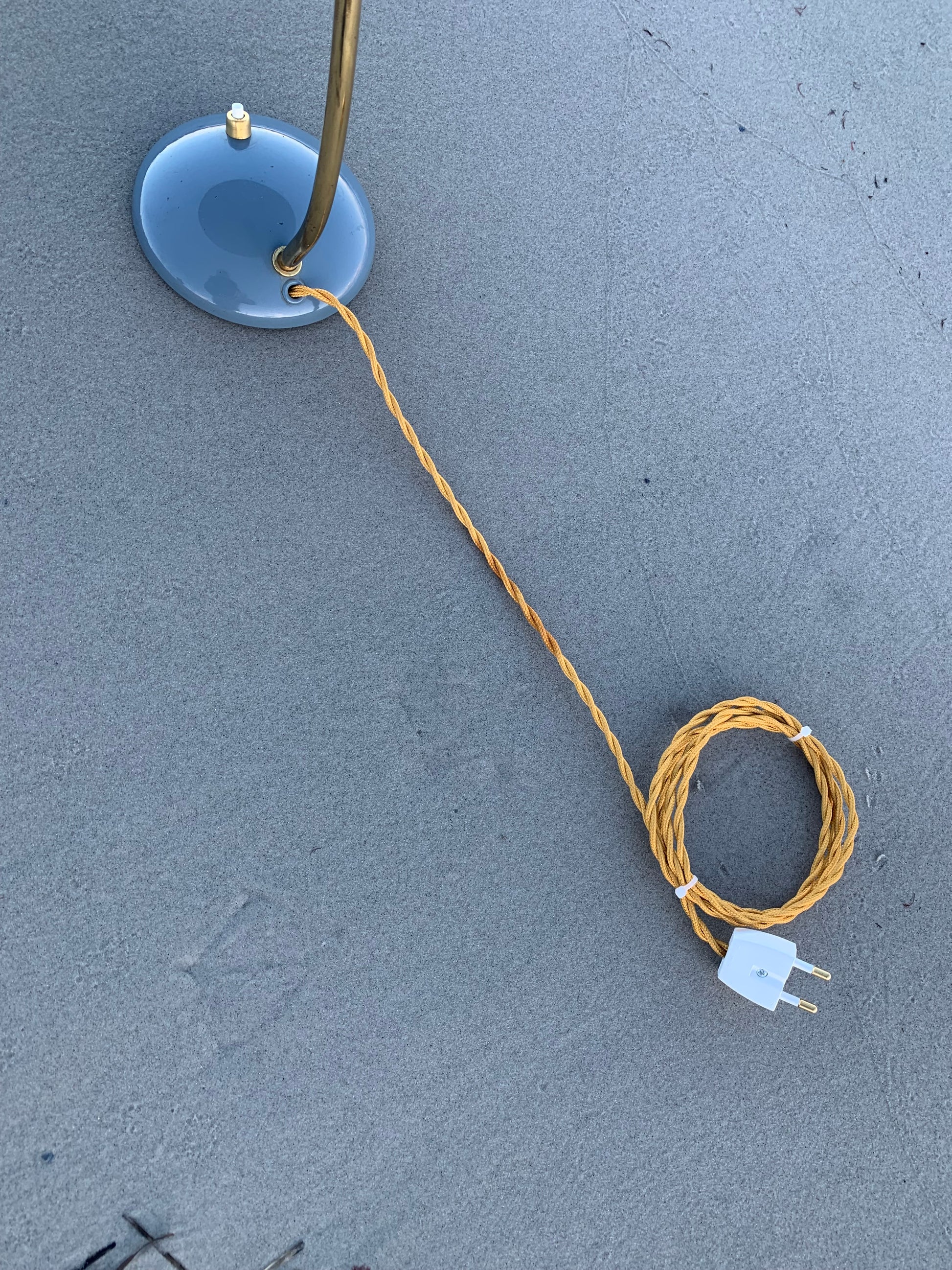 Dieses Exemplar erscheint mit der Originallackierung und neuen Kabeln. Die Lampe weist ein paar altersbedingte Gebrauchsspuren auf, die eine solche Lampe (unserer Meinung nach) fast haben müsste.