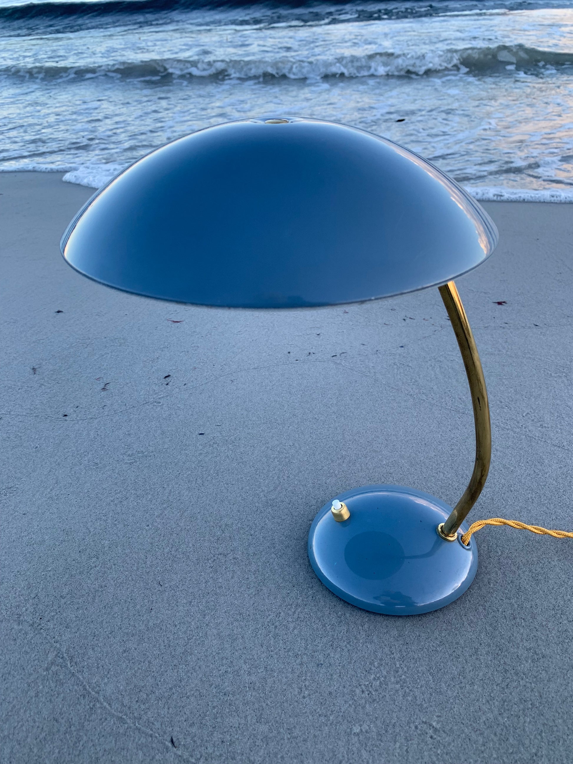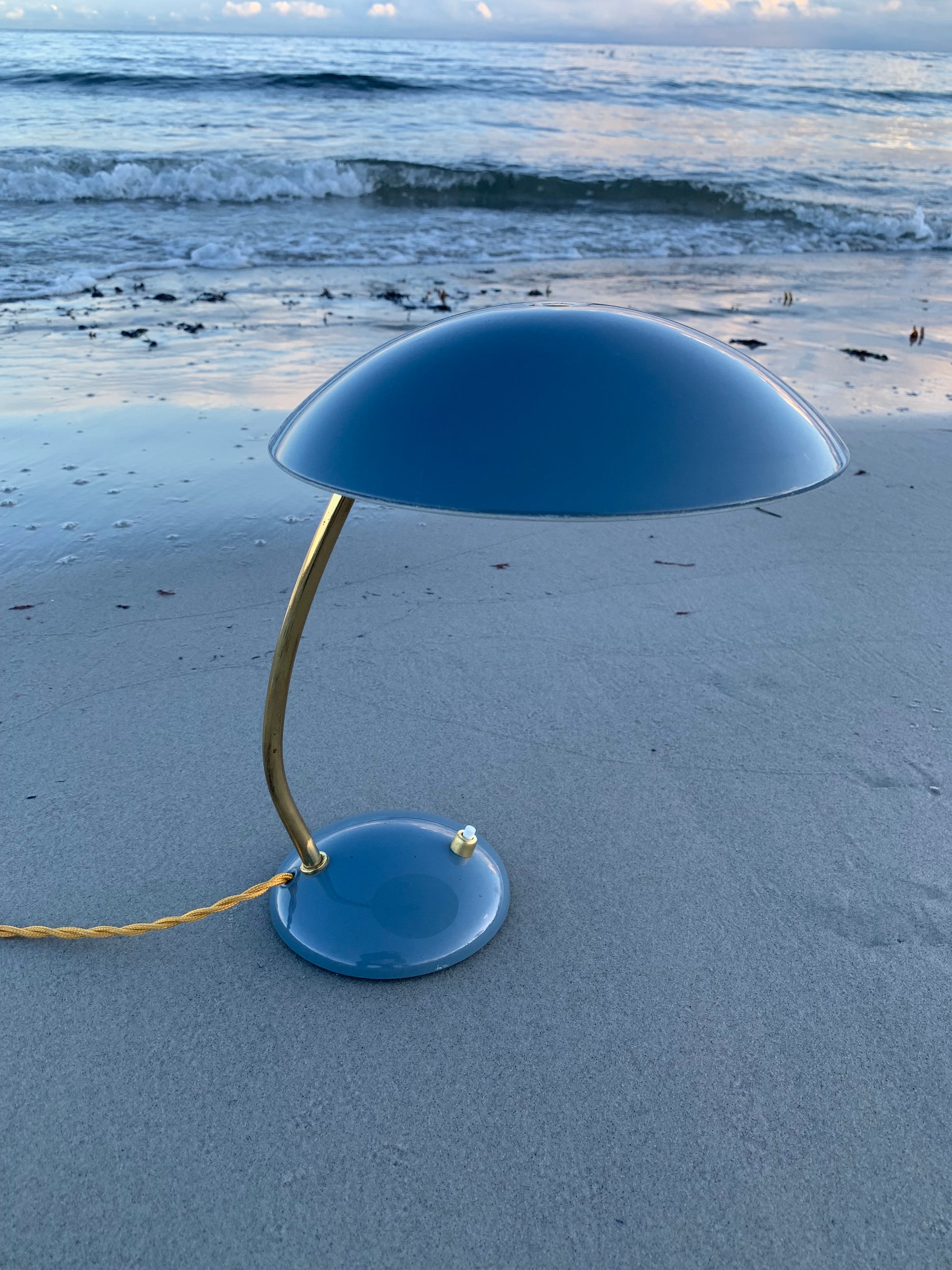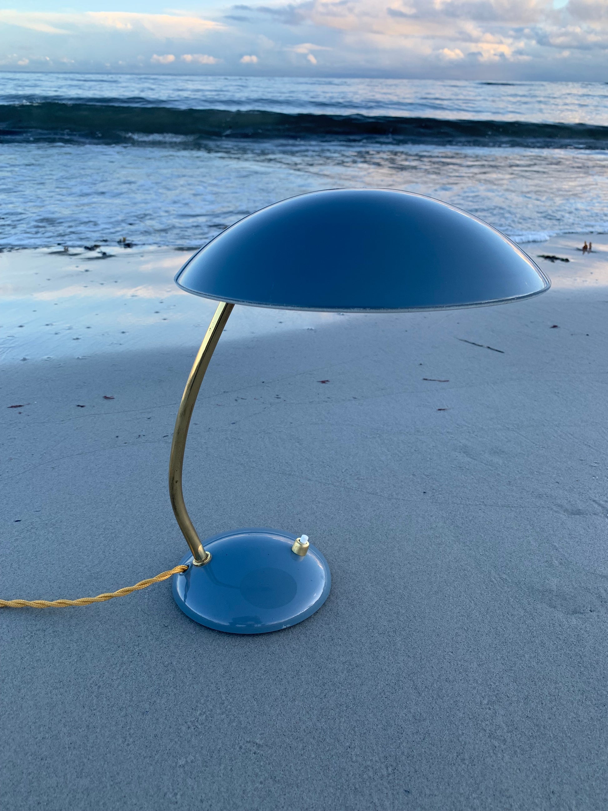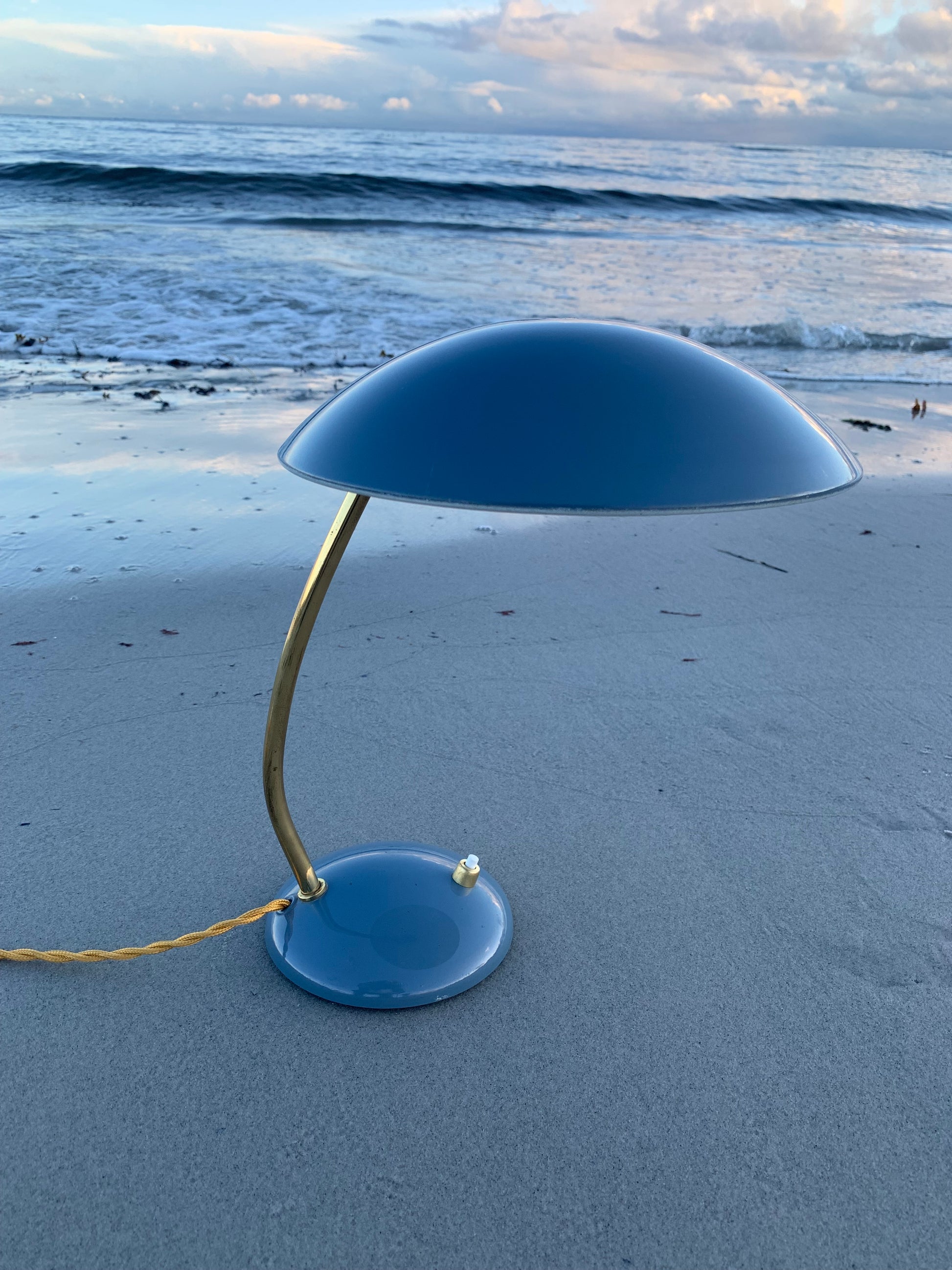 Dieses Exemplar erscheint mit der Originallackierung und neuen Kabeln. Die Lampe weist ein paar altersbedingte Gebrauchsspuren auf, die eine solche Lampe (unserer Meinung nach) fast haben müsste.