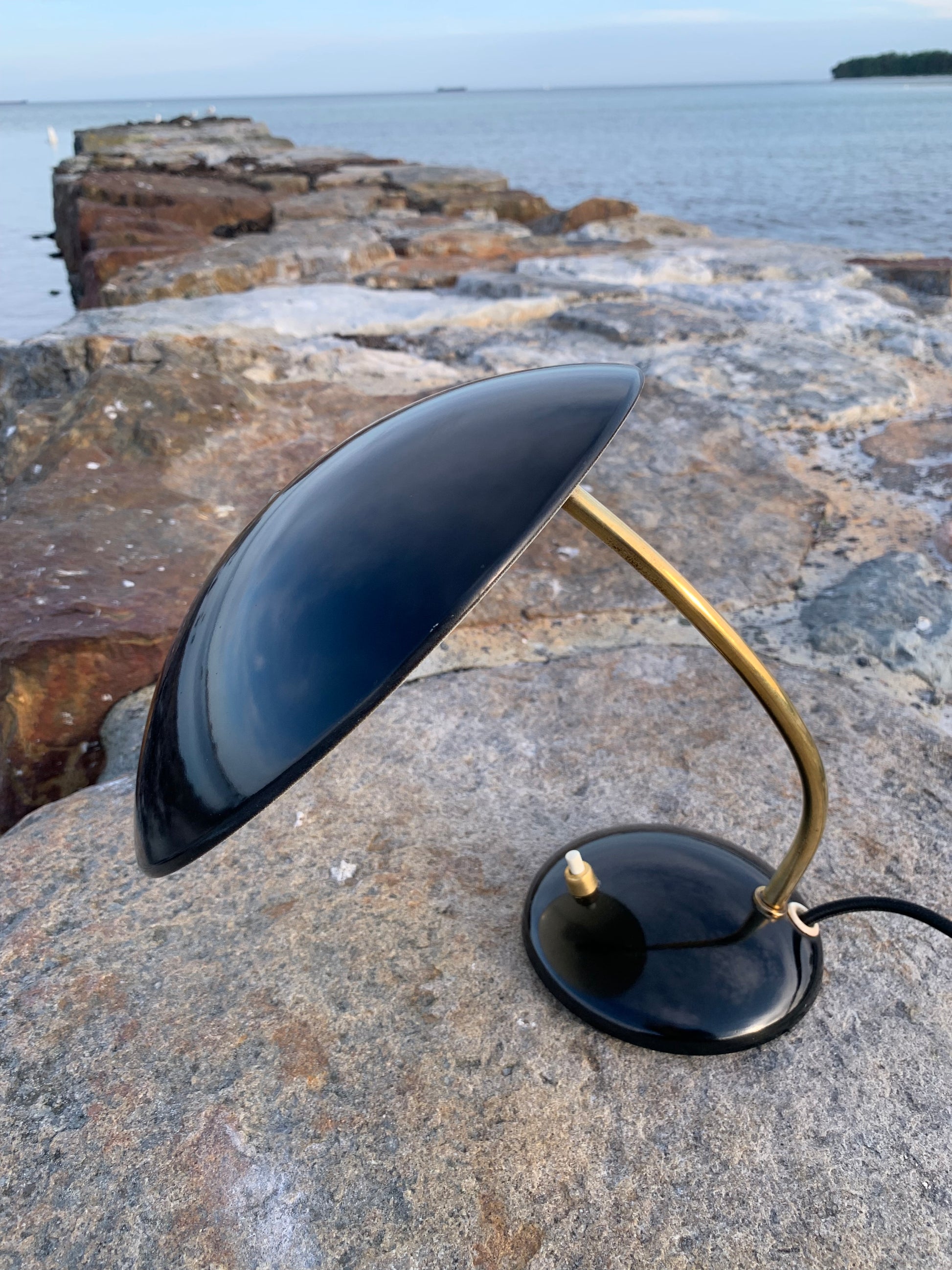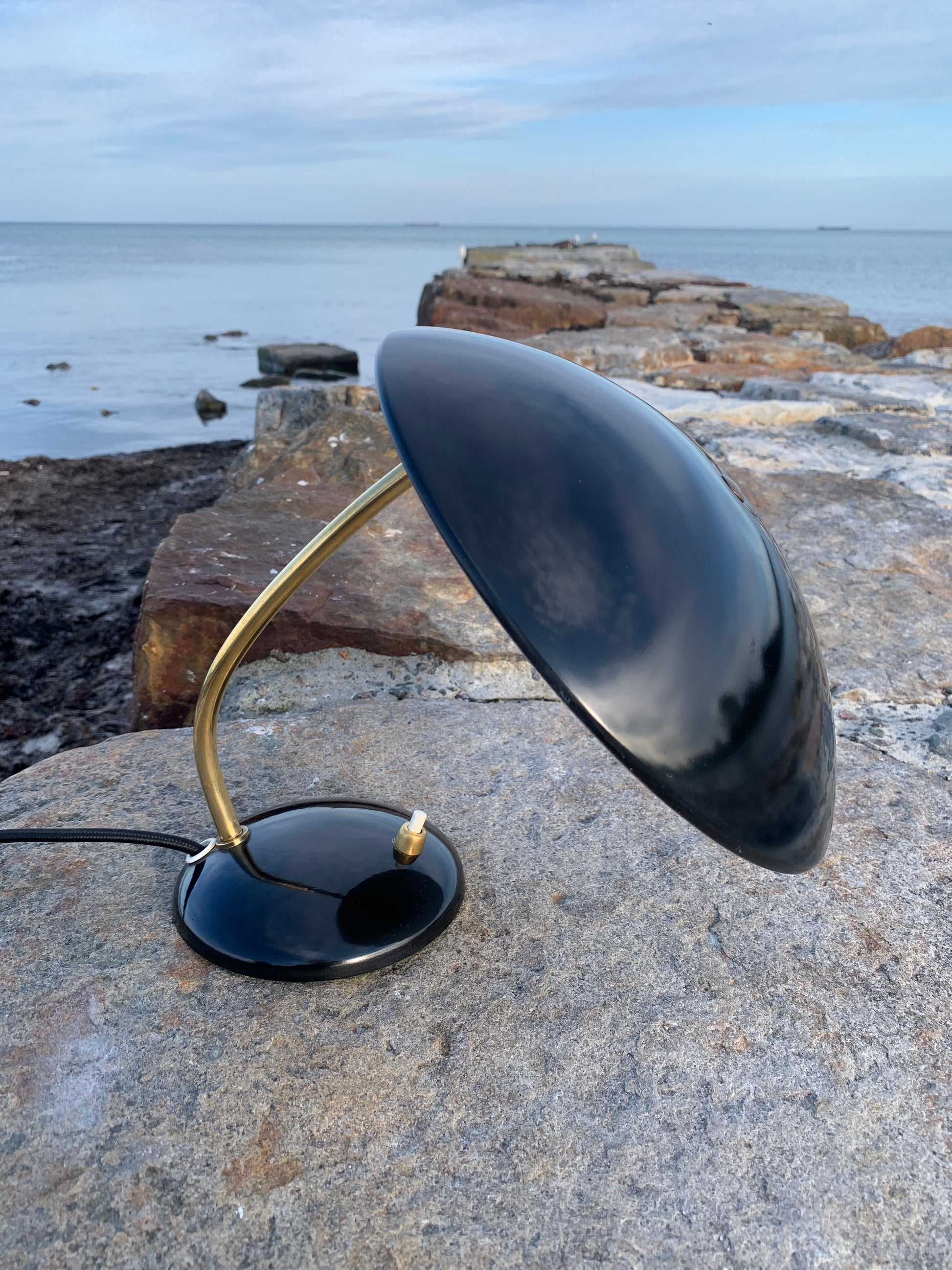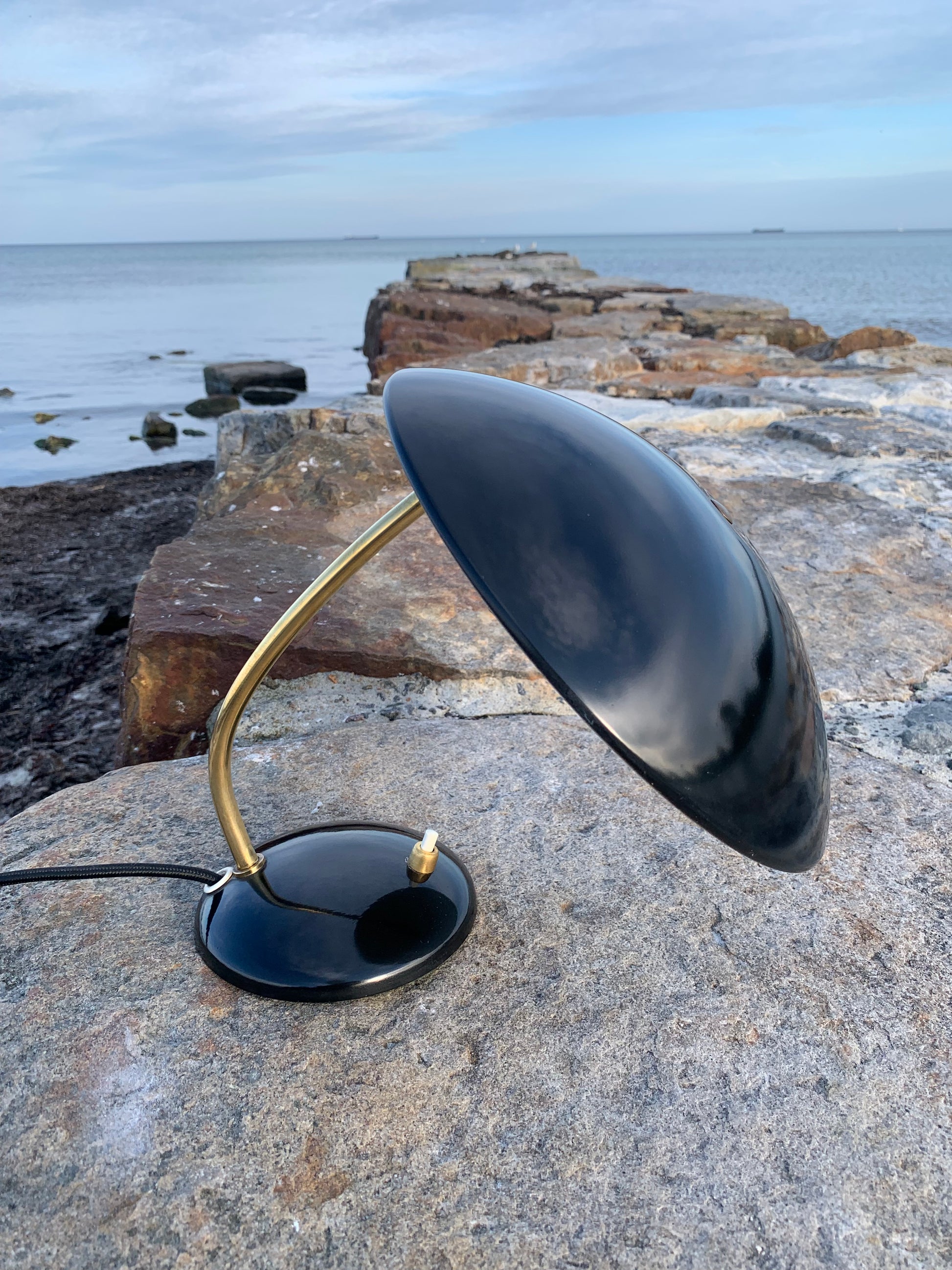 Dieses Exemplar verfügt über die Originallackierung und neue Kabel. Die Lampe weist einige altersbedingte Gebrauchsspuren auf, die eine solche Lampe (unserer Meinung nach) aufweisen sollte. Insgesamt befindet sie sich jedoch in einem selten schönen Vintage-Zustand.