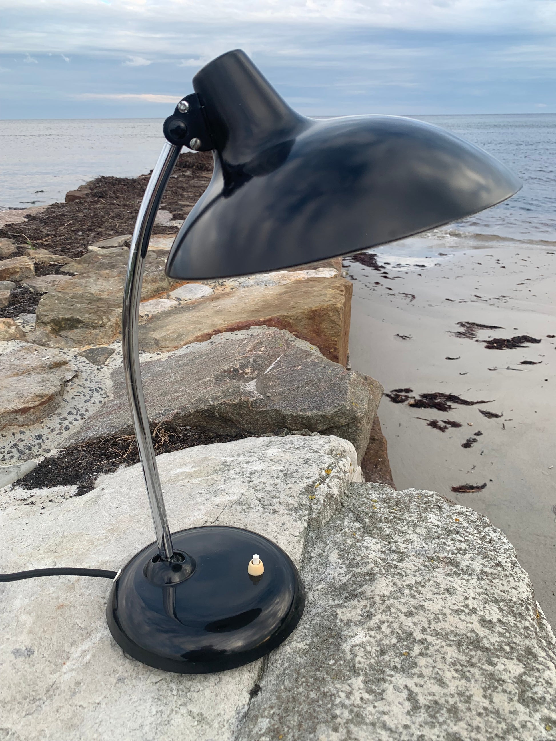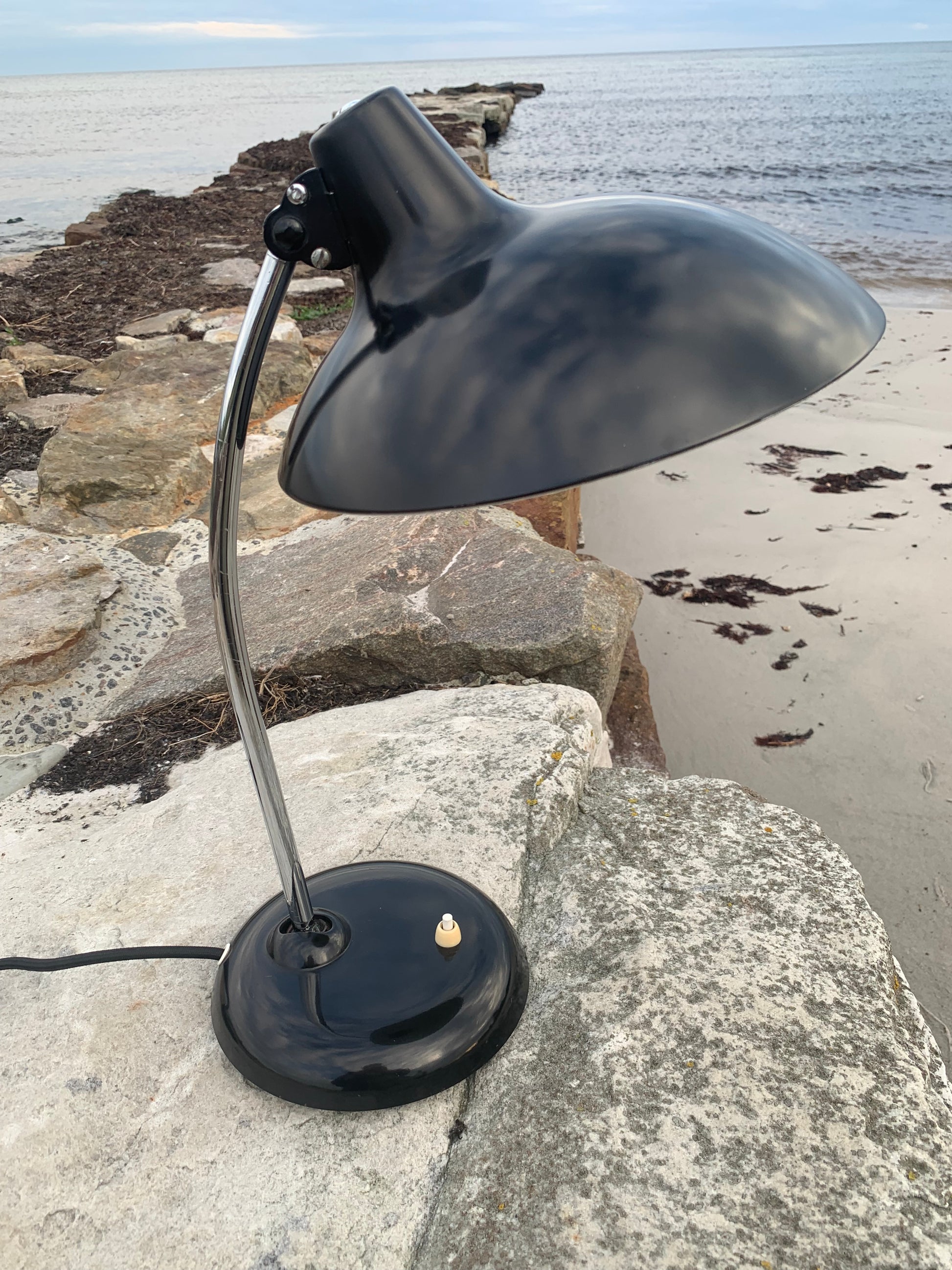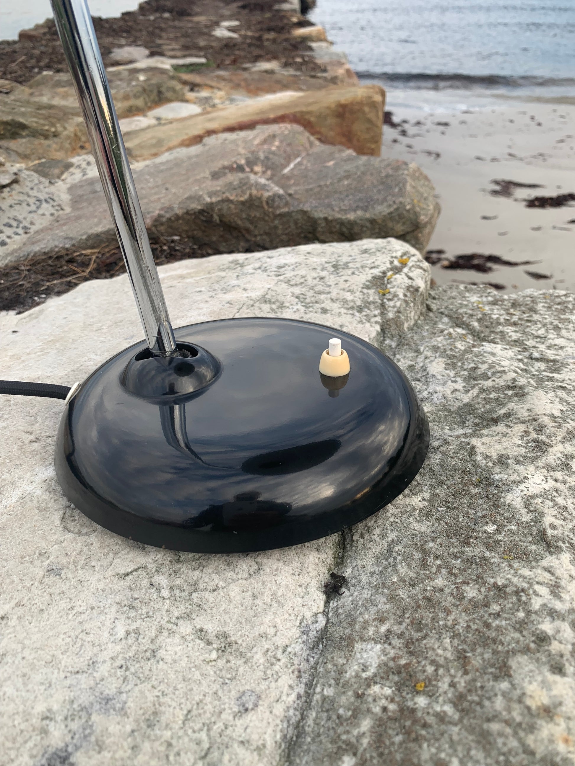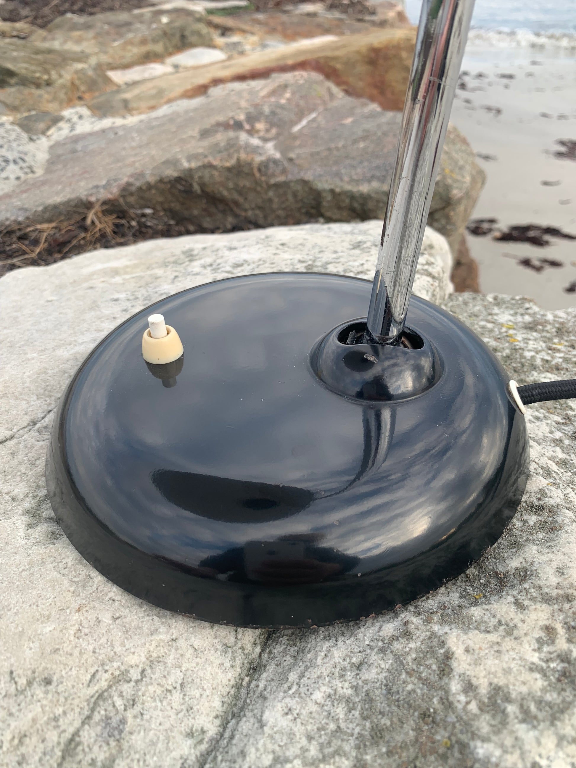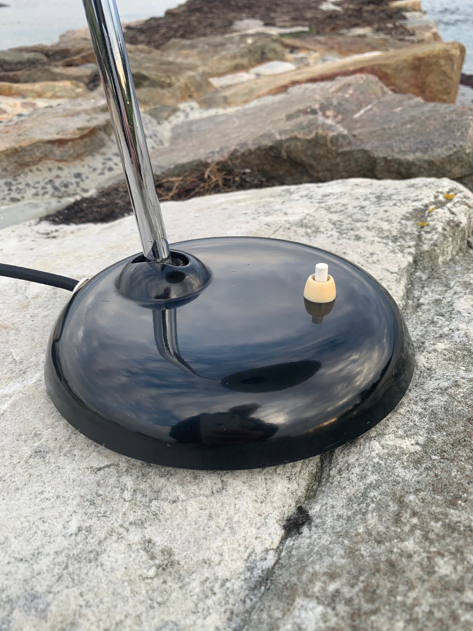 Dieses Exemplar erscheint mit der Originallackierung und neuen Kabeln. Die Lampe weist einige altersbedingte Gebrauchsspuren auf, die eine solche Lampe (unserer Meinung nach) fast haben müsste.