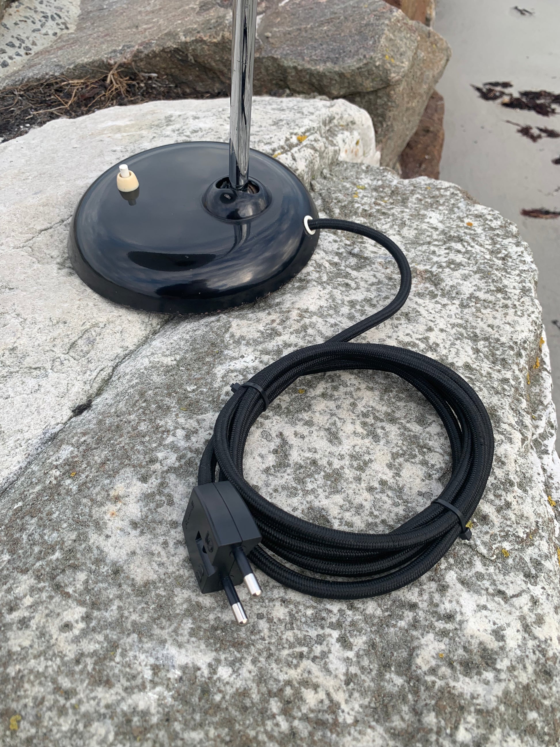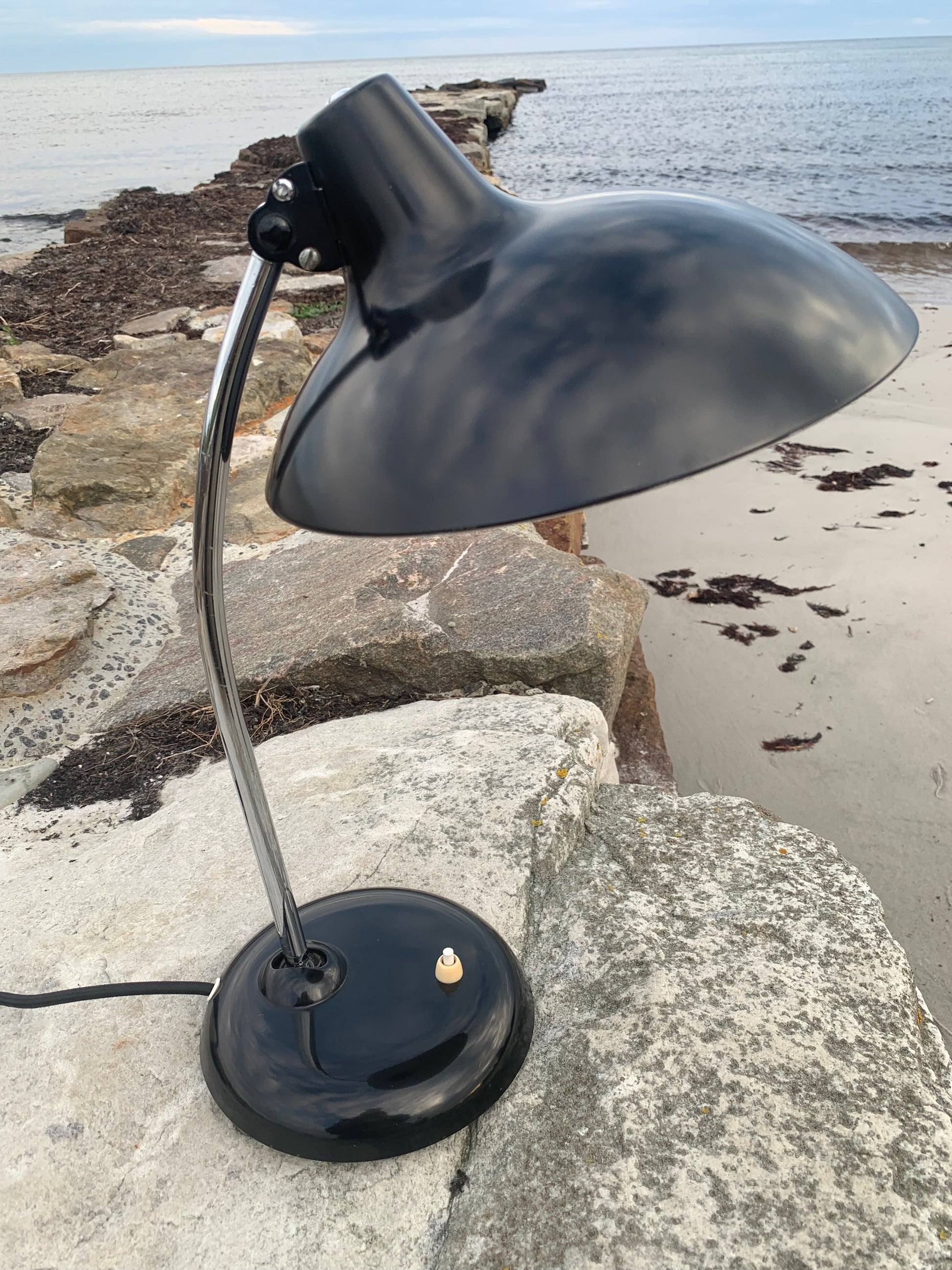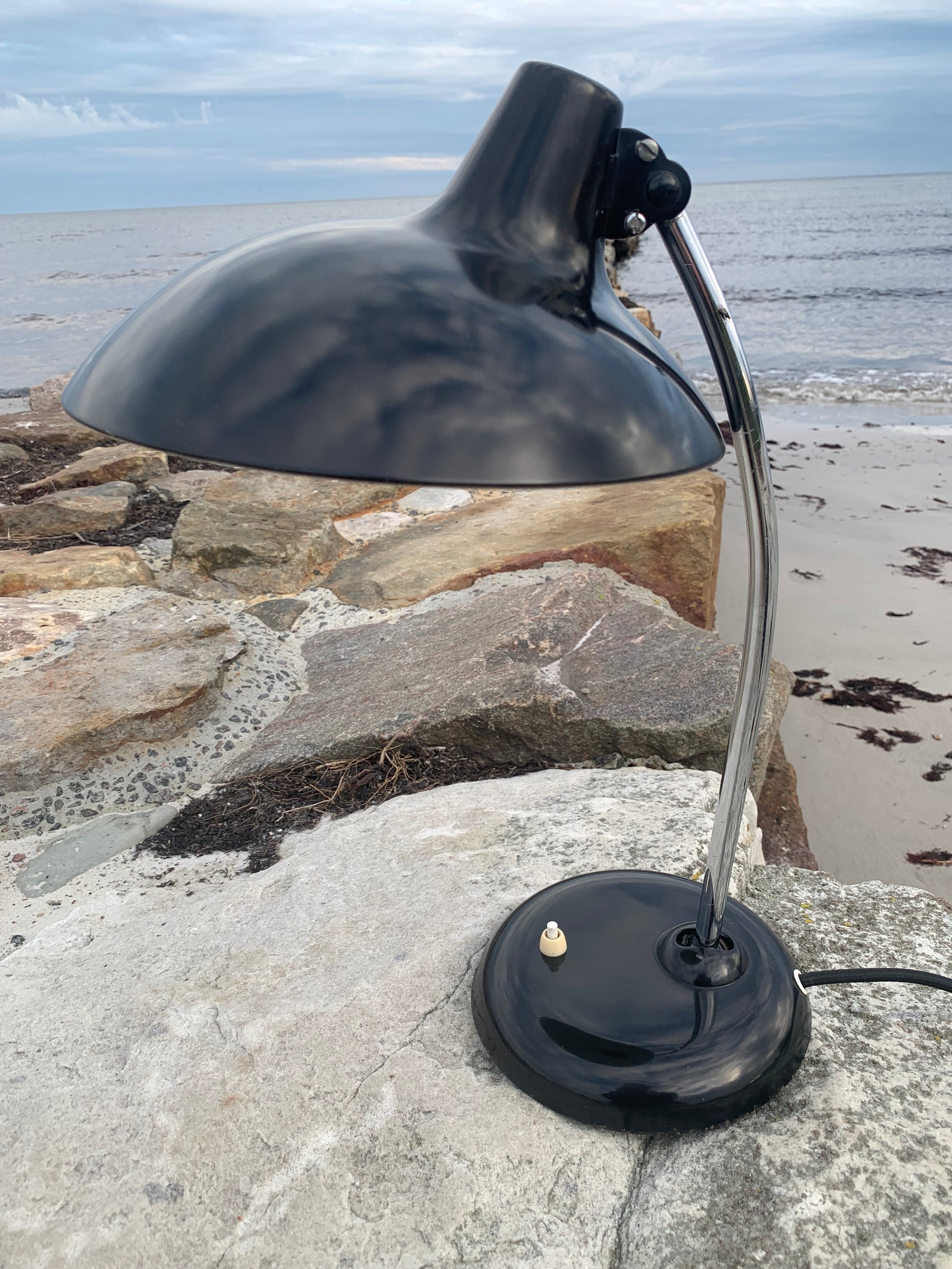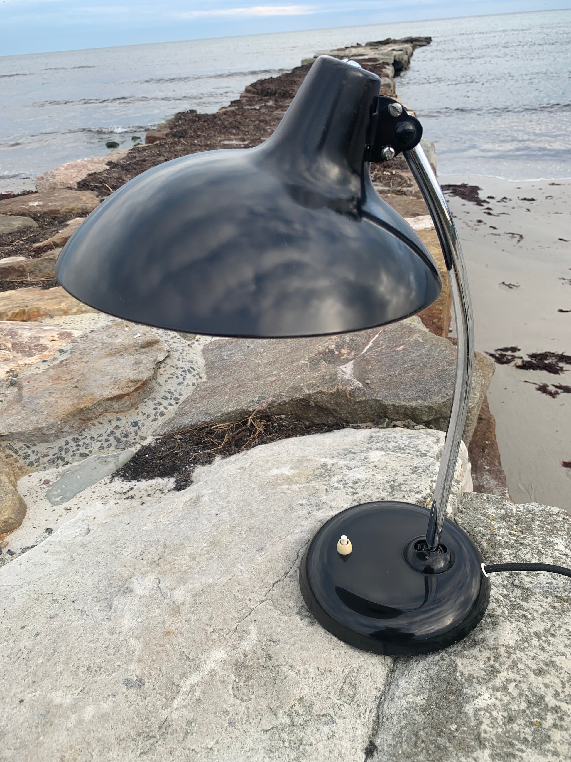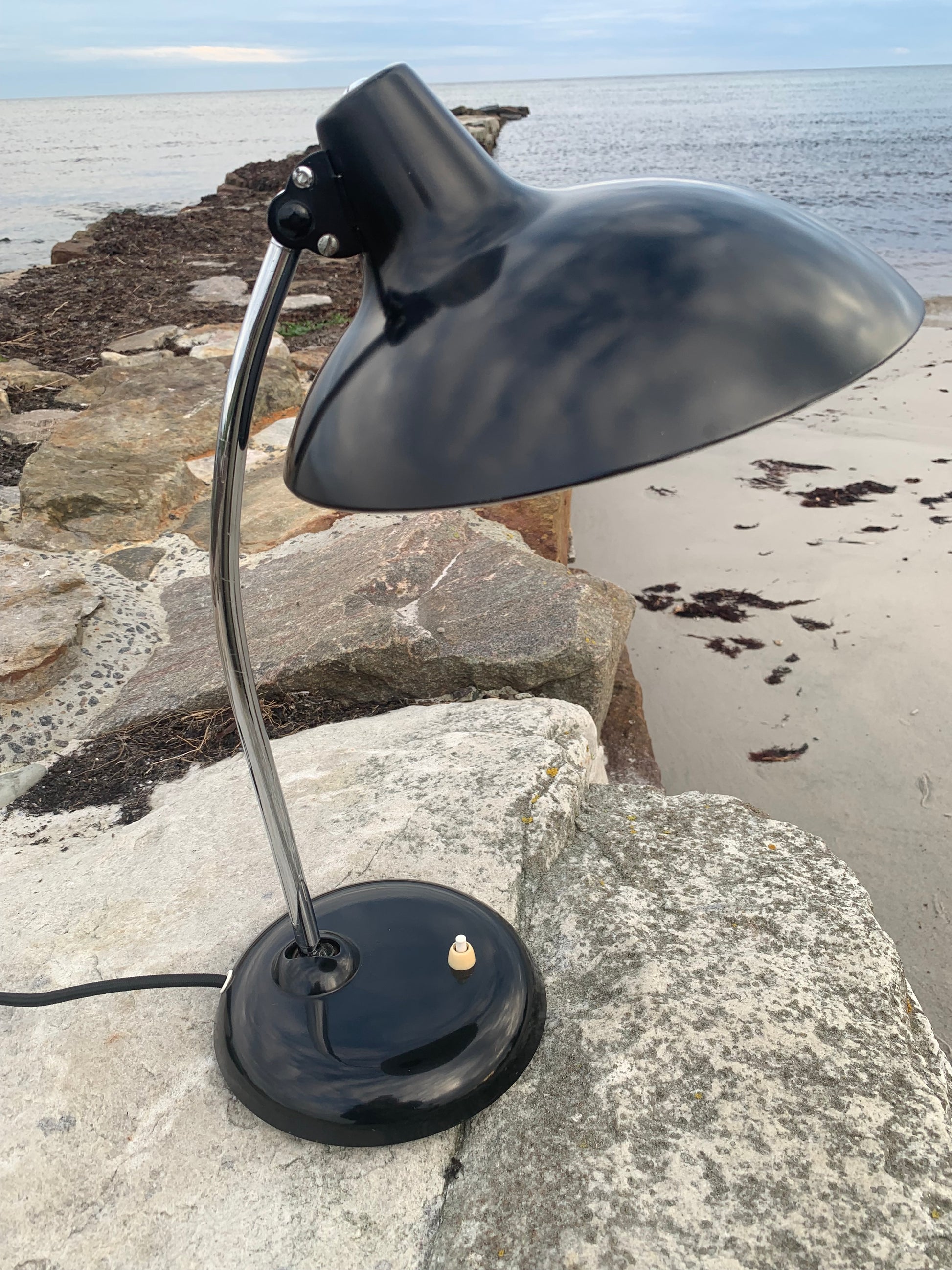 Dieses Exemplar erscheint mit der Originallackierung und neuen Kabeln. Die Lampe weist einige altersbedingte Gebrauchsspuren auf, die eine solche Lampe (unserer Meinung nach) fast haben müsste.