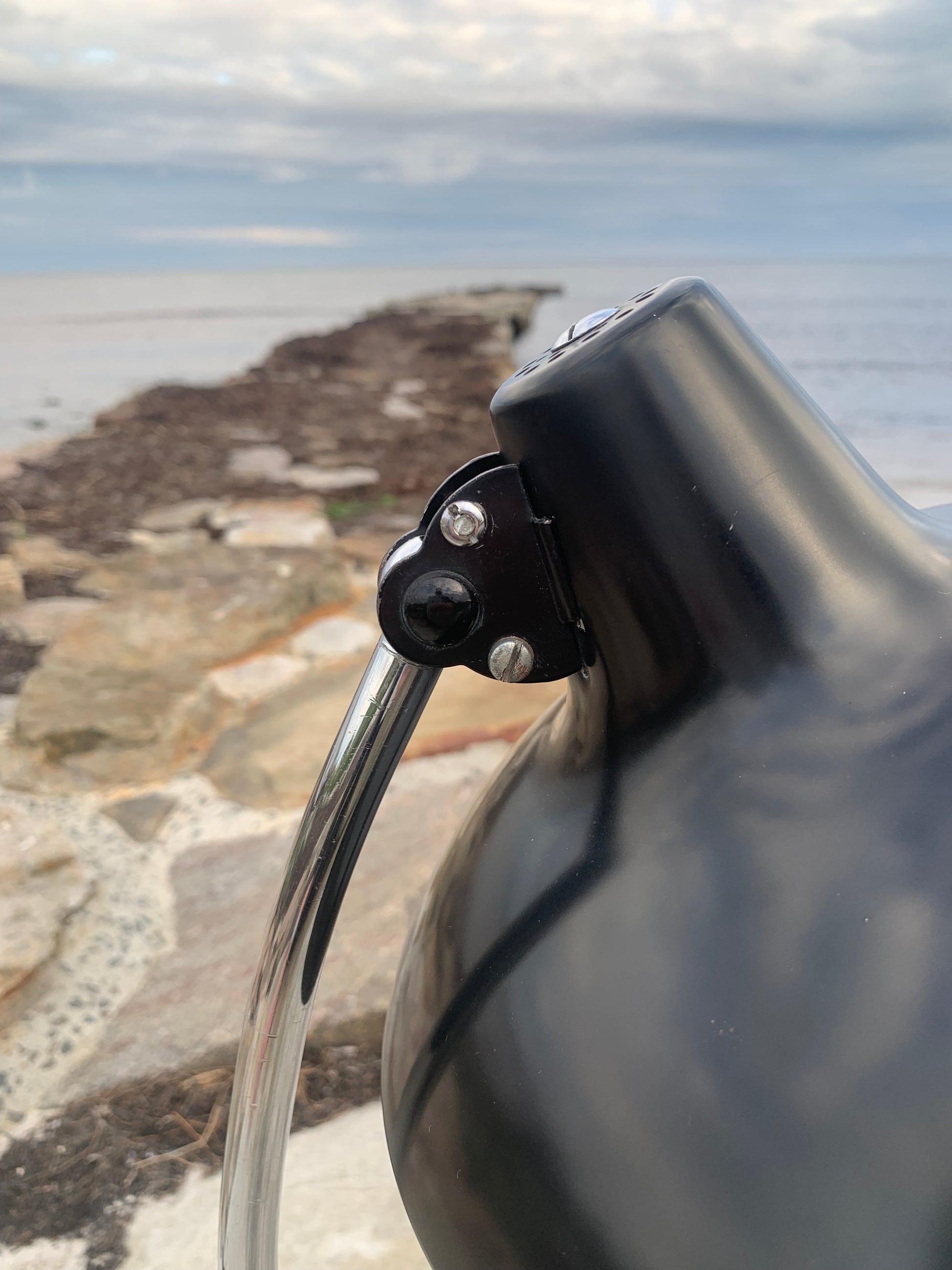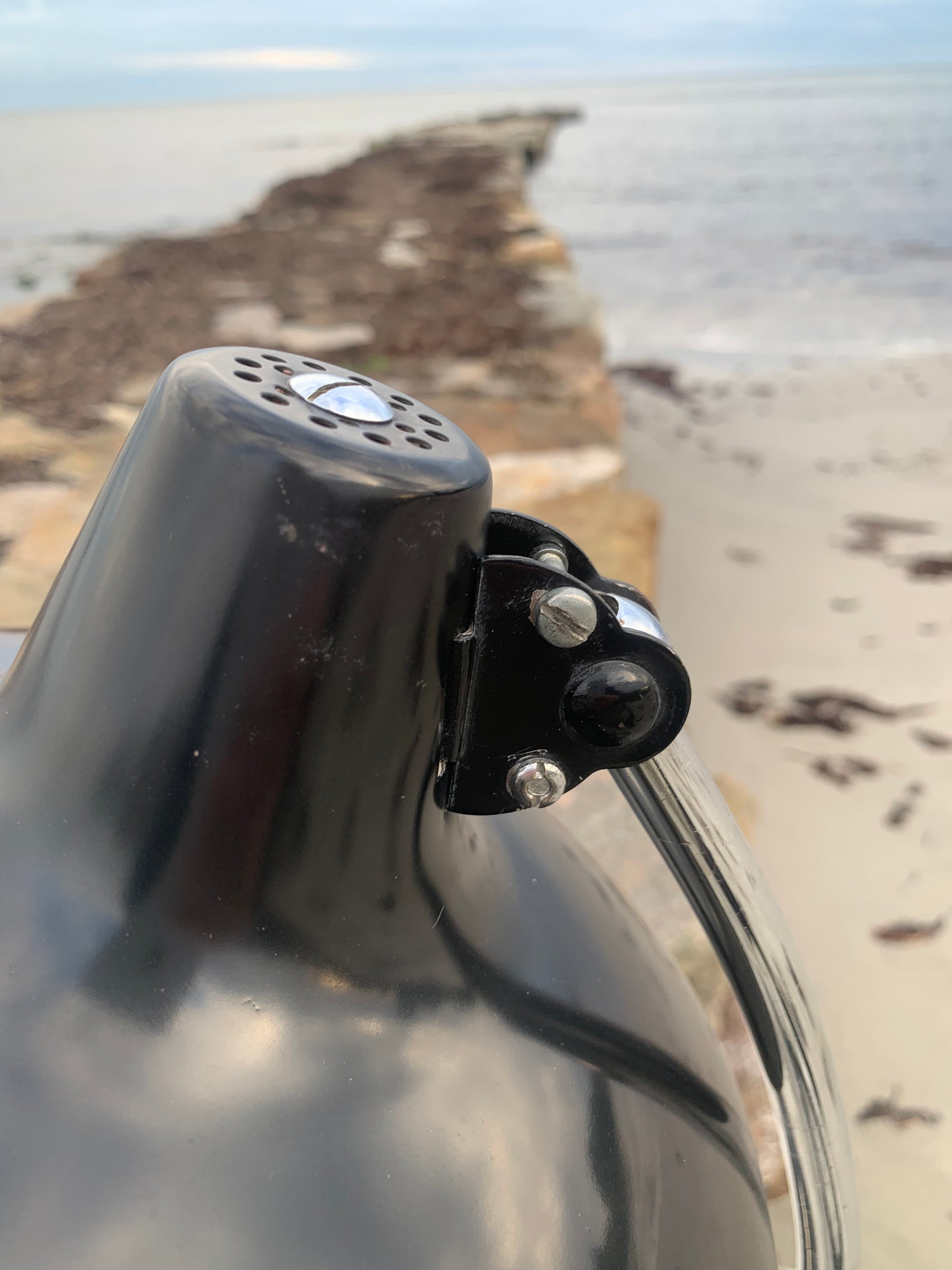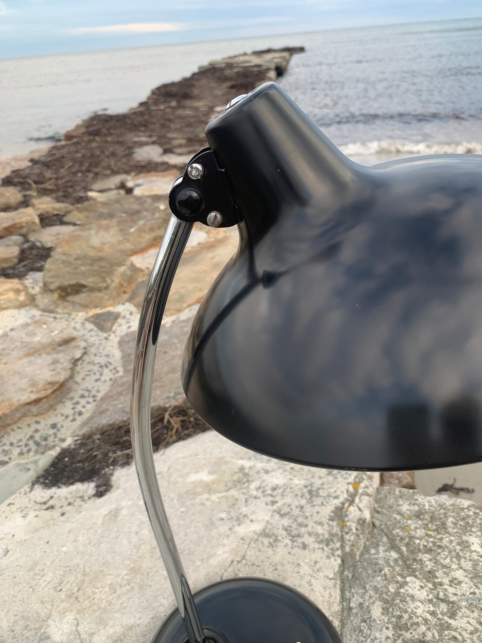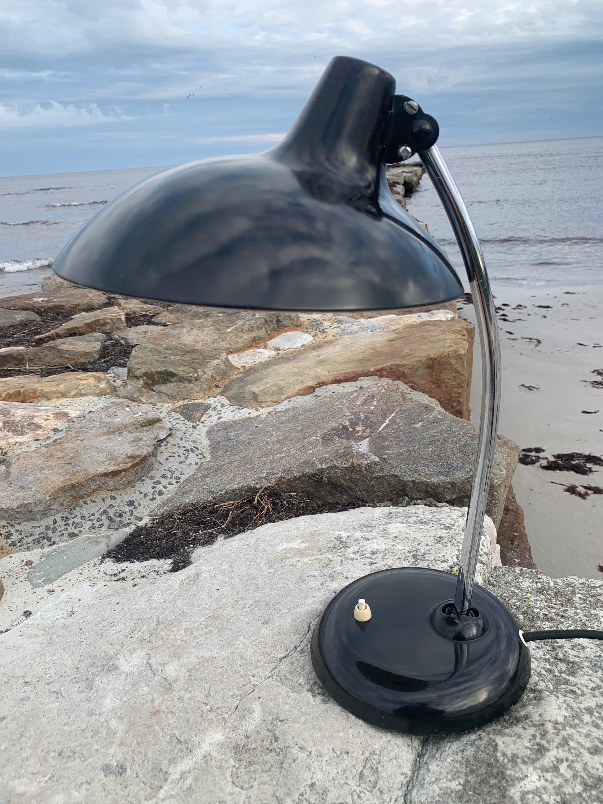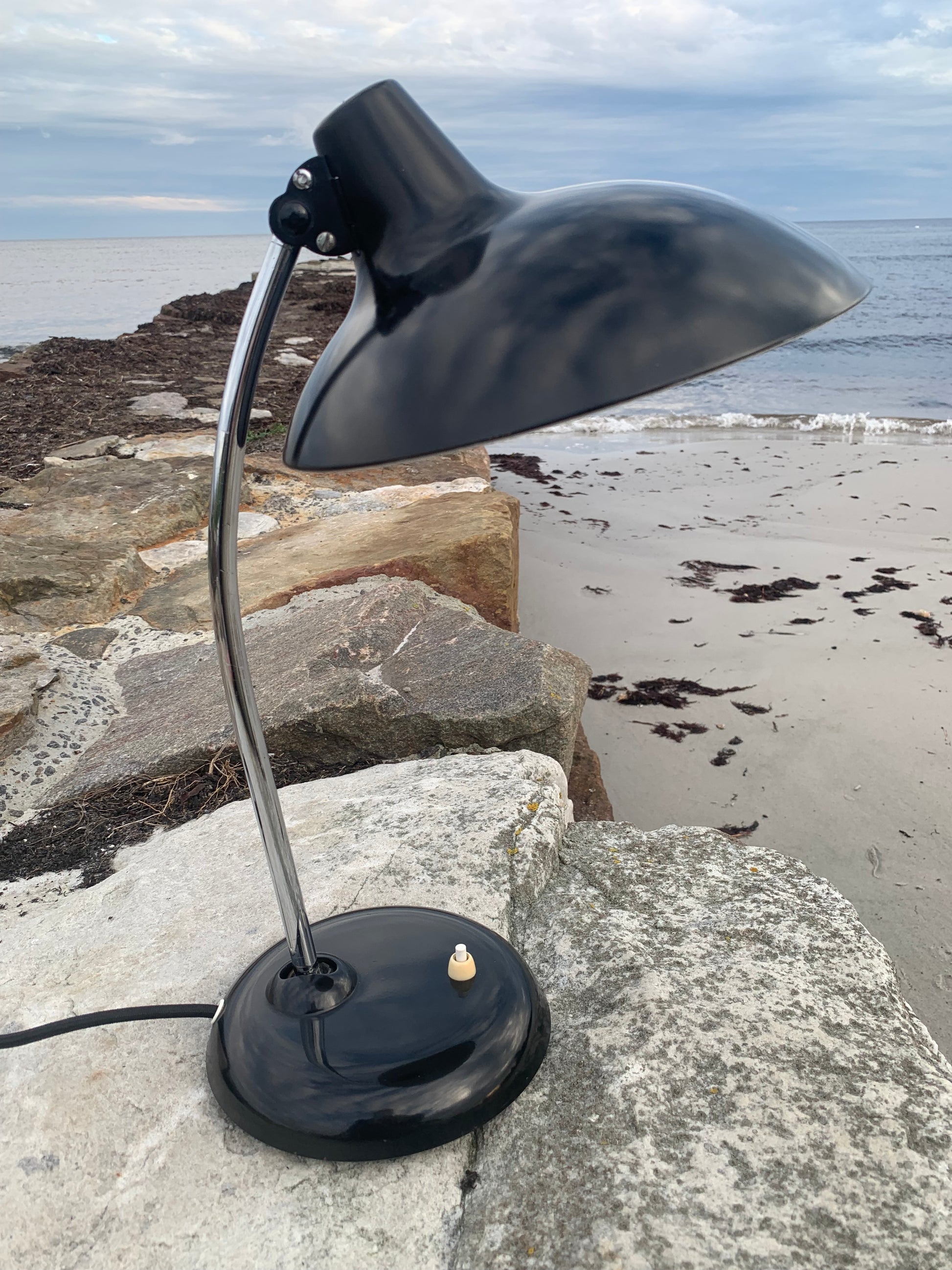 Dieses Exemplar erscheint mit der Originallackierung und neuen Kabeln. Die Lampe weist einige altersbedingte Gebrauchsspuren auf, die eine solche Lampe (unserer Meinung nach) fast haben müsste.