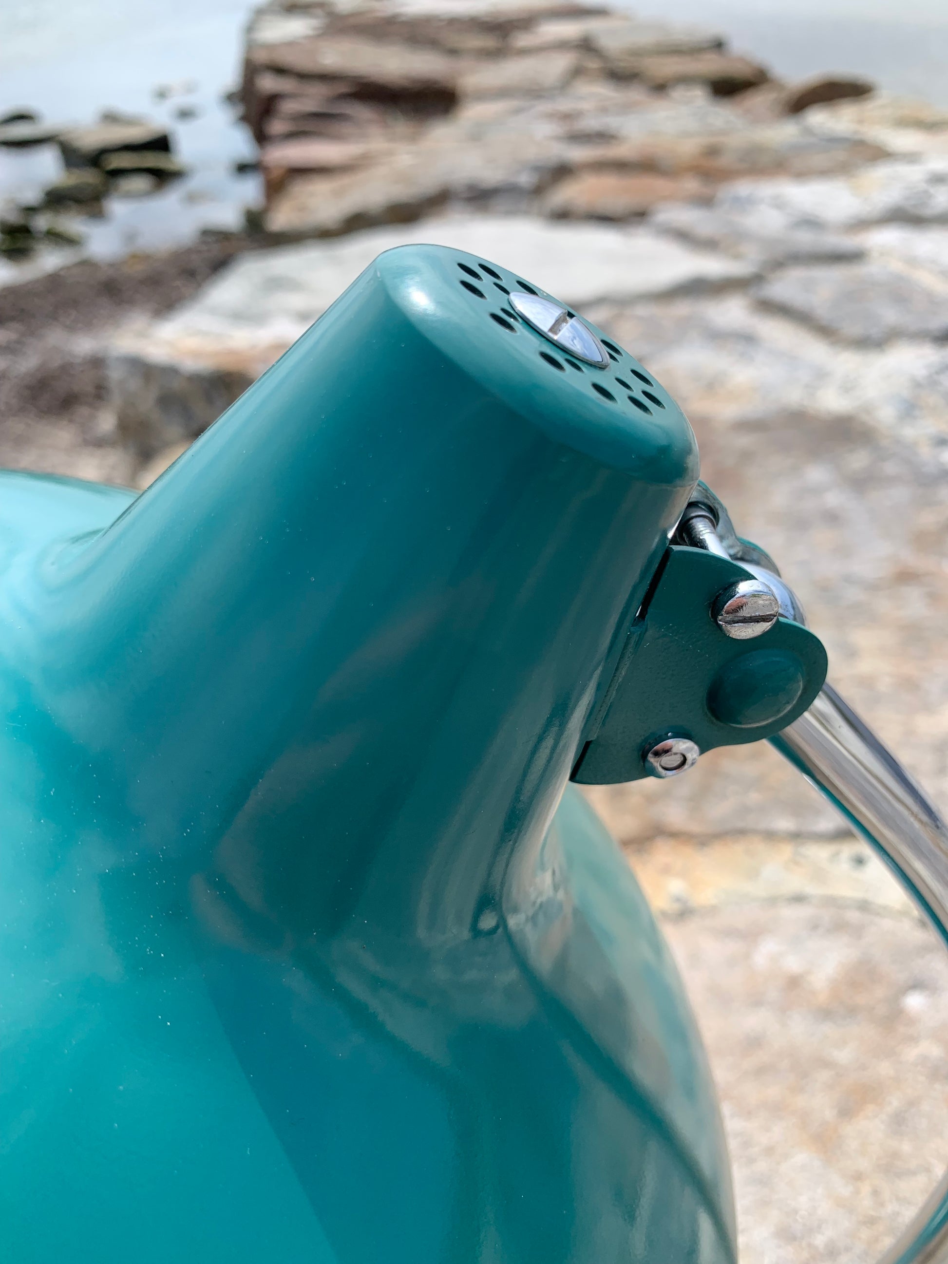 Dieses Exemplar hat die Originallackierung und neue Kabel. Die Lampe weist einige altersbedingte Gebrauchsspuren auf, die eine solche Lampe (unserer Meinung nach) haben sollte. Insgesamt befindet sie sich jedoch in einem wirklich schönen Vintage-Zustand.