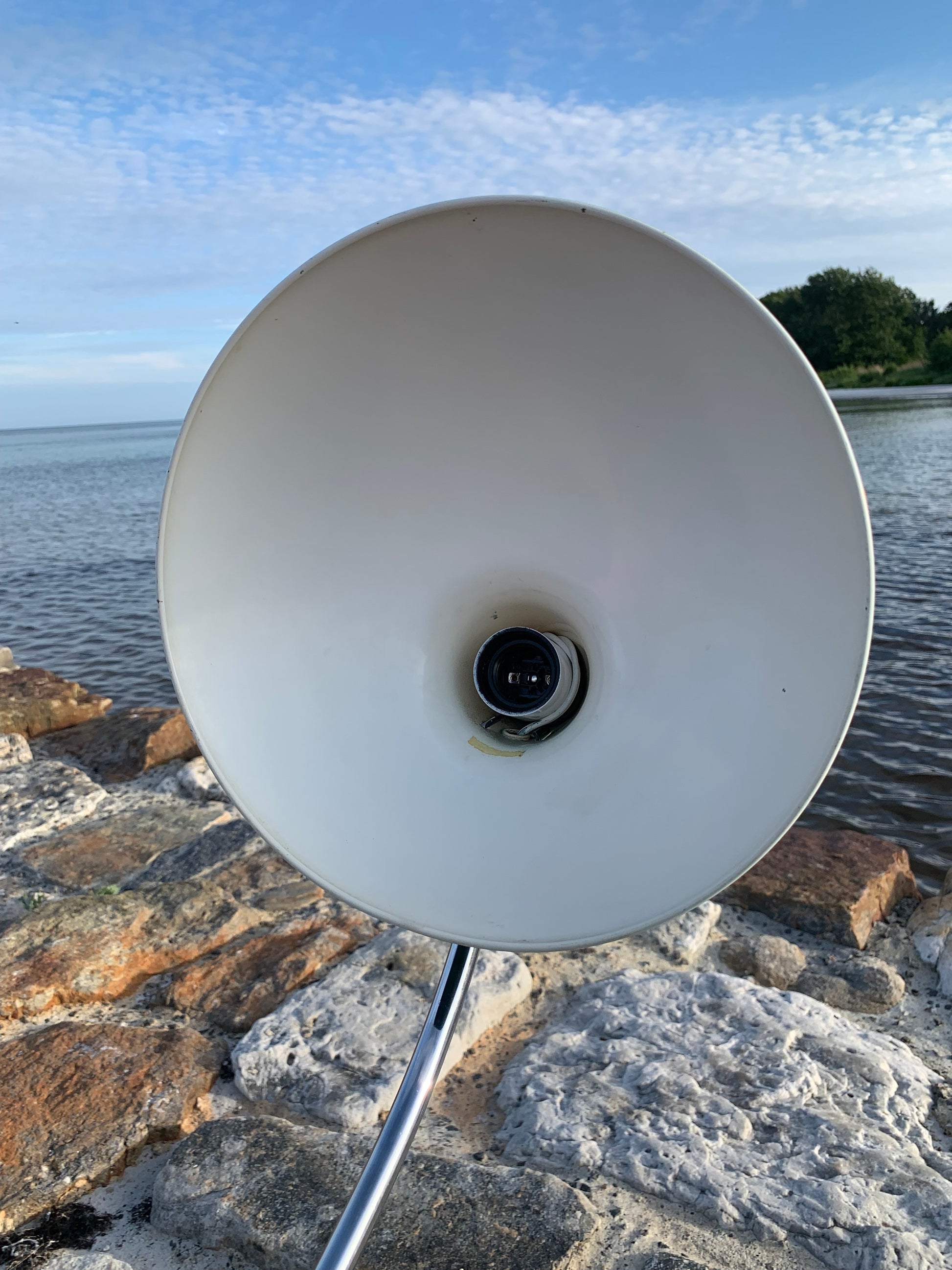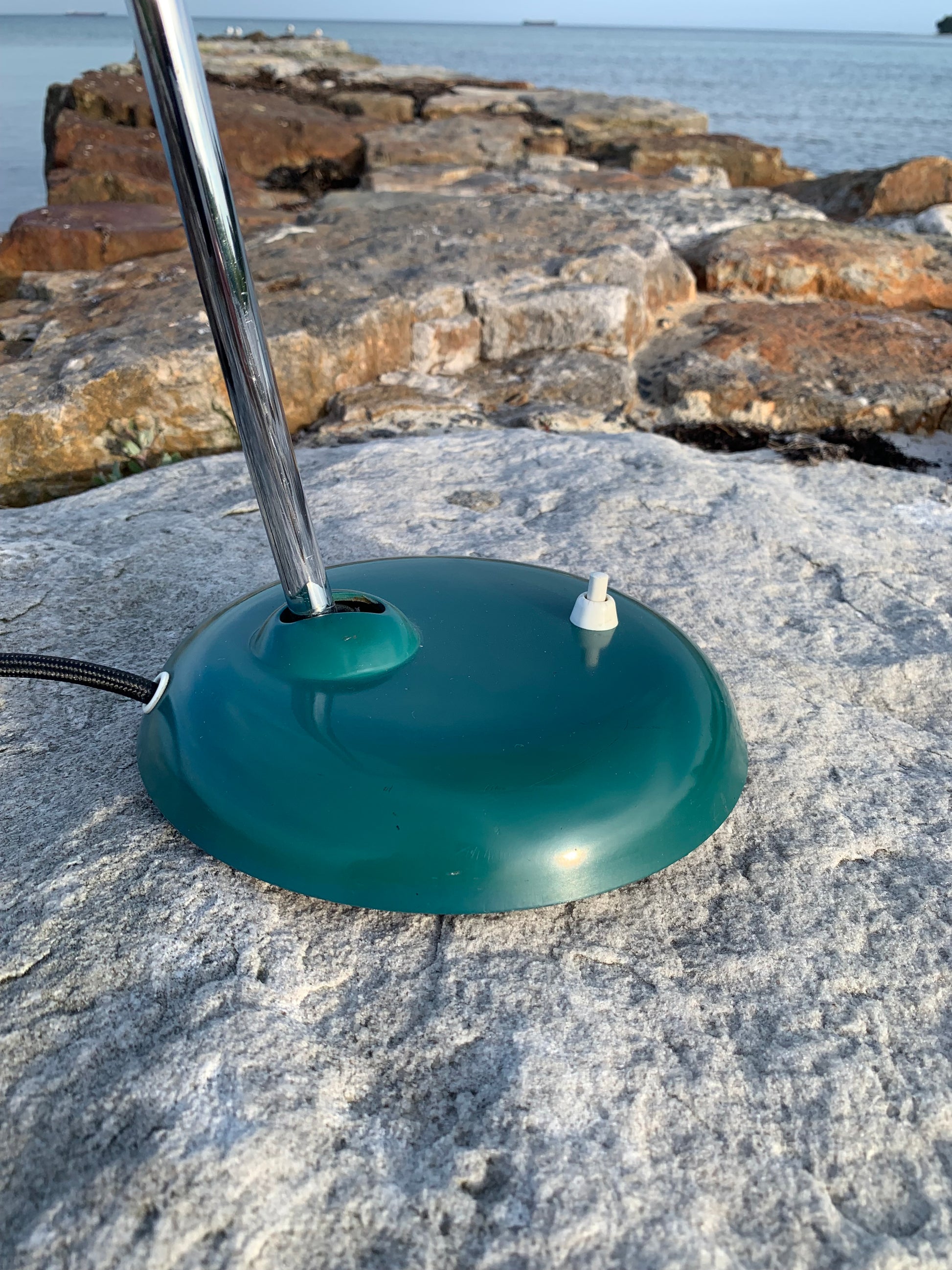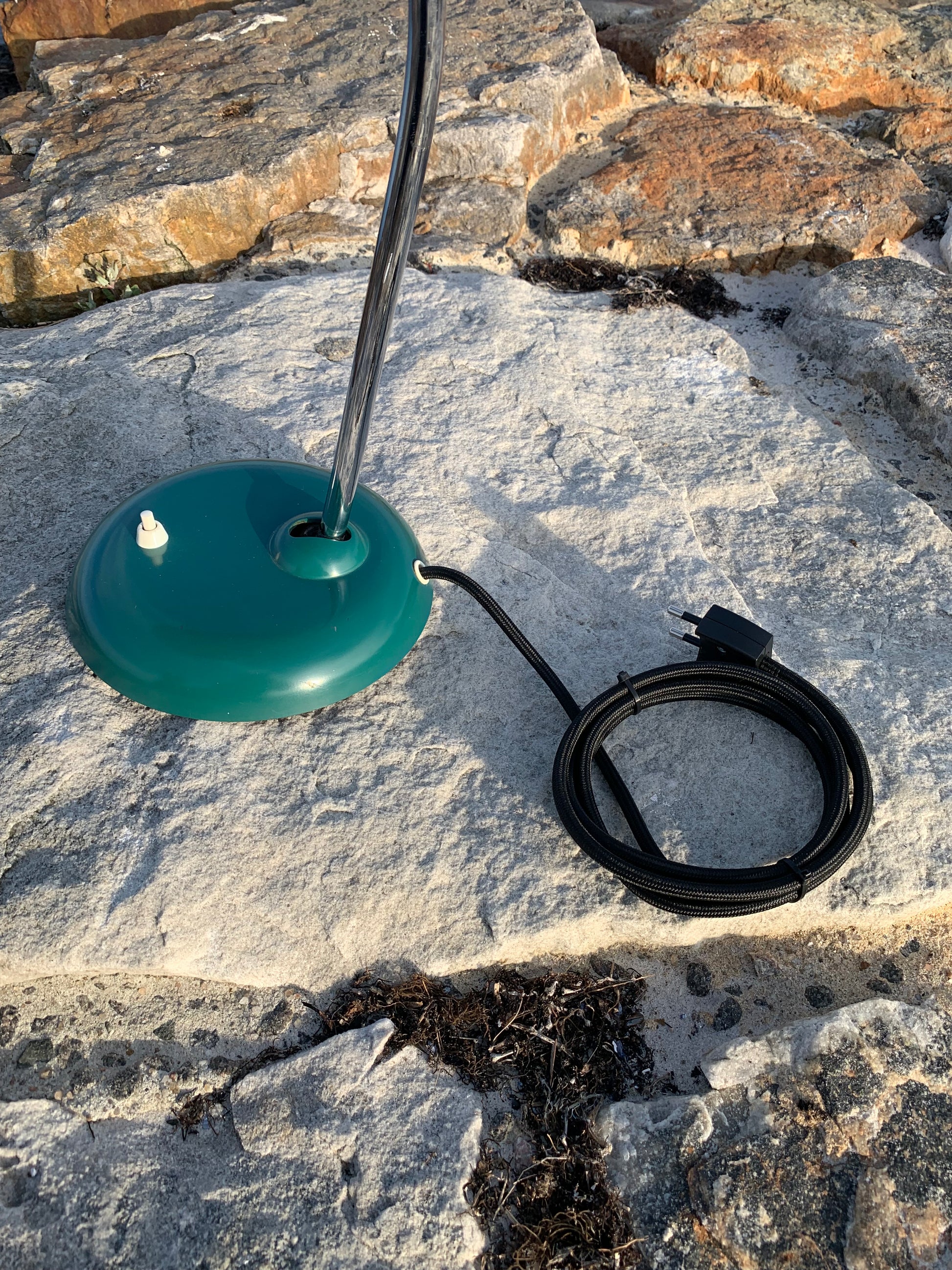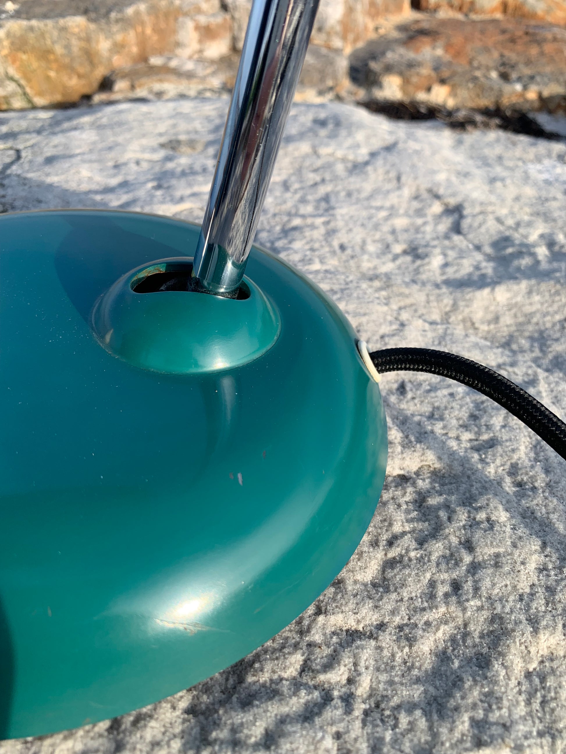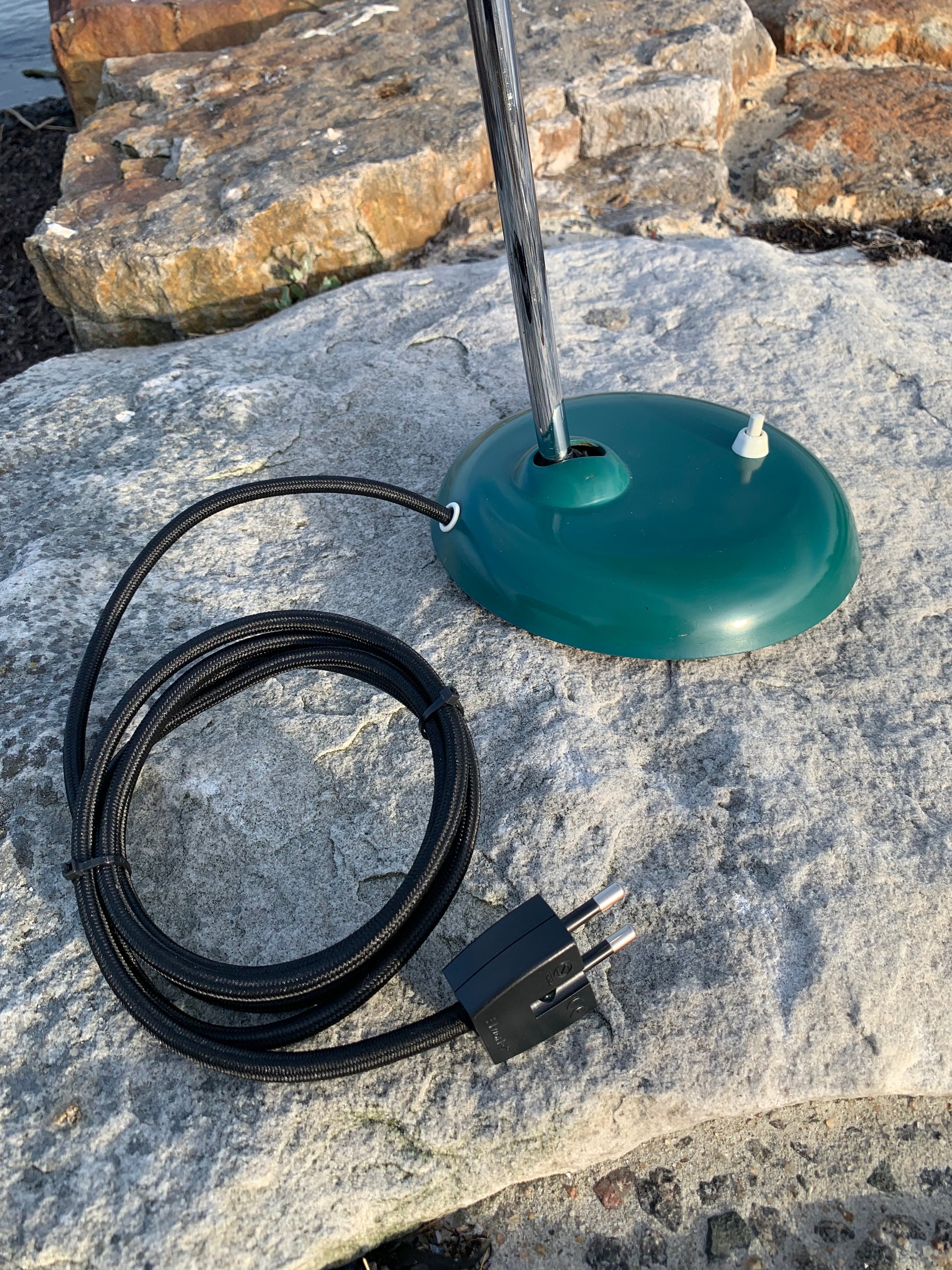 Dieses Exemplar verfügt über den Originallack und neue Kabel. Die Lampe weist einige altersbedingte Gebrauchsspuren auf, die eine solche Lampe (unserer Meinung nach) aufweisen sollte.