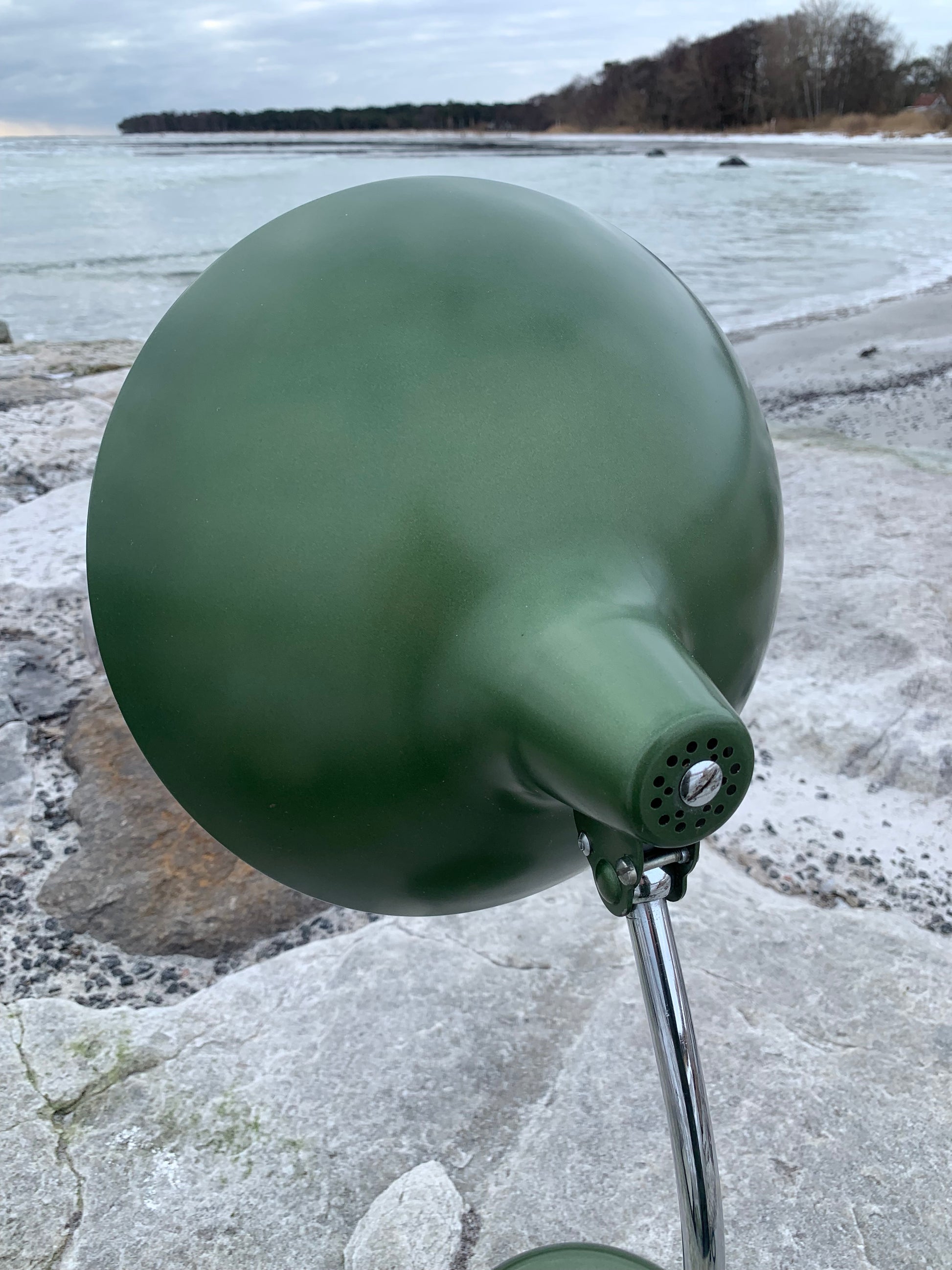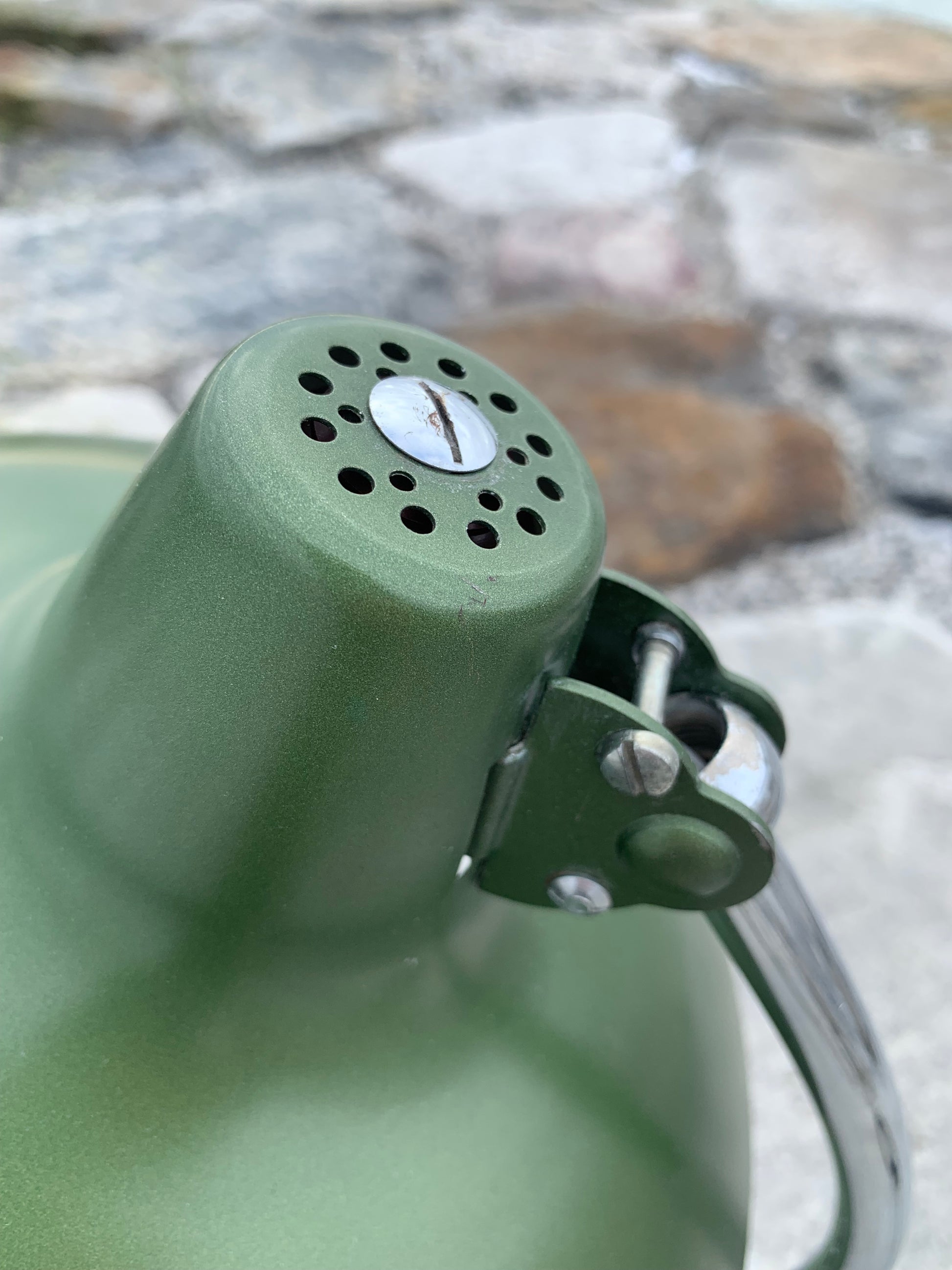 Dieses Exemplar erscheint mit der Originallackierung und neuen Kabeln. Die Lampe weist einige altersbedingte Gebrauchsspuren auf, die eine solche Lampe (unserer Meinung nach) fast haben müsste.
