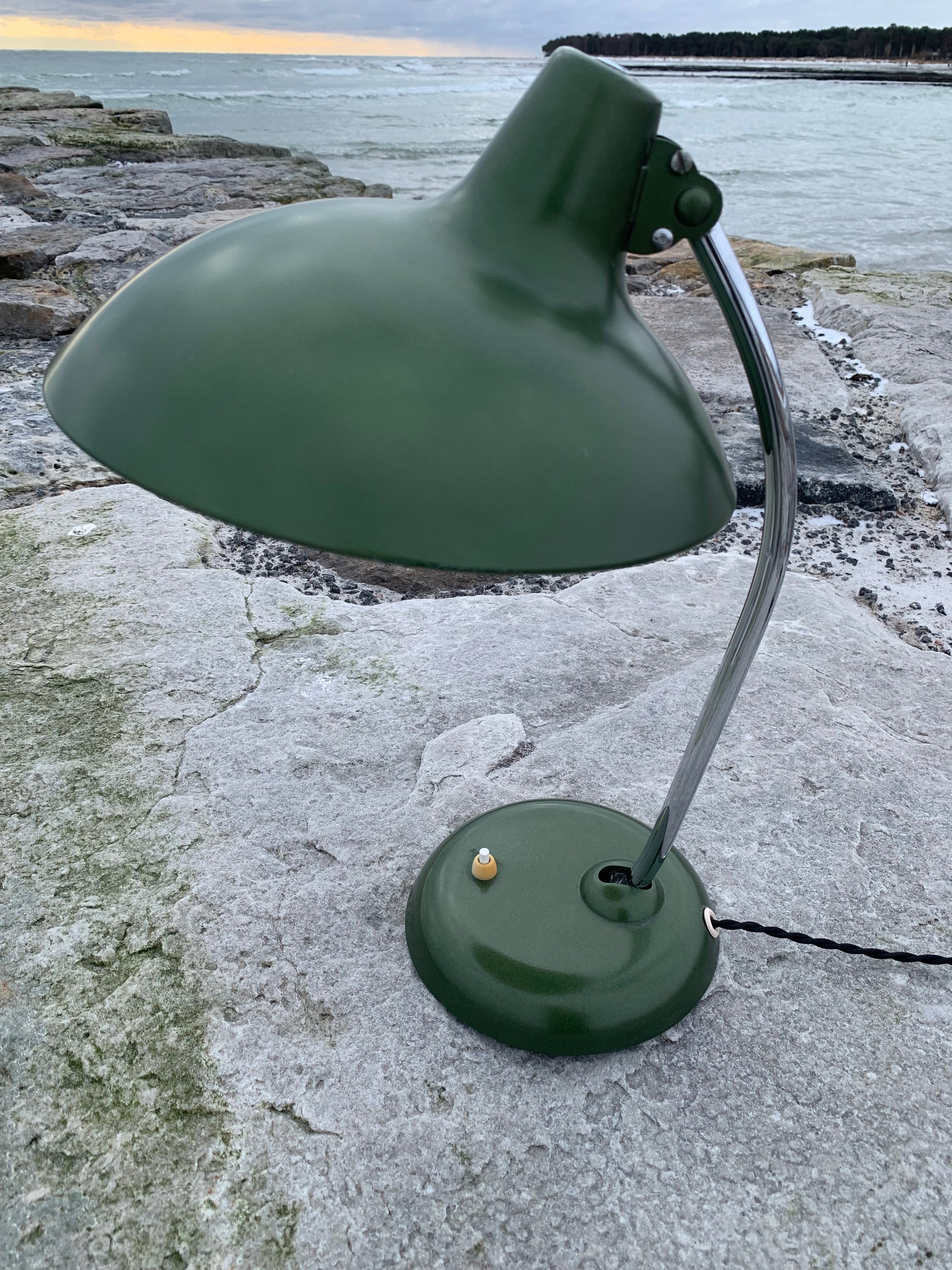 Wunderschöne Kaiser Idell-Lampe, entworfen von Christian Dell. Dieser schöne Klassiker richtet sich an Sie, die die Schönheit eines guten und zeitlosen Designs sehen. Die schönen alten Kaiser Idell-Lampen zeugen von guter Qualität und guter Handwerkskunst. Diese schönen alten Vintage-Lampen weisen oft einige altersbedingte Gebrauchsspuren auf, die sowohl die Authentizität als auch die Originalität verstärken. Diese Spuren zeugen von der jahrzehntelangen Reise der Lampe und erzählen ihre Geschichte.