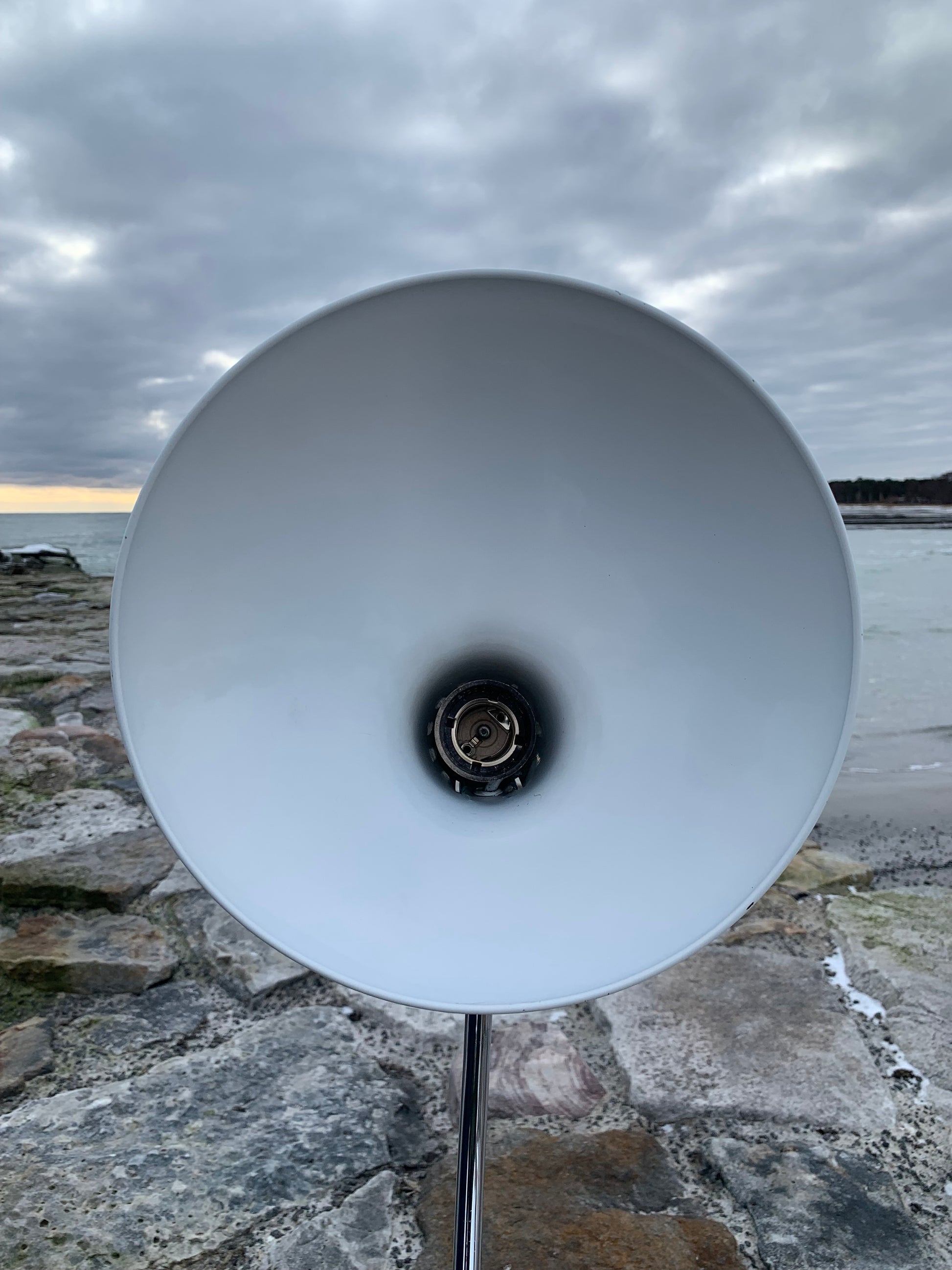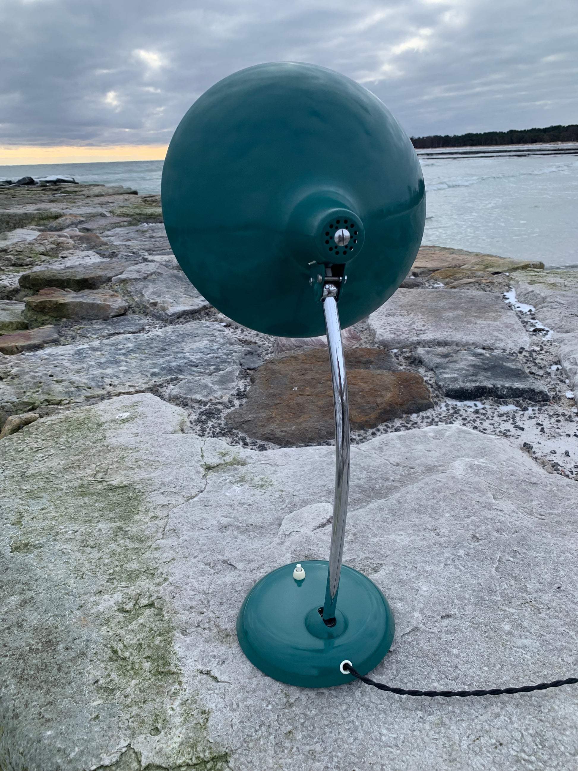 Dieses Exemplar besitzt noch den Originallack und neue Kabel. Die Lampe weist altersbedingte Gebrauchsspuren auf, die bei einer solchen Lampe (unserer Meinung nach) üblich sind.