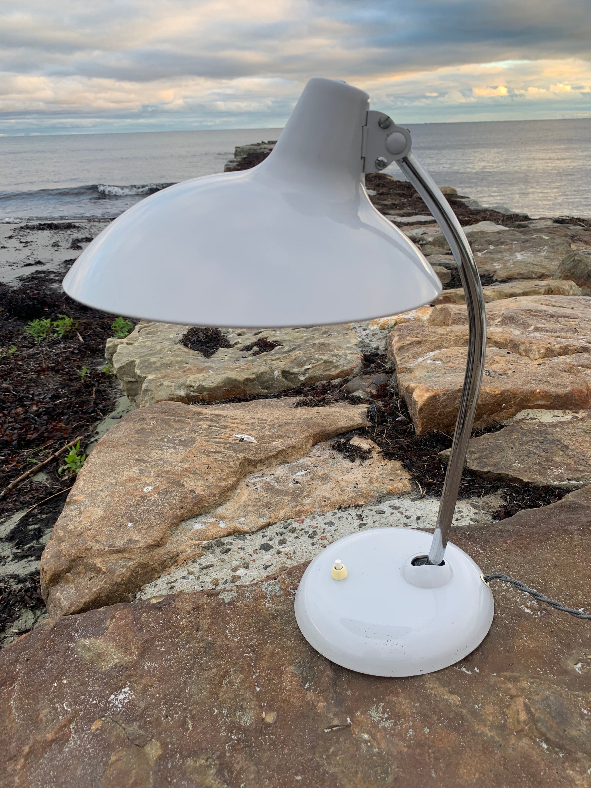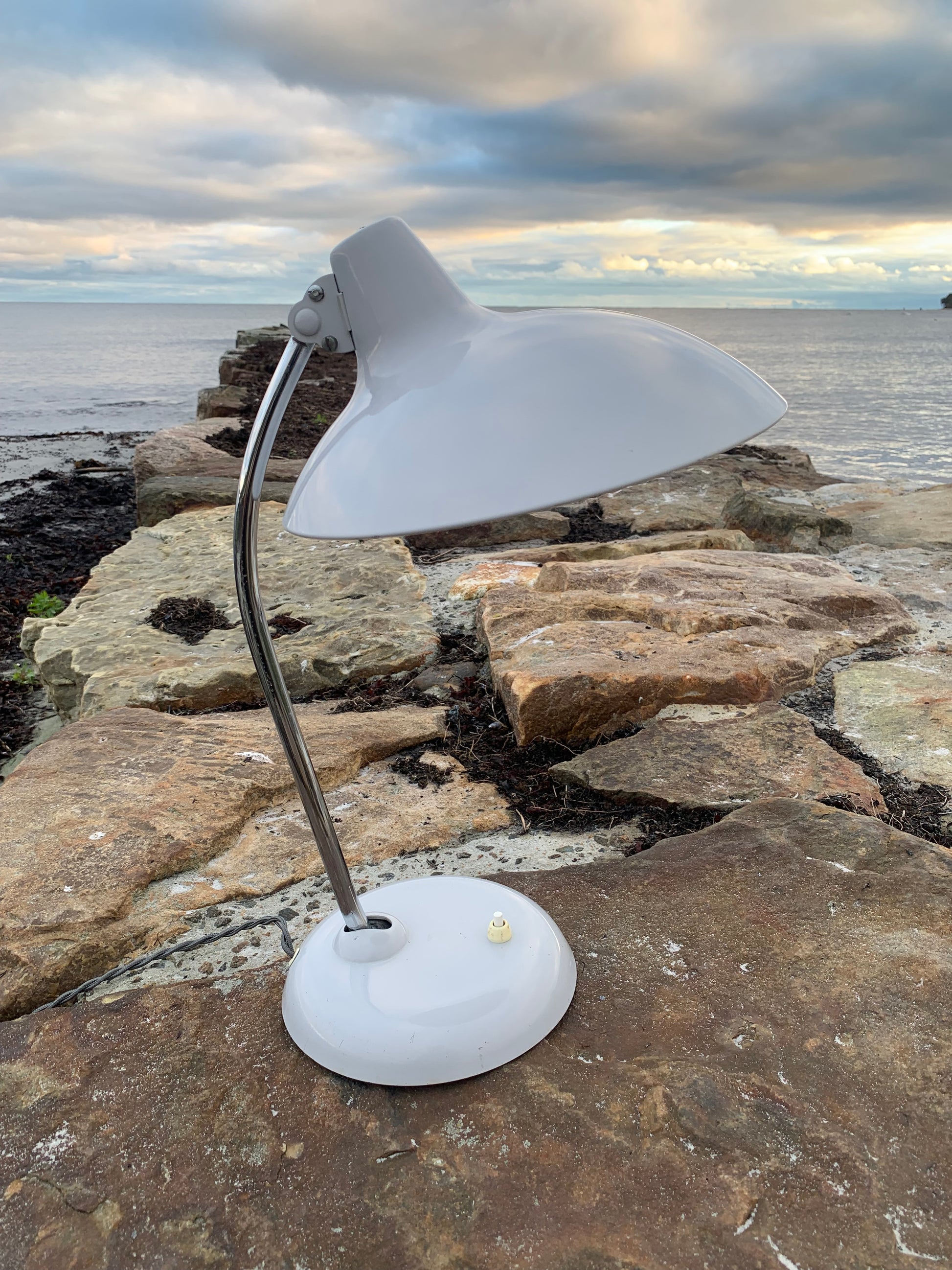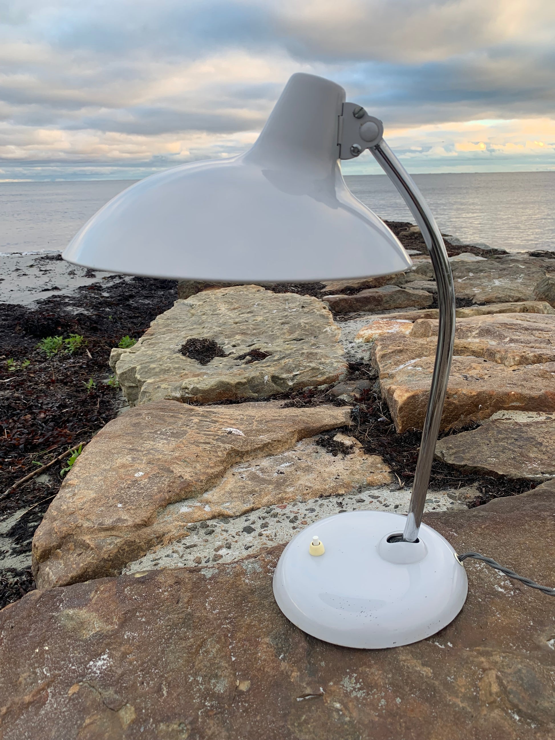 Wunderschöne Kaiser Idell Lampe, entworfen von Christian Dell. Dieser schöne Klassiker richtet sich an alle, die die Schönheit guten und zeitlosen Designs schätzen. Die edlen alten Kaiser Idell Lampen zeugen von guter Qualität und guter Handwerkskunst. Diese schönen alten Vintage-Lampen weisen oft altersbedingte Gebrauchsspuren auf, die die Authentizität und Originalität unterstreichen. Diese Spuren zeugen von der Reise der Lampe durch mehrere Jahrzehnte und erzählen diese.