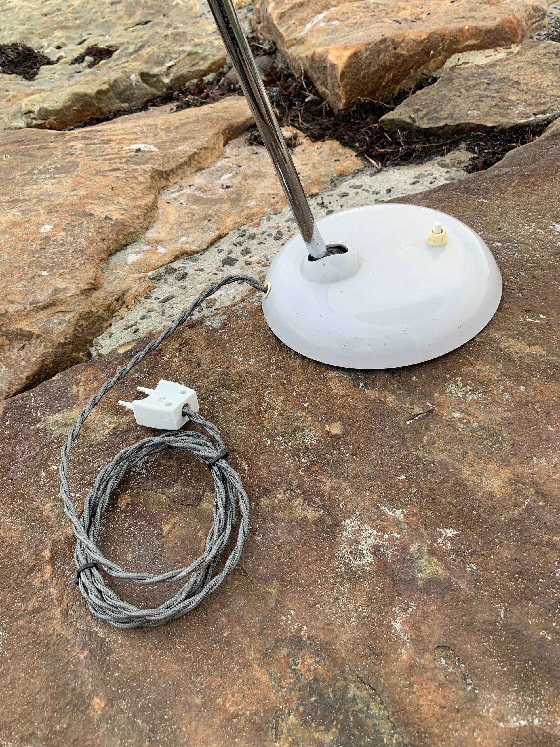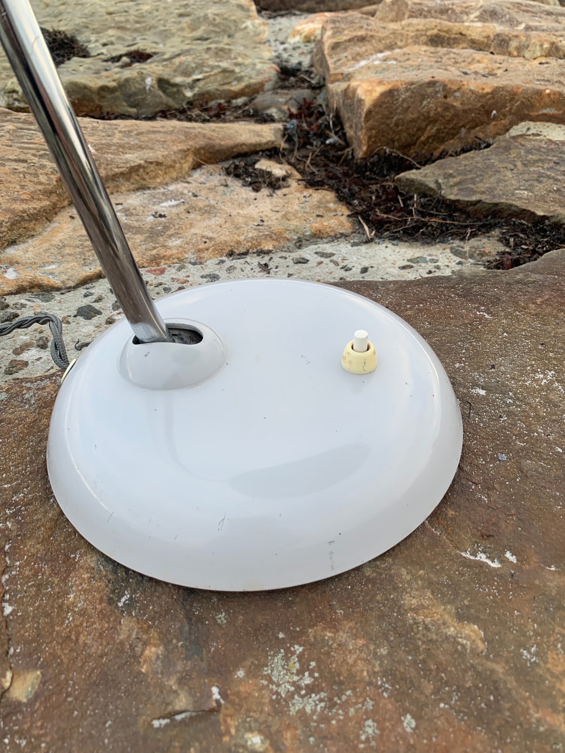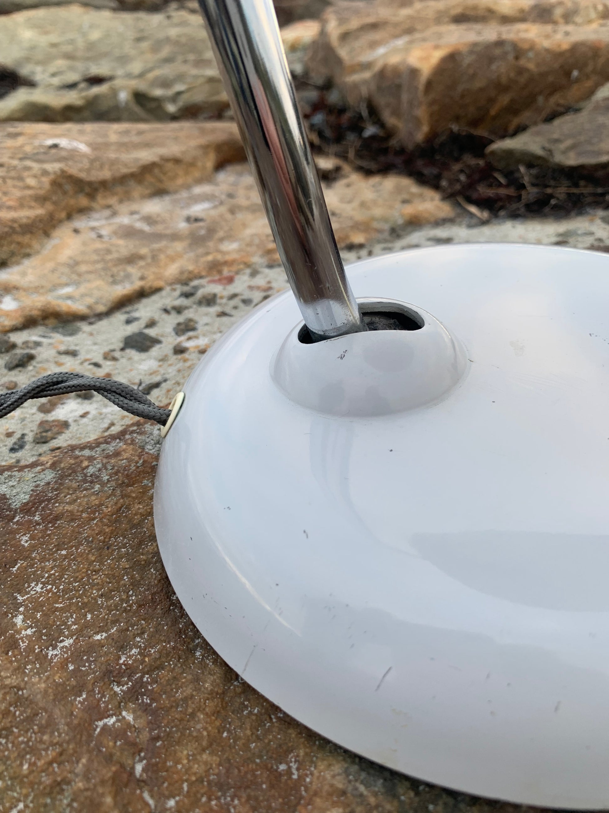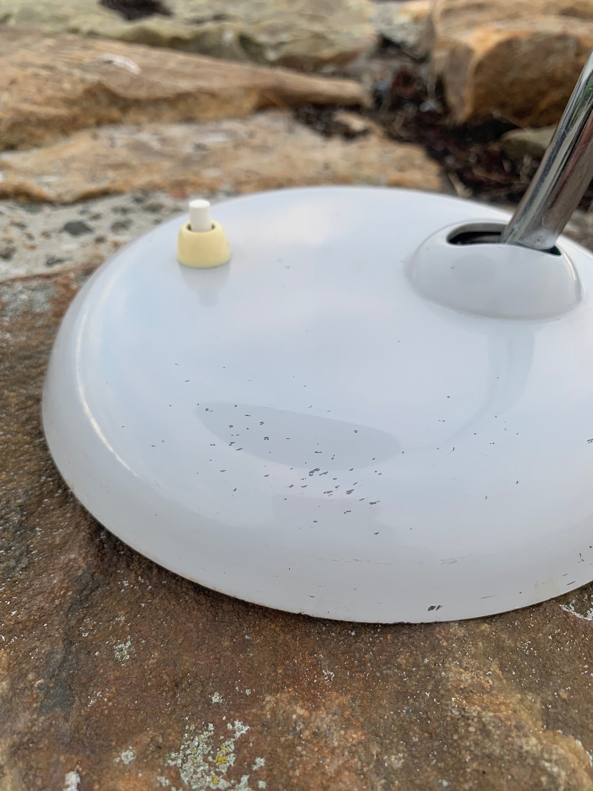 Dieses Exemplar erscheint mit der Originallackierung und neuen Kabeln. Die Lampe weist einige altersbedingte Gebrauchsspuren (hauptsächlich am Sockel) auf, die eine solche Lampe (unserer Meinung nach) haben sollte.
