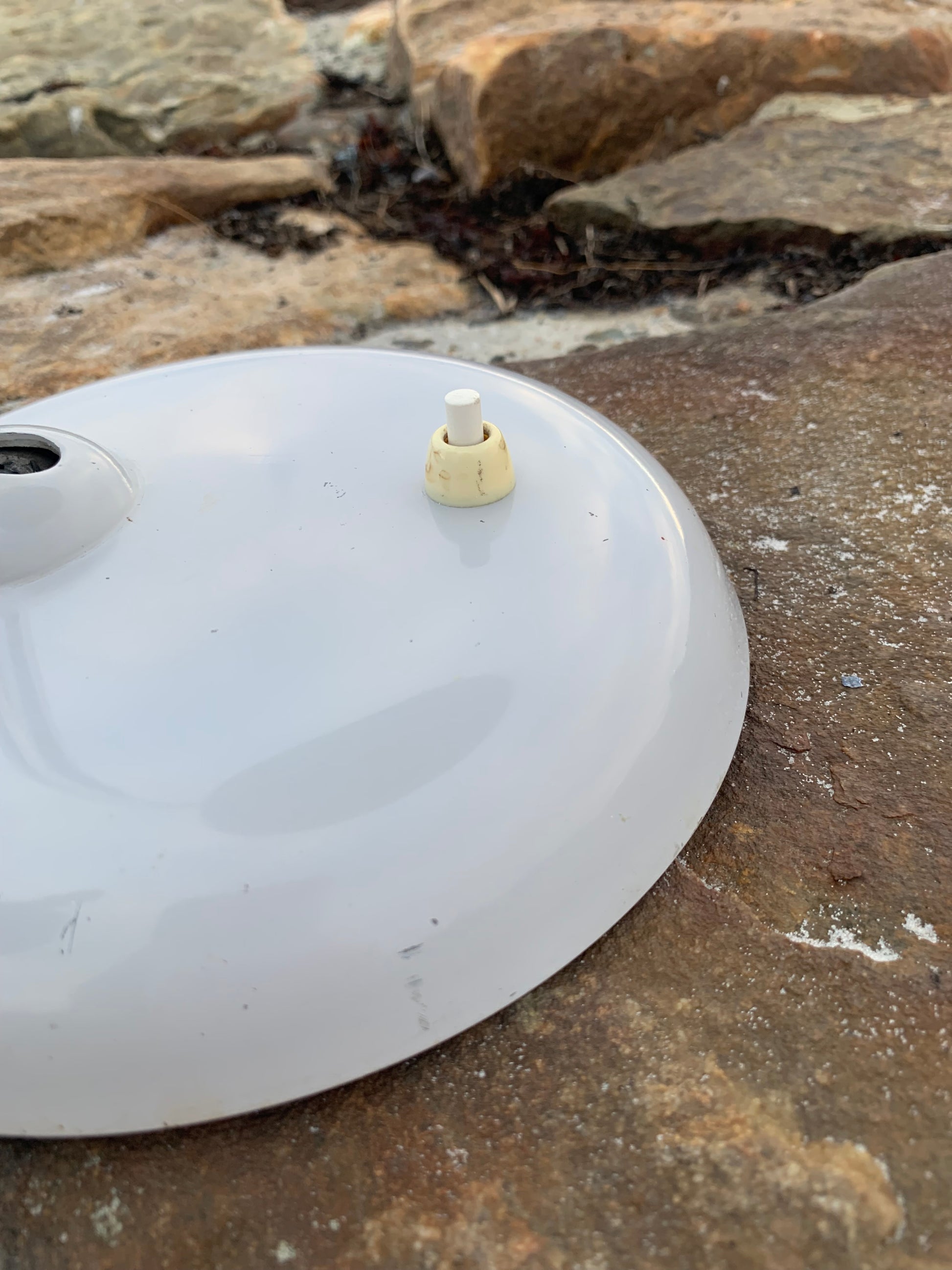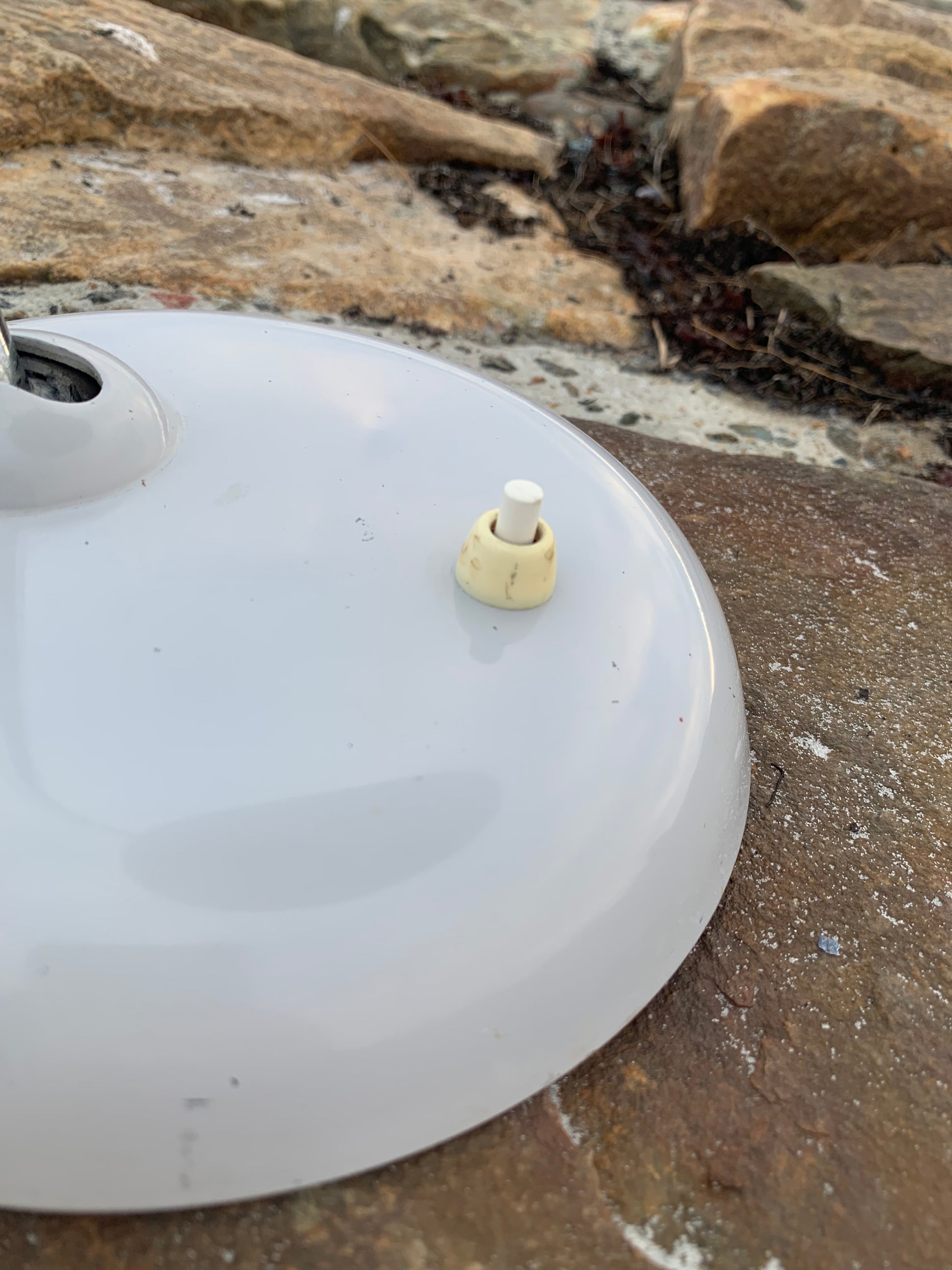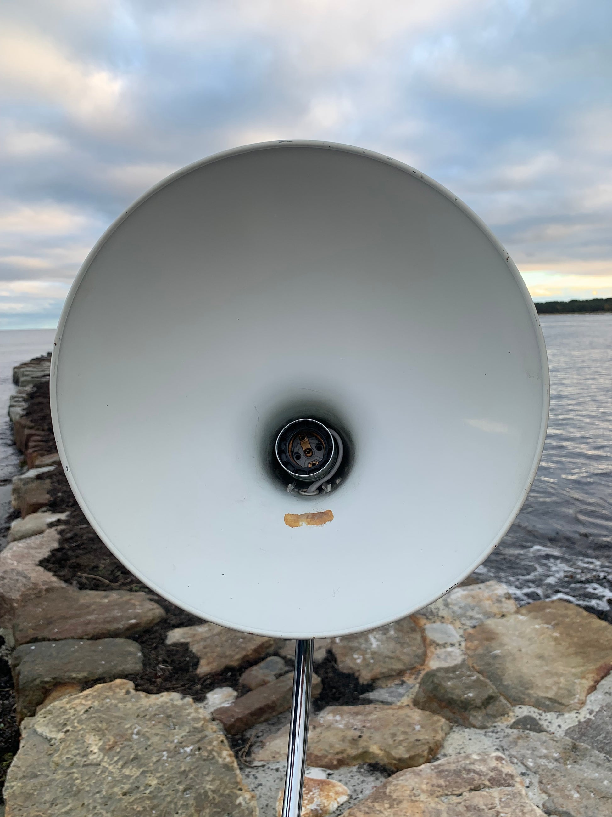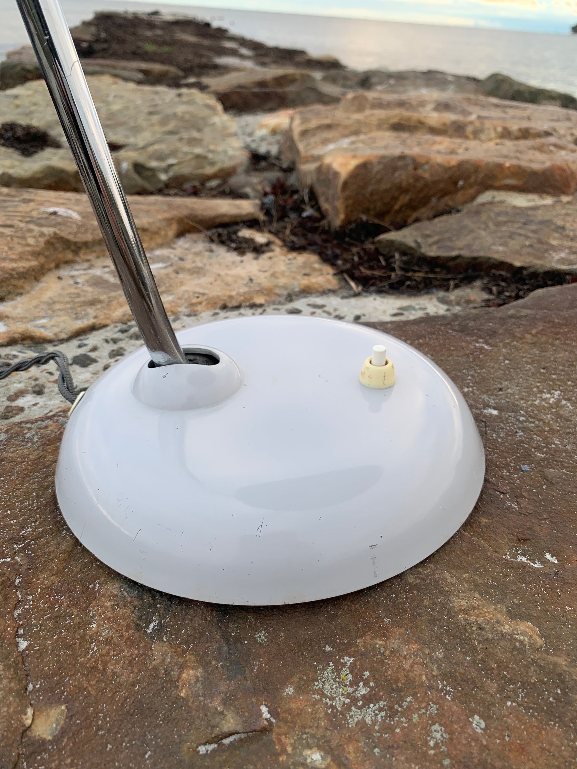 Dieses Exemplar erscheint mit der Originallackierung und neuen Kabeln. Die Lampe weist einige altersbedingte Gebrauchsspuren (hauptsächlich am Sockel) auf, die eine solche Lampe (unserer Meinung nach) haben sollte.