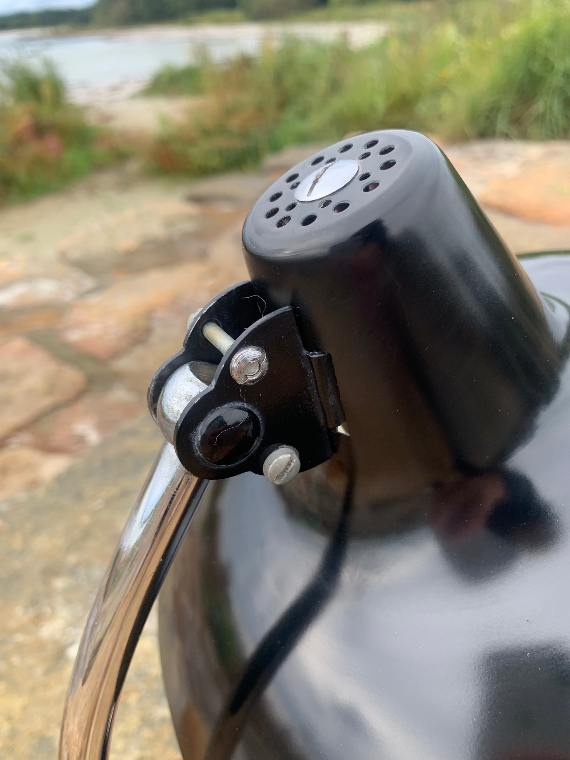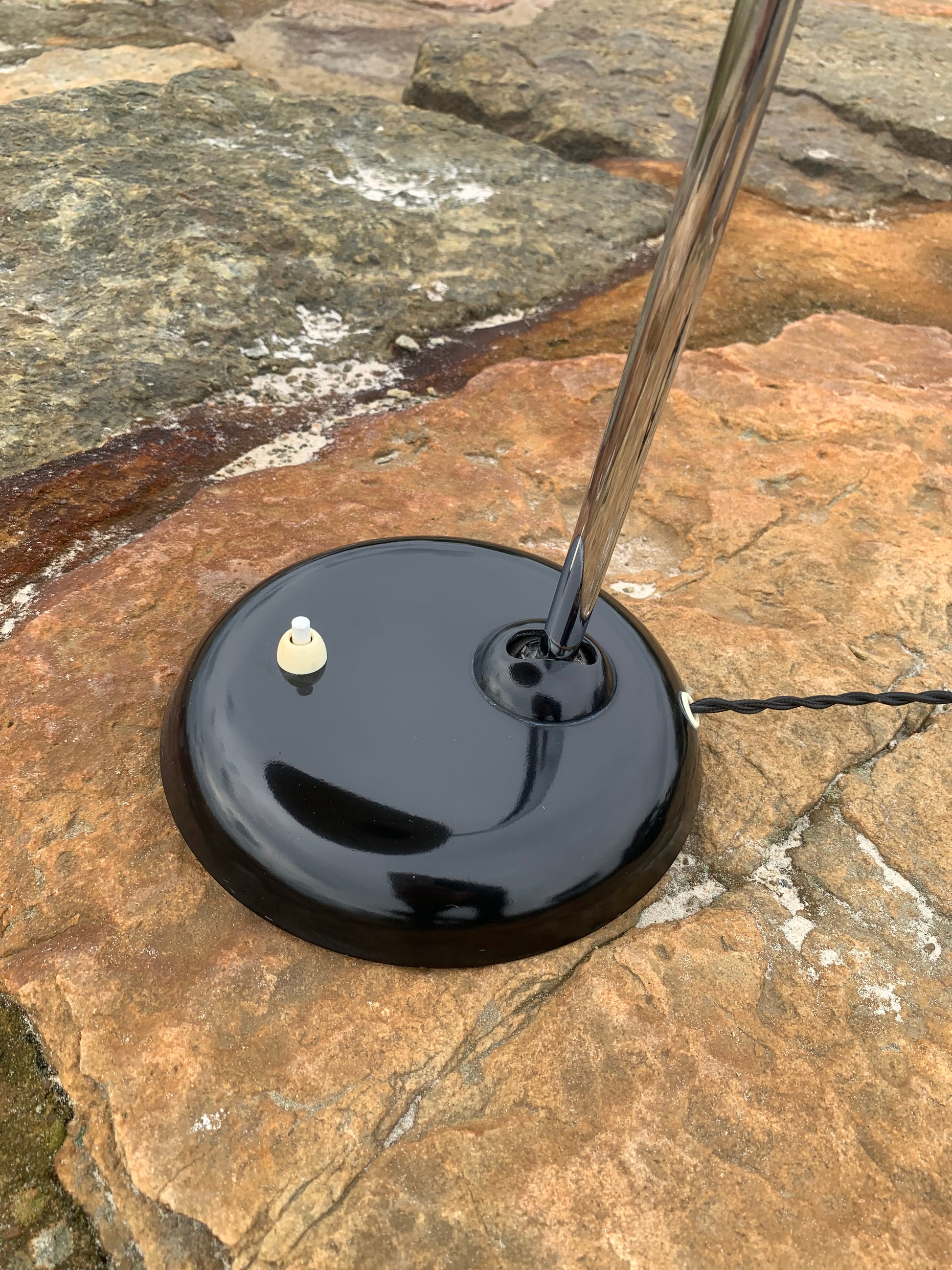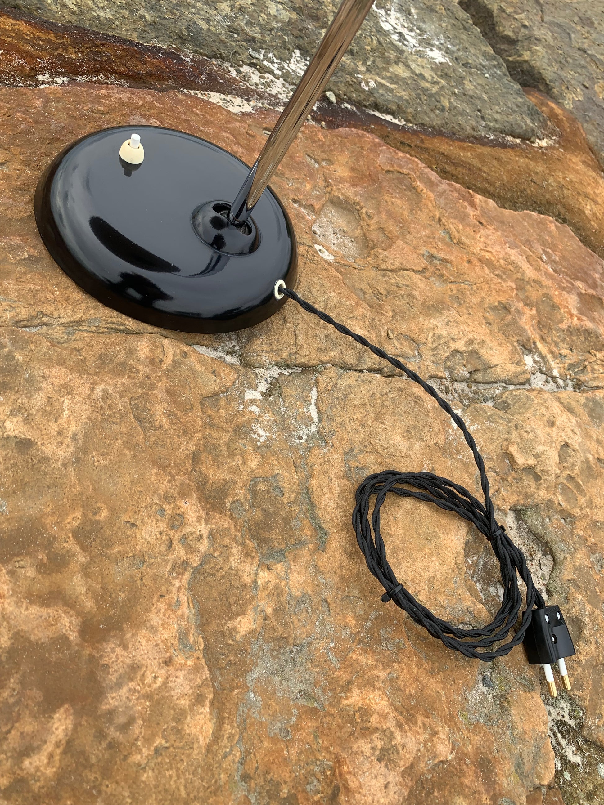 Dieses Exemplar erscheint mit der Originallackierung und neuen Kabeln. Die Lampe weist ein paar altersbedingte Gebrauchsspuren auf, die eine solche Lampe (unserer Meinung nach) fast haben müsste.