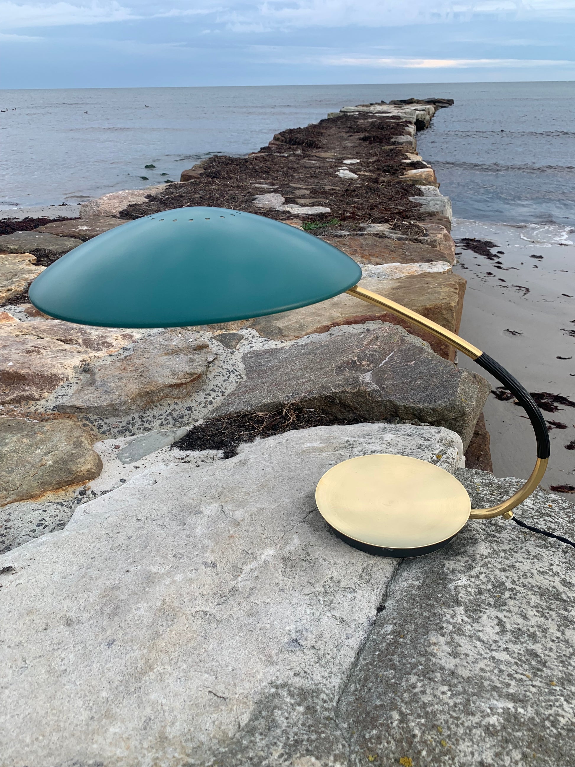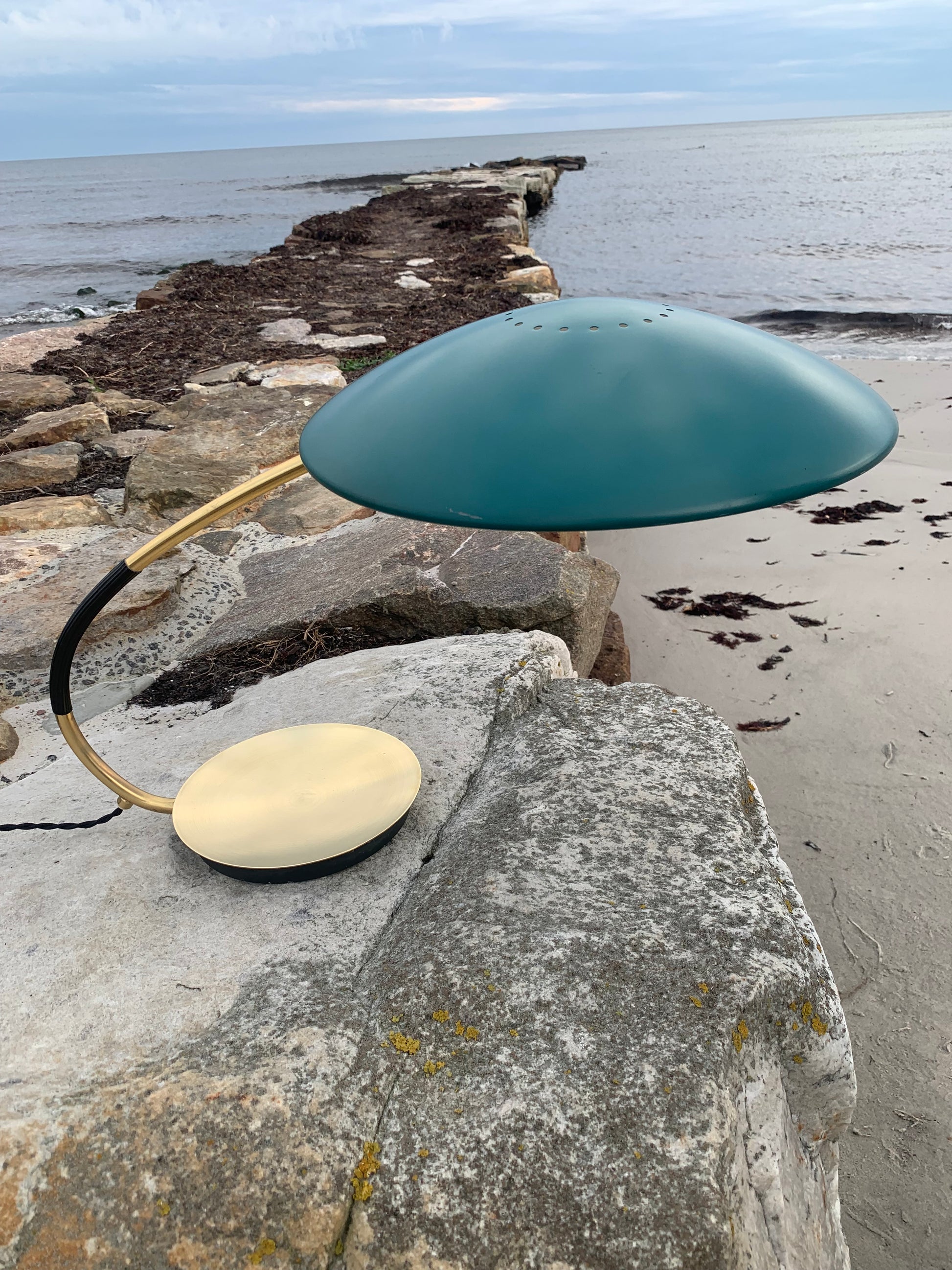 Dieses Exemplar hat die Originalfarbe und neue Kabel. Die Lampe weist einige altersbedingte Gebrauchsspuren auf, die eine solche Lampe (unserer Meinung nach) haben sollte. Insgesamt ist die Lampe jedoch in einem wirklich schönen Vintage-Zustand.