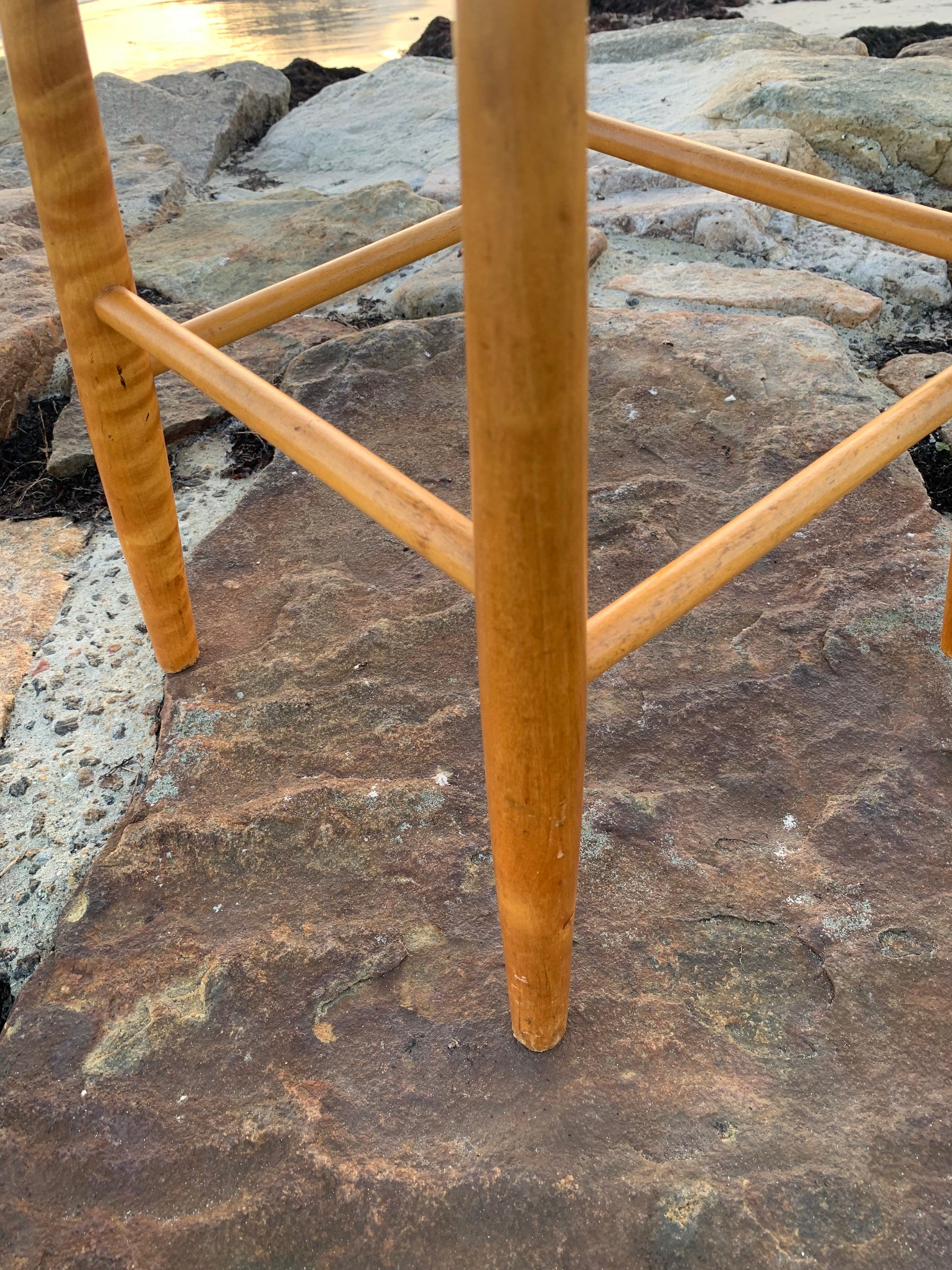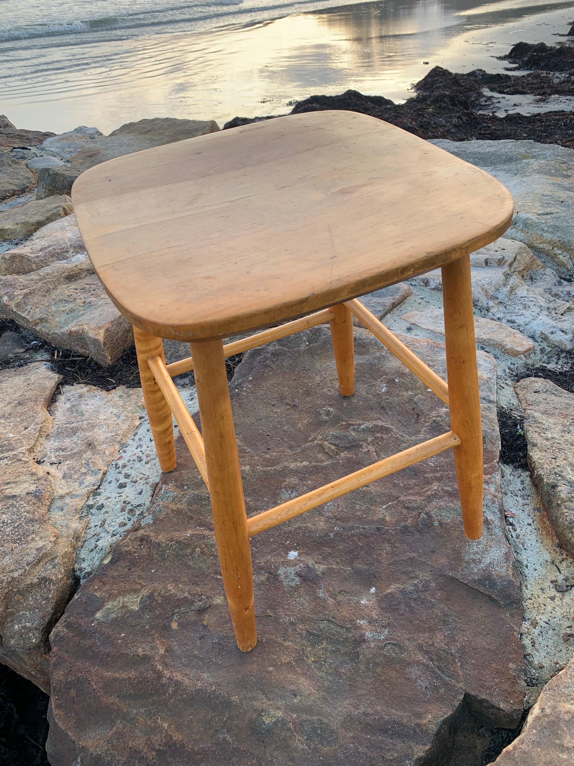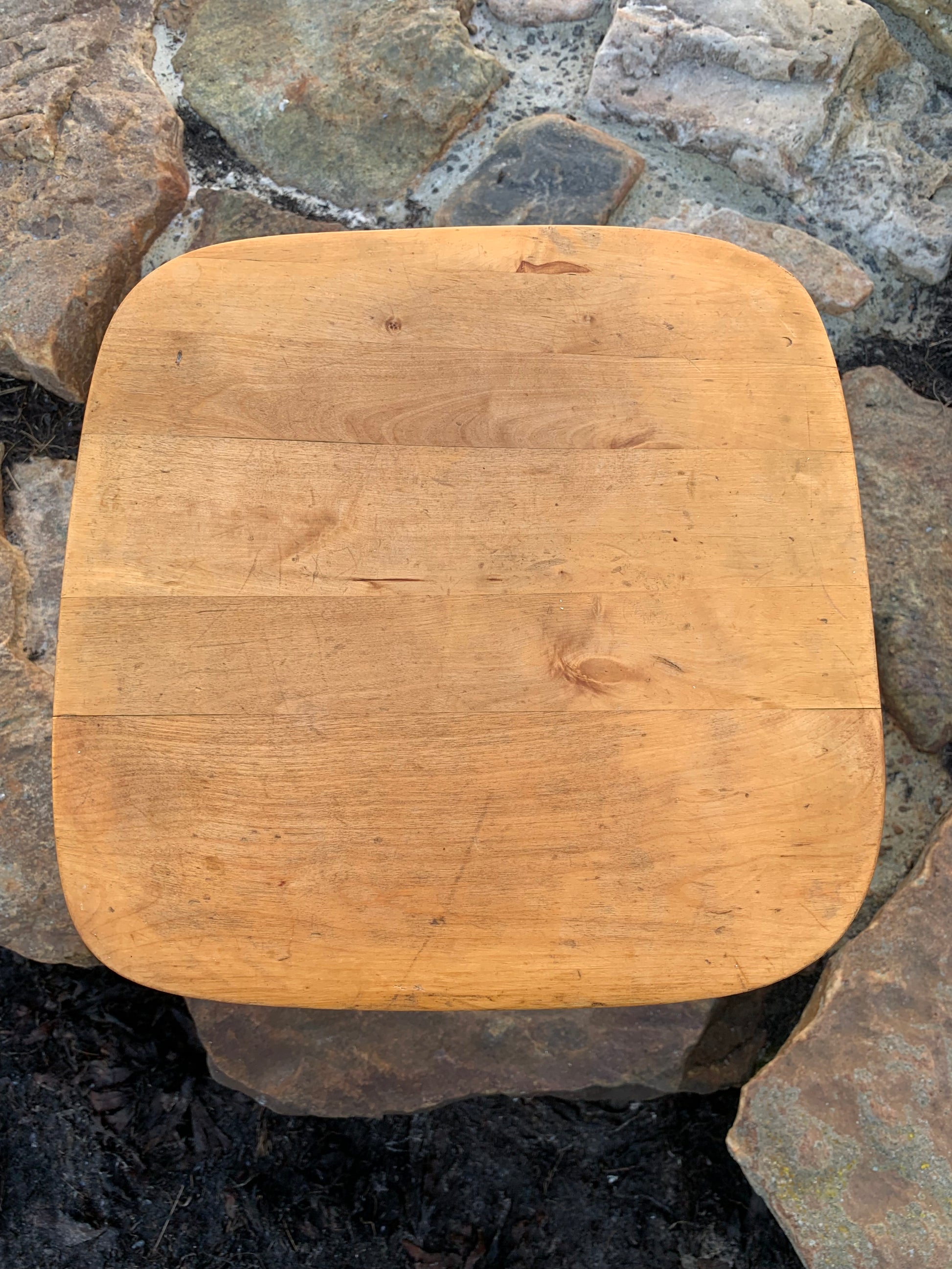 Klassischer Holzhocker. Der Zustand ist gut, mit charmanten Gebrauchsspuren, die lediglich darauf hinweisen, dass der Hocker nicht neu ist.