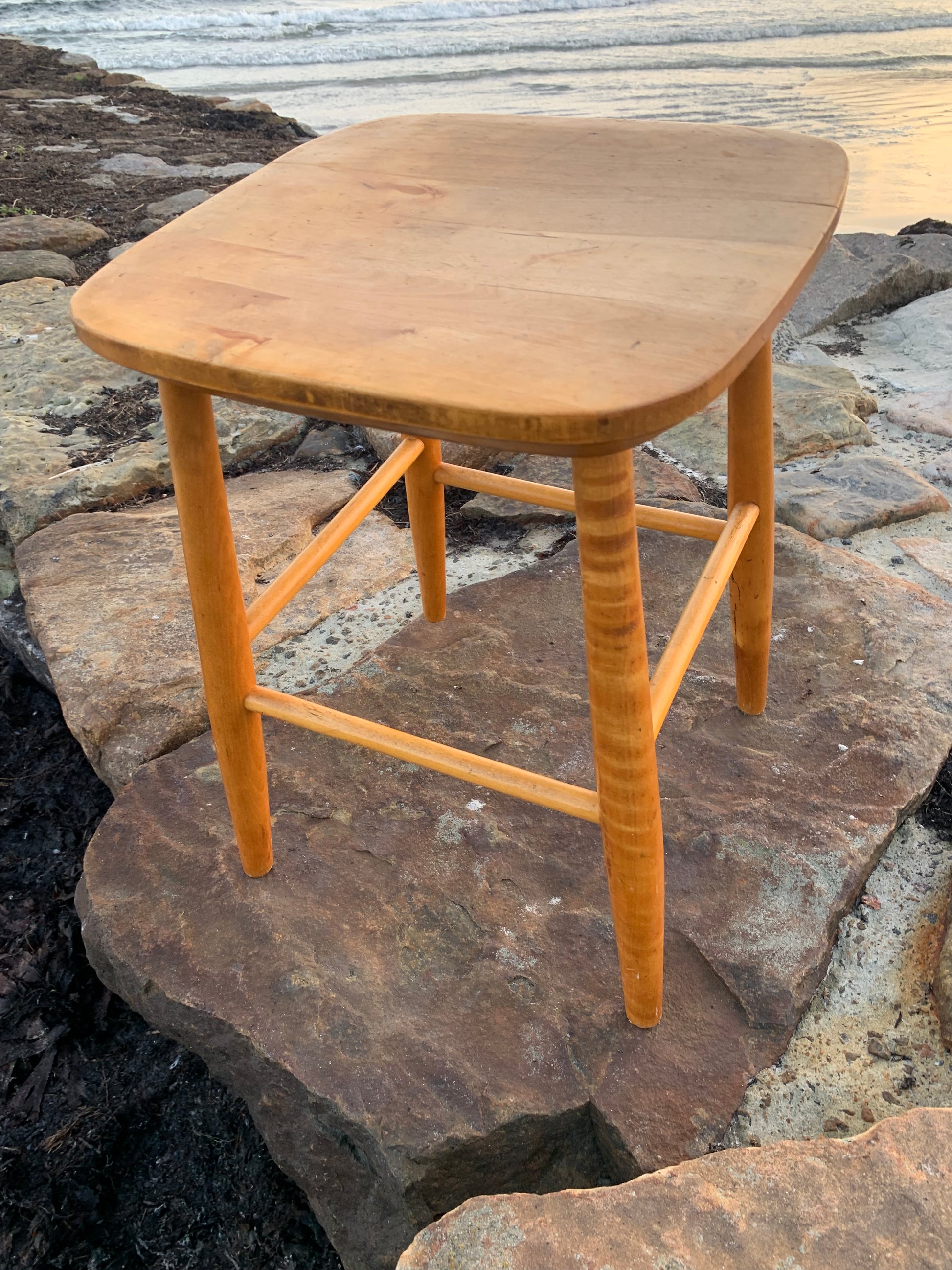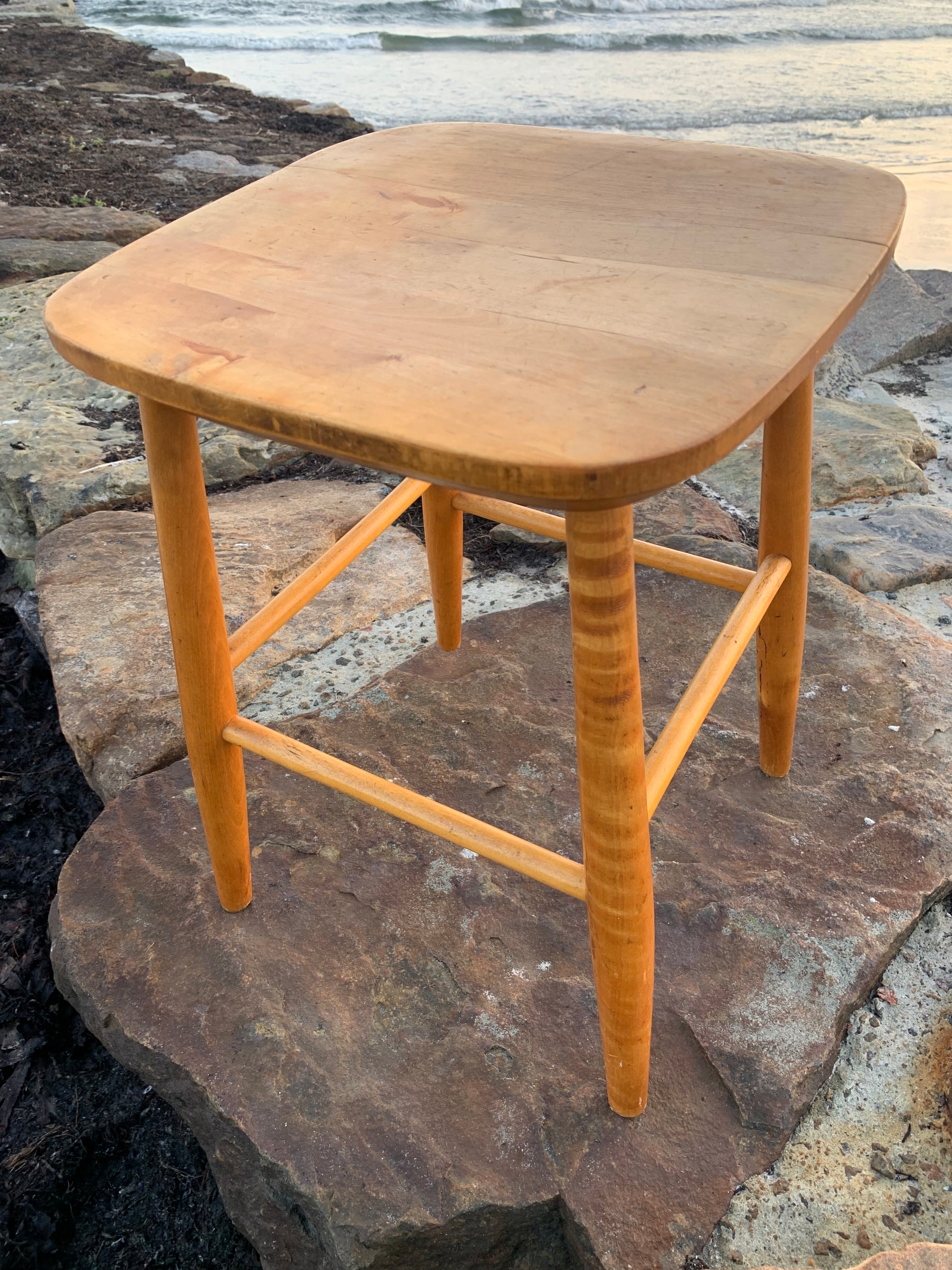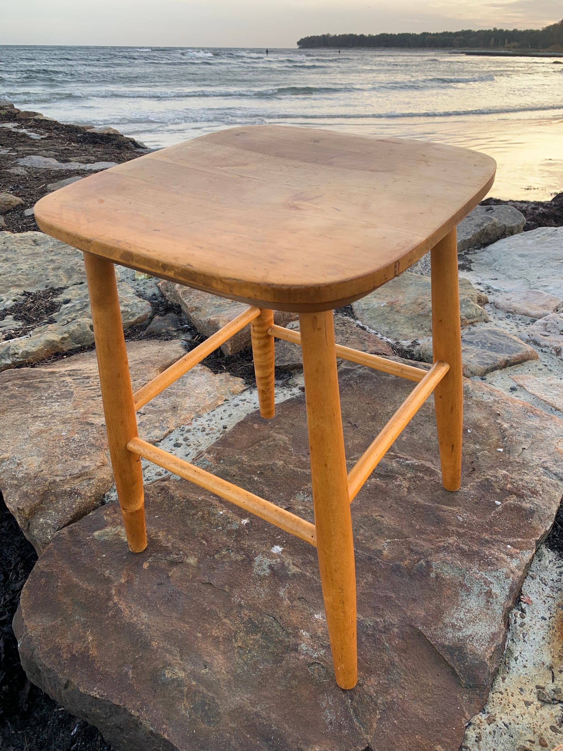 Klassischer Holzhocker. Der Zustand ist gut, mit charmanten Gebrauchsspuren, die lediglich darauf hinweisen, dass der Hocker nicht neu ist.
