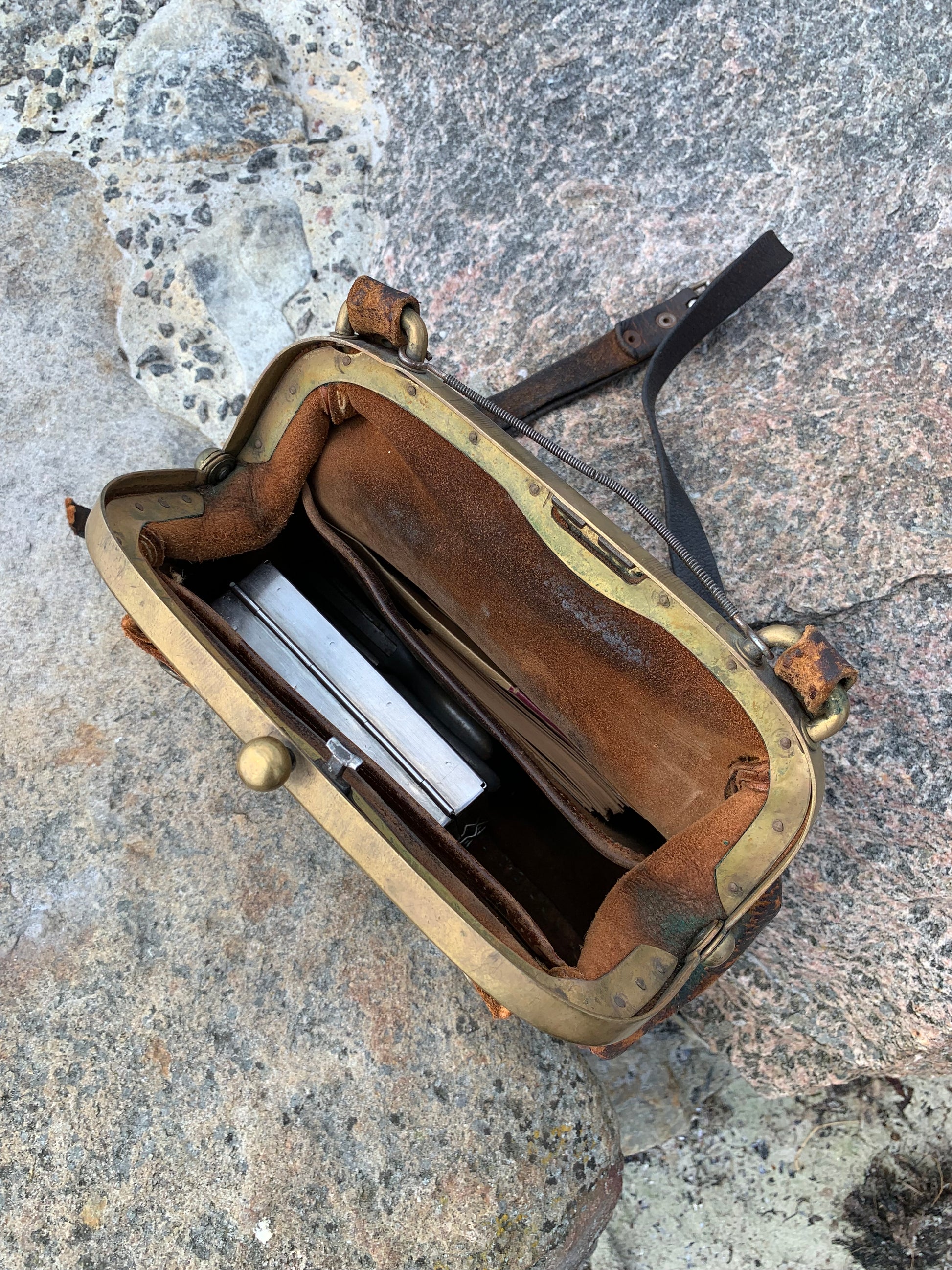 Viele kennen diese Taschen noch aus der Bus- oder Bahnfahrt. Jetzt haben Sie die Möglichkeit, ein Stück Nostalgie zu erwerben. Das Münzfach lässt sich ganz einfach aus der Tasche entnehmen. Die Patina der Tasche zeigt, dass sie schon viele Jahre alt ist. Im Lieferumfang sind diverse Accessoires wie alte Fahrkarten, zwei Fahrkartenzangen und ein Metalletui enthalten.