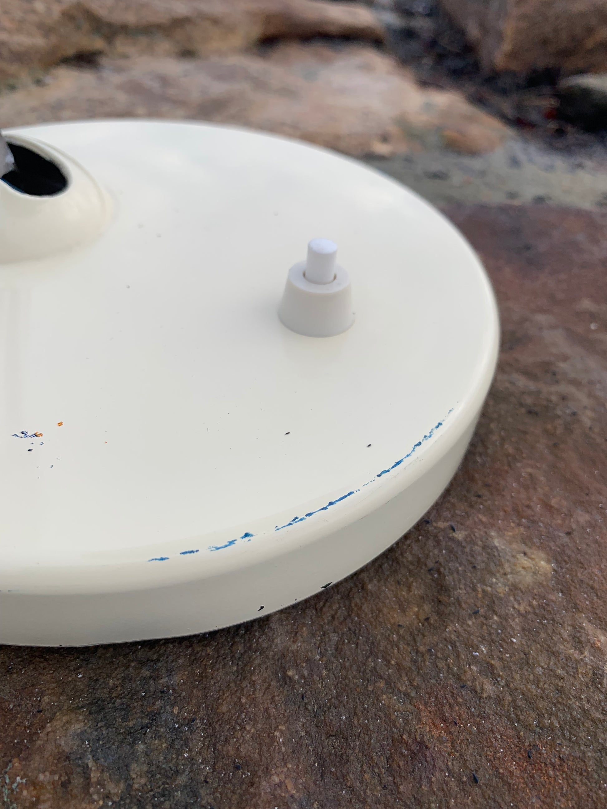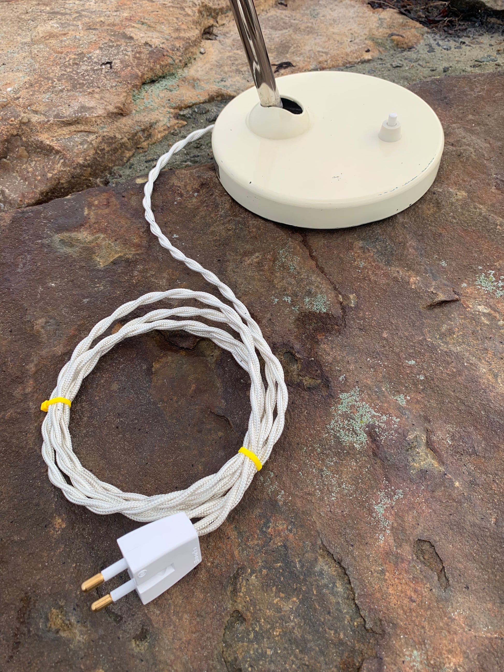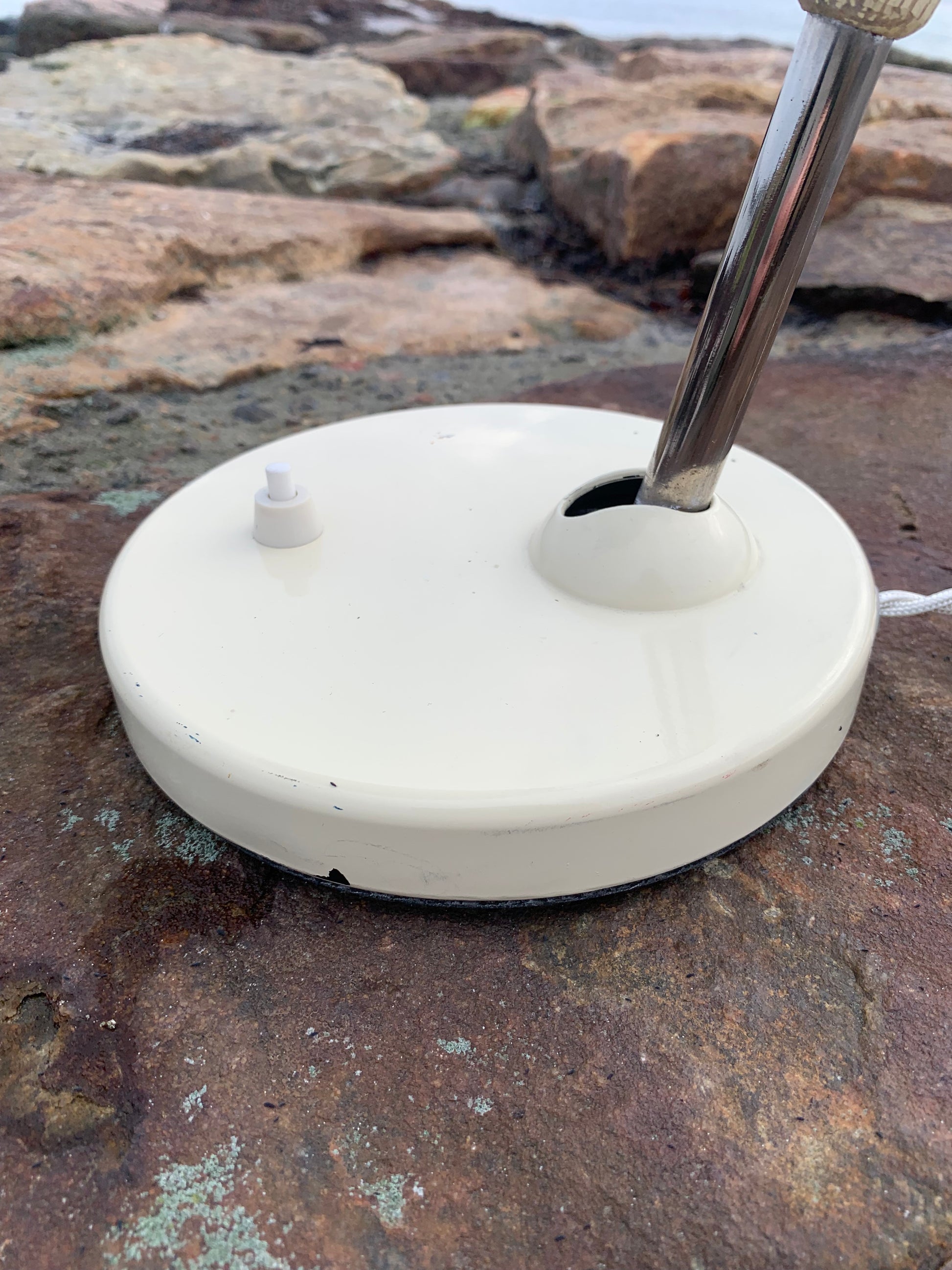 Wunderschöne Vintage-Lampe der österreichischen Firma Koranda. Dieses Modell wird Christian Dell zugeschrieben. Die Spuren der Zeit haben dem Lack der Lampe zugesetzt, sie scheint jedoch neu verkabelt zu sein und richtet sich an all jene, die das Perfekte im Unvollkommenen erkennen.