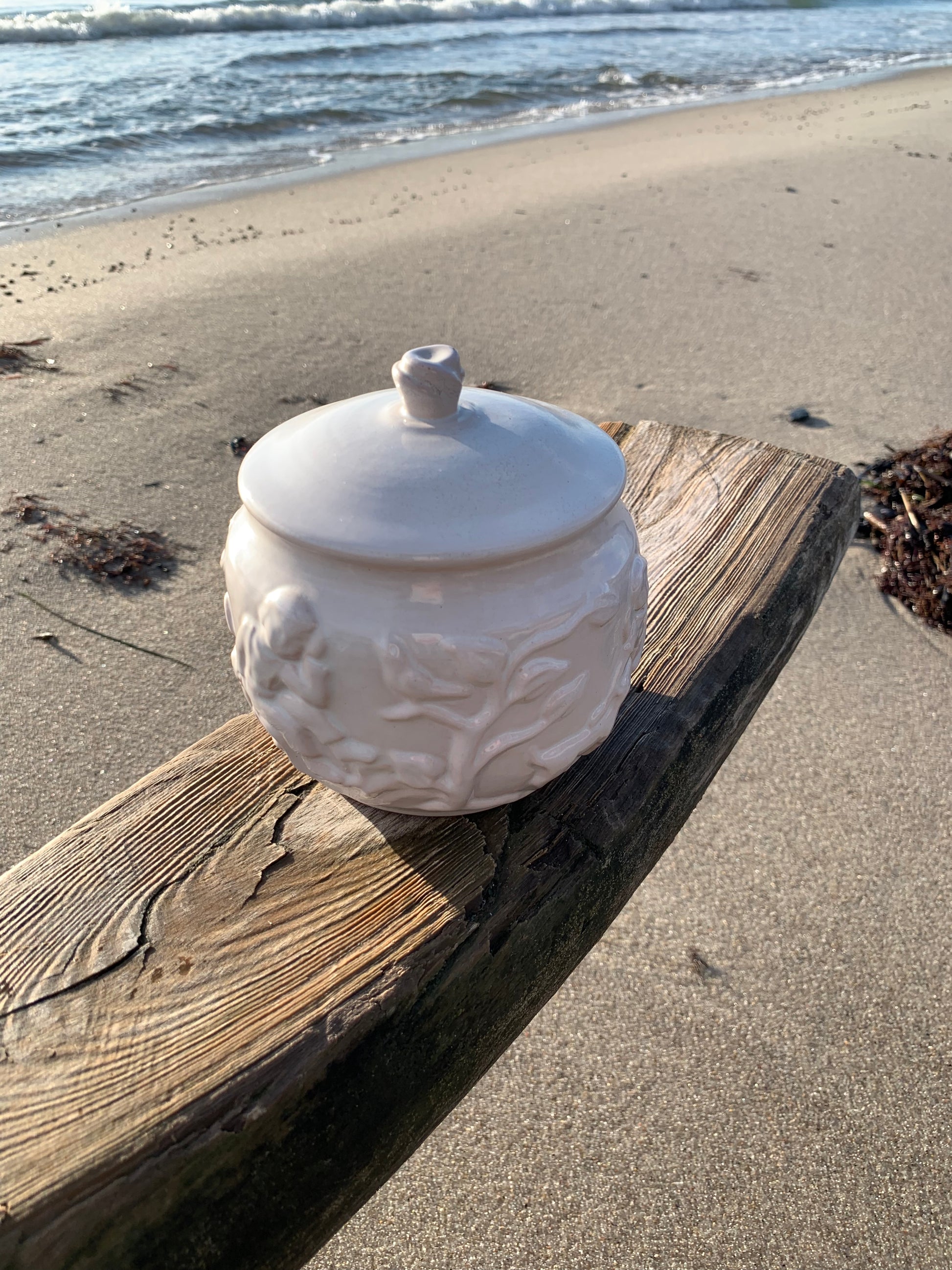 Schönes Gefäß von Hjorth Keramik auf Bornholm. Der Deckel hat innen einige Kratzer (siehe Foto), aber das ist nicht sichtbar, wenn der Deckel auf ist.