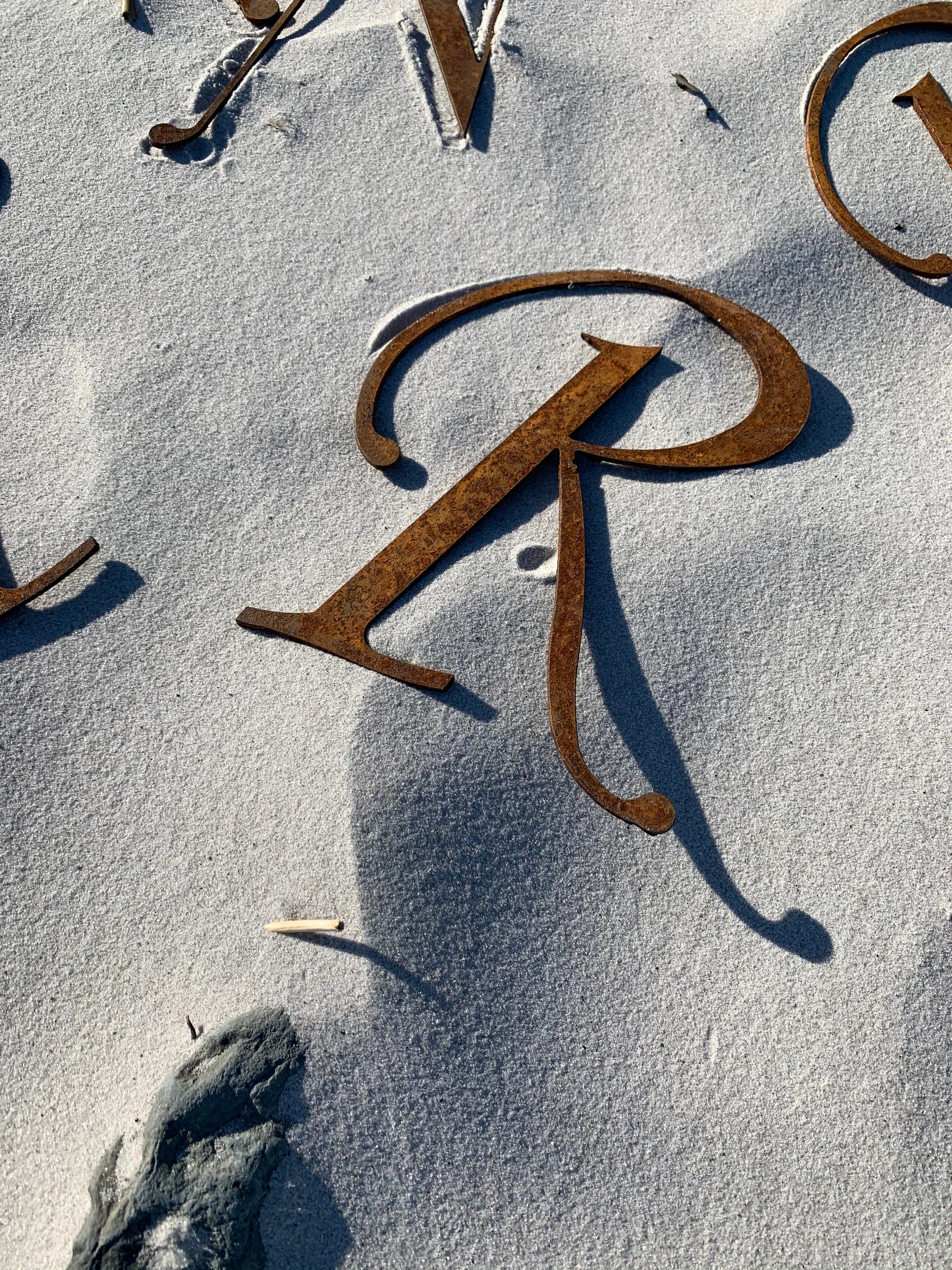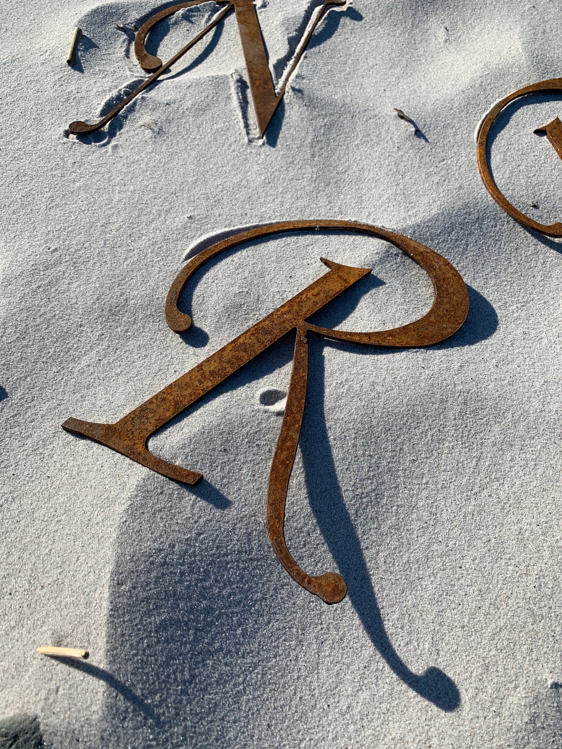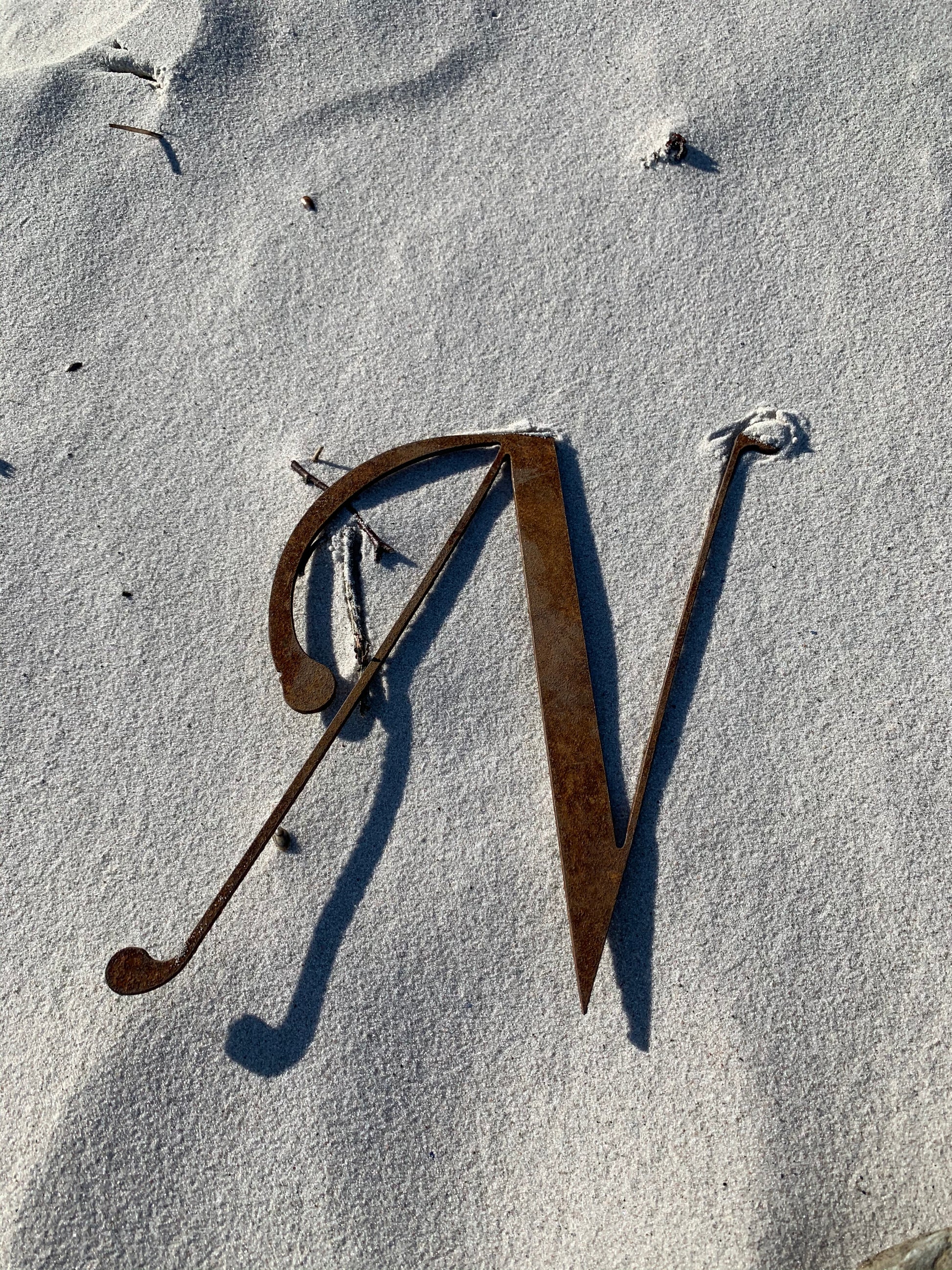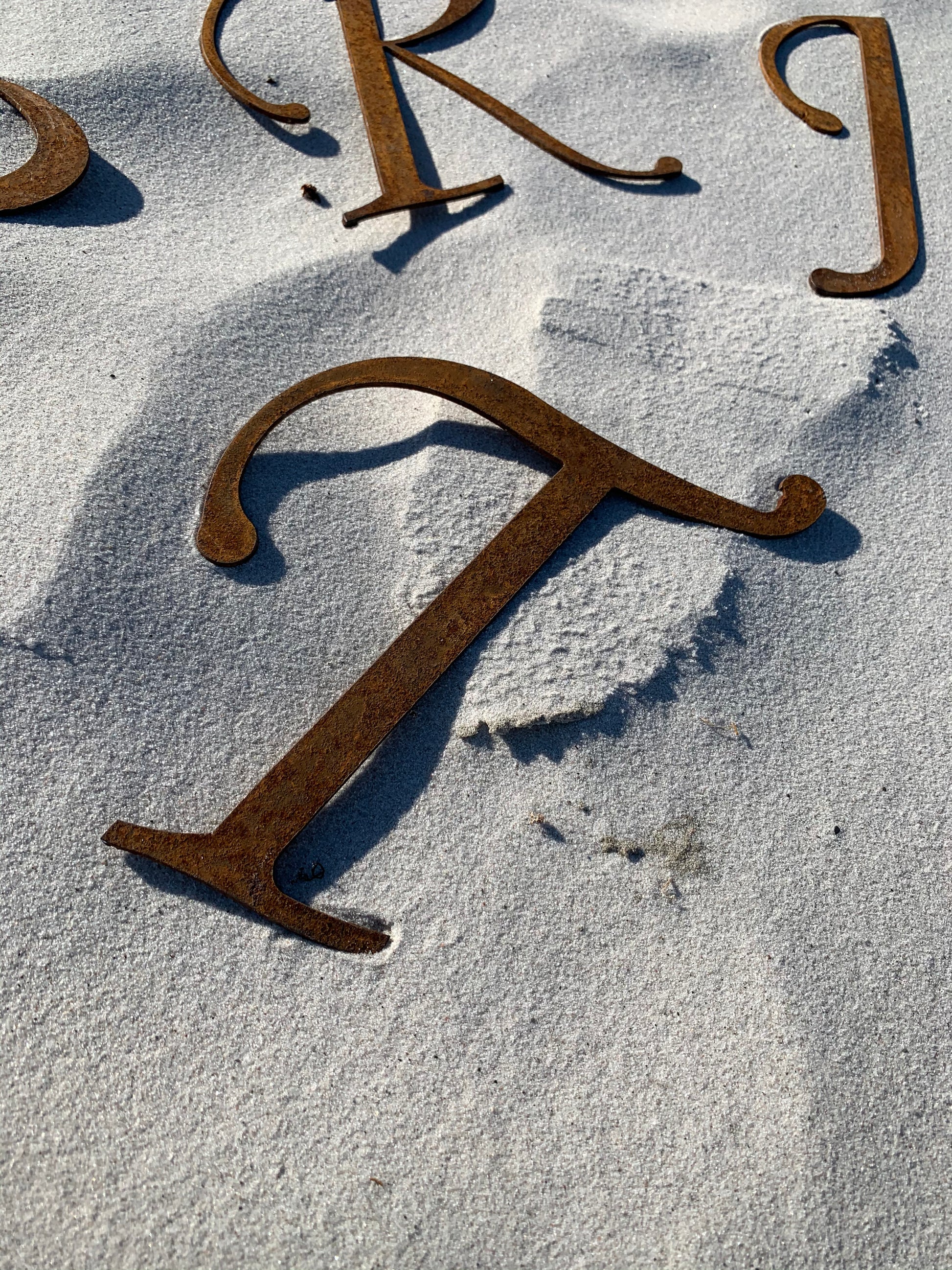 Schöner und dekorativer Buchstabe mit viel schöner Patina in Form von Rost.