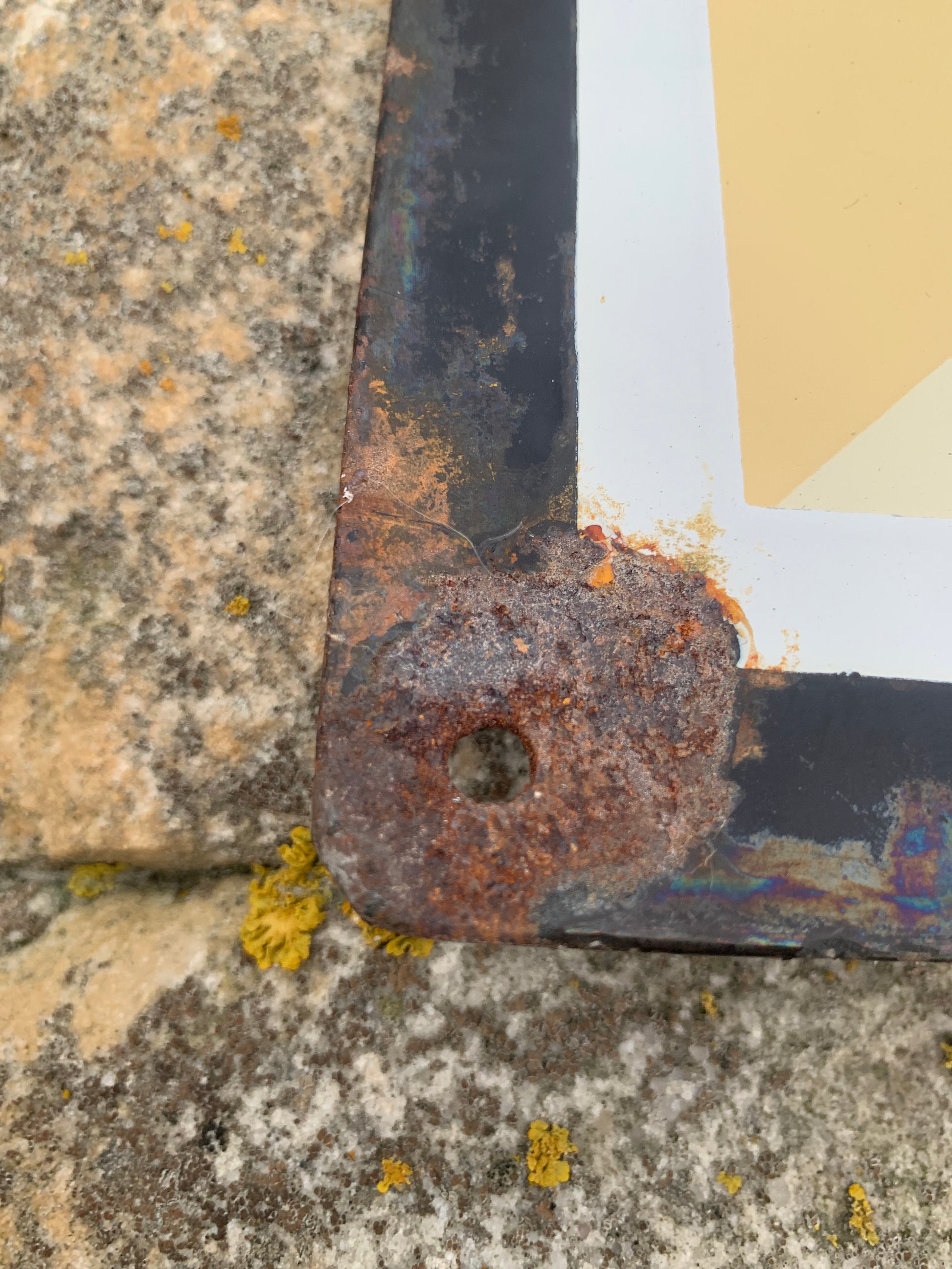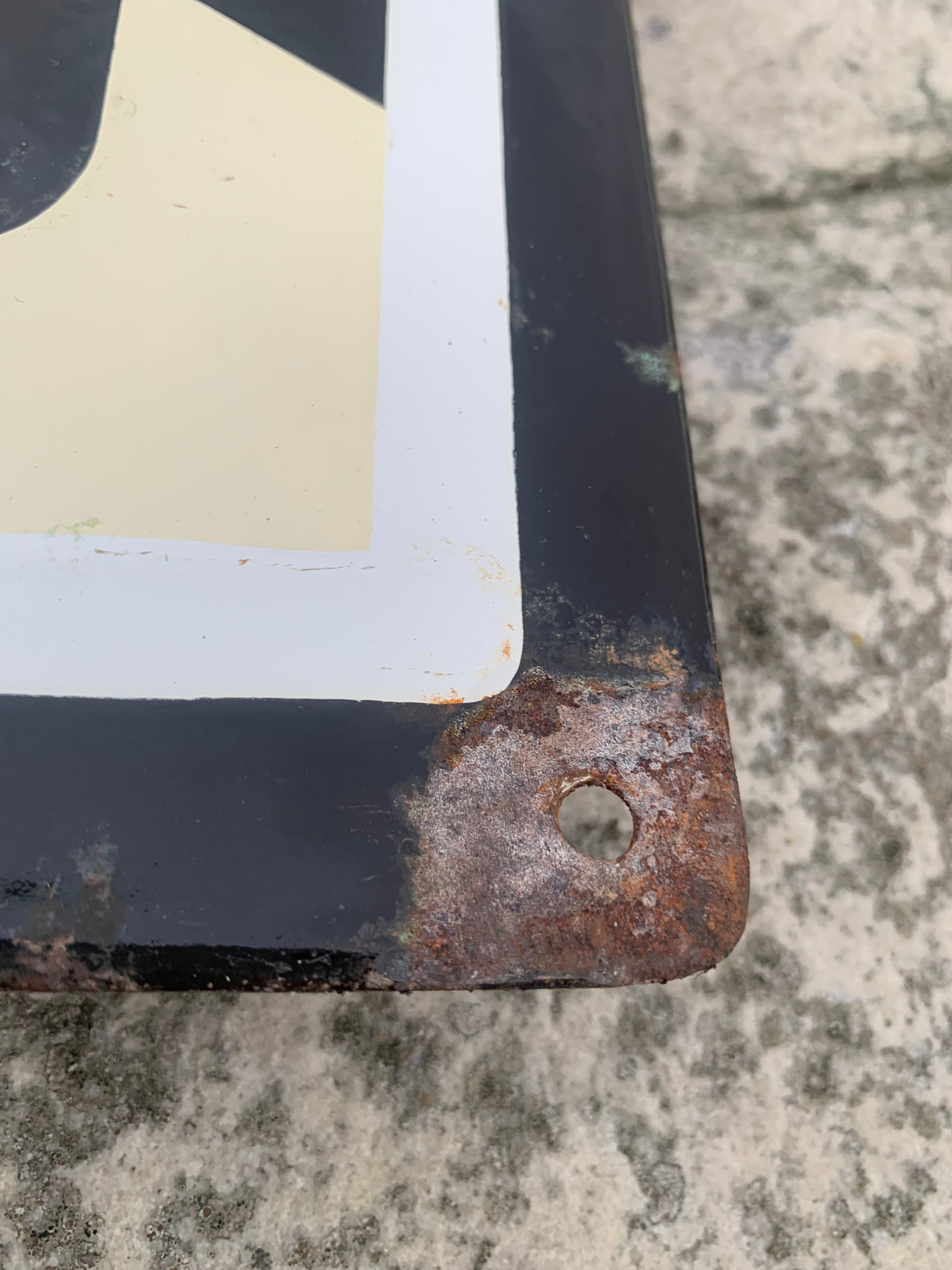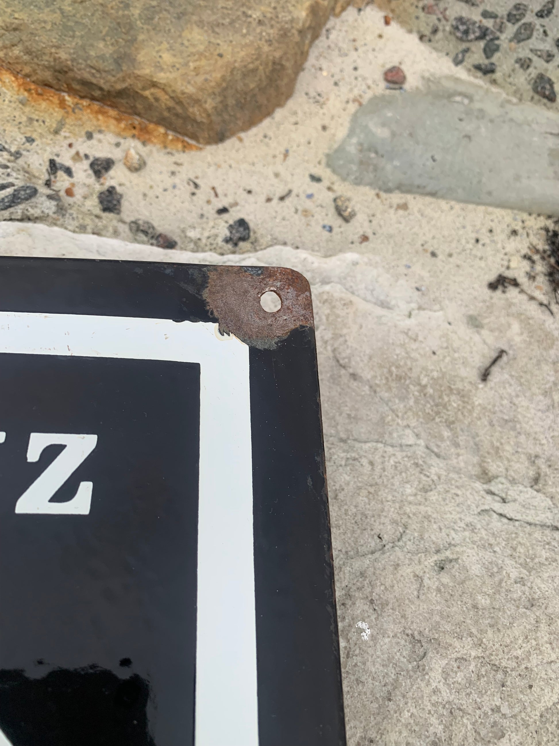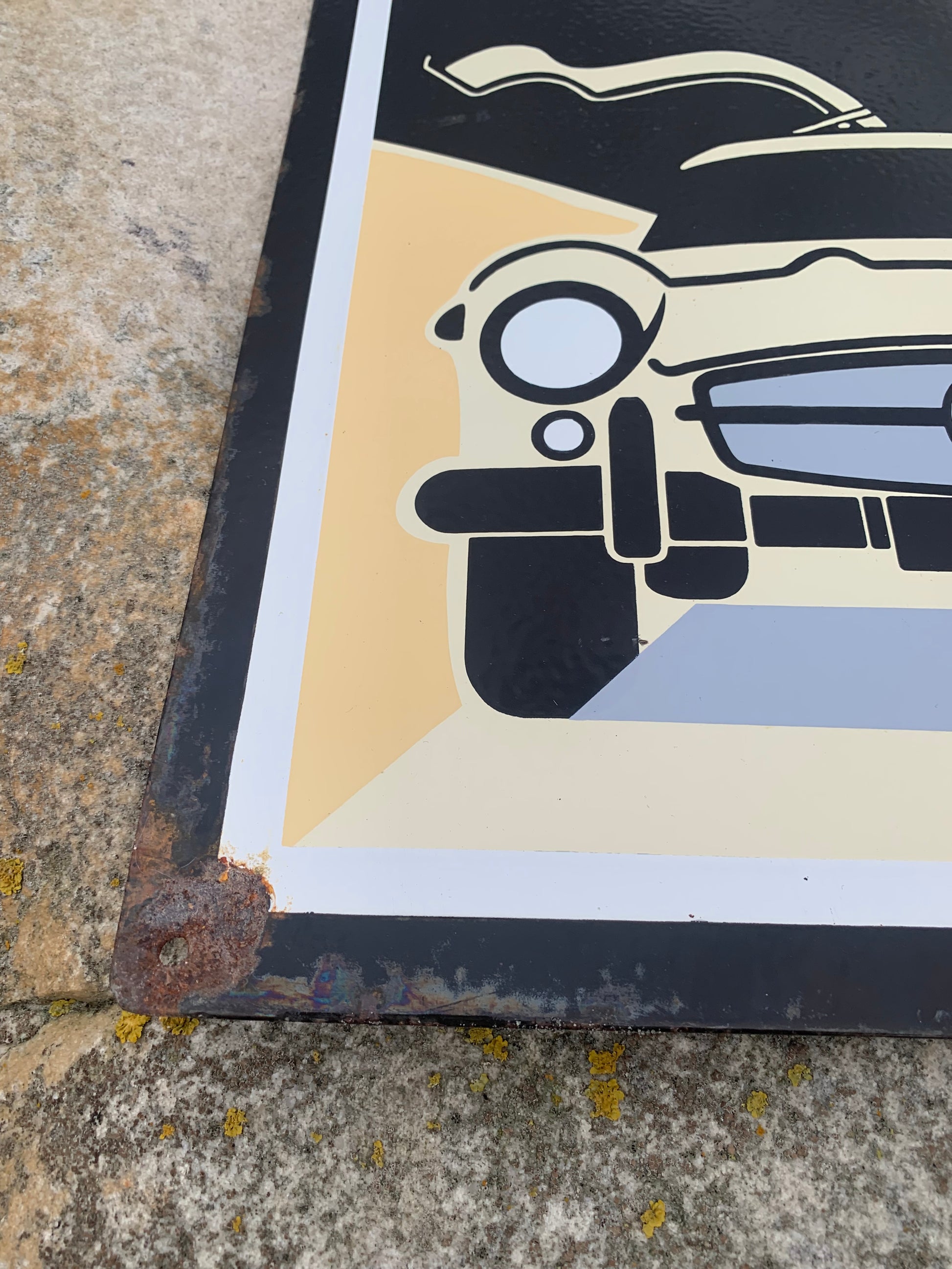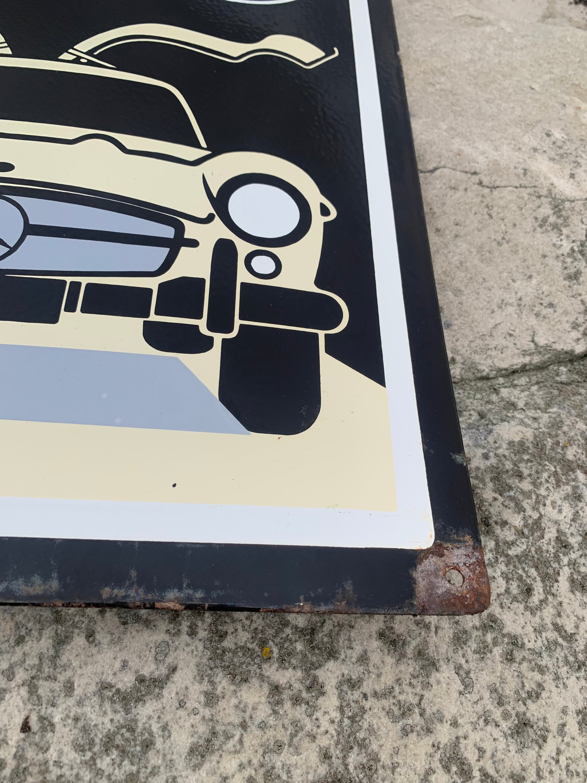Mercedes Emailleschild (gewölbt). Das Schild weist, wie bei diesen Schildern häufig, Gebrauchsspuren auf, insbesondere in den Ecken, ist aber insgesamt in schönem Vintage-Zustand.