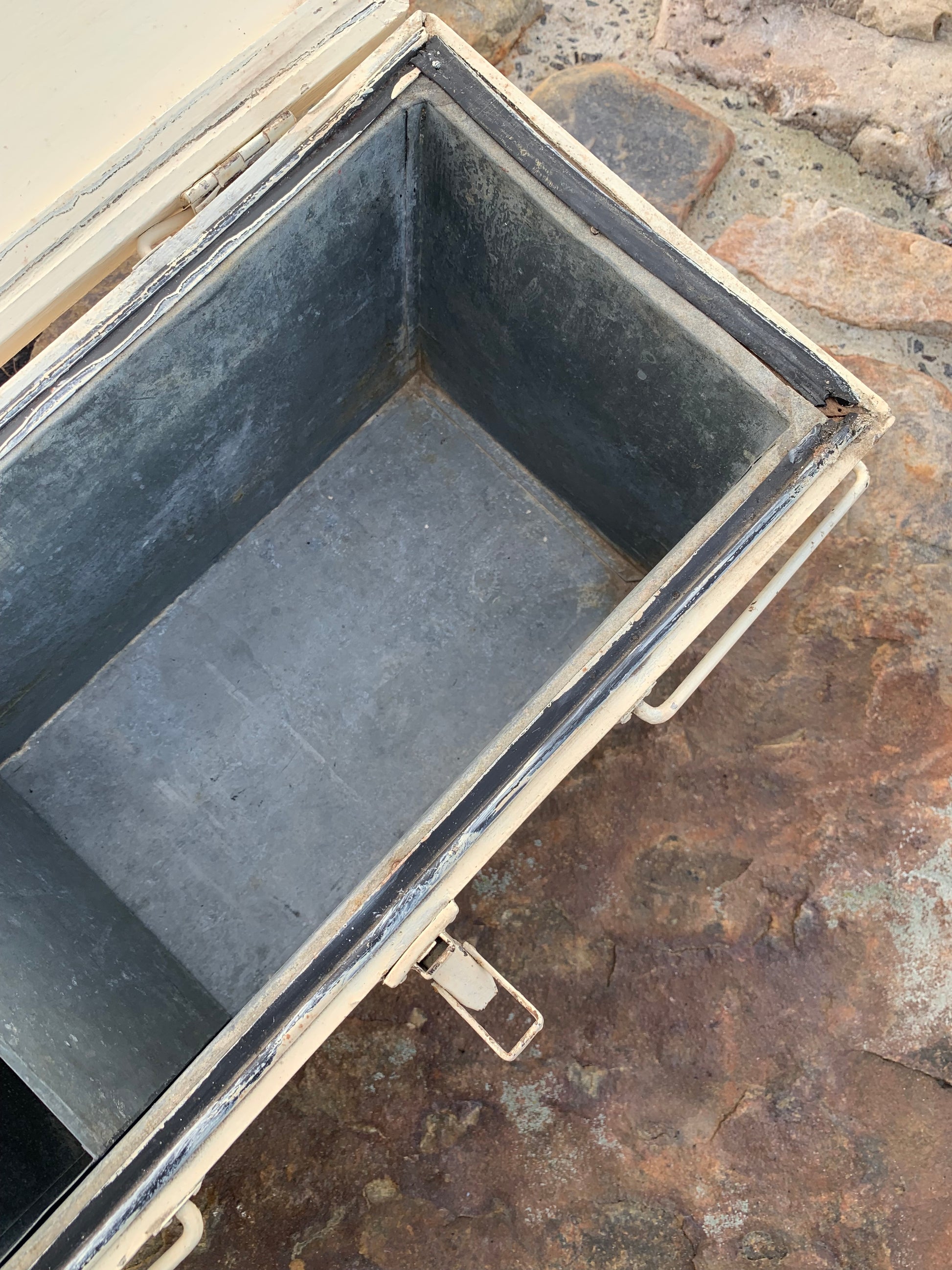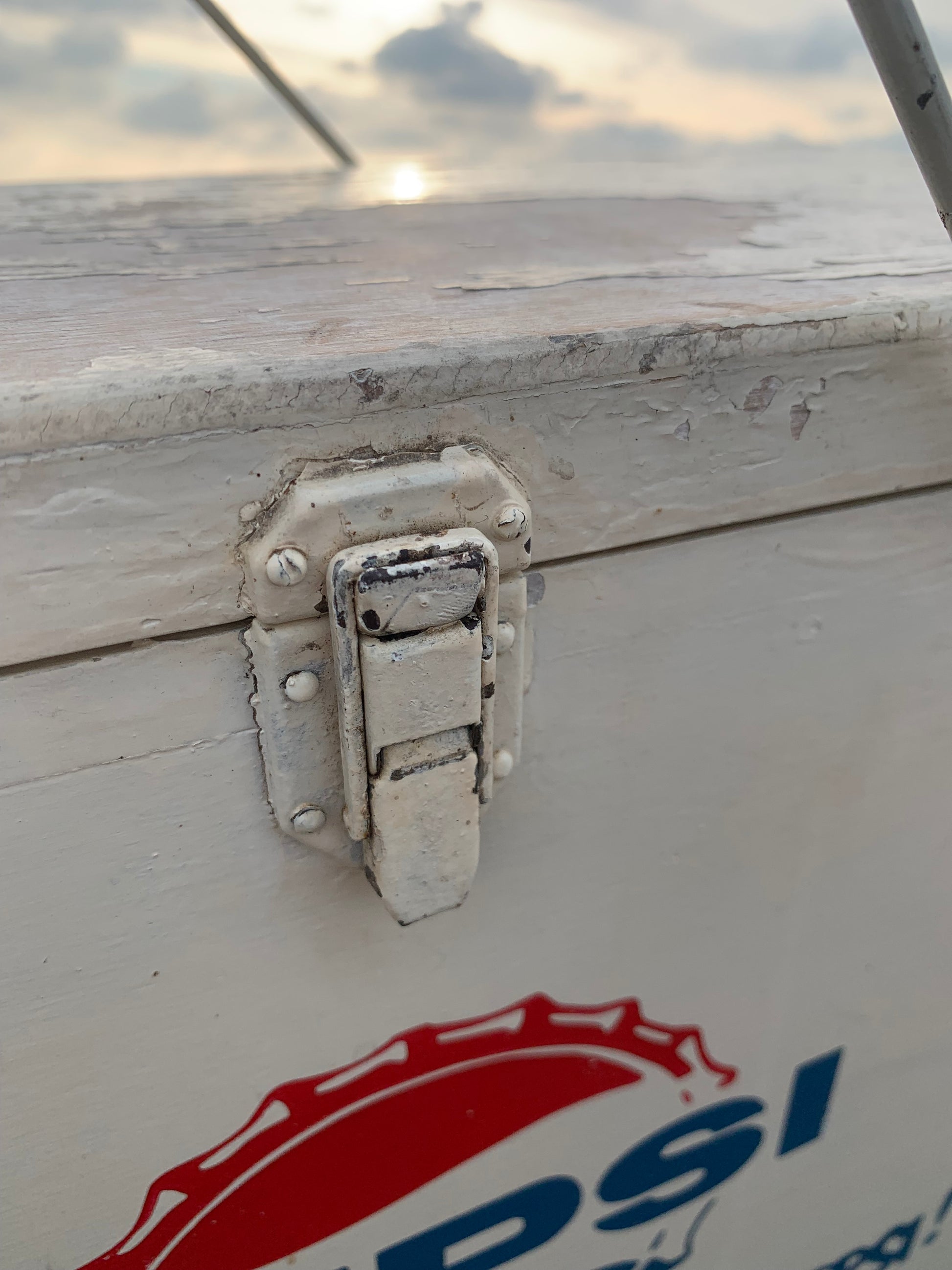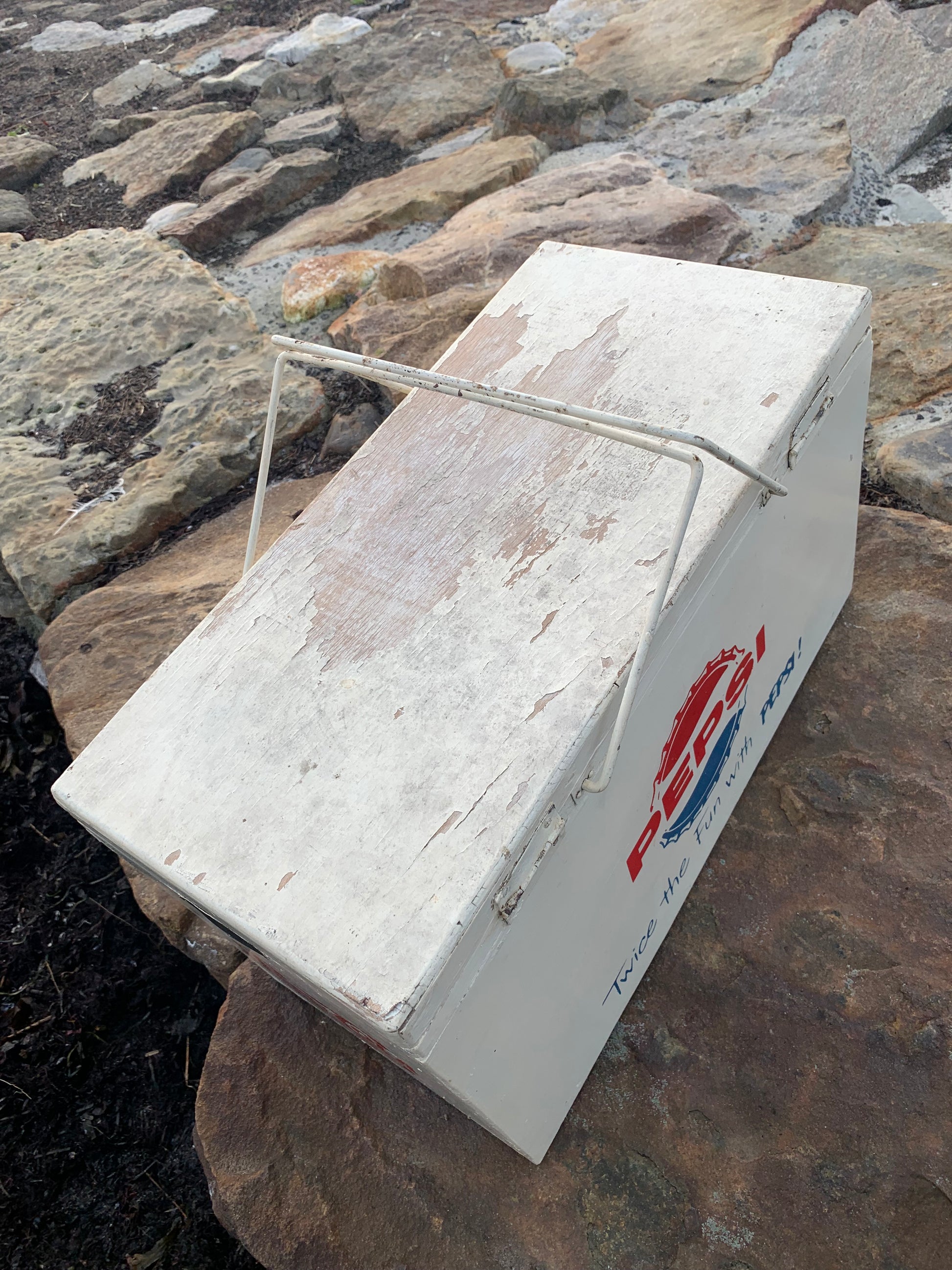 Ein wunderschöner, alter Pepsi-Kühler mit viel Charme und schöner Patina. Der Mann, von dem wir ihn gekauft haben, sagte uns, er stamme aus den 1960er Jahren.