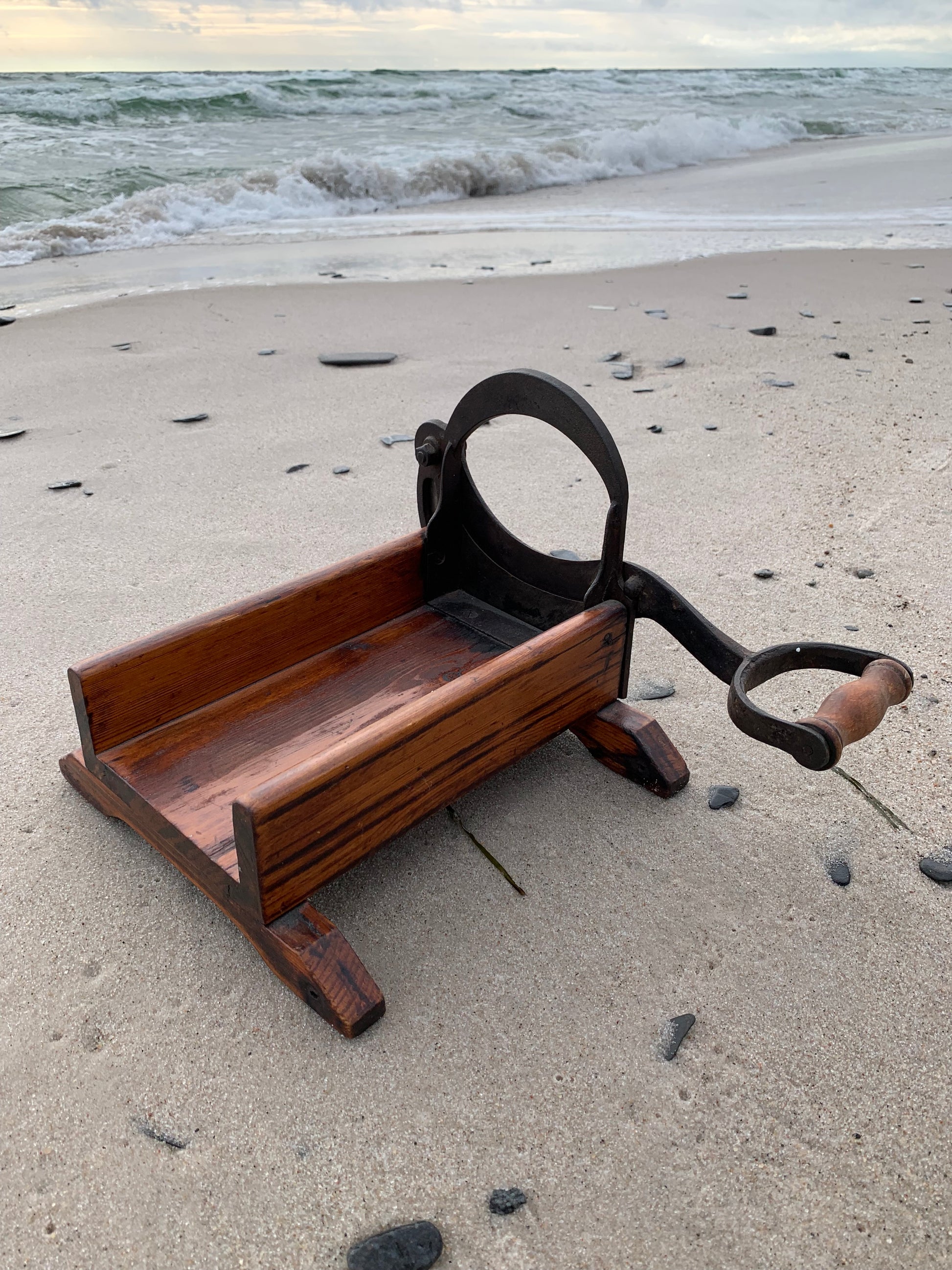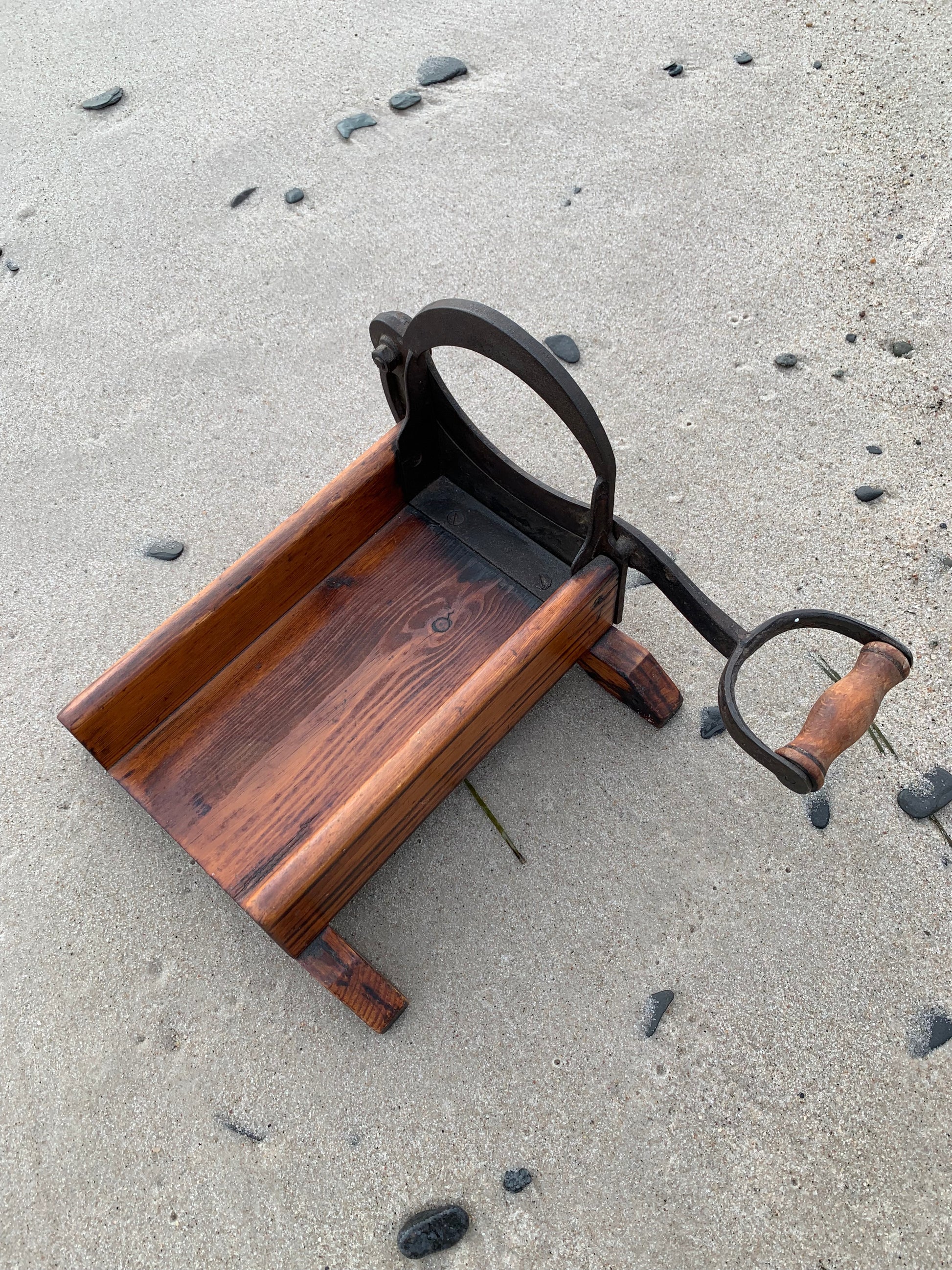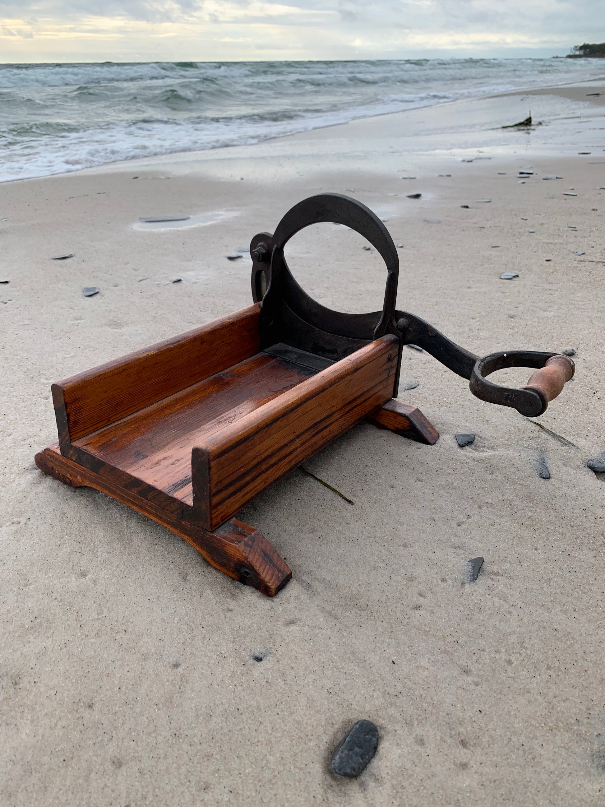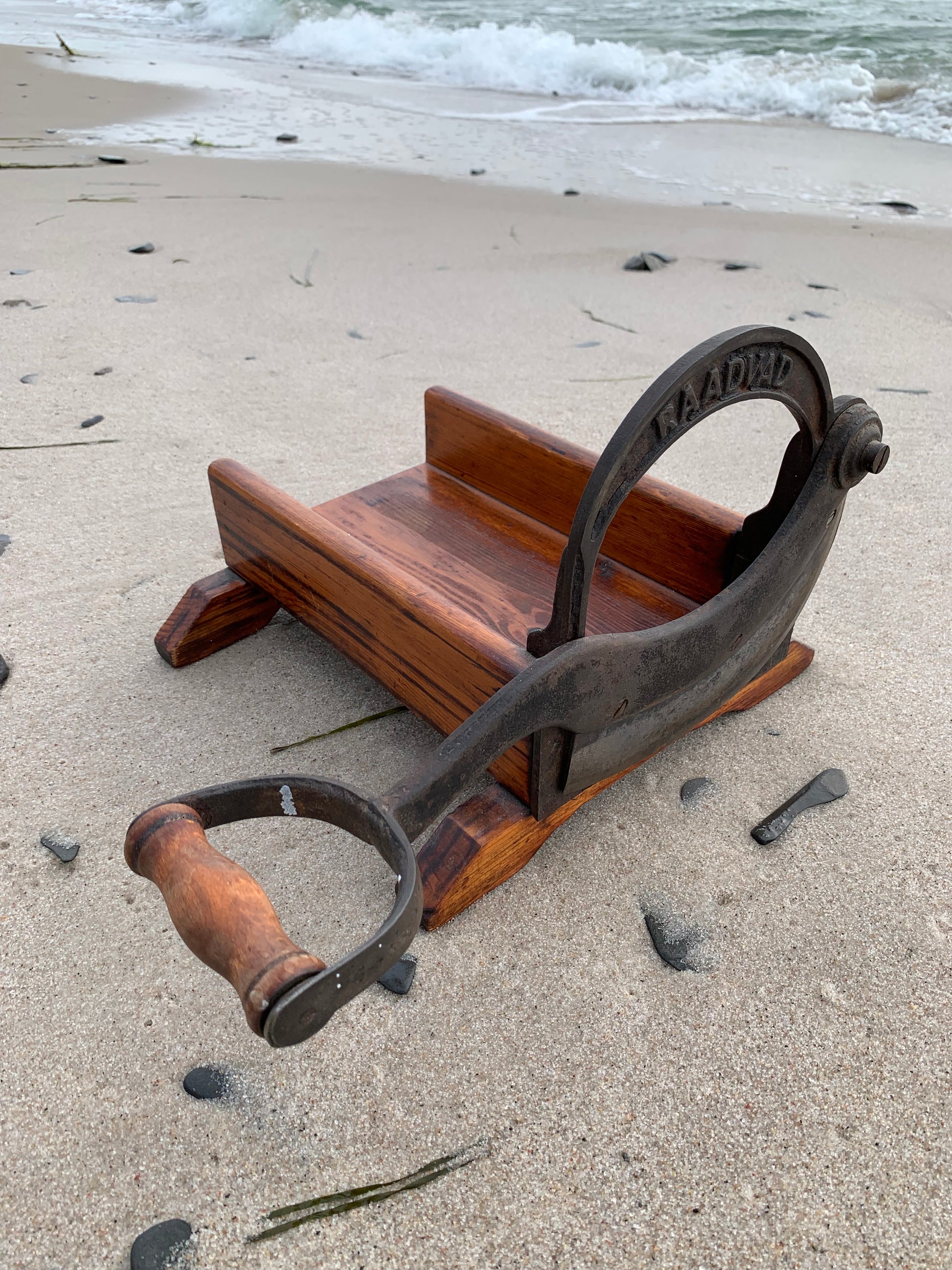 Der schöne und klassische Brotschneider von Raadvad. Gemütlich und robust in der Küche. Der Brotschneider hat eine bezaubernde Patina.