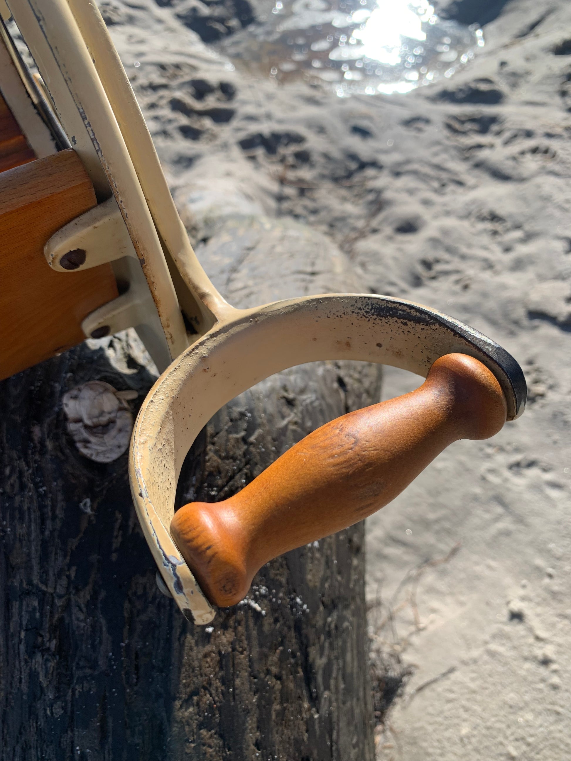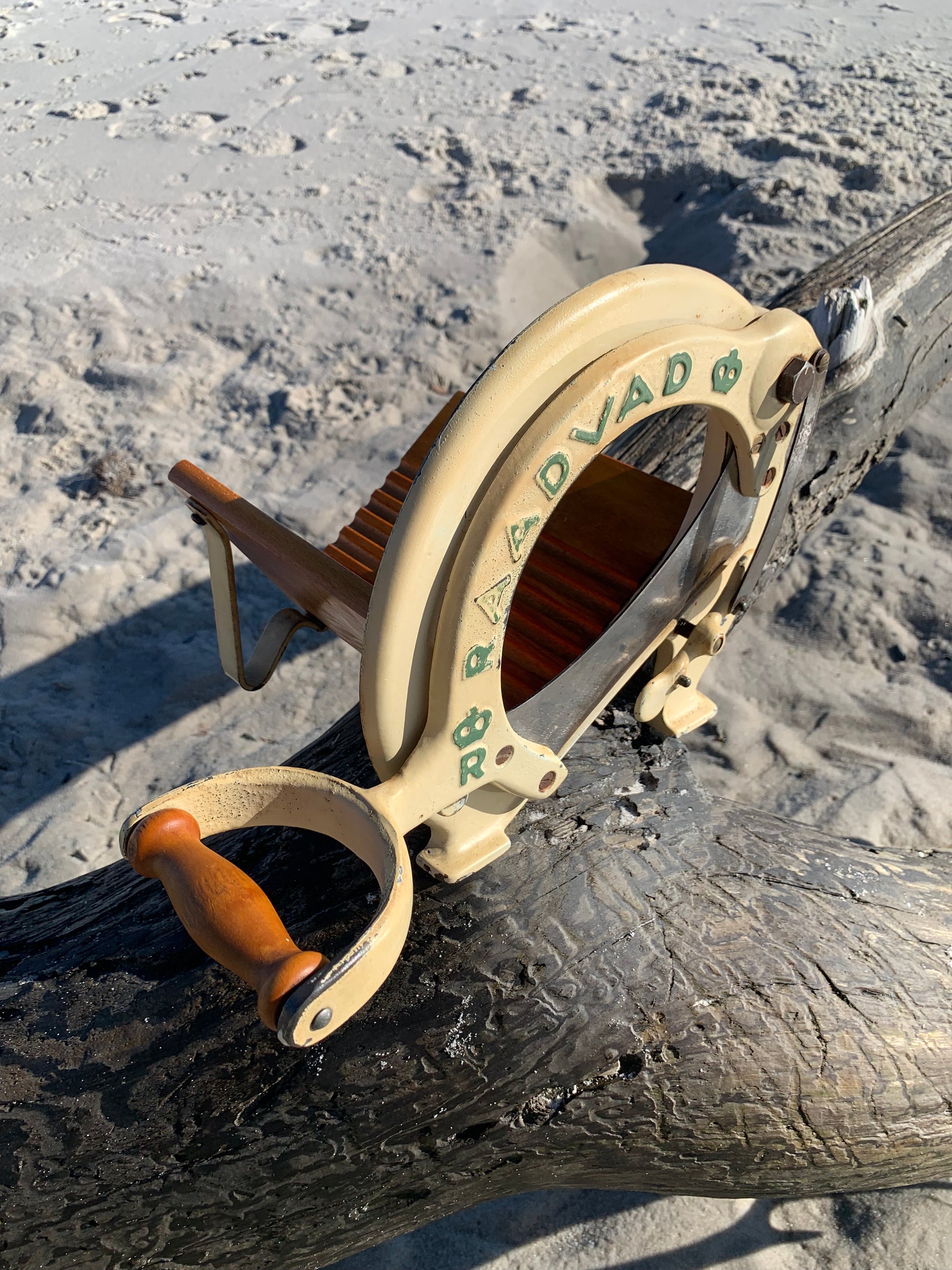 Der schöne und klassische Brotschneider von Raadvad. Gemütlich und robust in der Küche. Der Brotschneider (der immer noch funktioniert) hat eine schöne Patina.