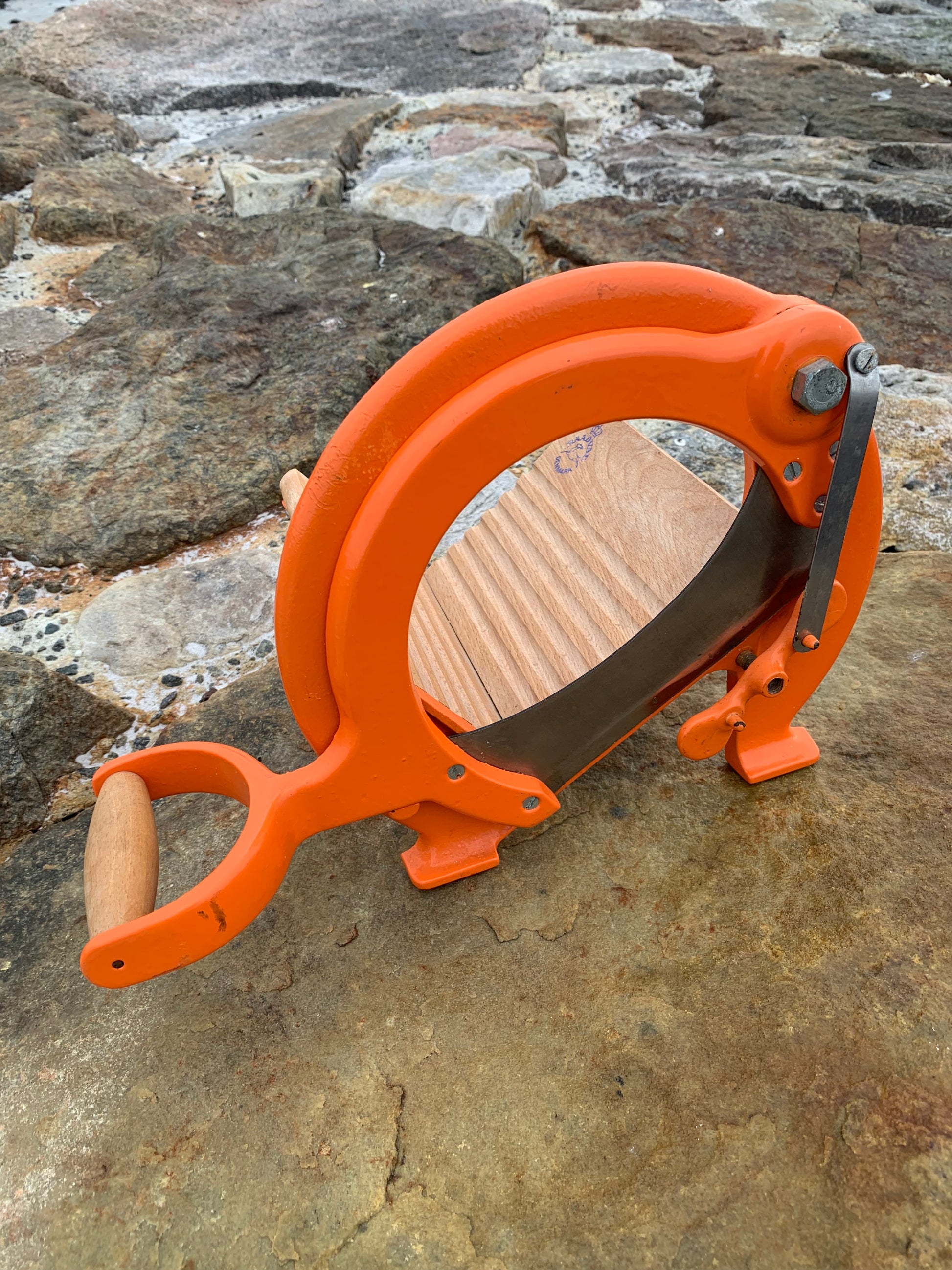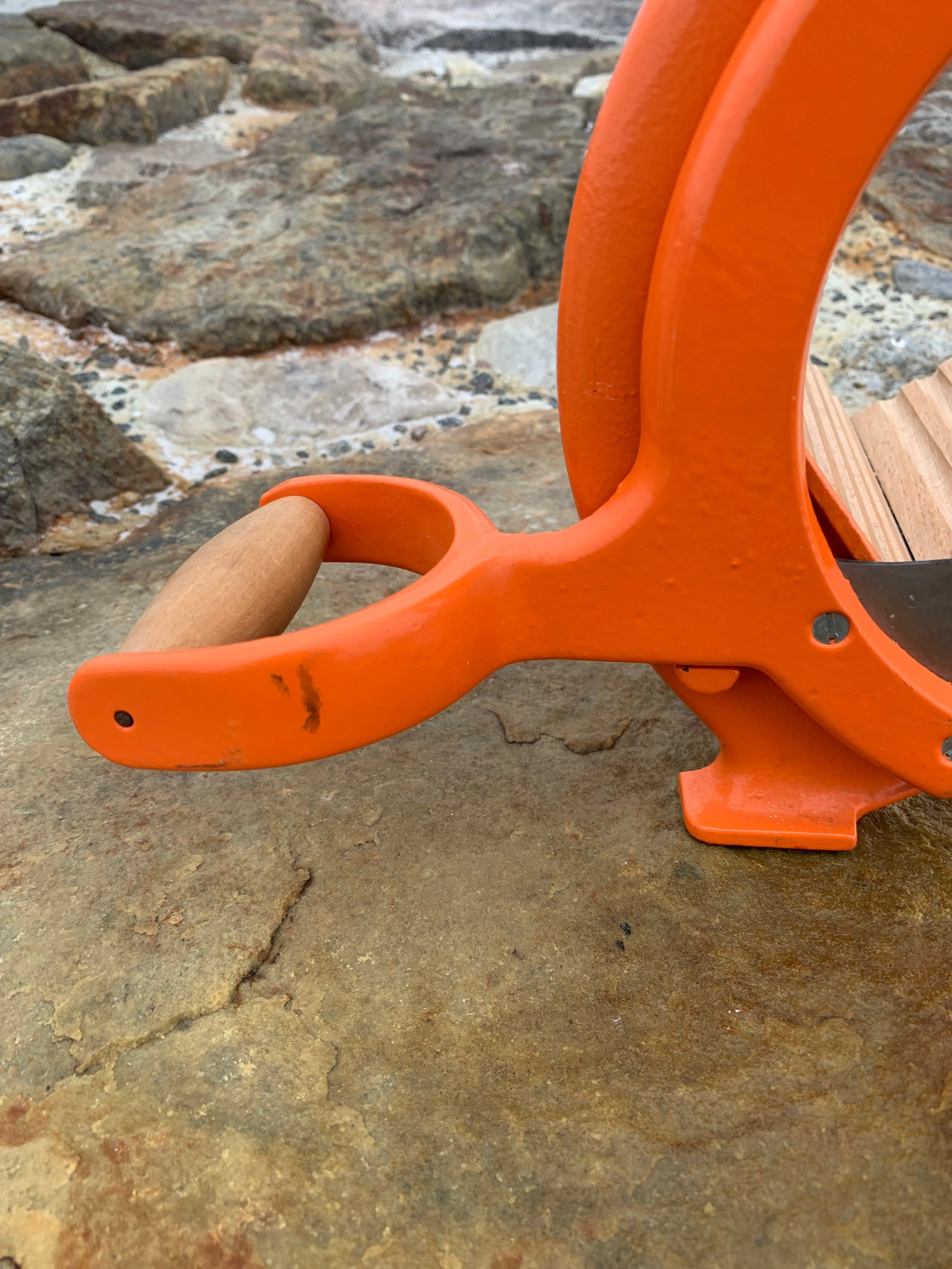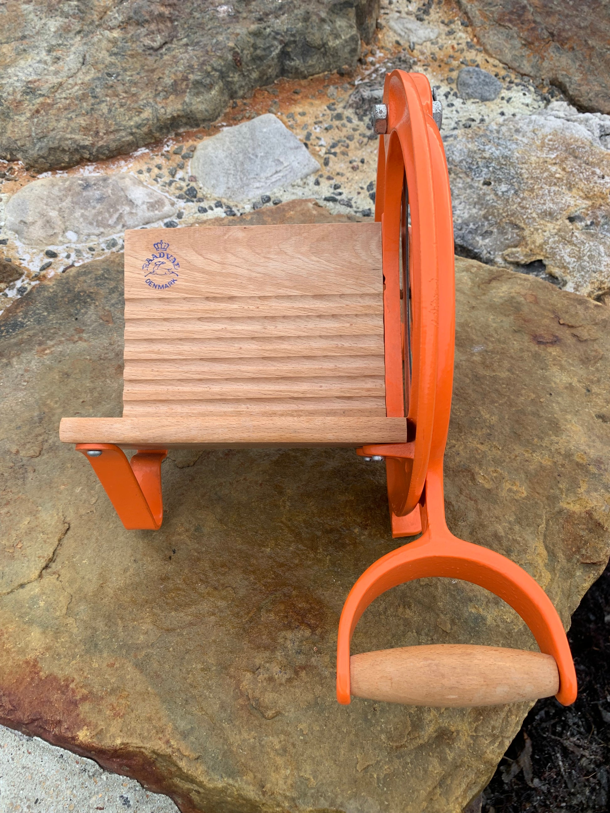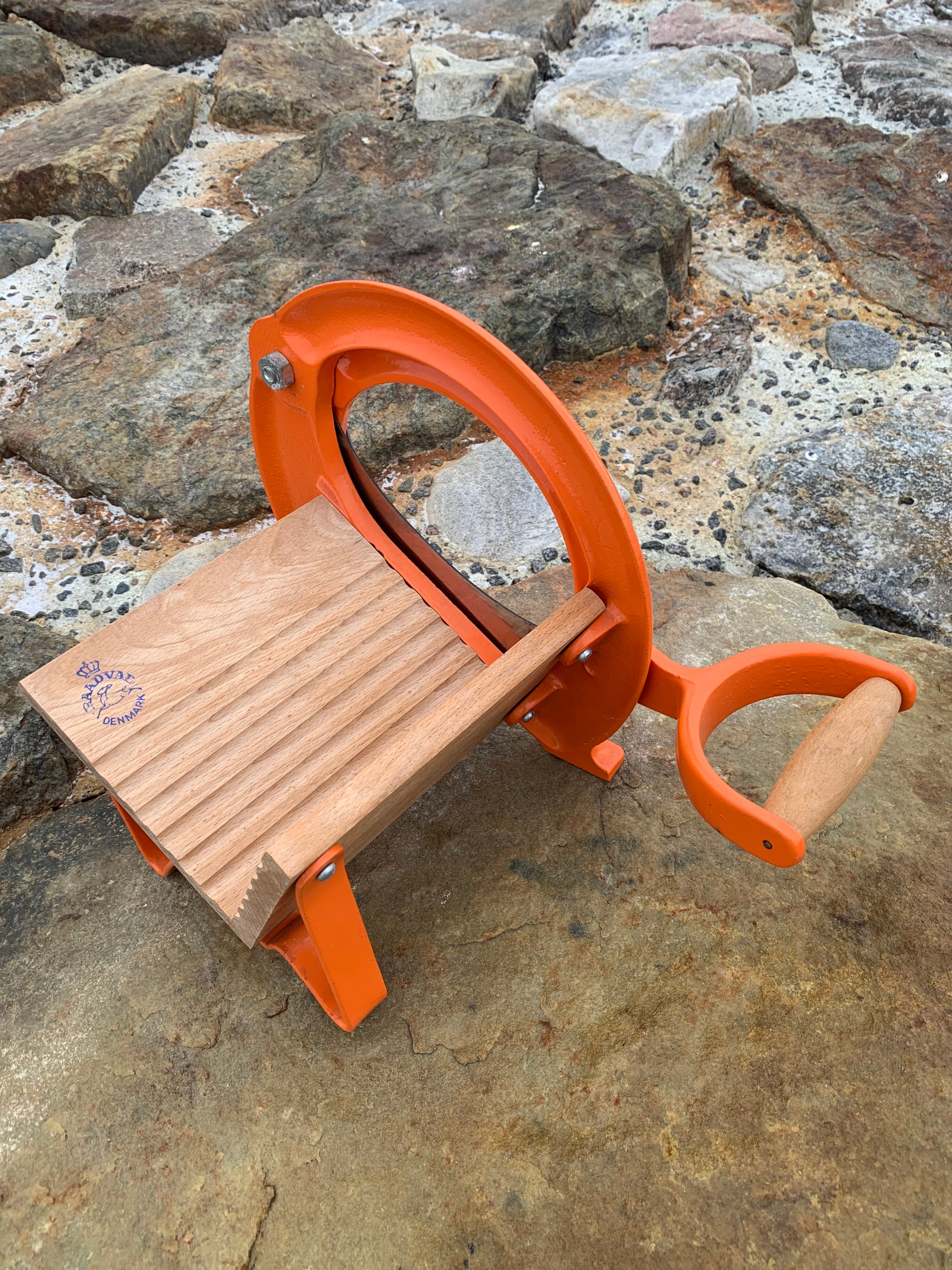 Der schöne und klassische Brotschneider von Raadvad weist Gebrauchsspuren auf, ist aber insgesamt in gutem Vintage-Zustand. Er ist gemütlich und robust in der Küche.