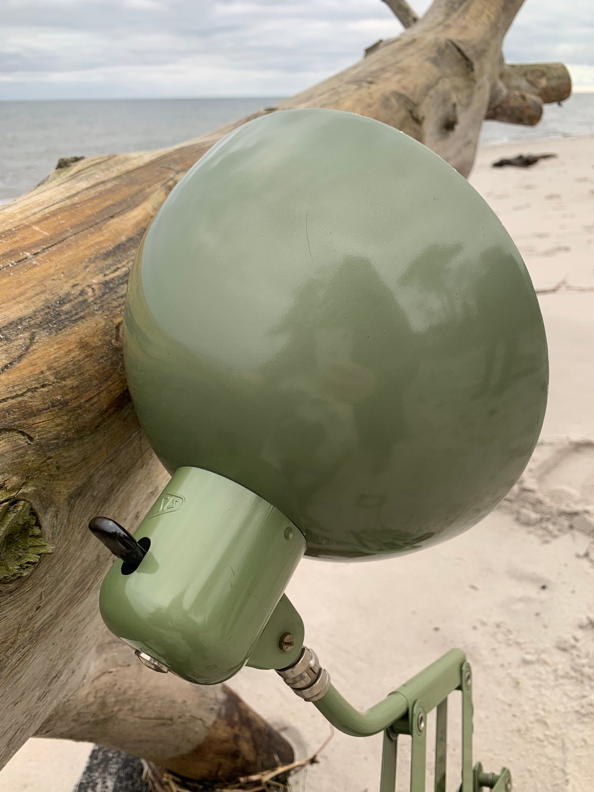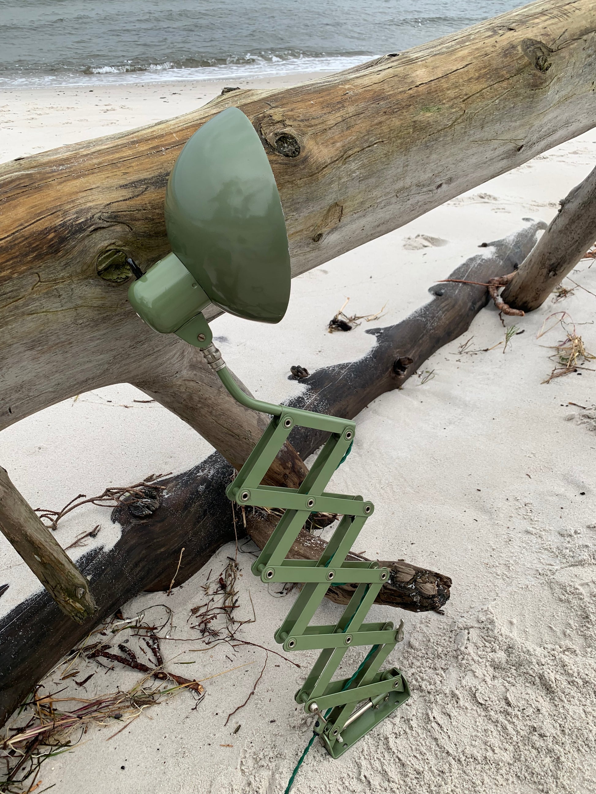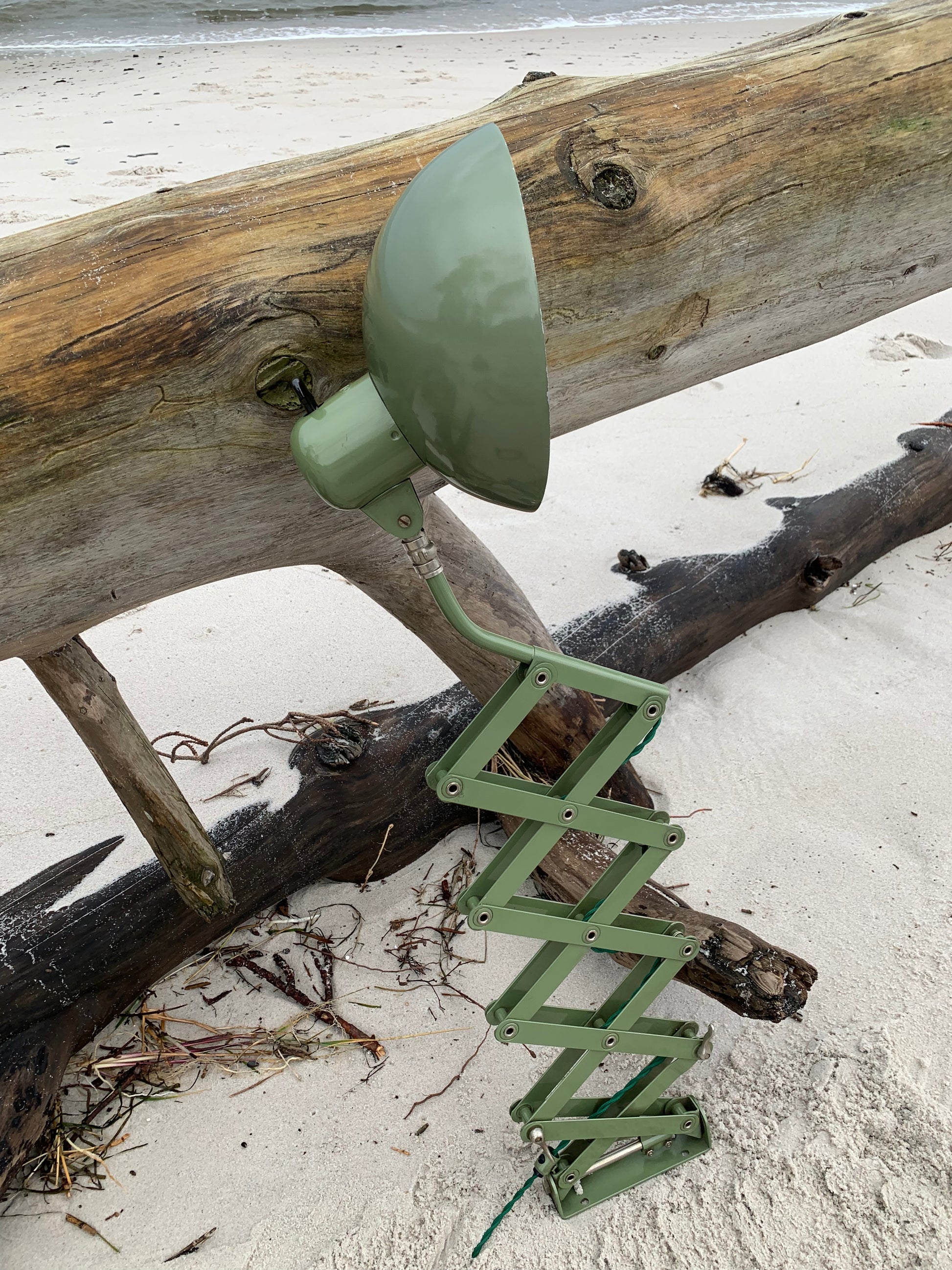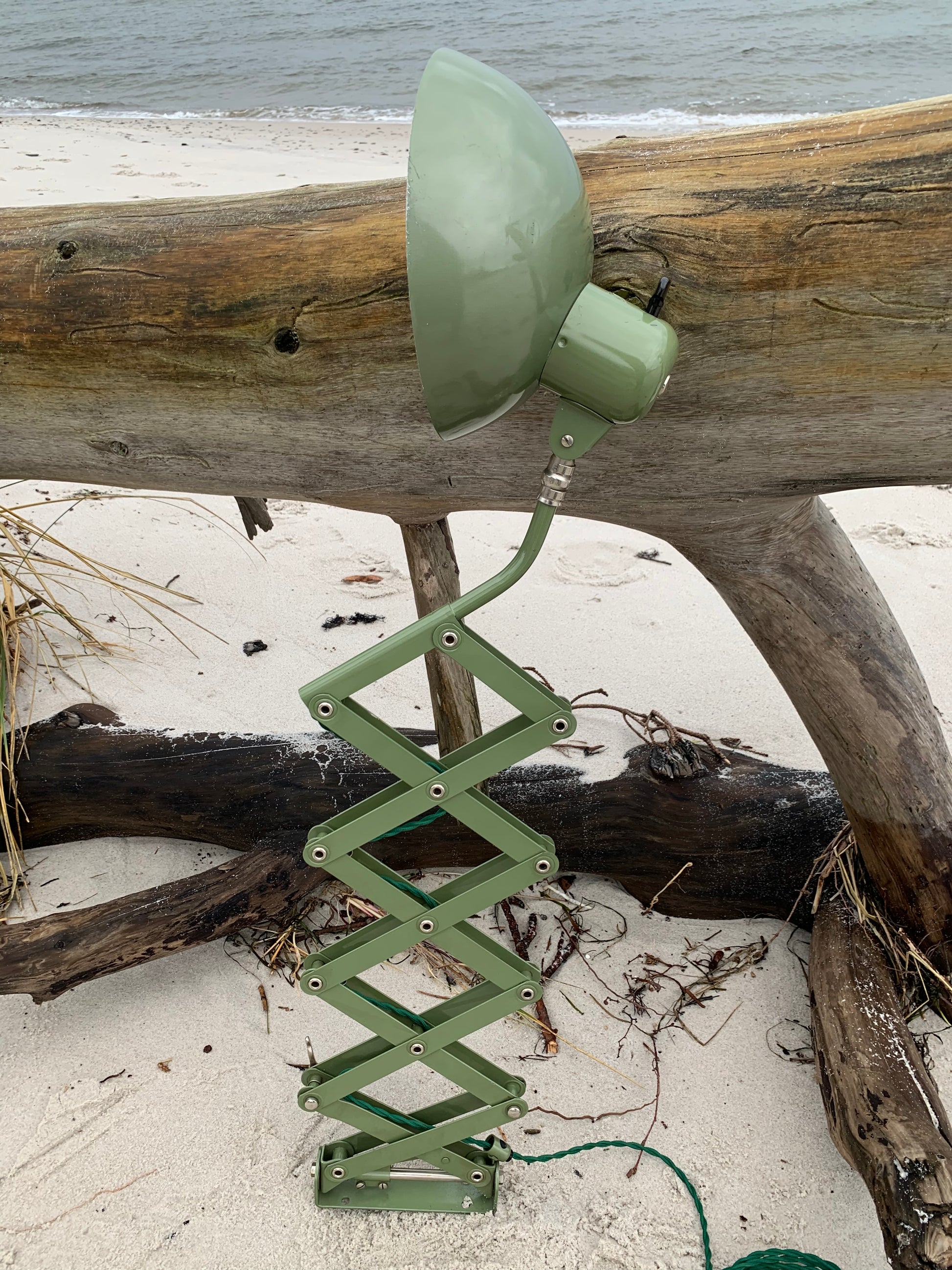 Schöne grüne Vintage Lampe von German SIS. Die Lampe hat einige altersbedingte Gebrauchsspuren, ist aber insgesamt in einem sehr schönen Vintage-Zustand.
