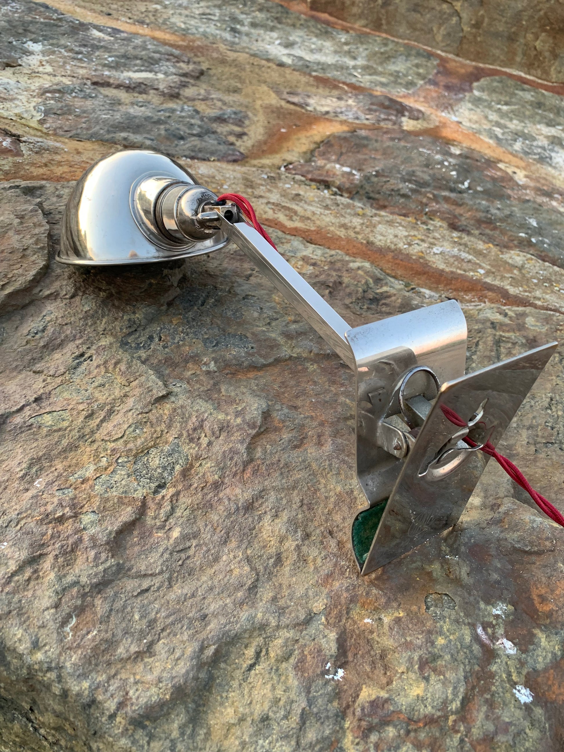 Feine und sehr seltene Hala-Klemmlampe mit Klemme. Die Klemmleuchte verfügt über zwei Glieder und der Reflektor ist um 360 Grad drehbar. Die Lampe weist altersbedingte Gebrauchsspuren und einige Dellen auf, sie wurde sanft aufgearbeitet und neu verkabelt. Dies ist definitiv ein altes Sammlerstück für diejenigen unter Ihnen, die das Einzigartige schätzen.