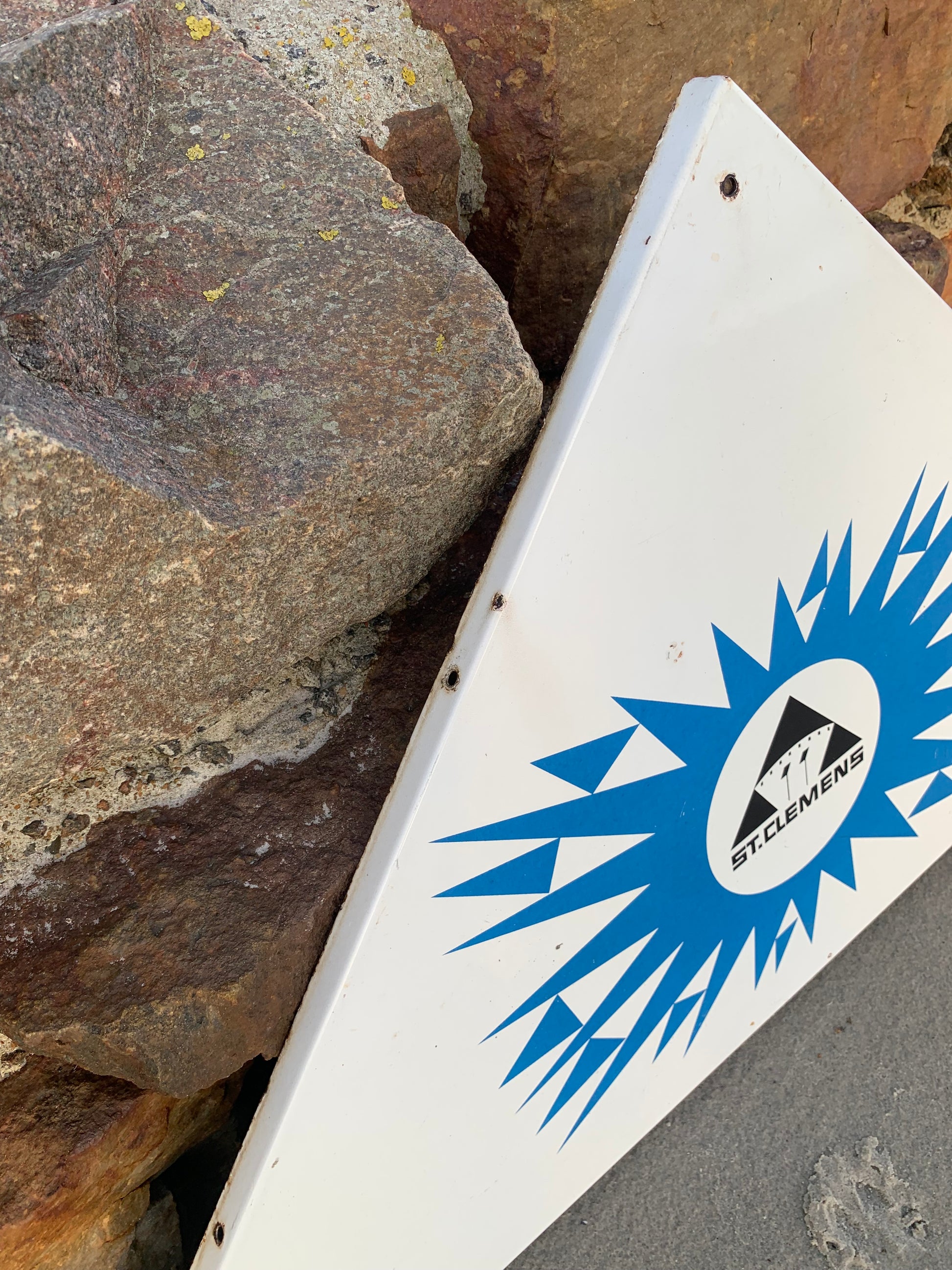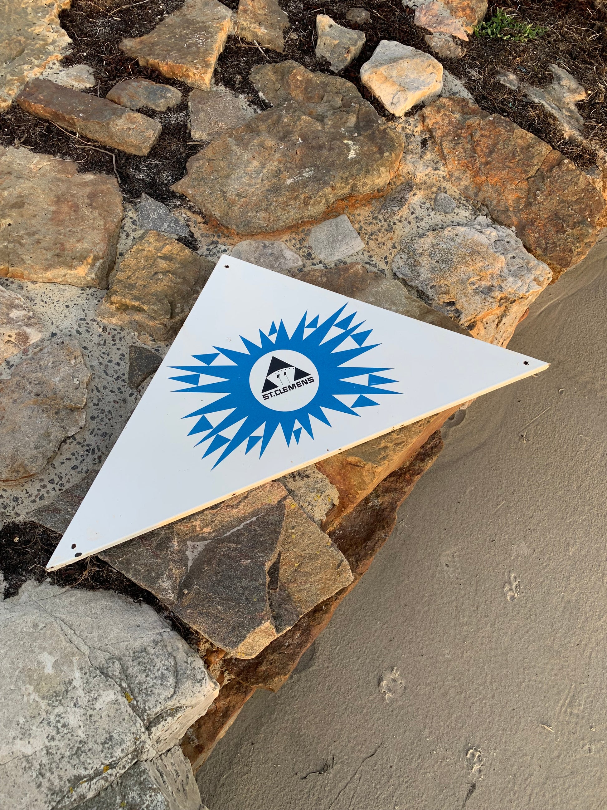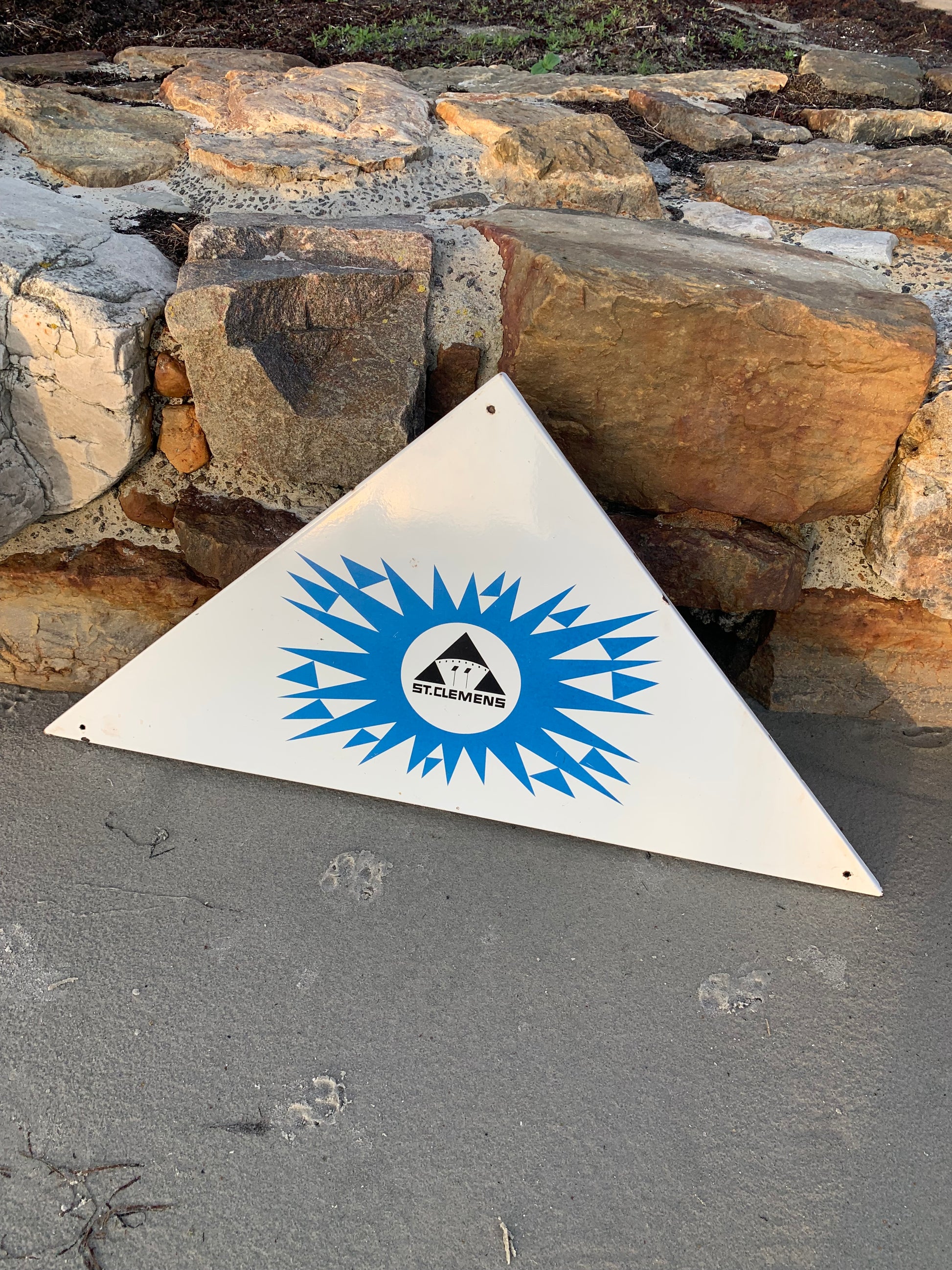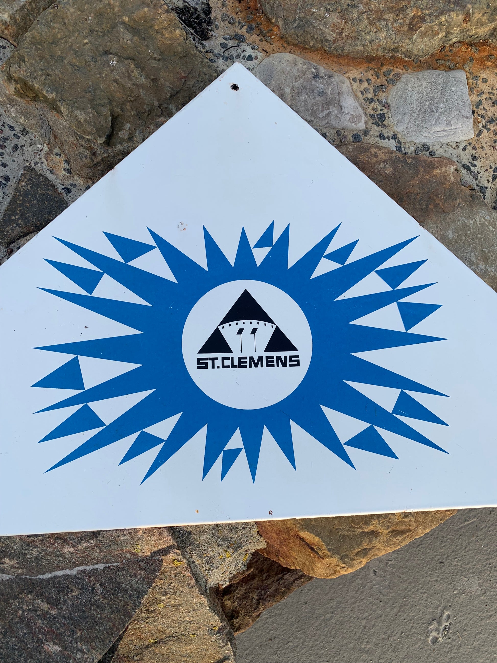 Altes Fassadenschild von ST. CLEMENS MEJERI auf Bornholm. Das Schild hat Patina, ist aber insgesamt in gutem Zustand.