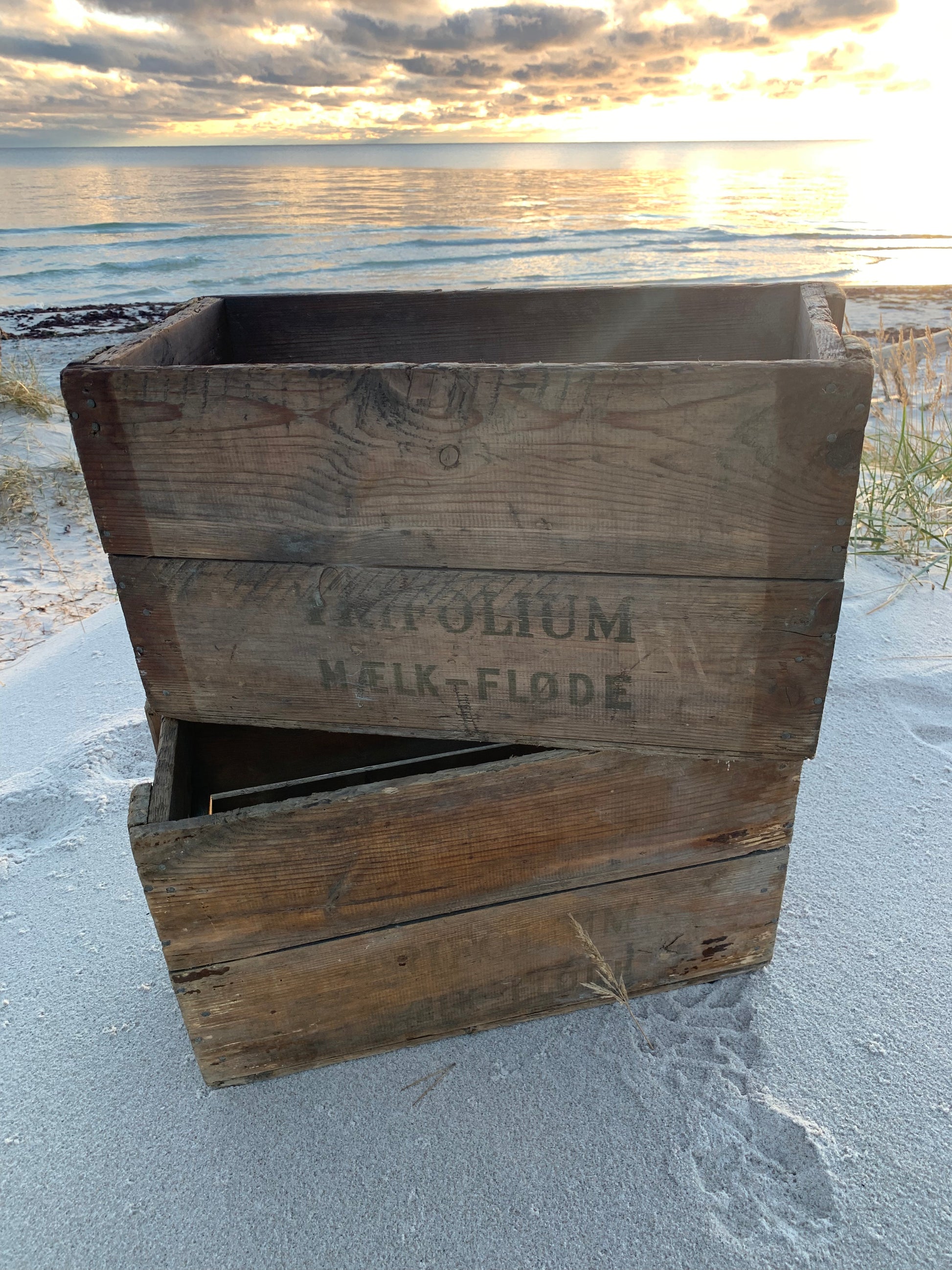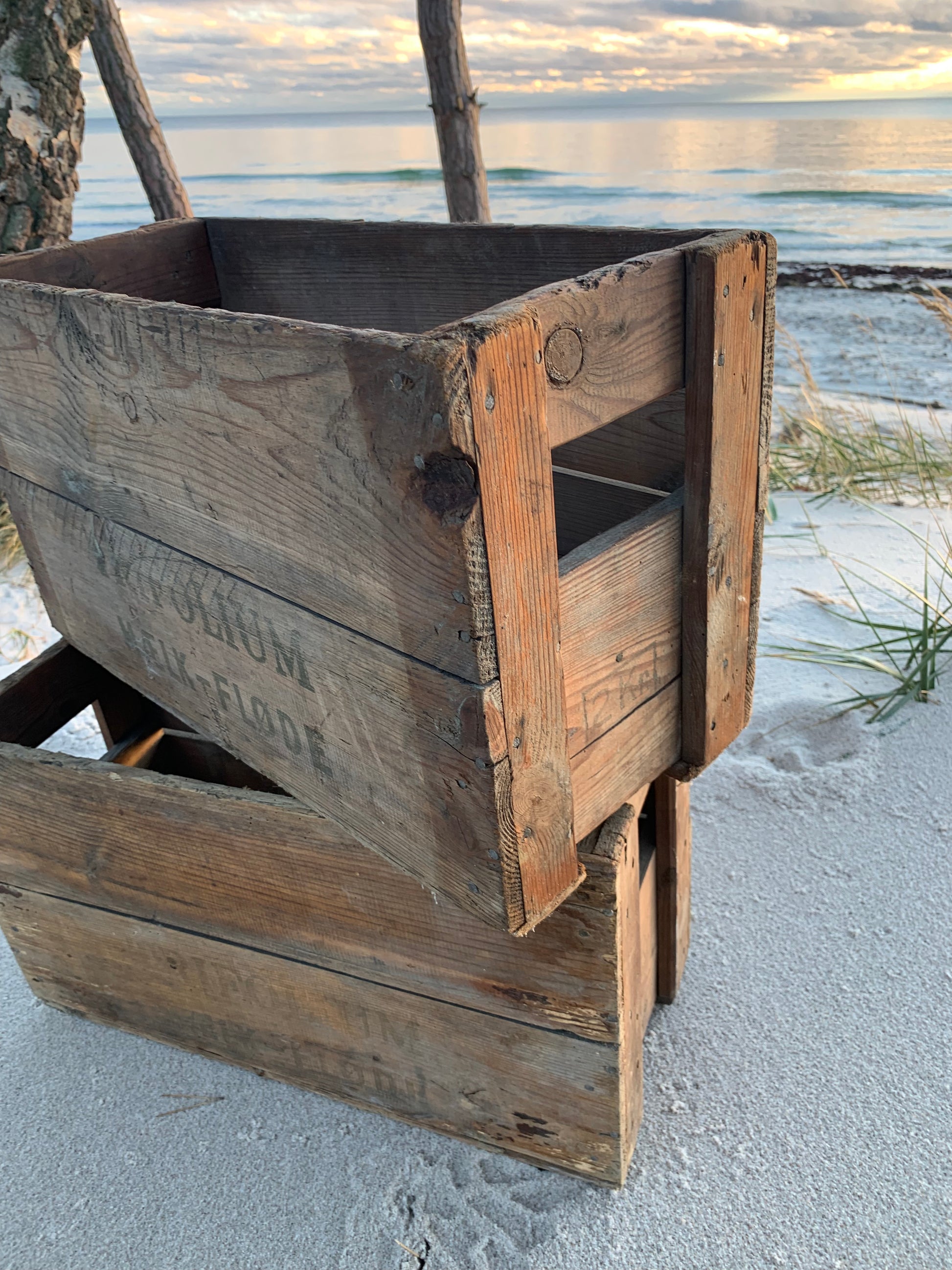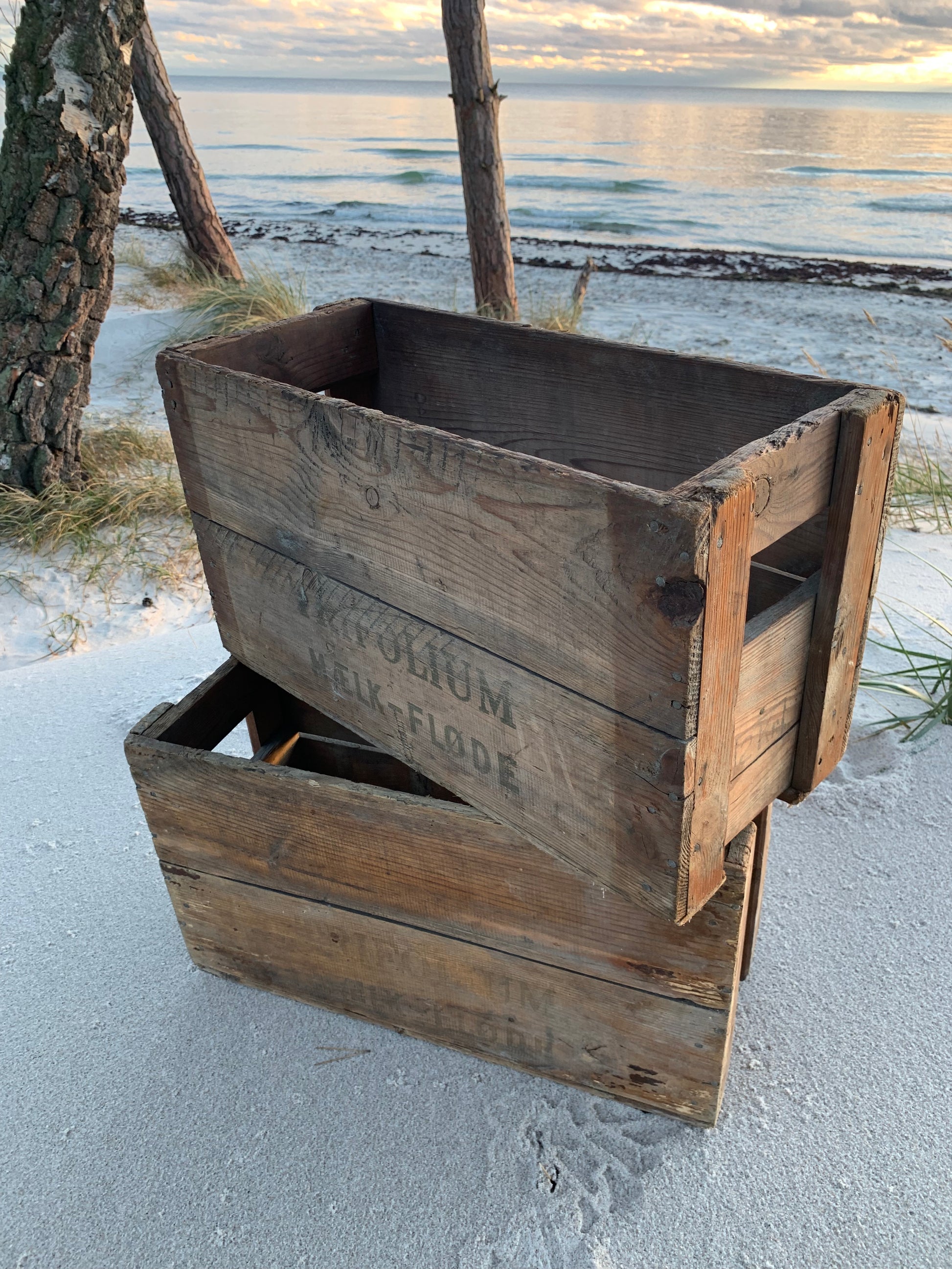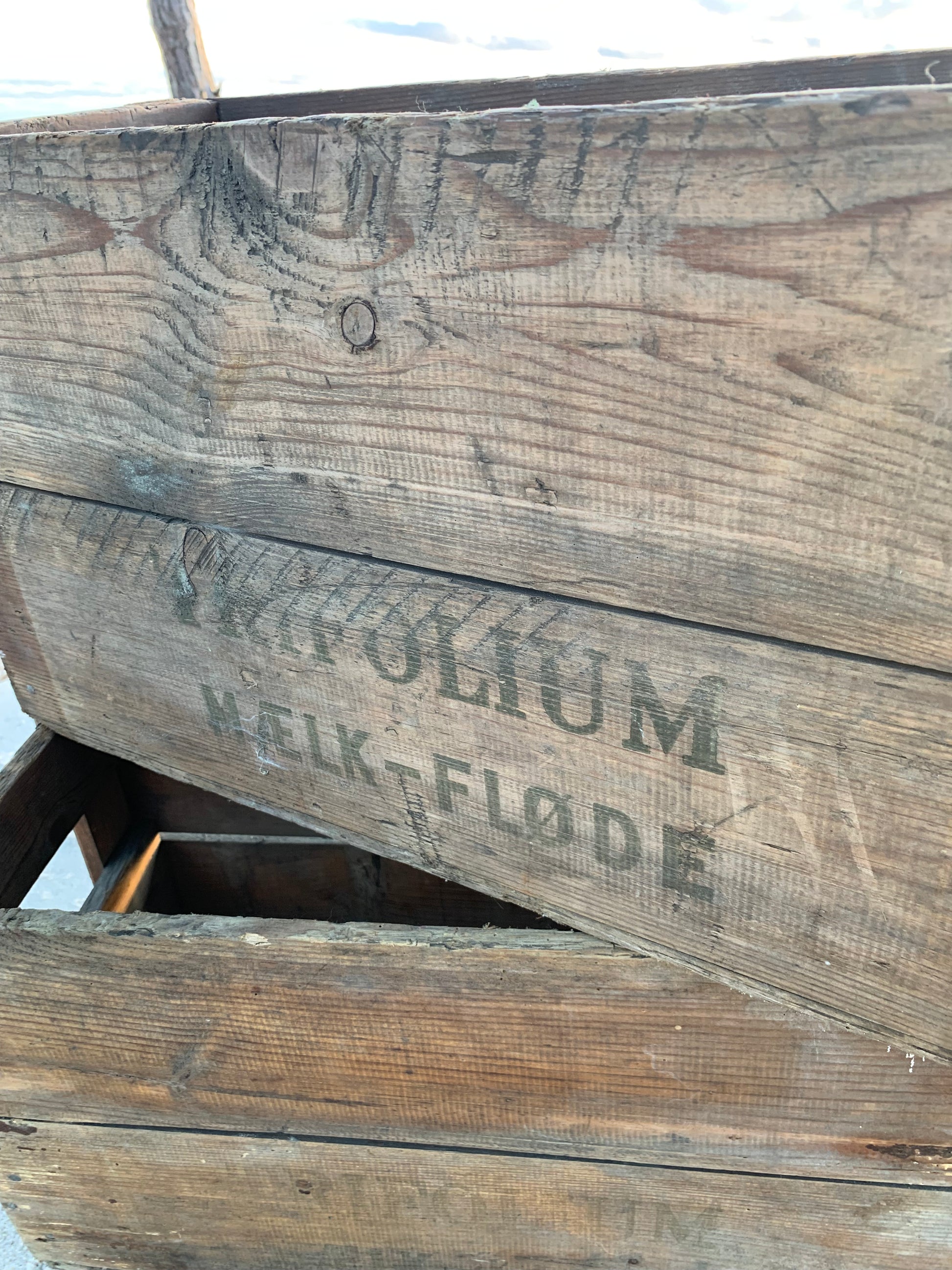 Schöne alte Milchkiste mit Fach und Zinkboden. Die Schachtel hat eine charmante Aufschrift, die besagt, dass eine Flasche Milch einmal 2 Kronen gekostet hat. Heute eignet sich die Kiste zum Beispiel als charmantes Weinregal, wenn man sie hinstellt. Der Koffer, der Charme und eine schöne Patina ausstrahlt, hat Fächer und Platz für 10 Flaschen.