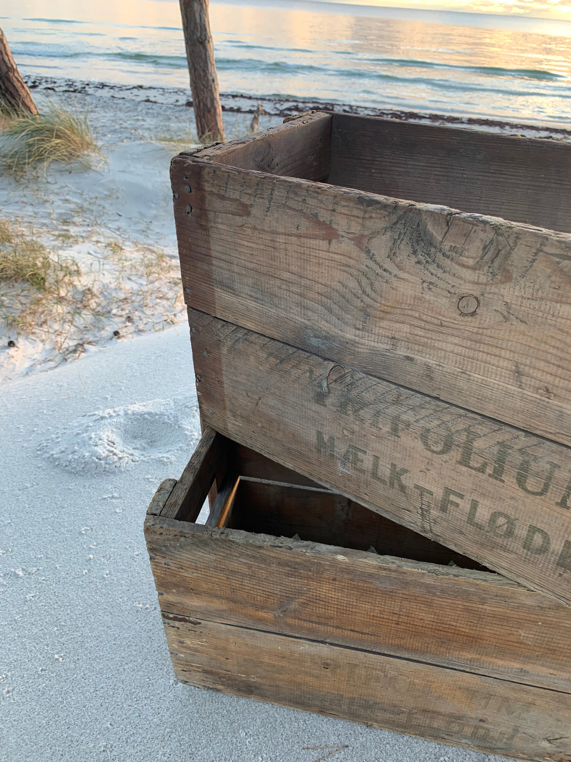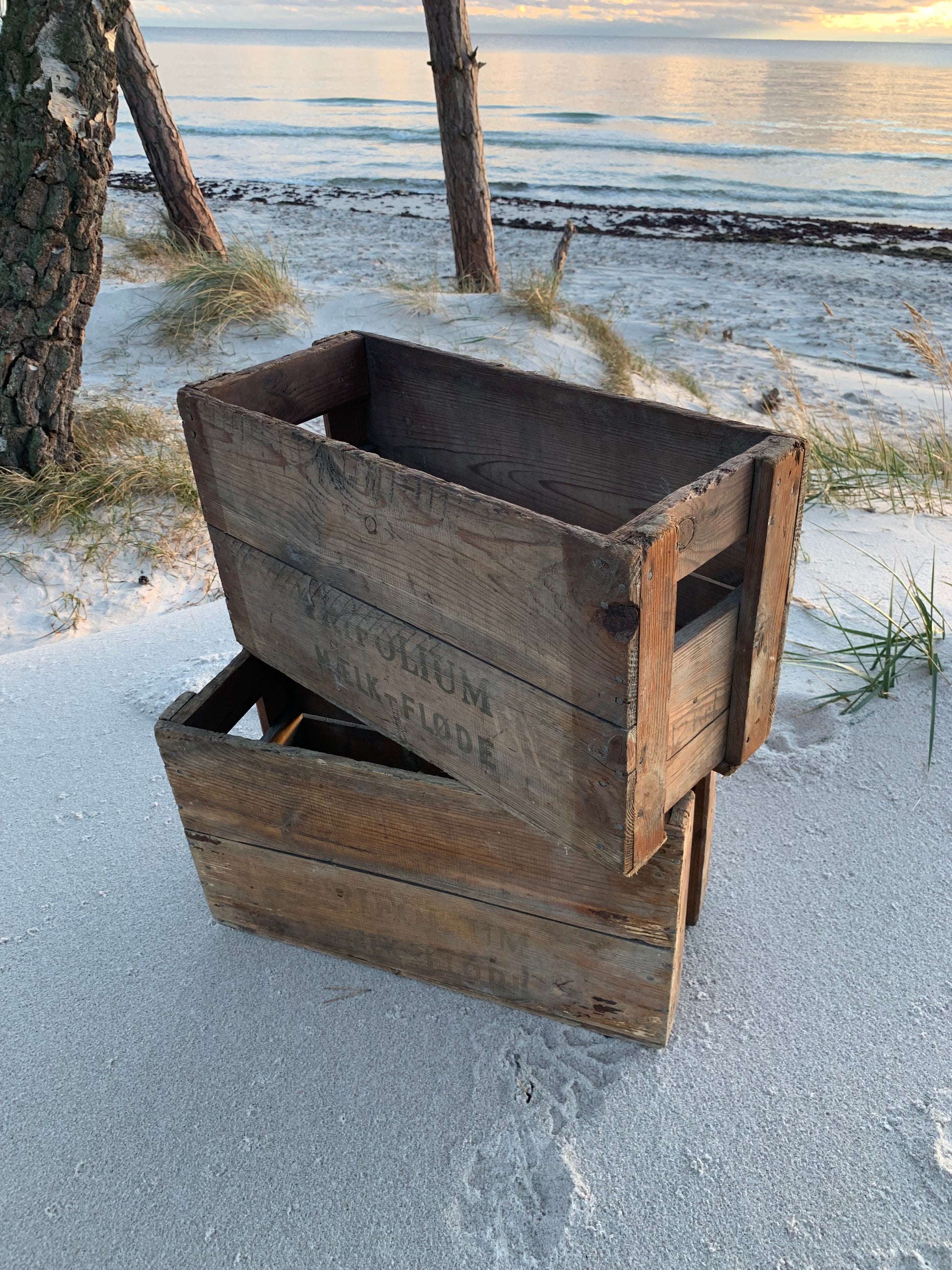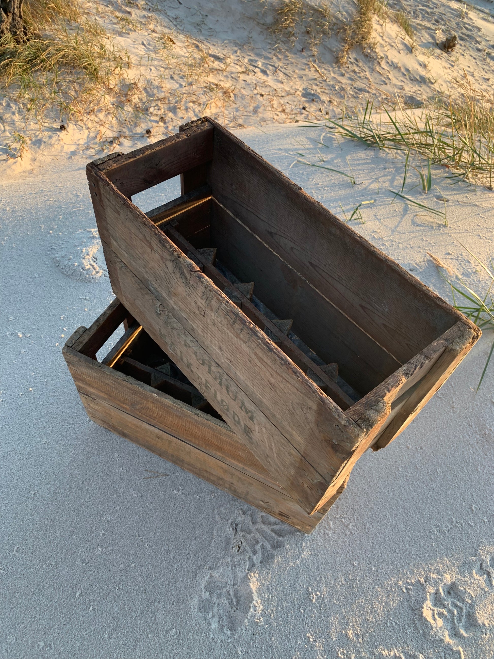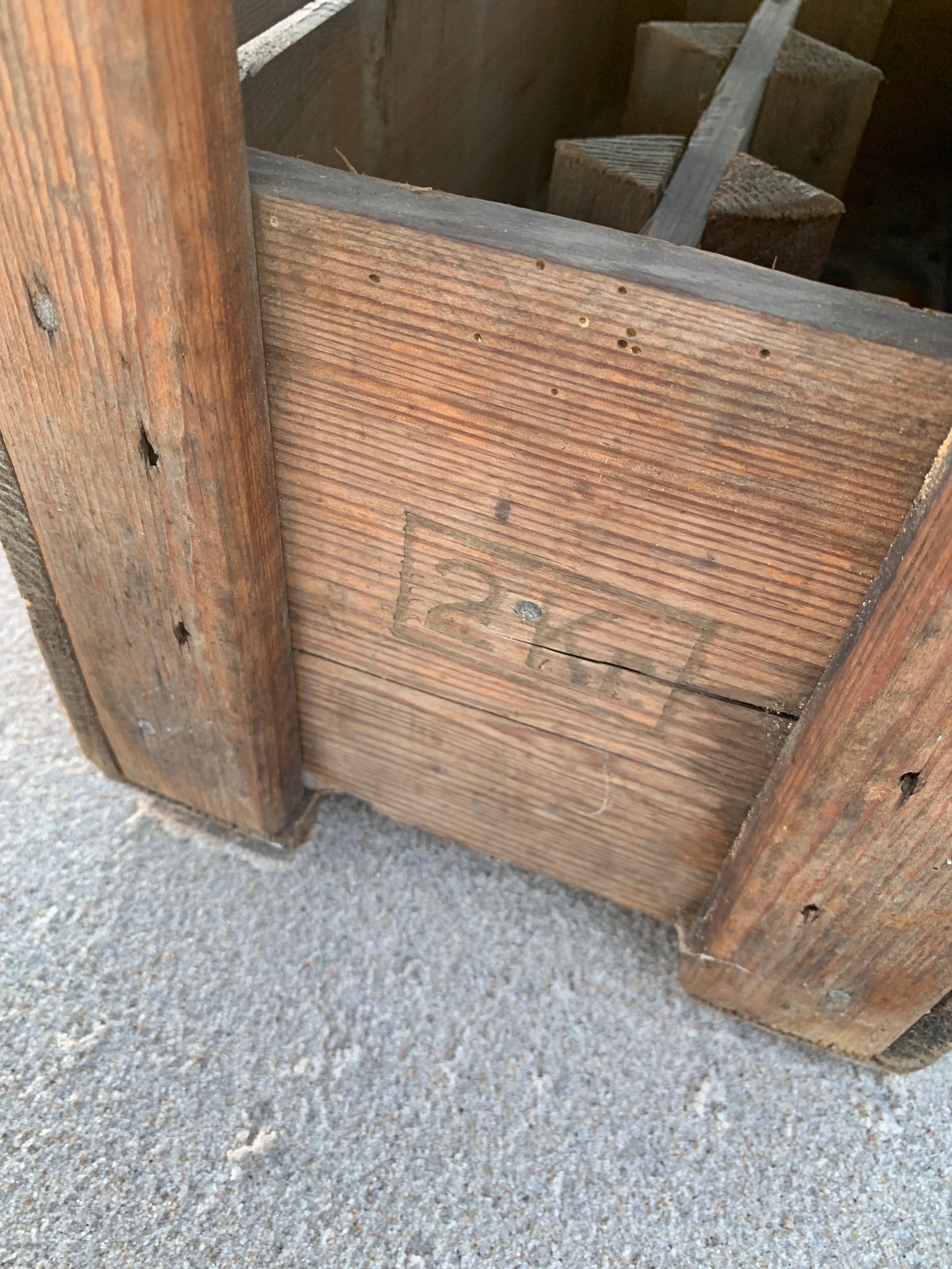 Schöne alte Milchkiste mit Fach und Zinkboden. Die Schachtel hat eine charmante Aufschrift, die besagt, dass eine Flasche Milch einmal 2 Kronen gekostet hat. Heute eignet sich die Kiste zum Beispiel als charmantes Weinregal, wenn man sie hinstellt. Der Koffer, der Charme und eine schöne Patina ausstrahlt, hat Fächer und Platz für 10 Flaschen.