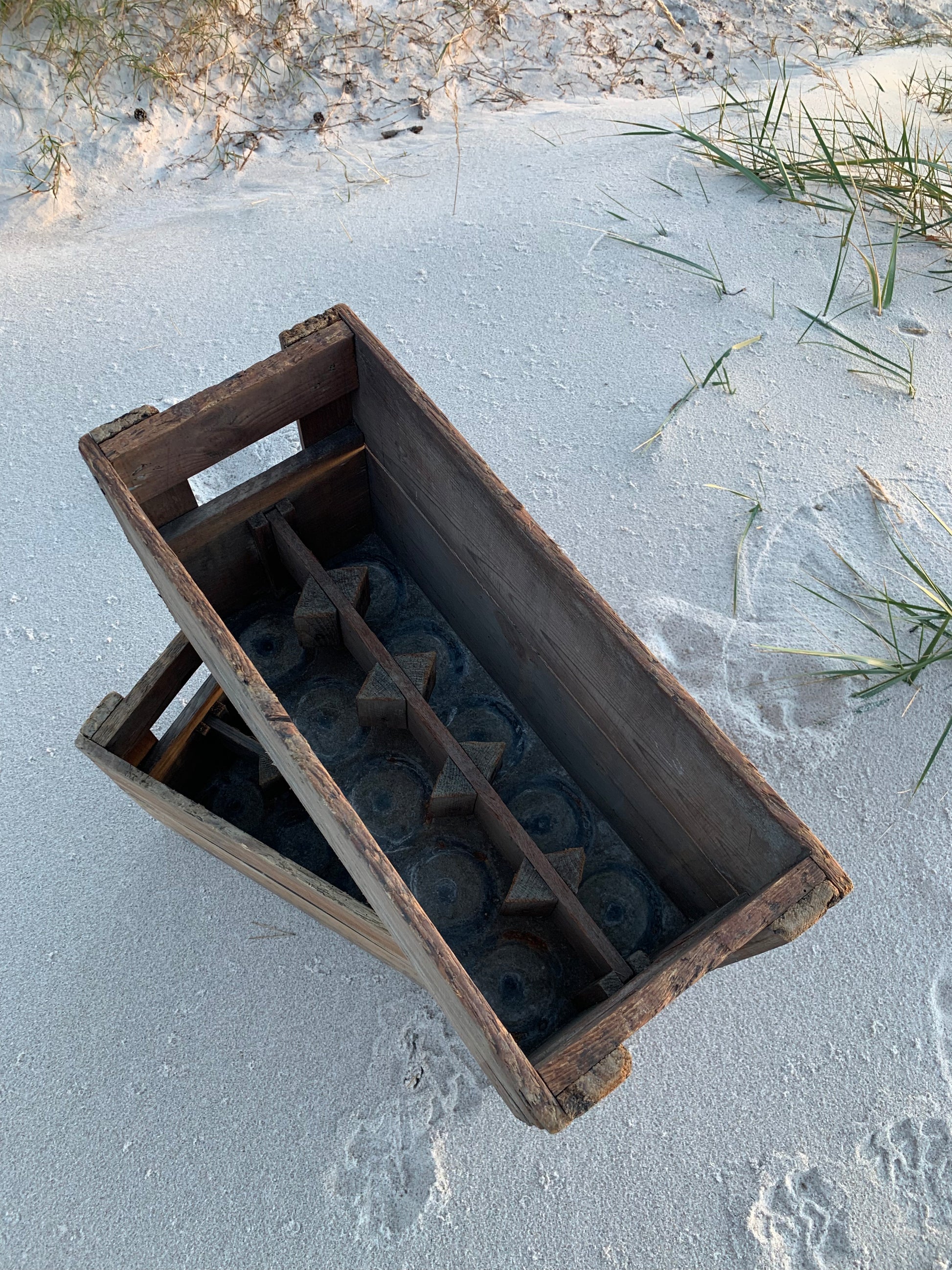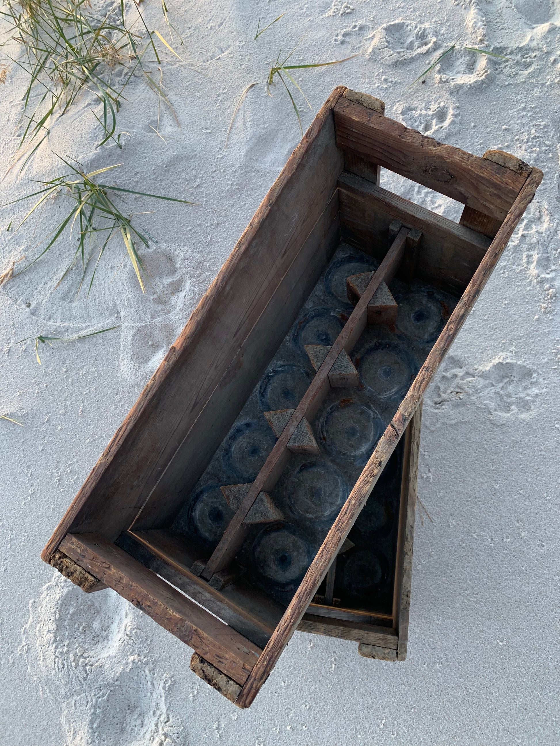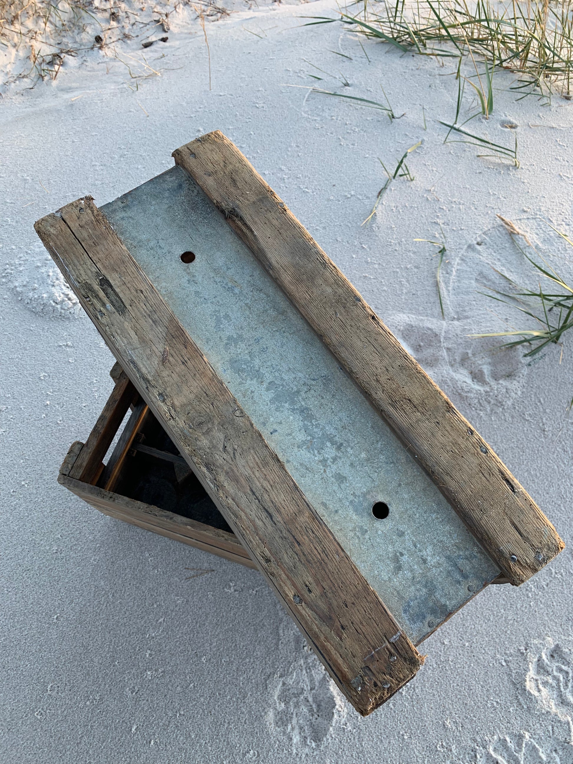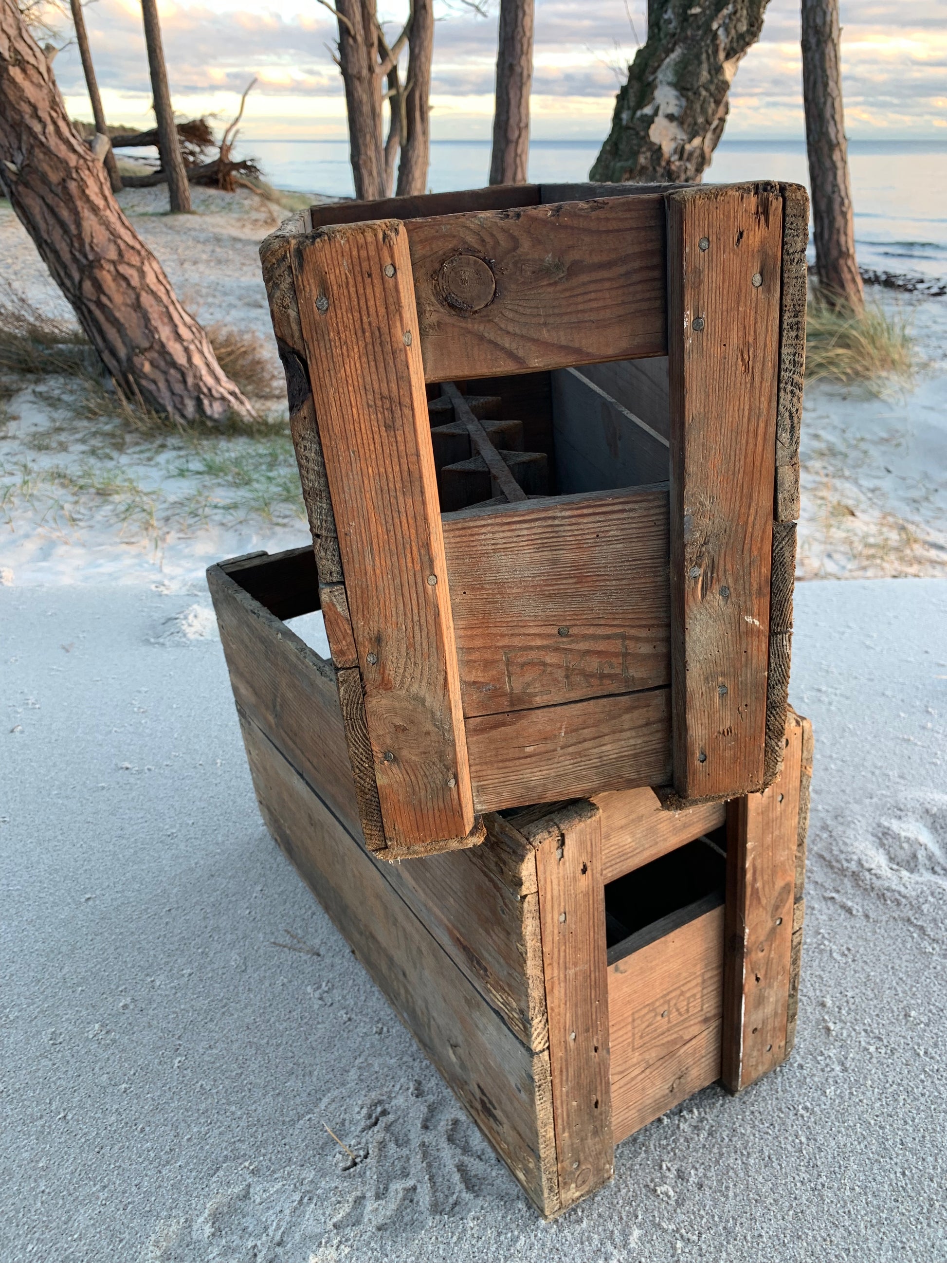Schöne alte Milchkiste mit Fach und Zinkboden. Die Schachtel hat eine charmante Aufschrift, die besagt, dass eine Flasche Milch einmal 2 Kronen gekostet hat. Heute eignet sich die Kiste zum Beispiel als charmantes Weinregal, wenn man sie hinstellt. Der Koffer, der Charme und eine schöne Patina ausstrahlt, hat Fächer und Platz für 10 Flaschen.